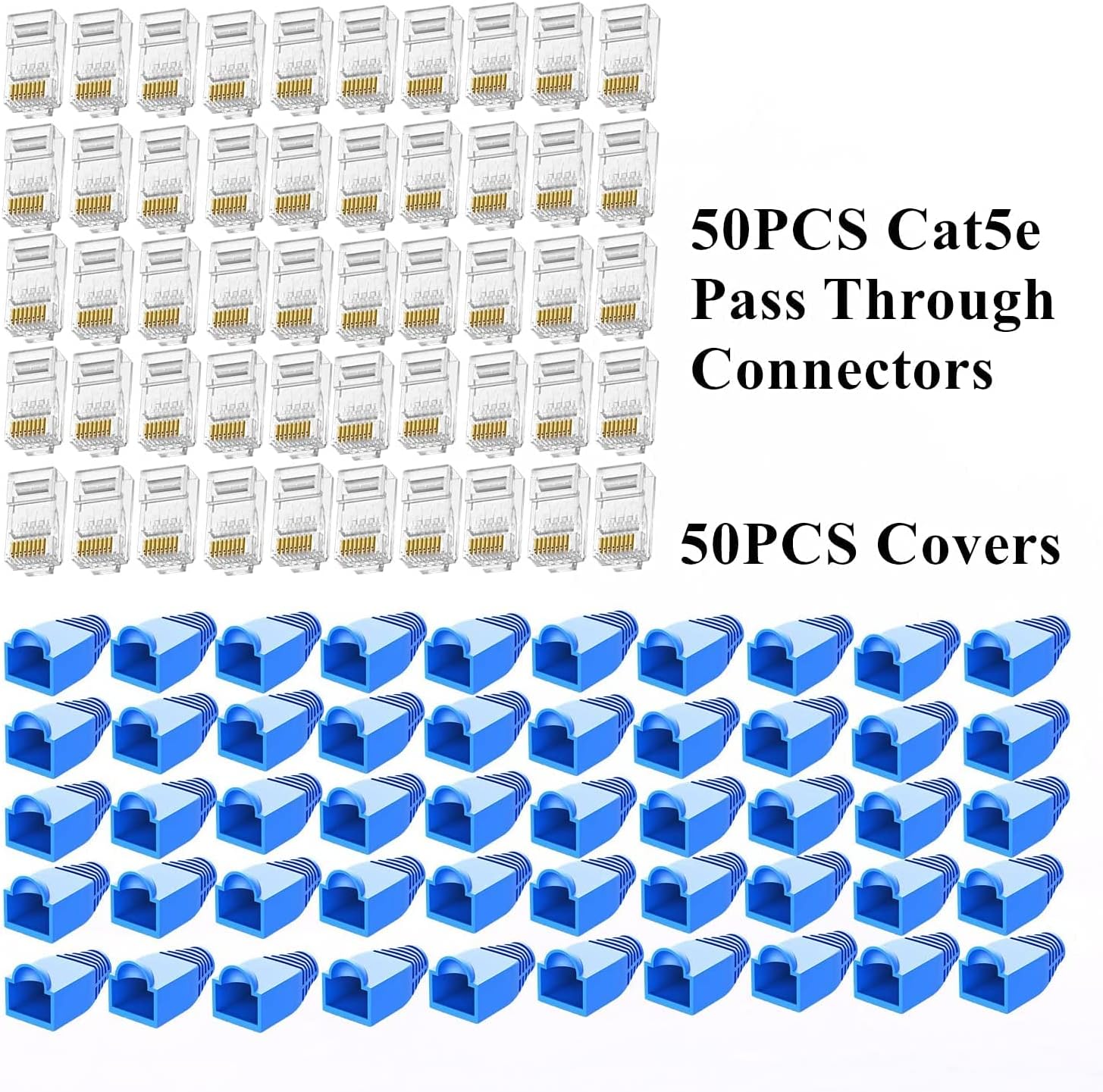rj45 Crimping Tool for Cat6 Cat5e Cat5. Sturdy Crimper for rj45 rj12/11 Pass-Through Connectors with 50pcs rj45 Cat5e Pass-Through Connectors. 50pcs Covers. Wire Stripper; Network Cable Tester