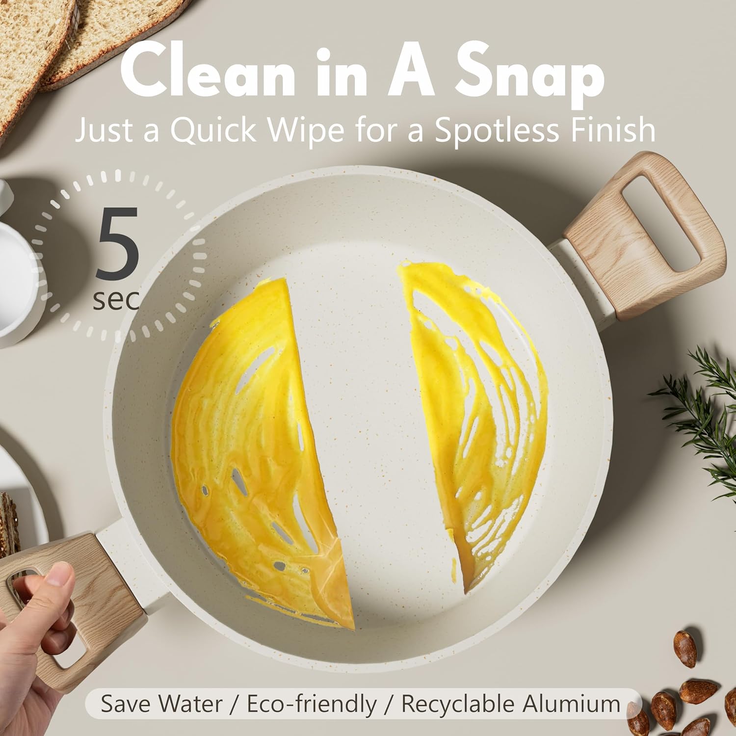 MAISON ARTS Nonstick Frying Pans Set 3 Piece. 12 Deep Saute Pan with Lid and 10 Fry Skillet. Induction Cookware Sets with Plasma Titanium Coating
