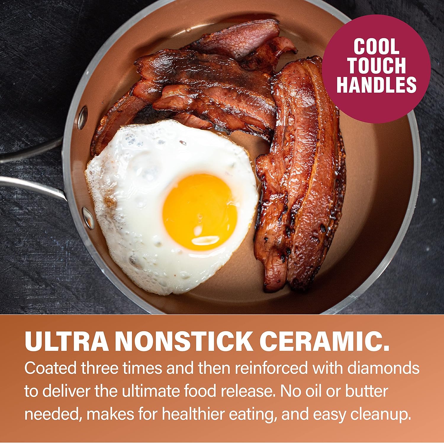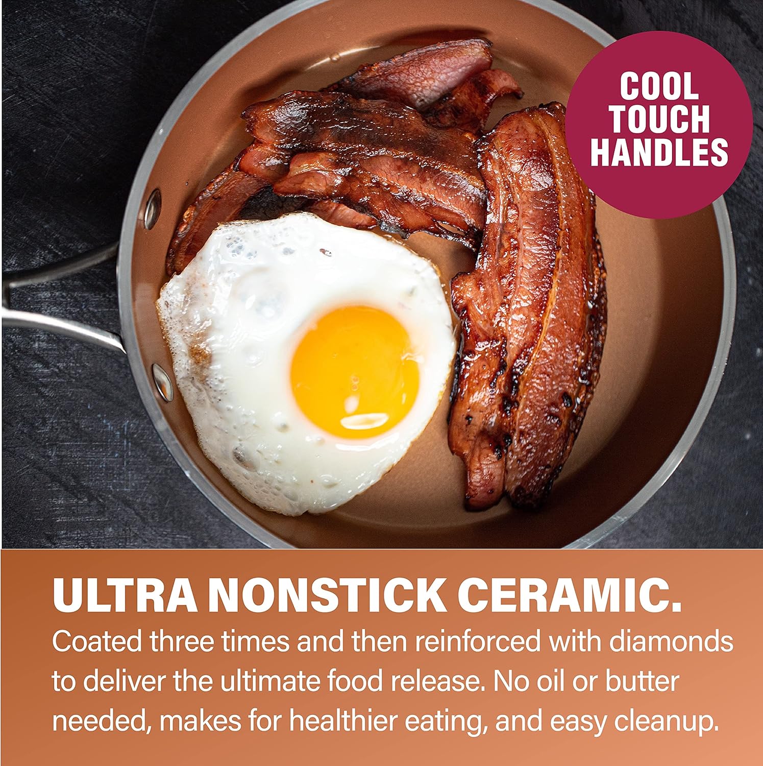 Gotham Steel Hammered Copper Collection – 15 Piece Premium Cookware & Bakeware Set & Hammered Collection Pots and Pans 10 Piece Premium Ceramic Cookware Set