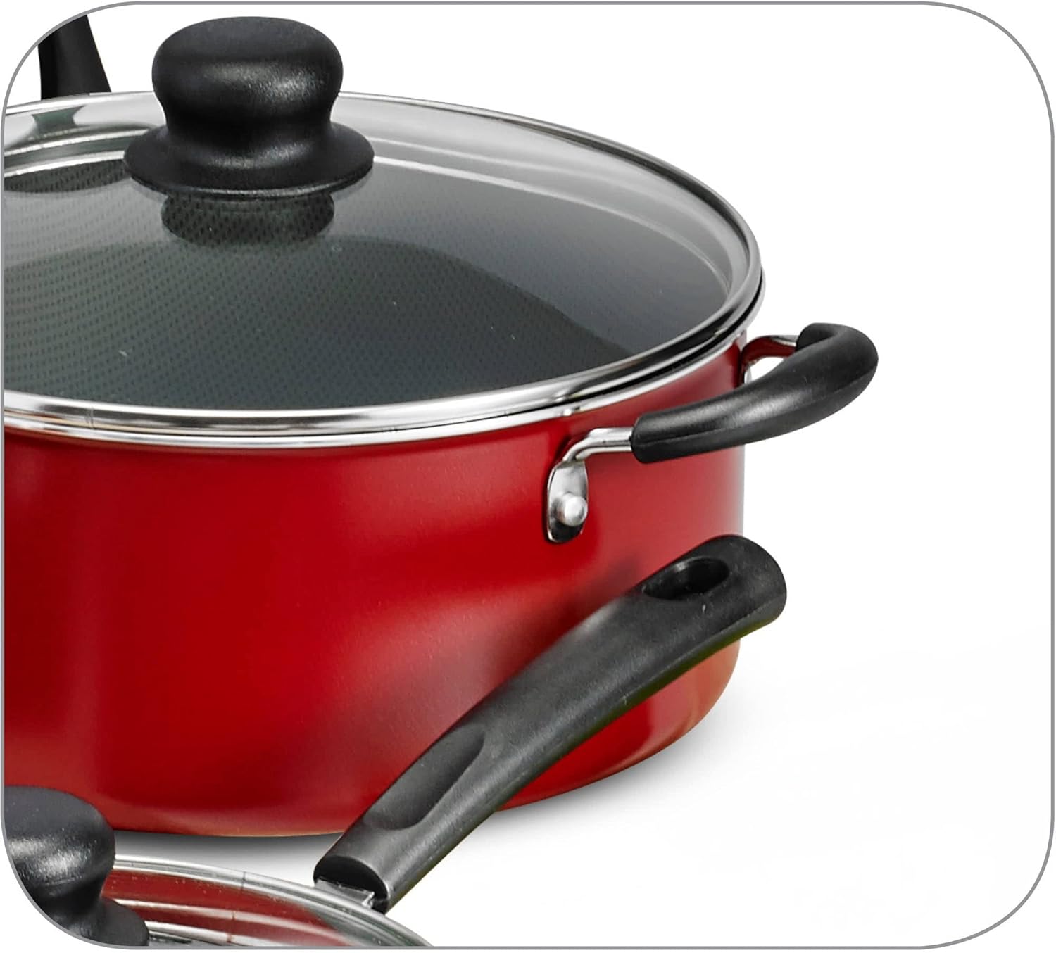 COOKER KING Stainless Steel Cookware Set. Pots and Pans Set Non Stick. Hybrid Ceramic Cookware. Frying Pans. Saucepans & Stock Pot with Glass Lid. Non-Toxic. Oven Safe. Induction Compatible