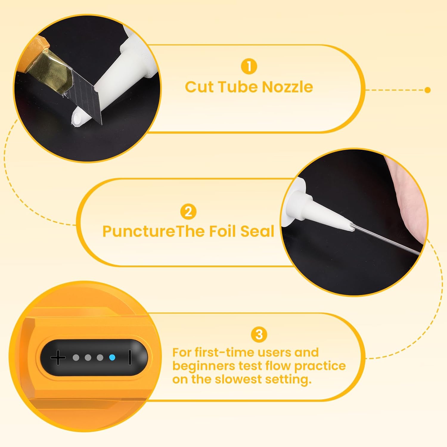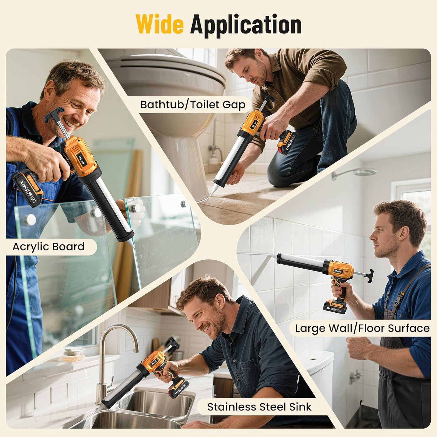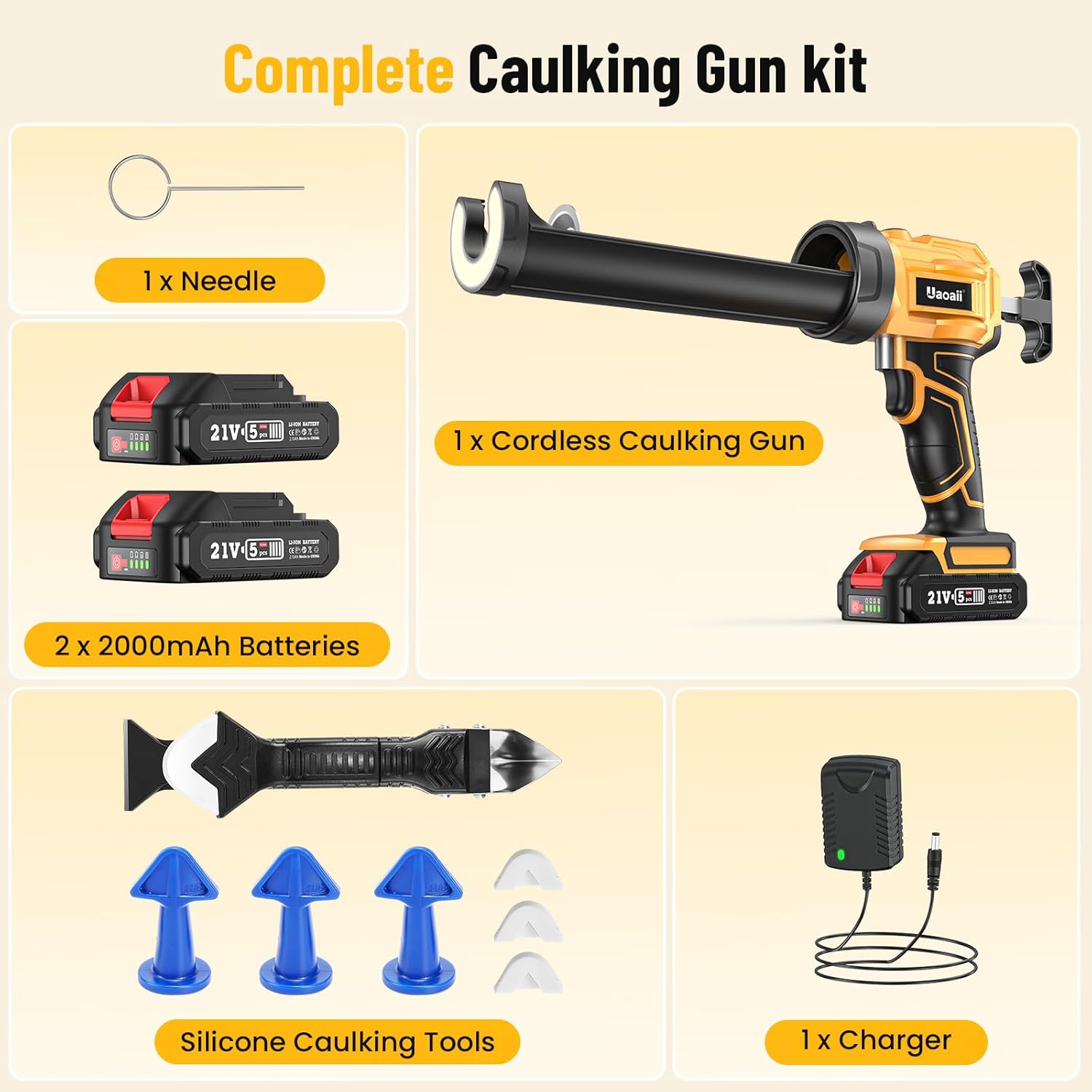 Electric Caulking Gun. Cordless Caulking Gun with 2x 2000mAh Batteries. 9Pcs Silicone Caulking Tools. 4 Adjustable Speeds. LED Light. 10OZ Battery Silicone Gun for Filling. Sealing (Yellow)