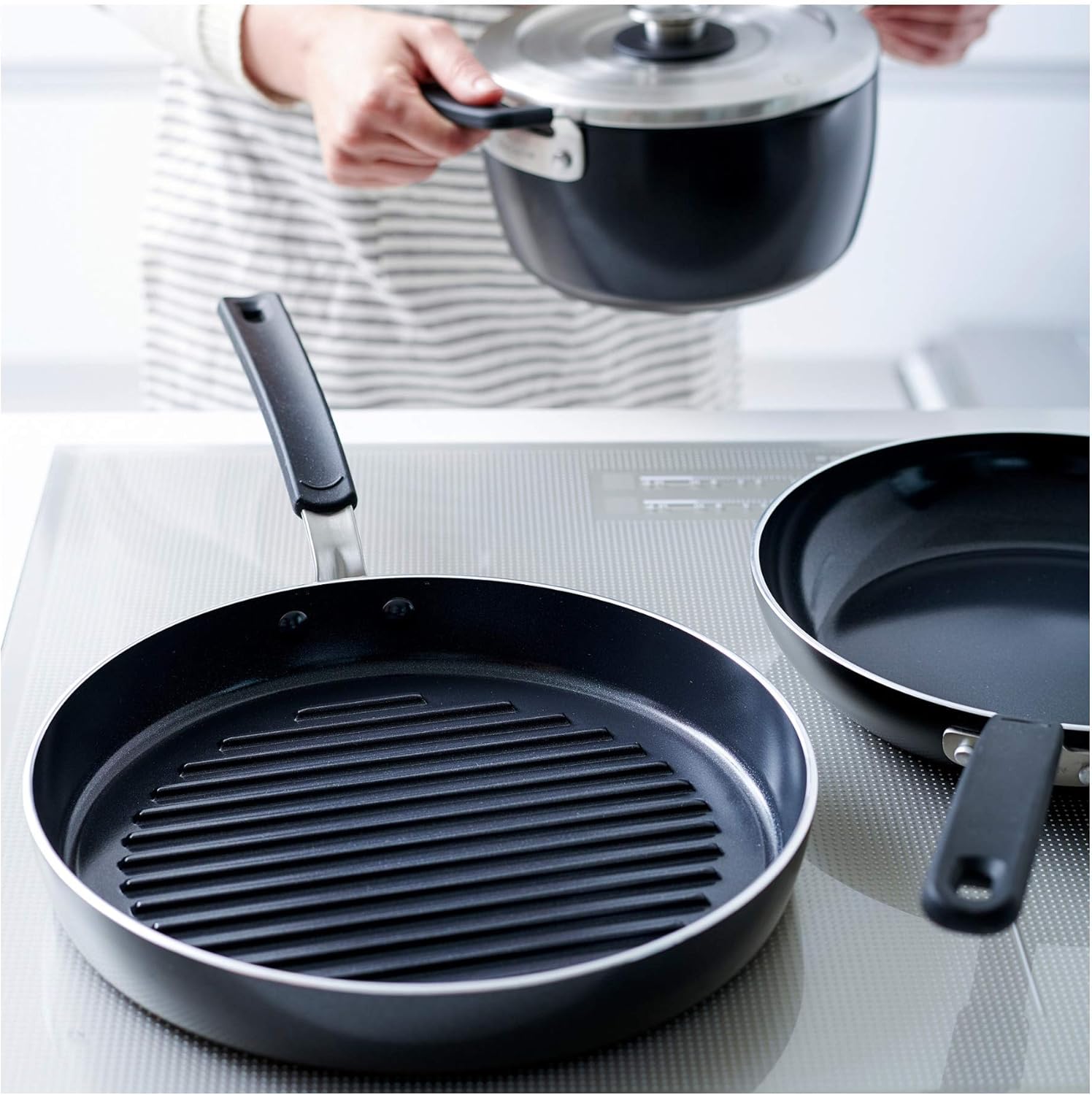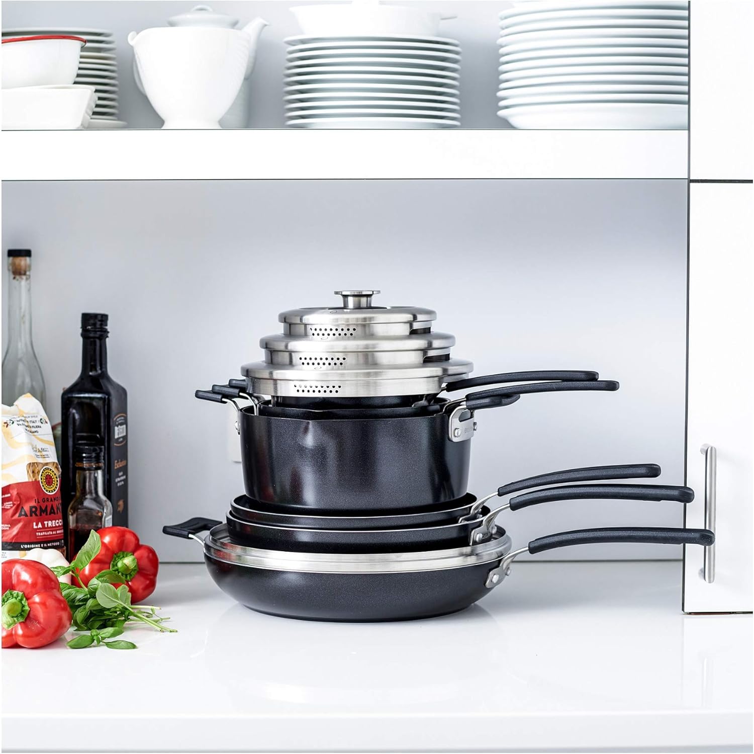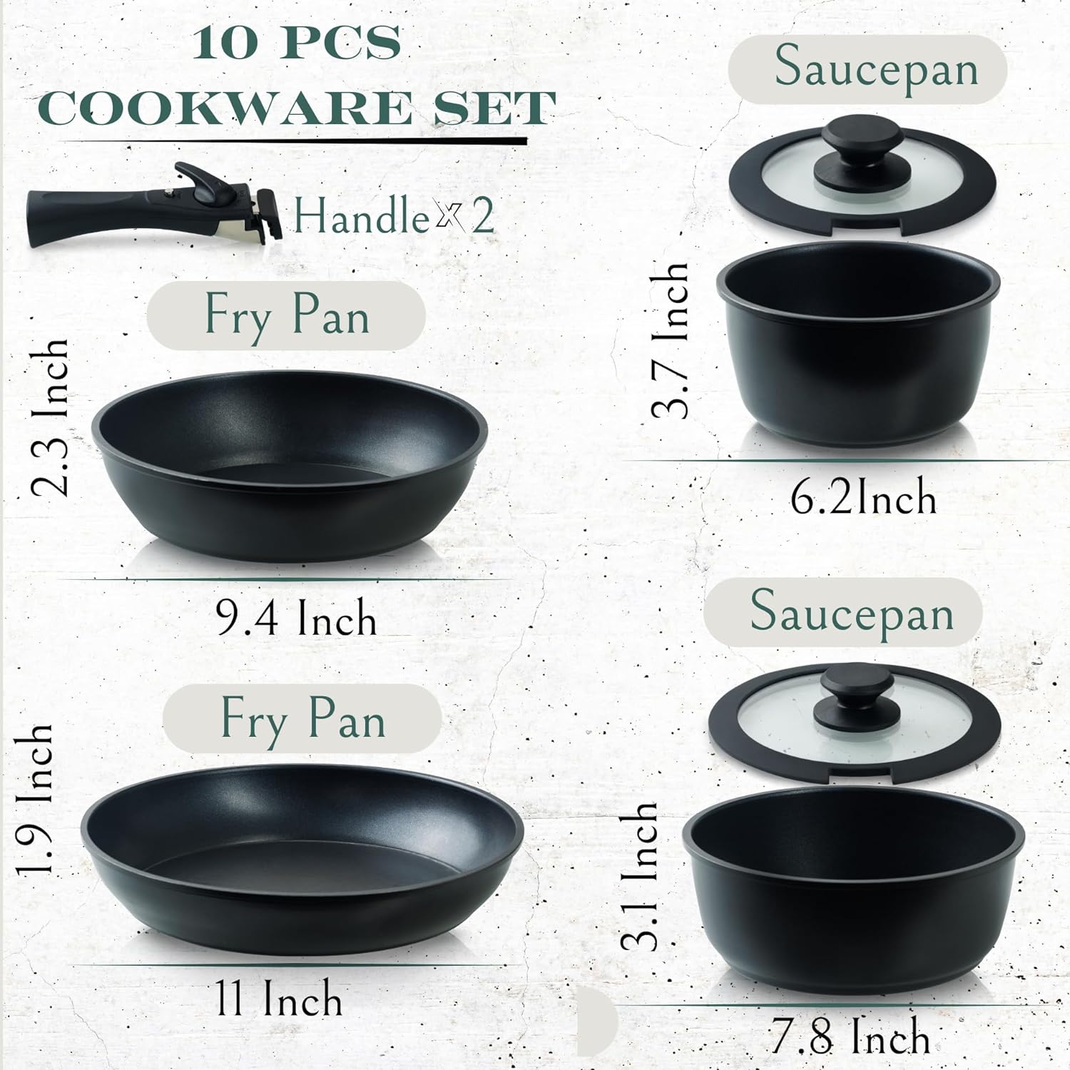Moss & Stone 10pcs Black Pots and Pans Set Non Stick. Cookware Sets Detachable Handle. RV Kitchen Set Removable Handle. Oven Safe. Induction Ready. Stackable Non-stick Set. Camping Cookware Set