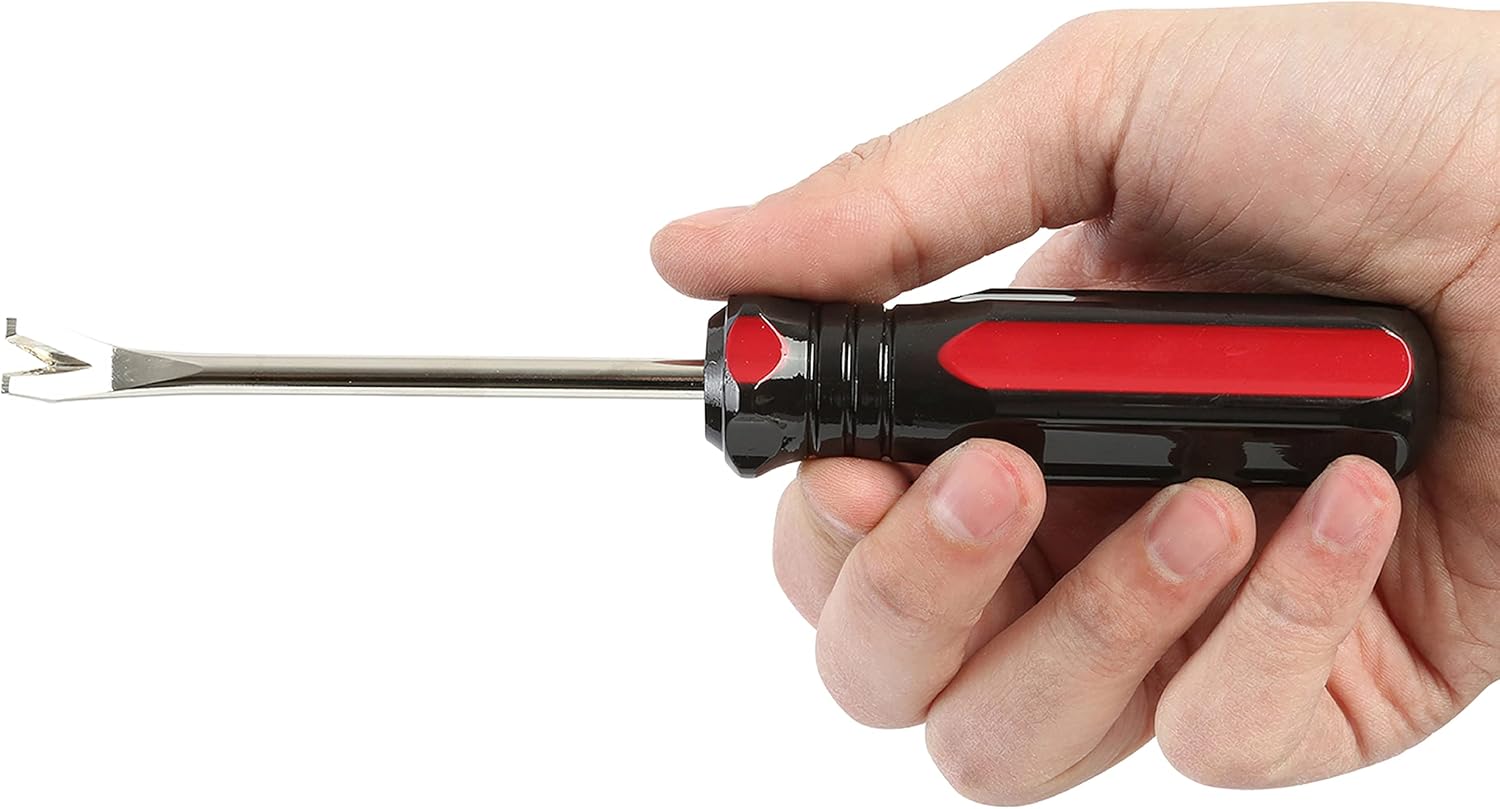 GreatNeck TL4C Heavy-Duty Tack Lifter. Chrome Vanadium Steel Nail Remover Tool With Ergonomic Acetate Handle. Ideal for Carpet Tacks. Upholstery. Rivets. Nails. And Pins. Color May Vary