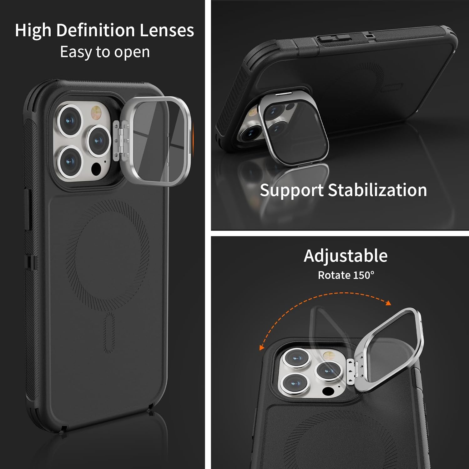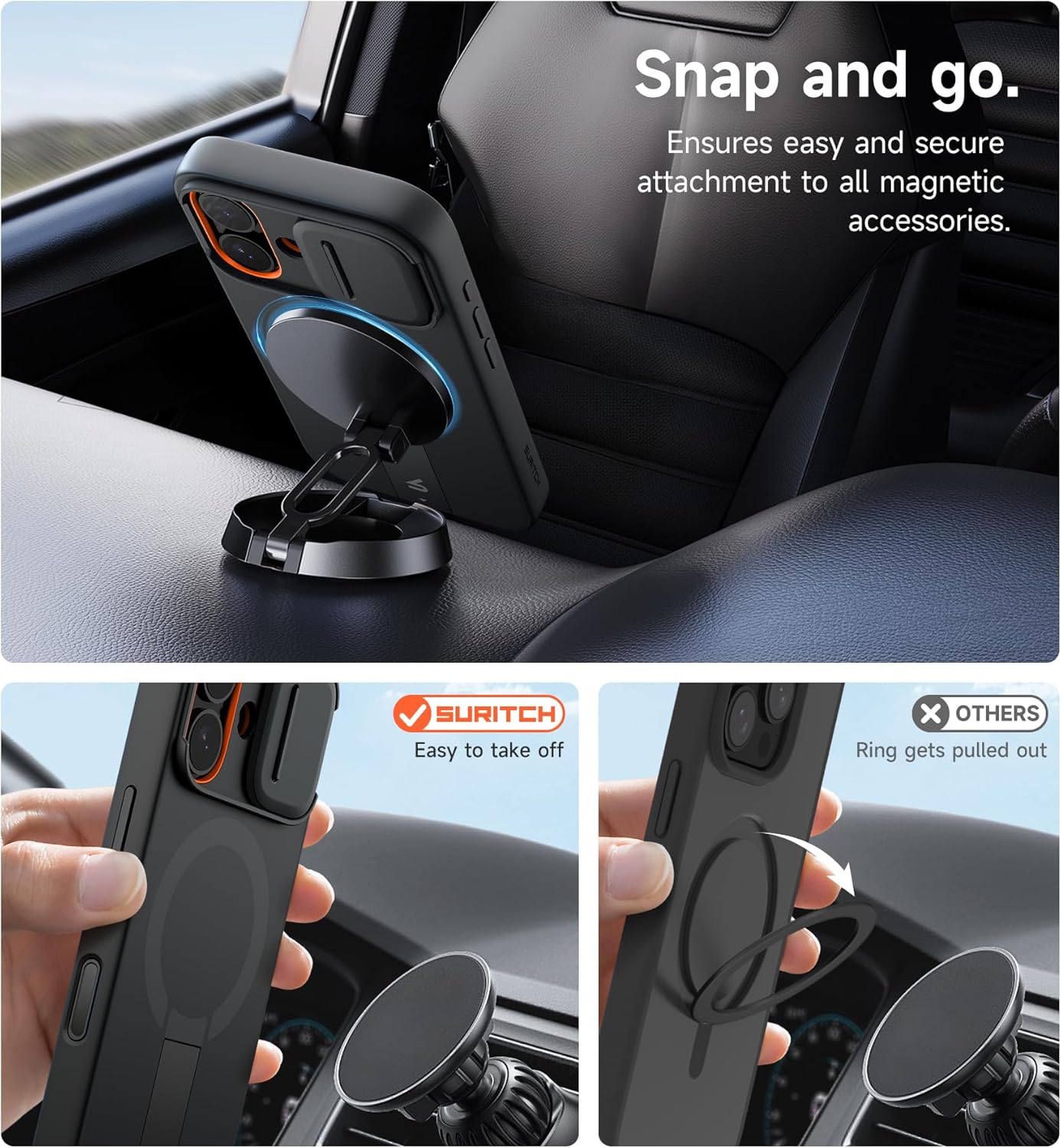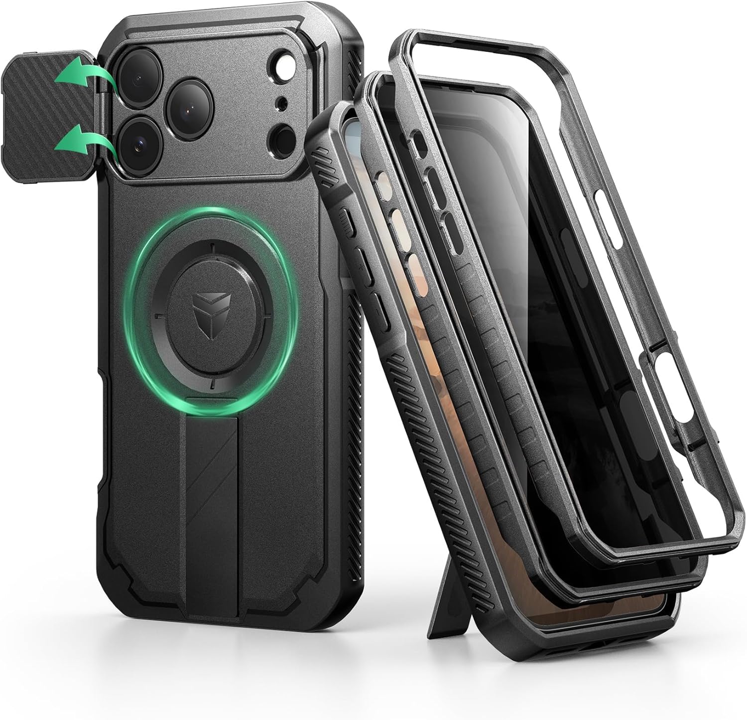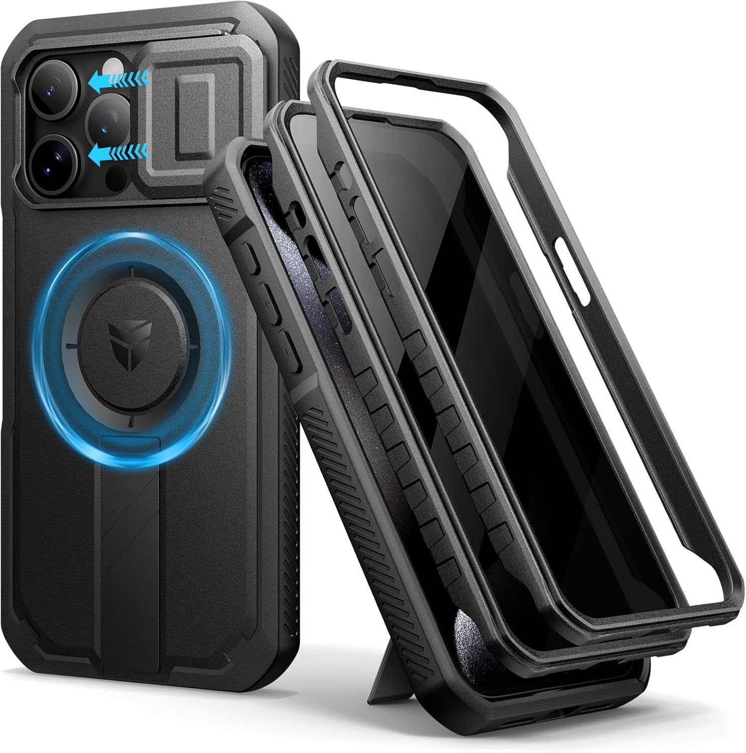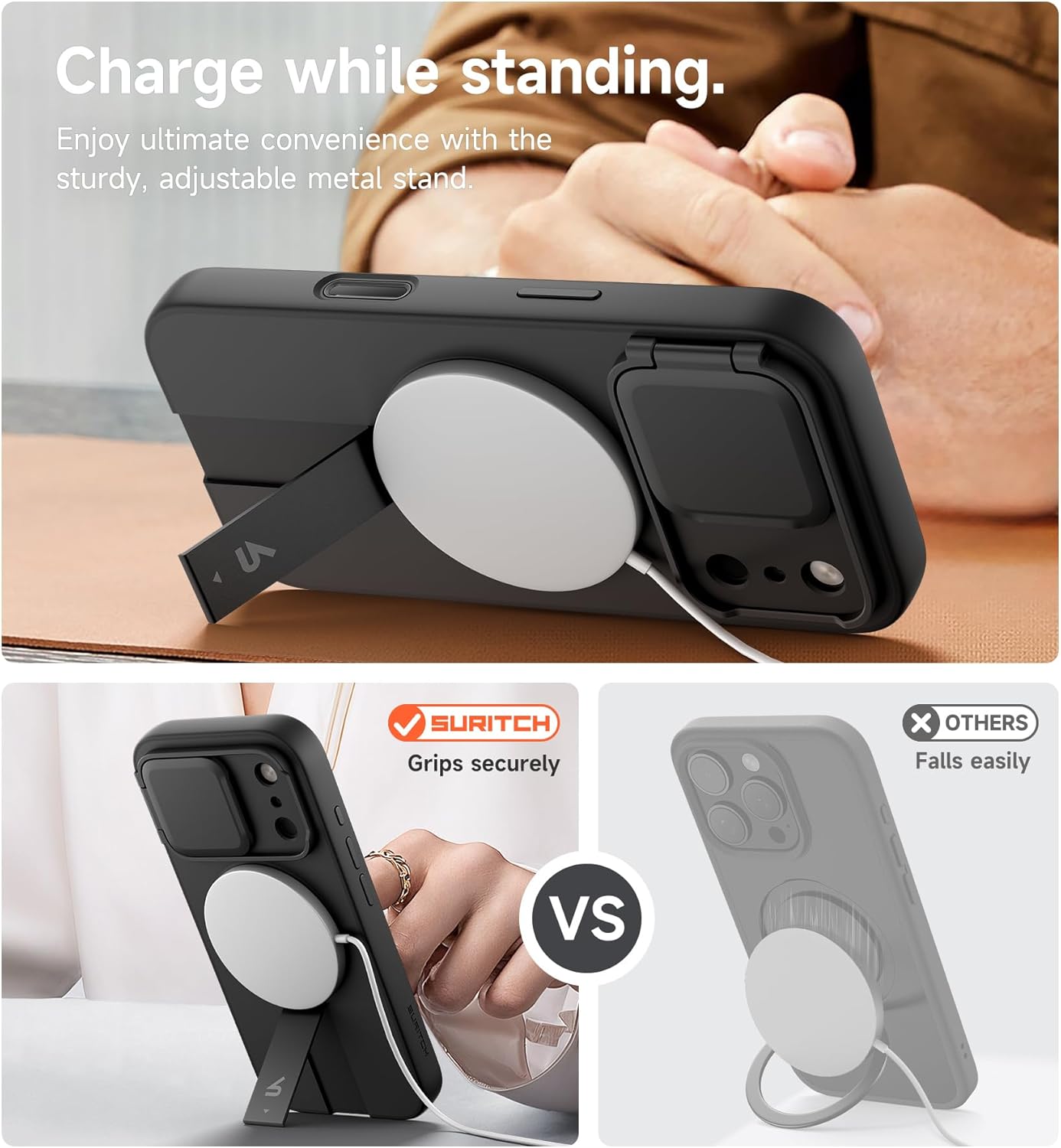 SURITCH 适用于 iPhone 16 Pro 手机壳,带滑动相机盖和可调节支架,兼容 MagSafe,防震防撞保护套,适用于 iPhone 16 Pro 6.3 英寸,黑色