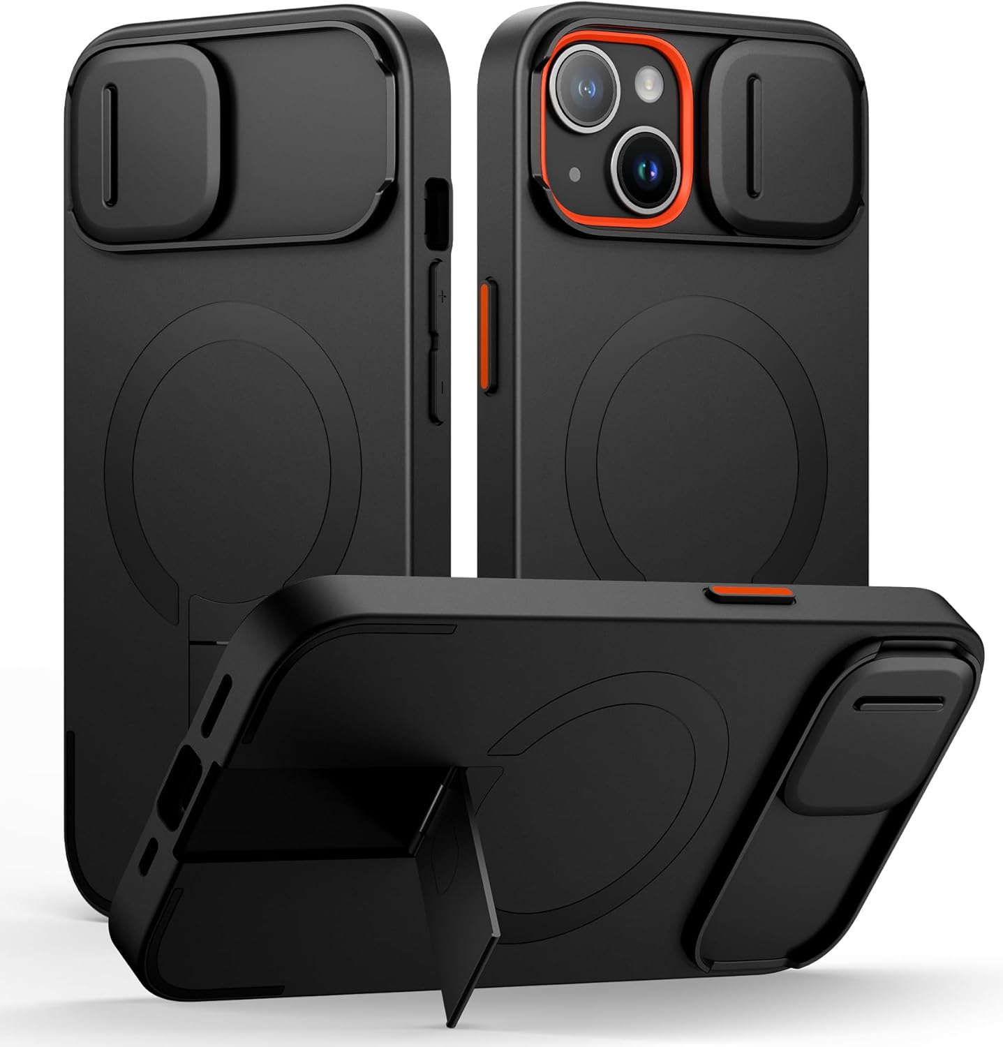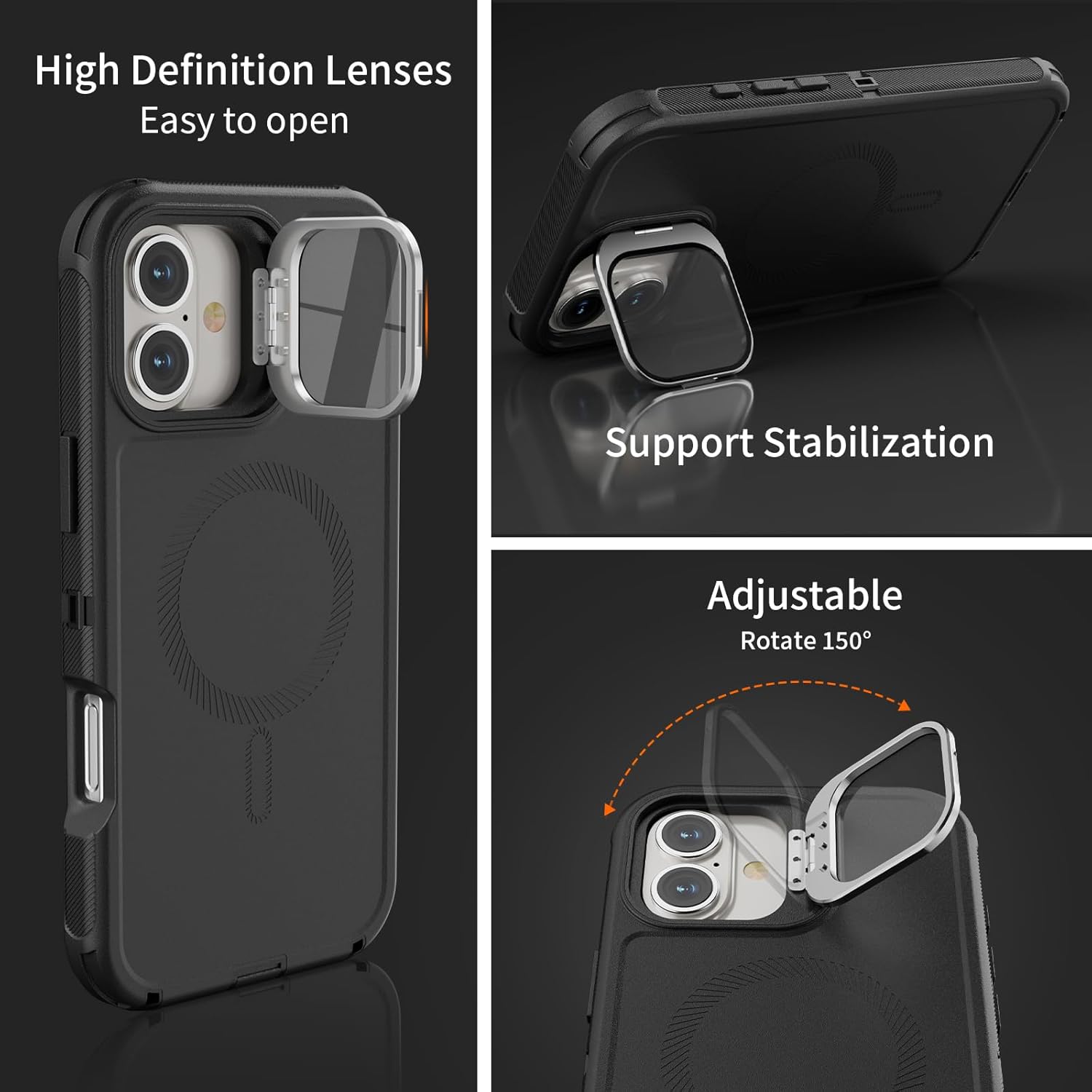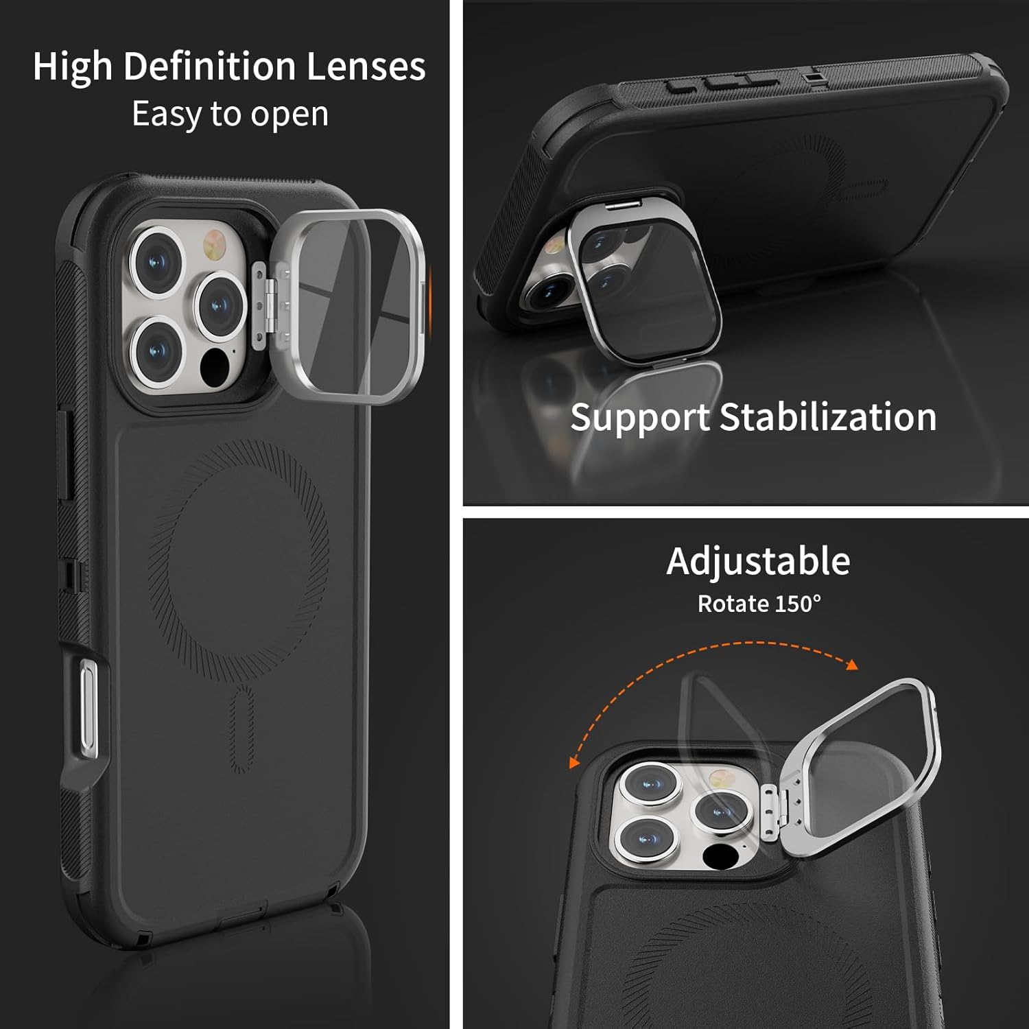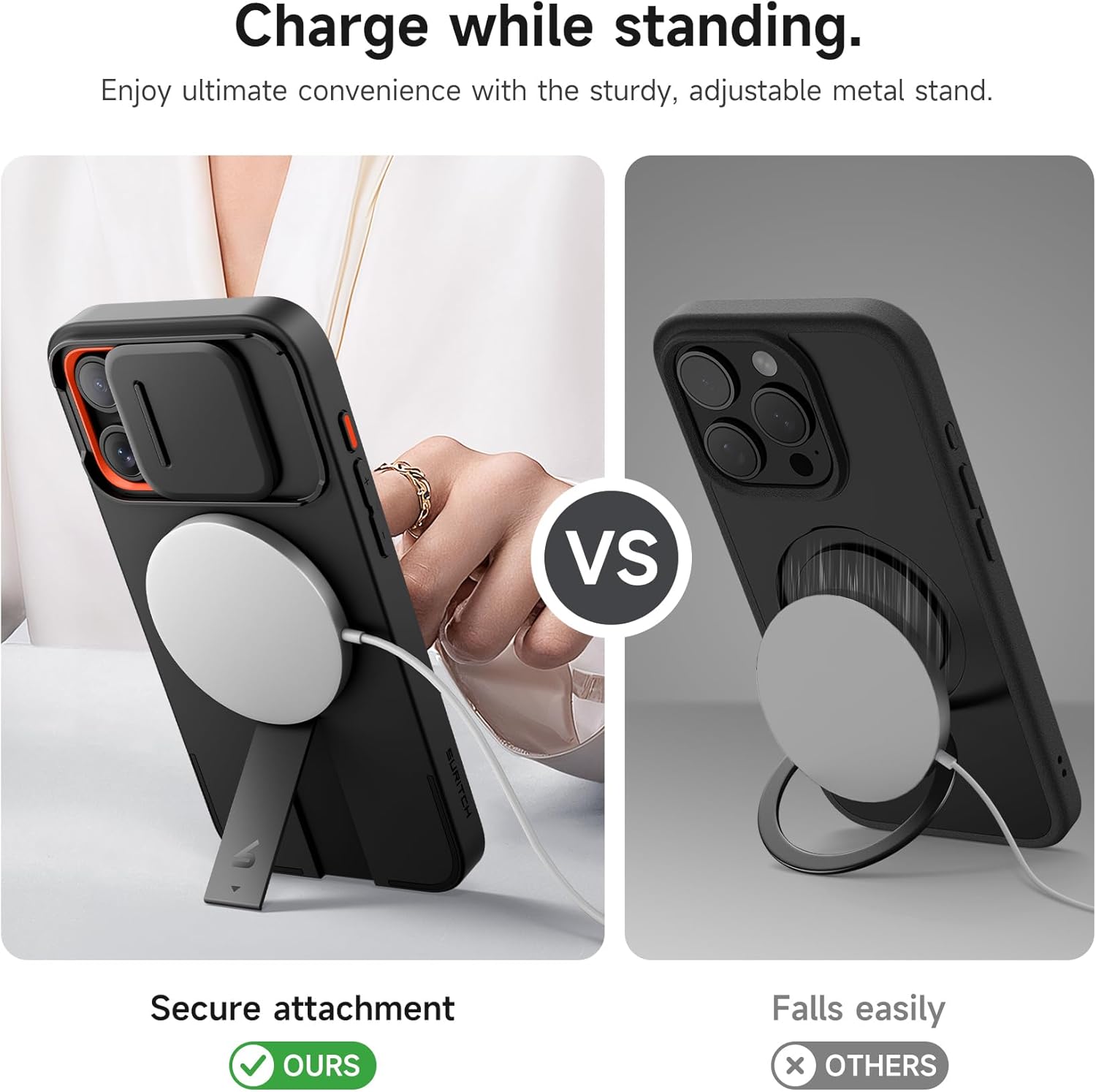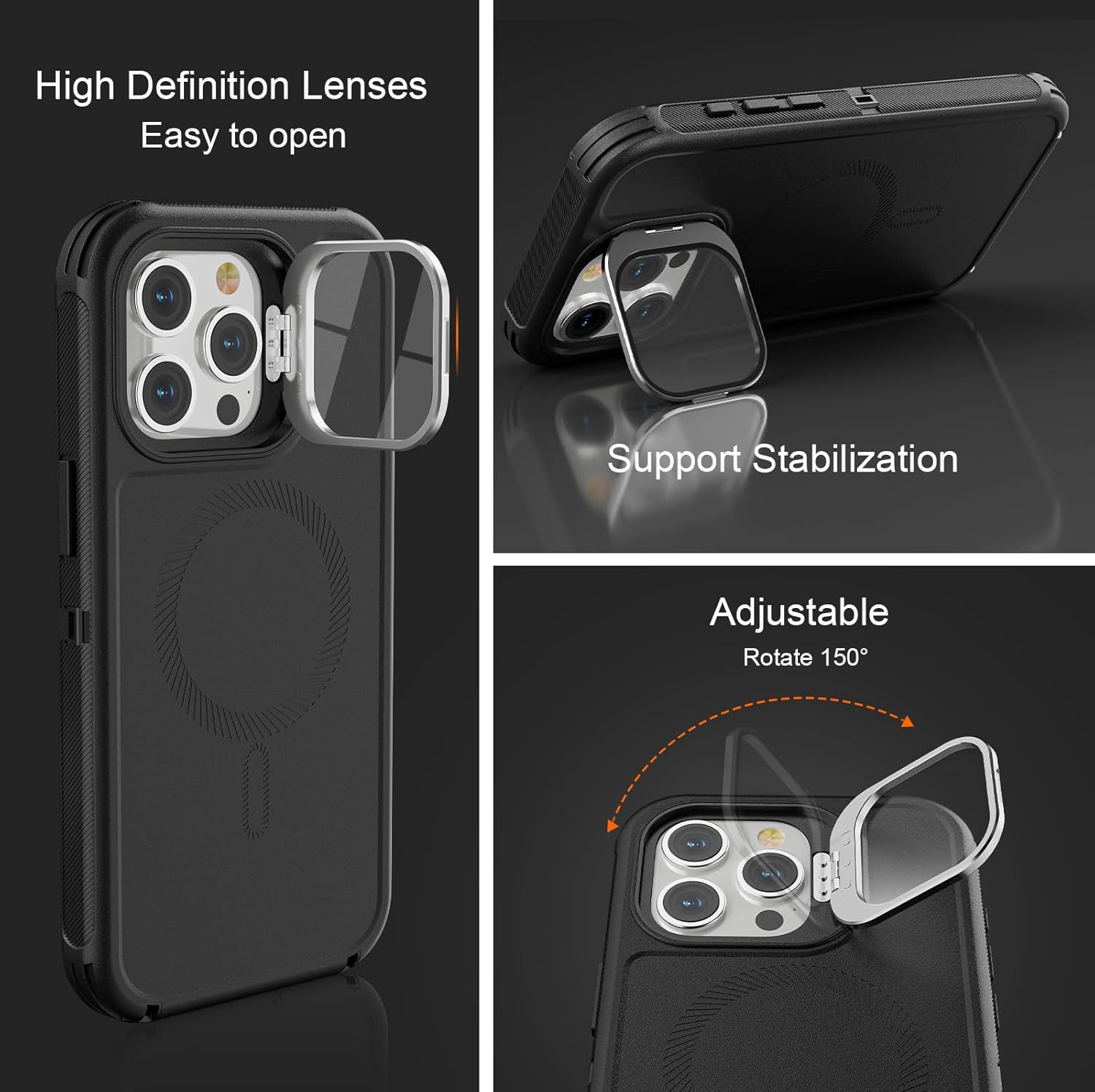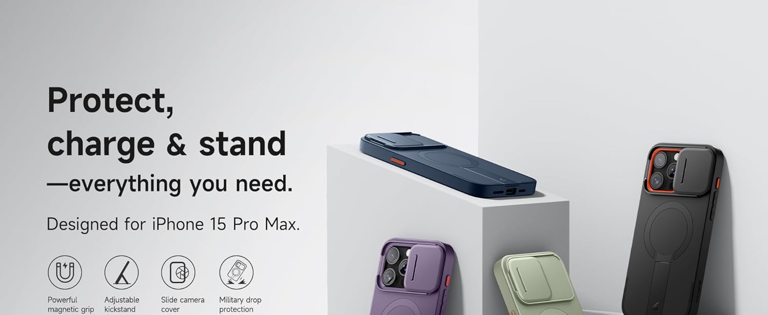 SURITCH 适用于 iPhone 16 Pro 手机壳,带滑动相机盖和可调节支架,兼容 MagSafe,防震防撞保护套,适用于 iPhone 16 Pro 6.3 英寸,黑色