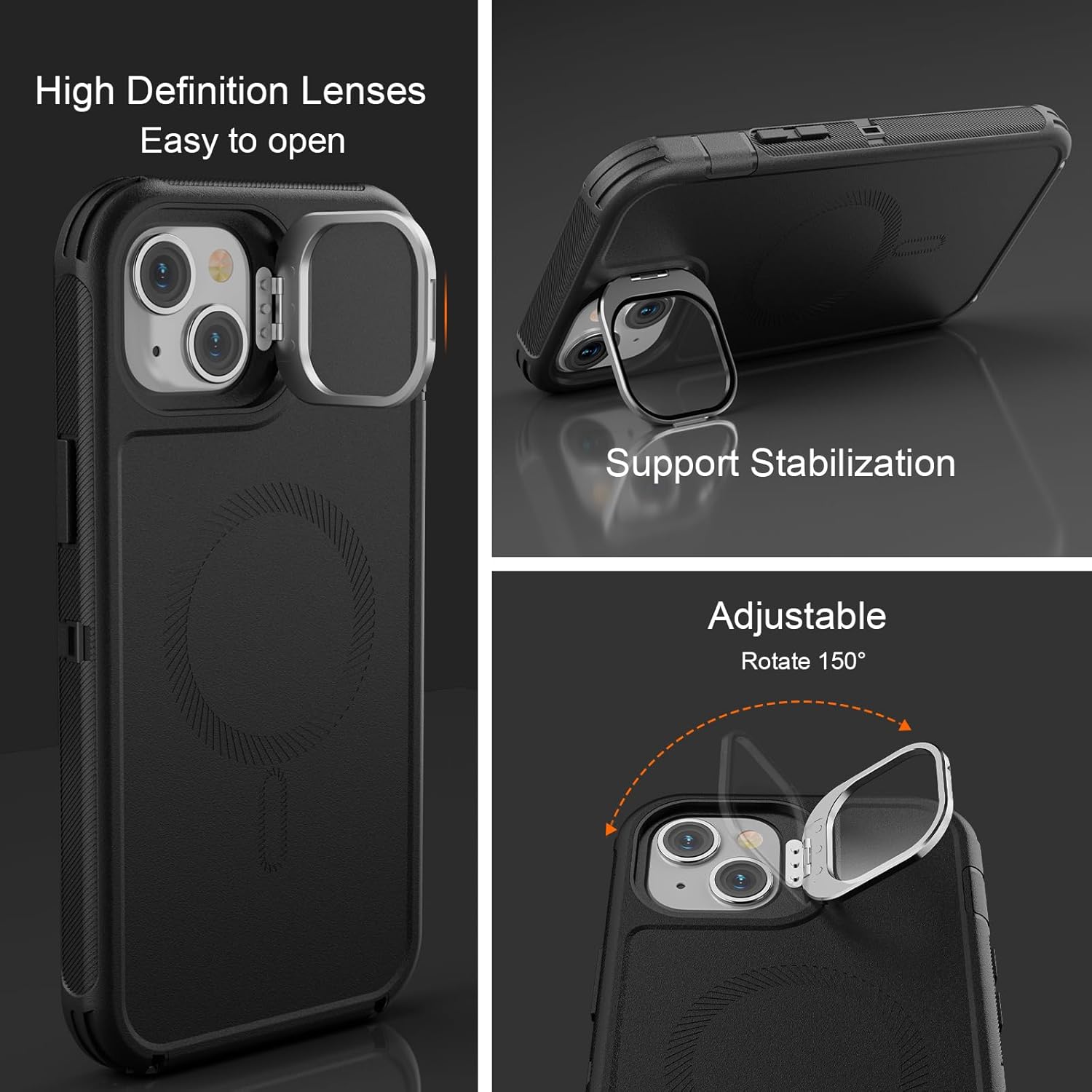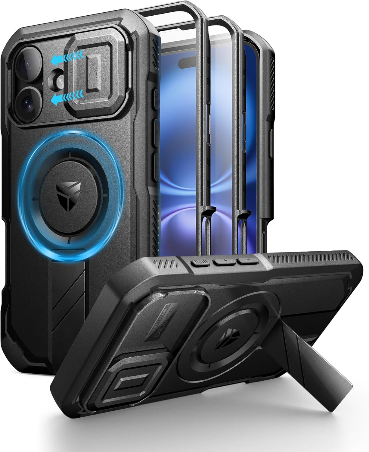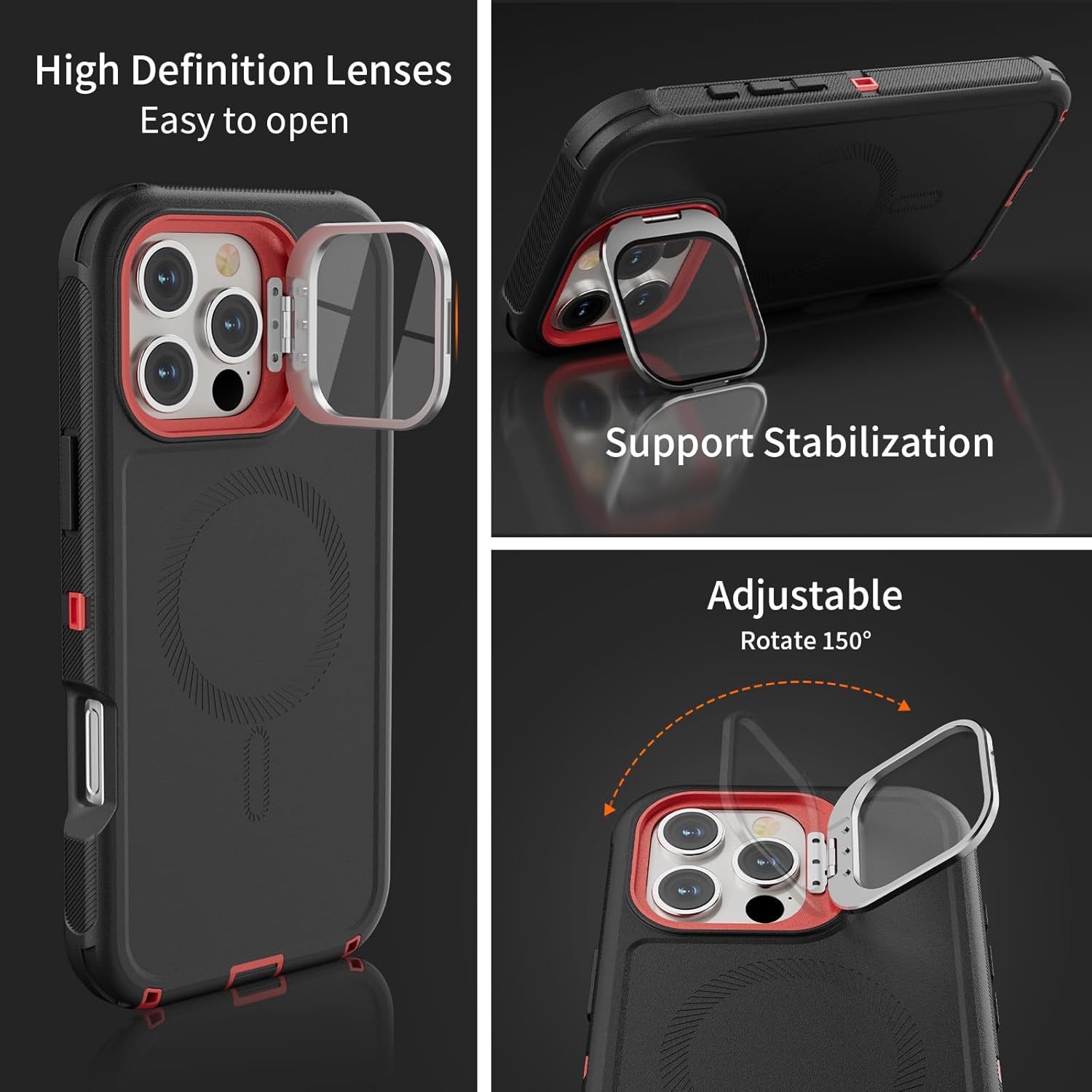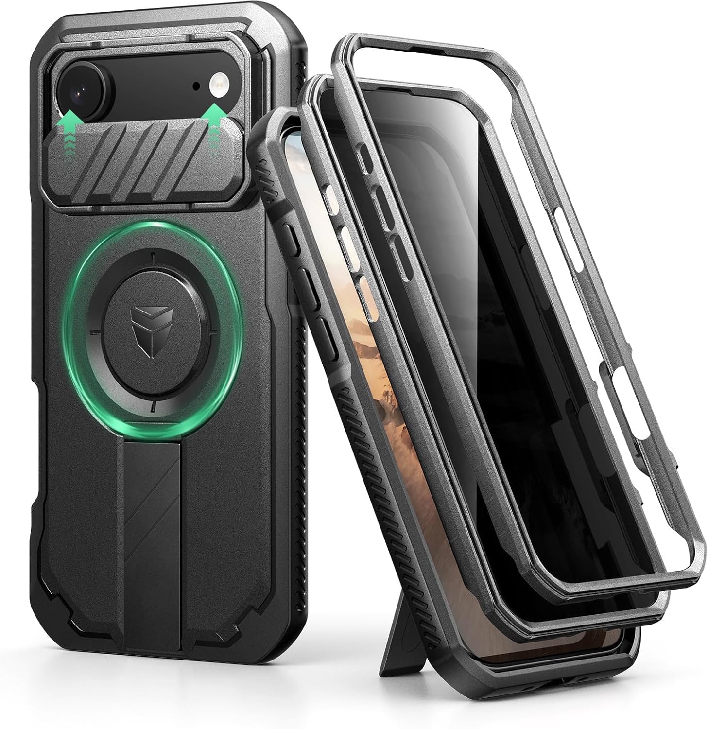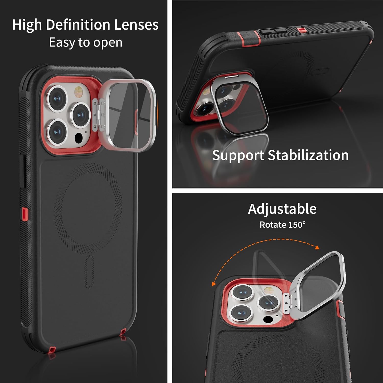 SURITCH 适用于 iPhone 16 Pro 手机壳,带滑动相机盖和可调节支架,兼容 MagSafe,防震防撞保护套,适用于 iPhone 16 Pro 6.3 英寸,黑色