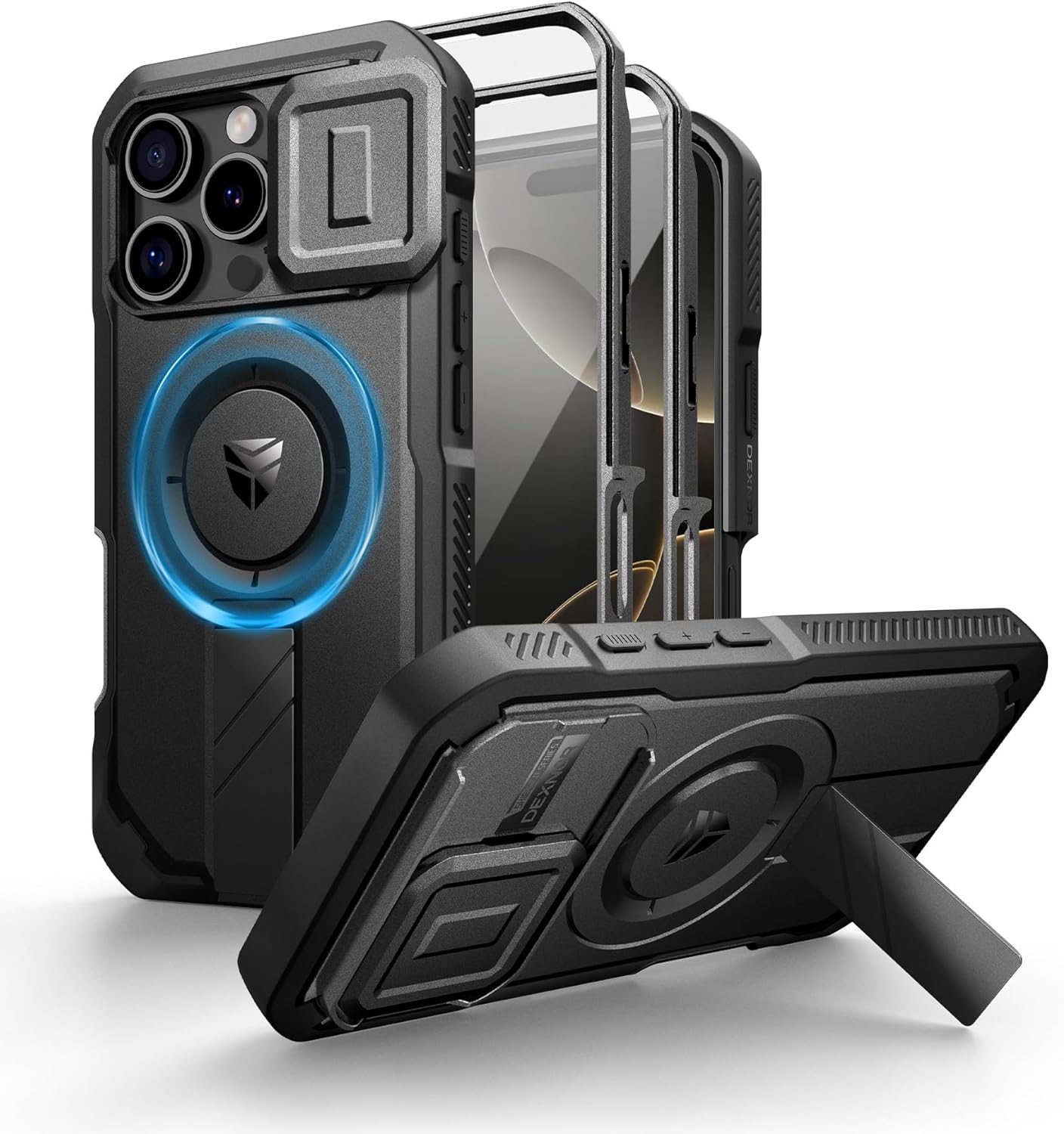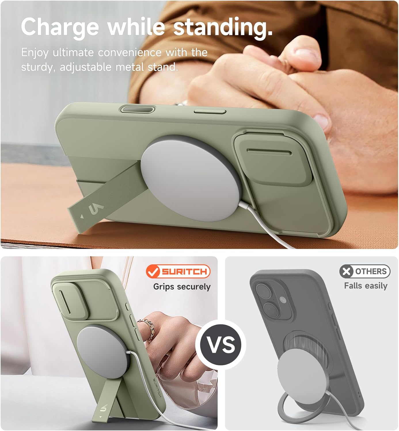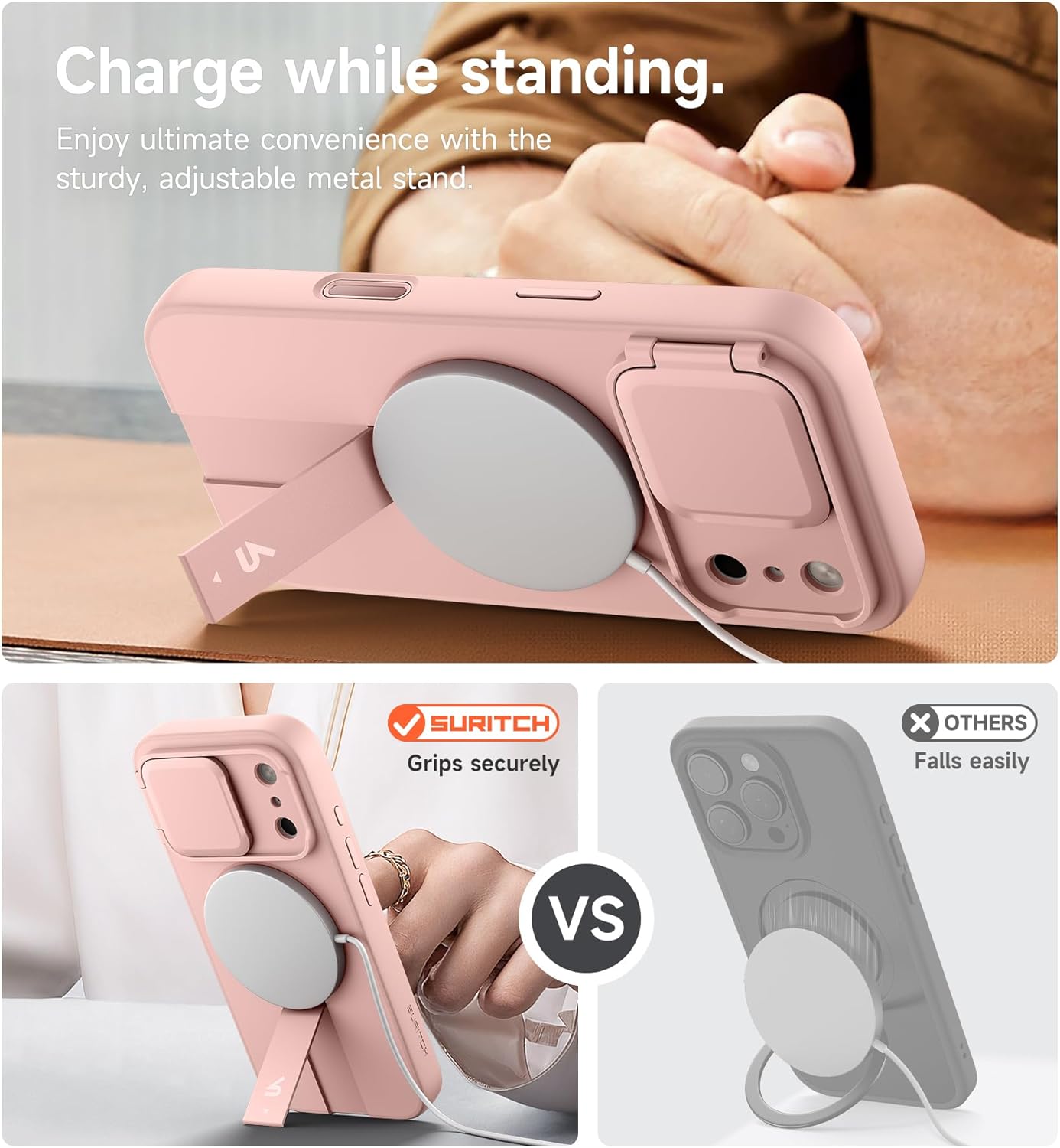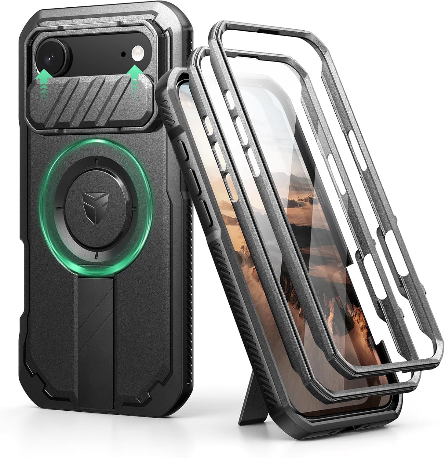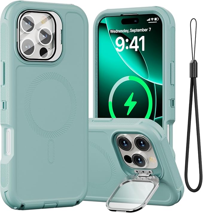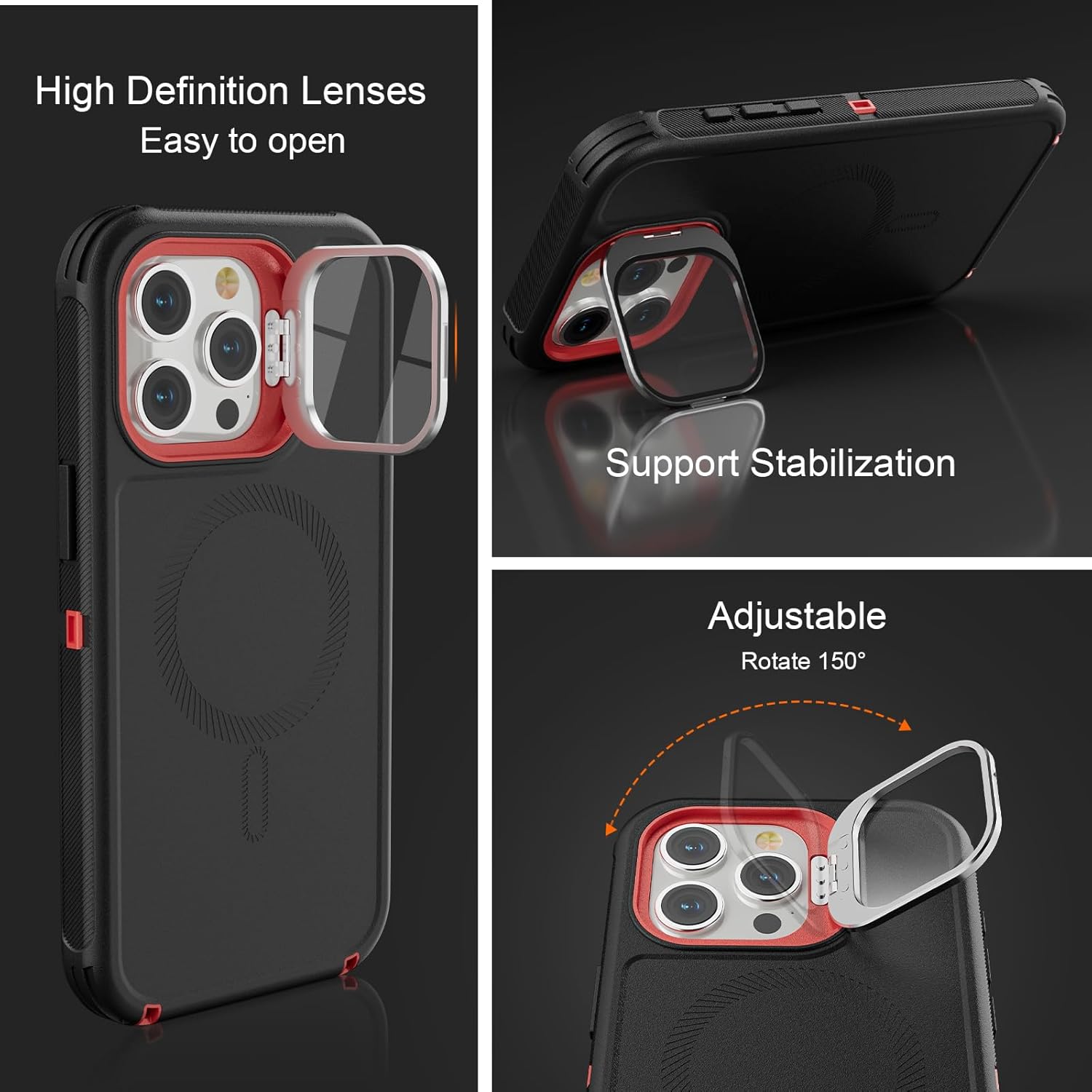 SURITCH 适用于 iPhone 16 Pro 手机壳,带滑动相机盖和可调节支架,兼容 MagSafe,防震防撞保护套,适用于 iPhone 16 Pro 6.3 英寸,黑色