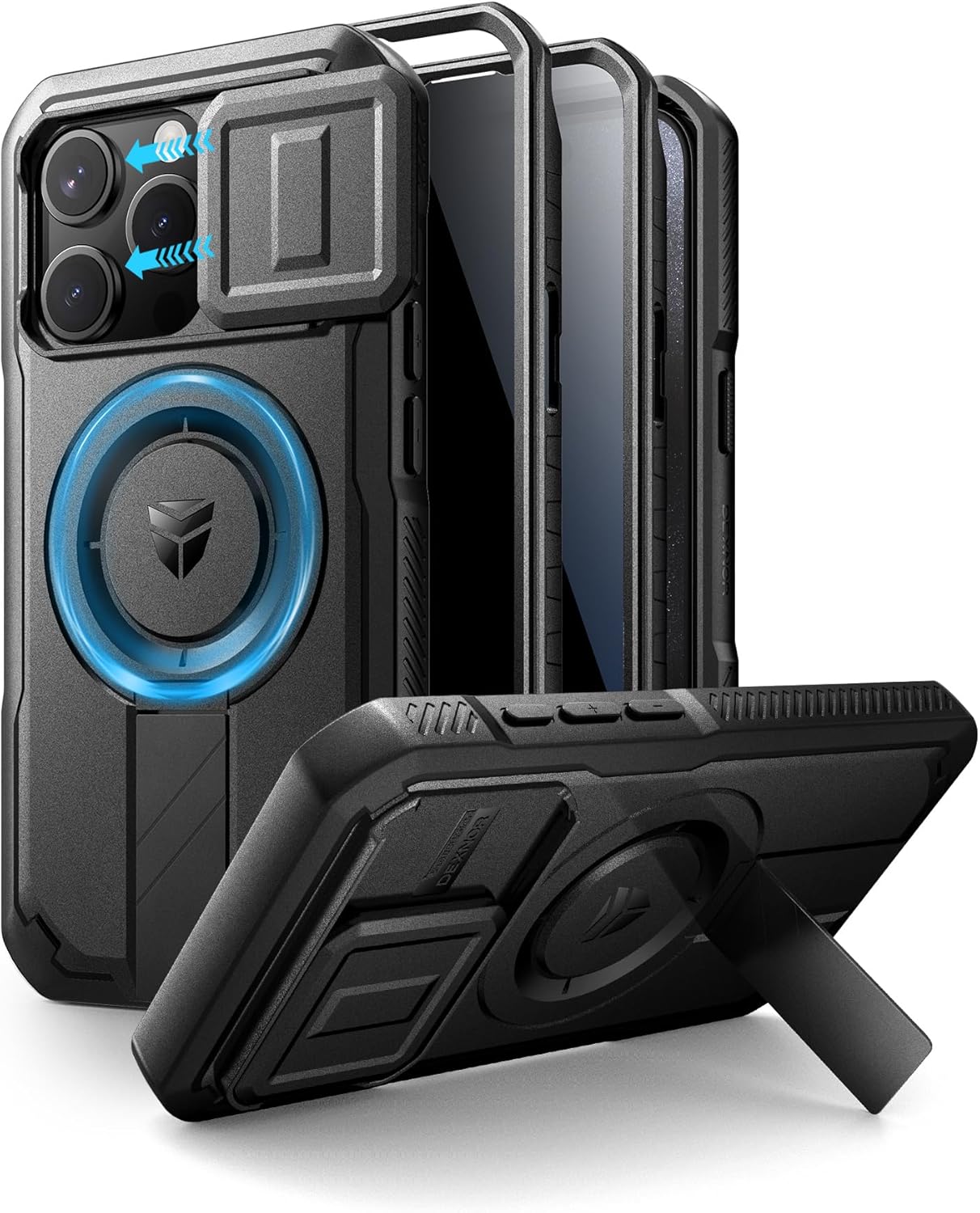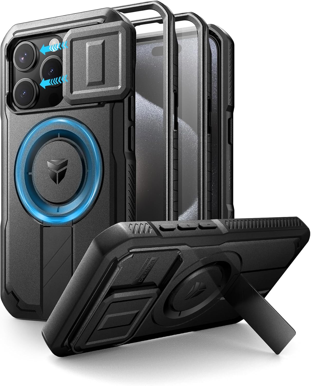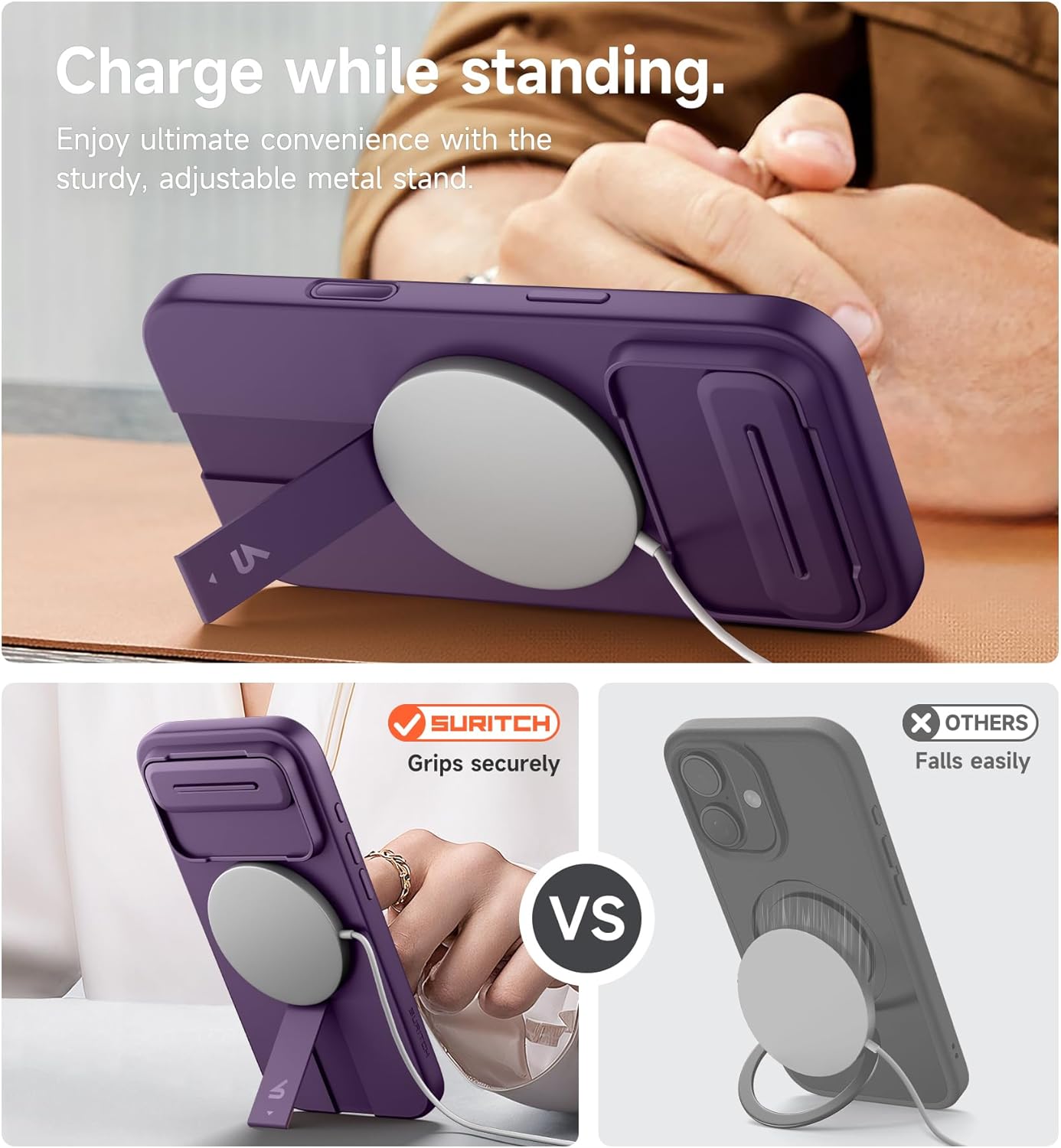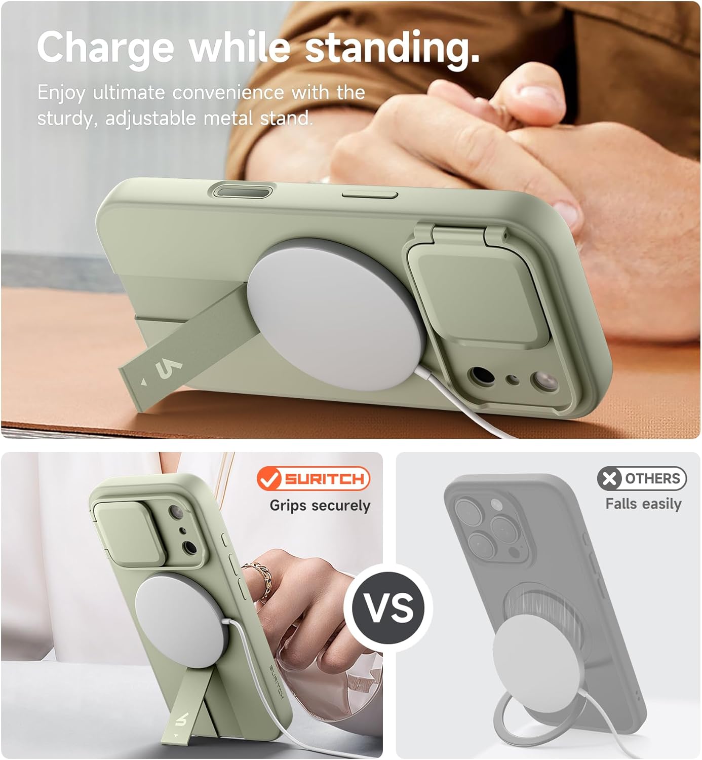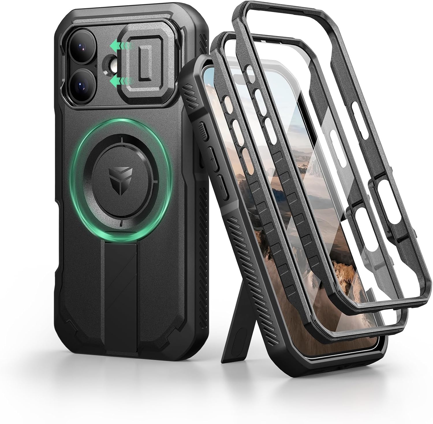SURITCH 适用于 iPhone 16 Pro 手机壳,带滑动相机盖和可调节支架,兼容 MagSafe,防震防撞保护套,适用于 iPhone 16 Pro 6.3 英寸,黑色