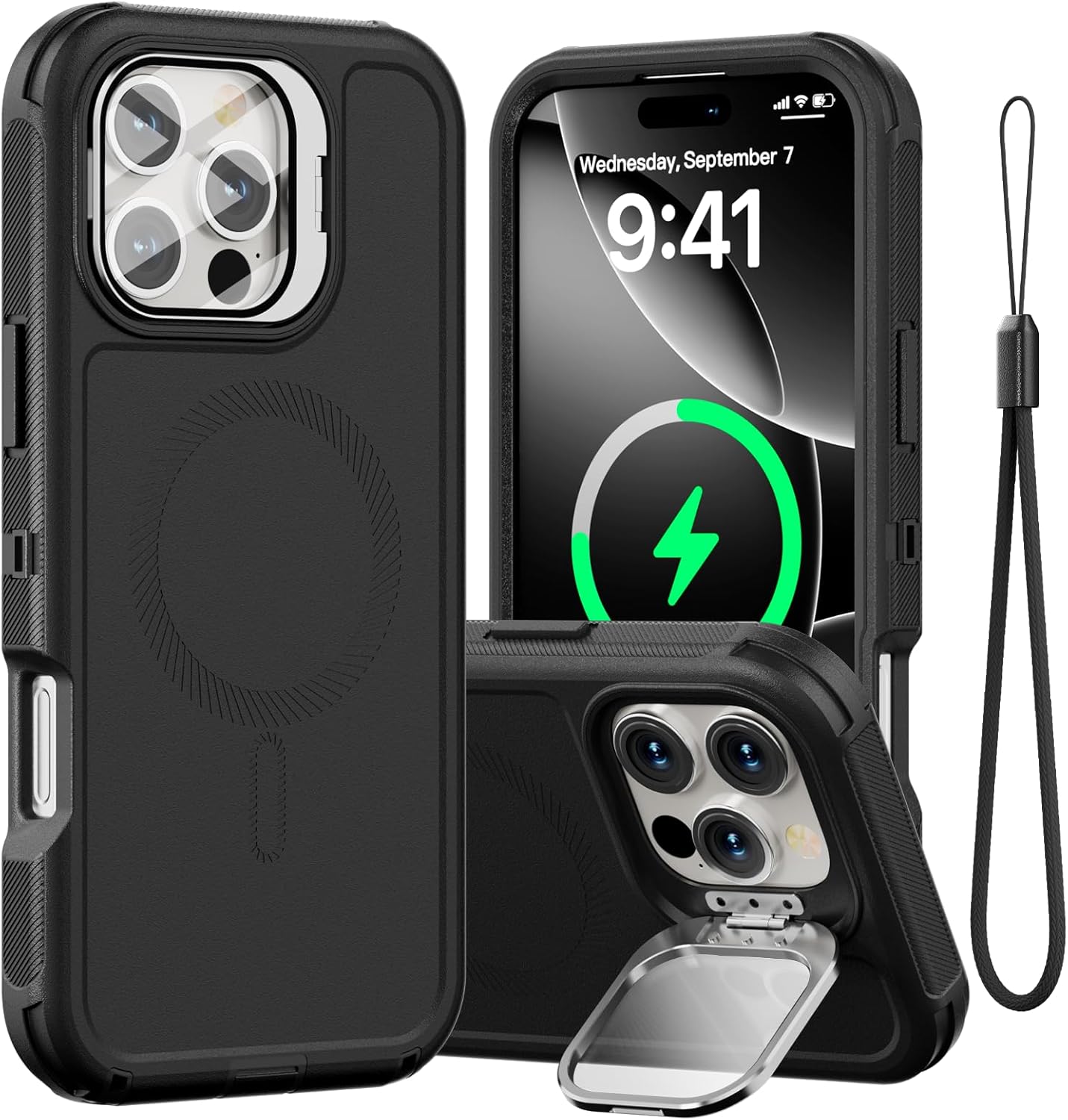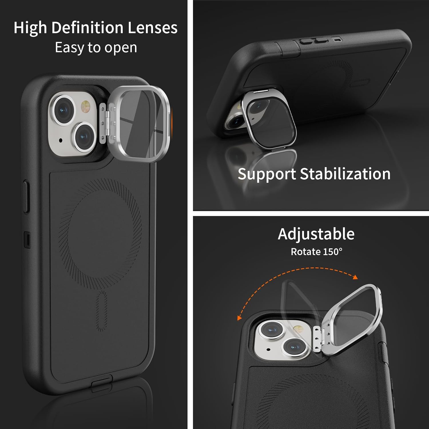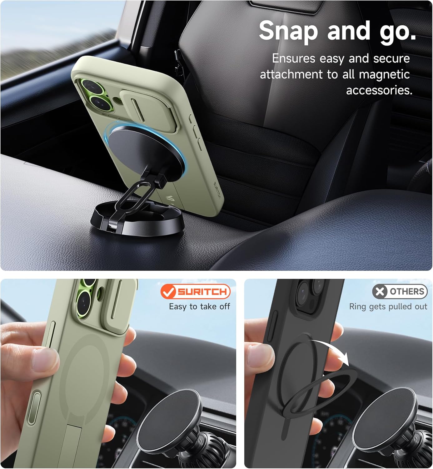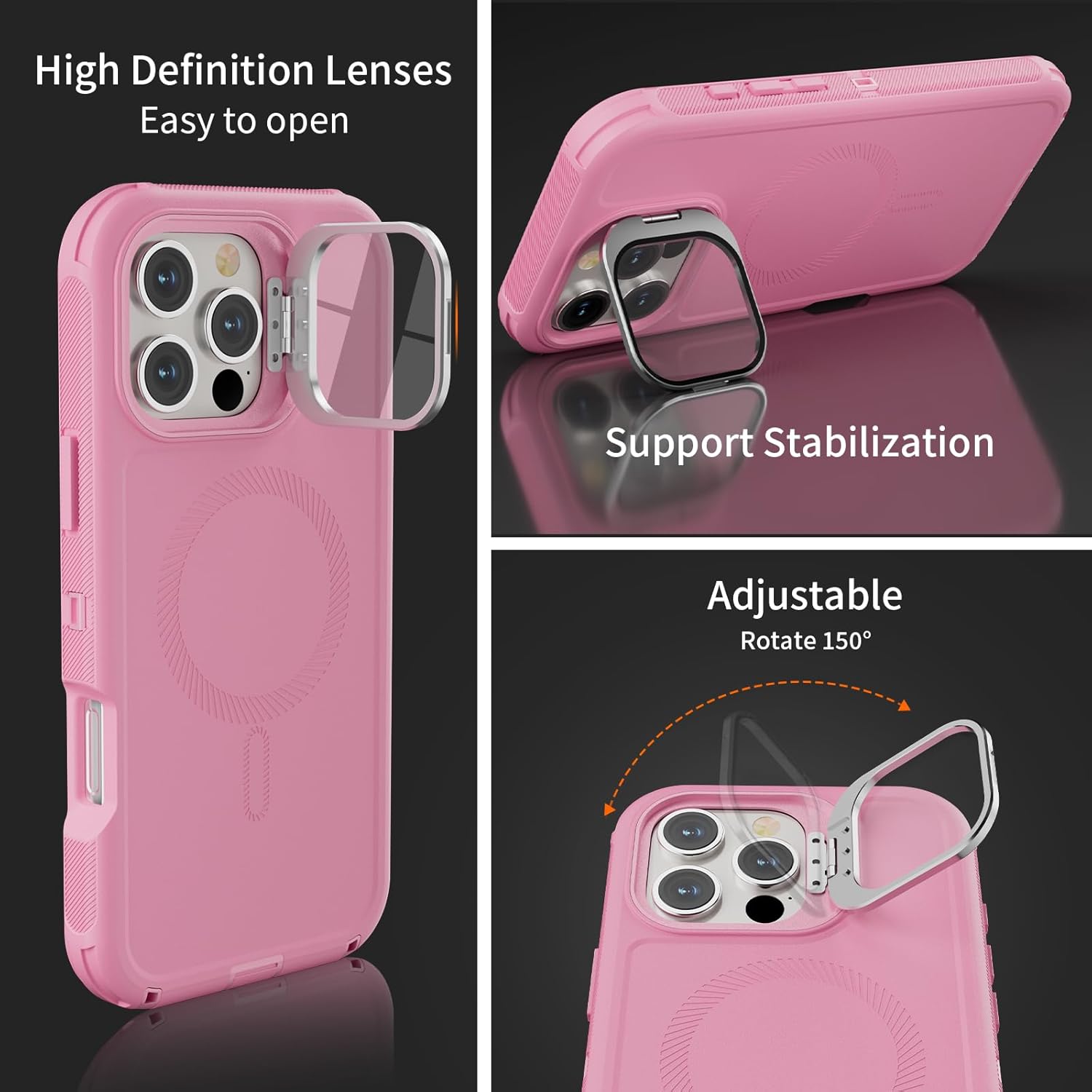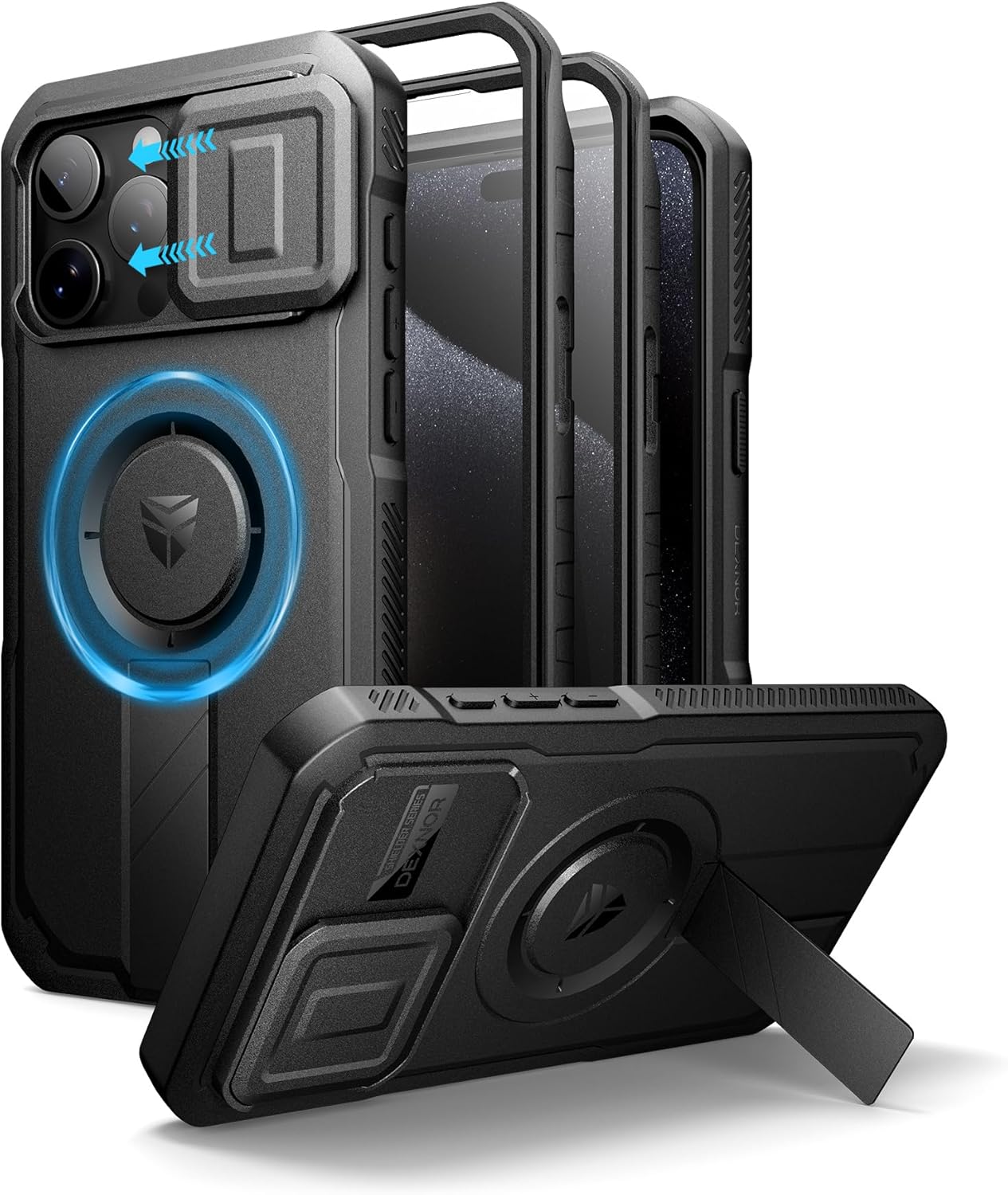SURITCH 适用于 iPhone 16 Pro 手机壳,带滑动相机盖和可调节支架,兼容 MagSafe,防震防撞保护套,适用于 iPhone 16 Pro 6.3 英寸,黑色