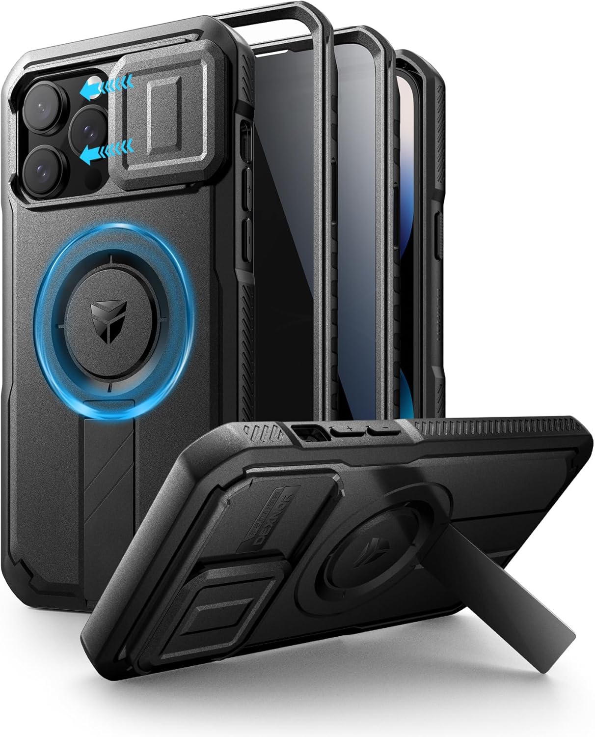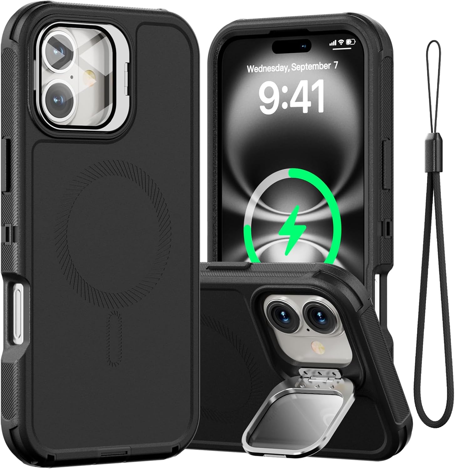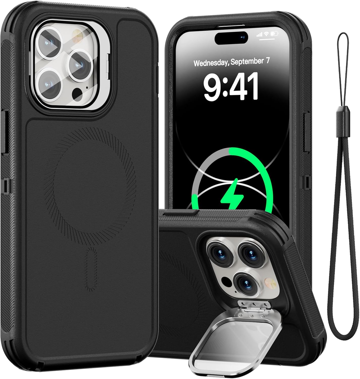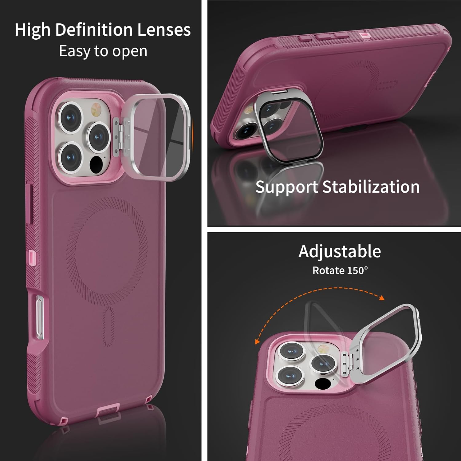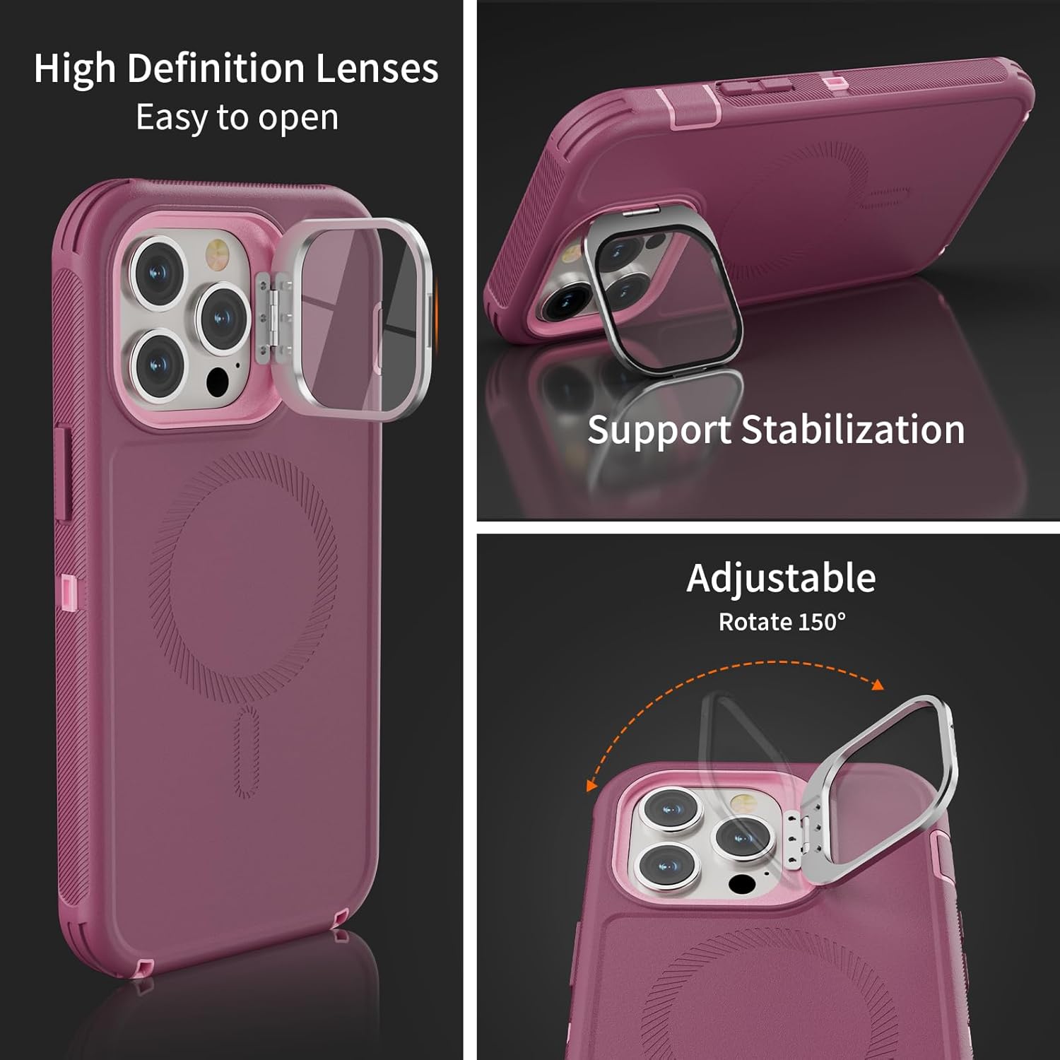 SURITCH 适用于 iPhone 16 Pro 手机壳,带滑动相机盖和可调节支架,兼容 MagSafe,防震防撞保护套,适用于 iPhone 16 Pro 6.3 英寸,黑色