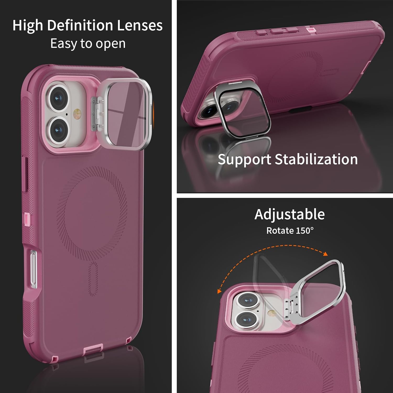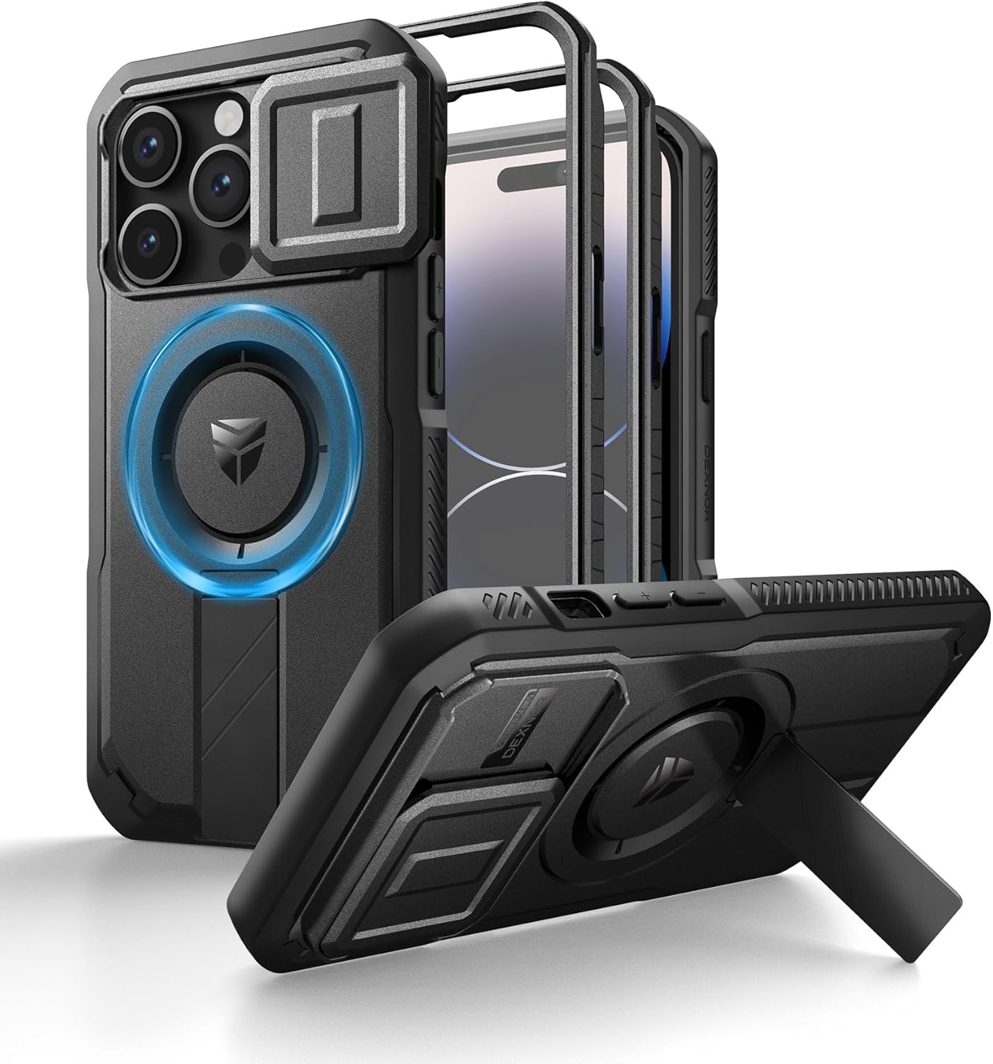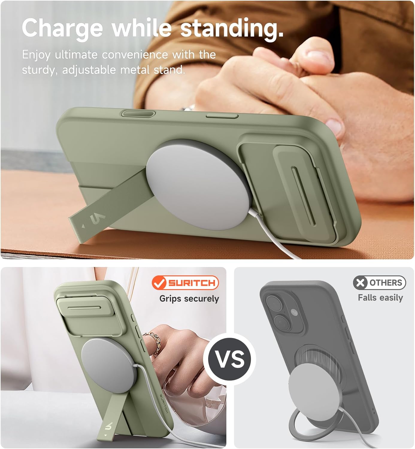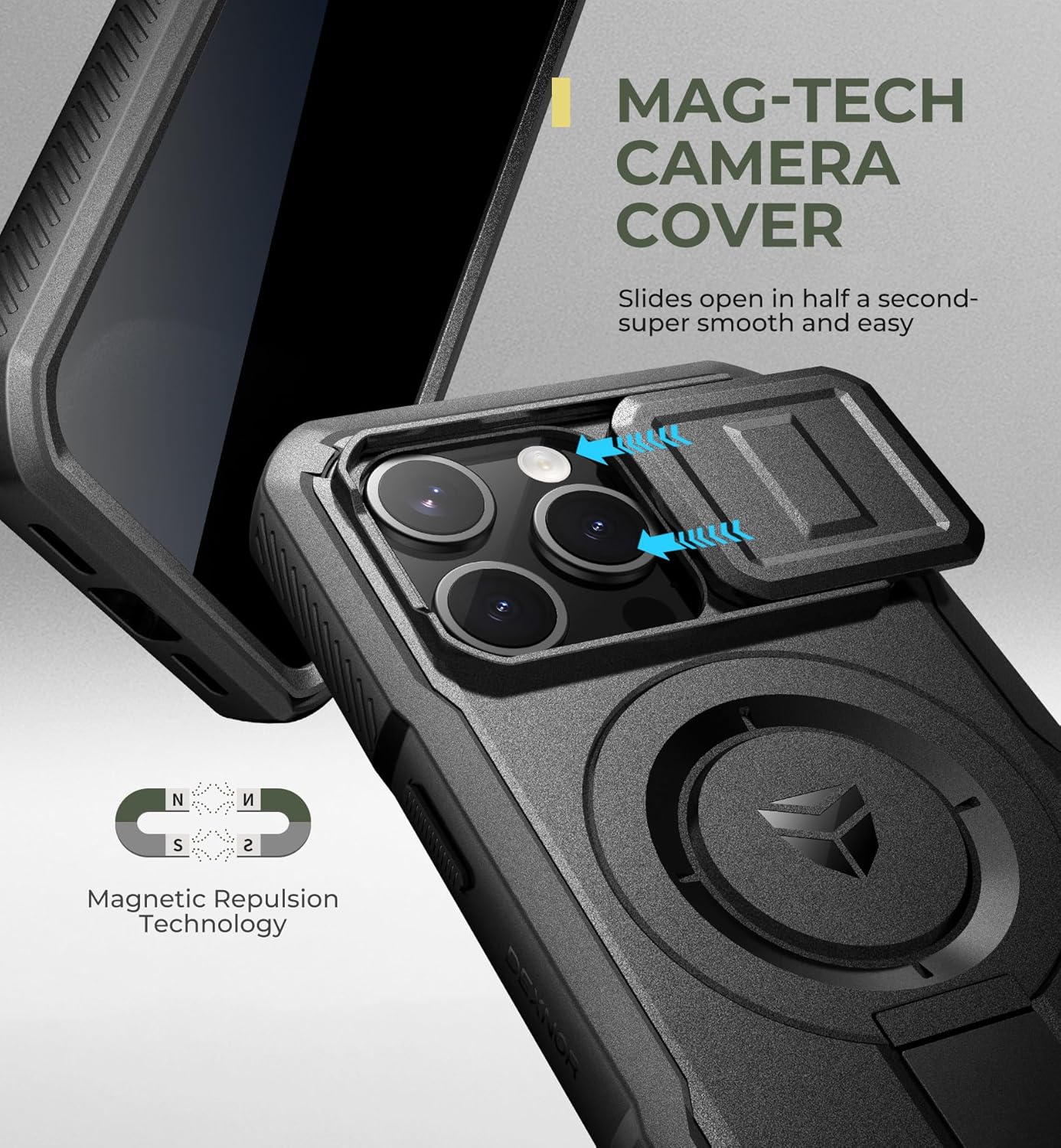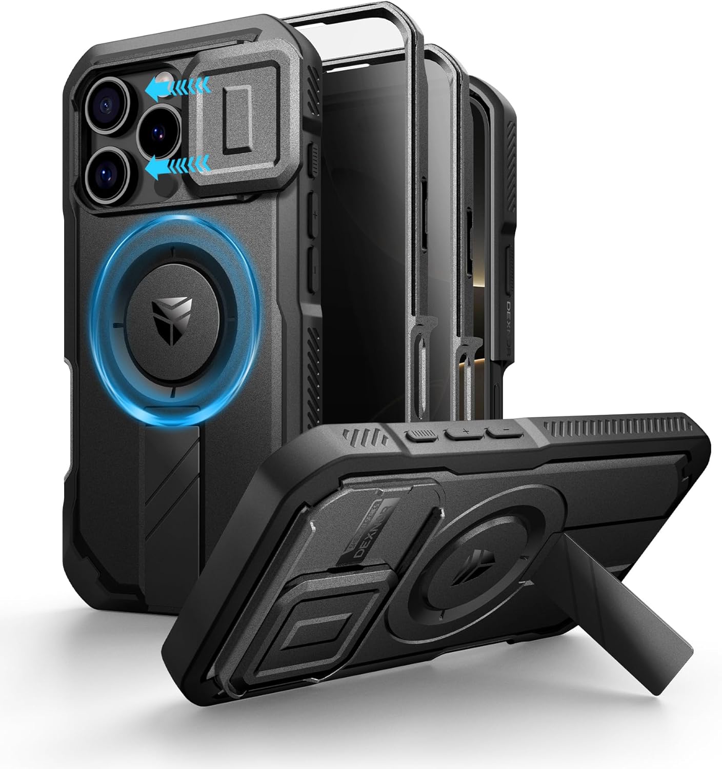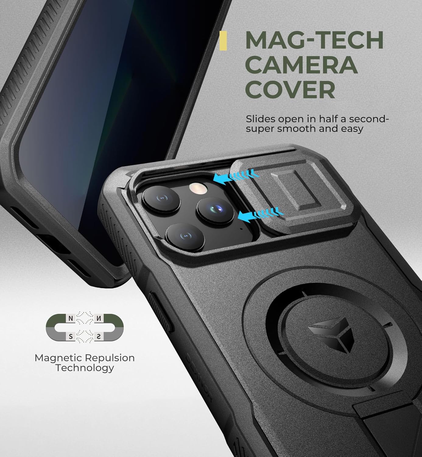 SURITCH 适用于 iPhone 16 Pro 手机壳,带滑动相机盖和可调节支架,兼容 MagSafe,防震防撞保护套,适用于 iPhone 16 Pro 6.3 英寸,黑色