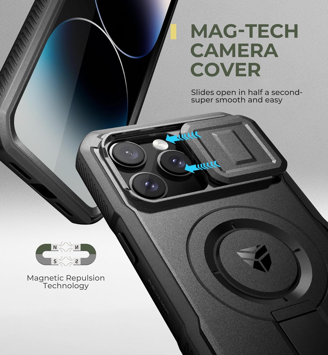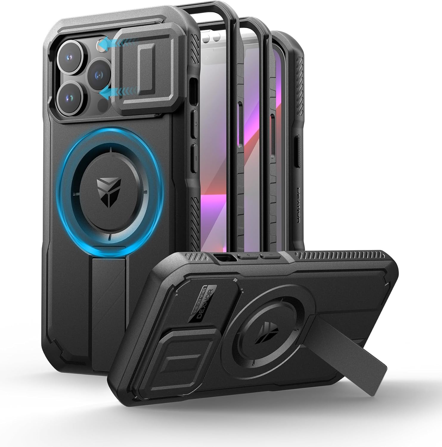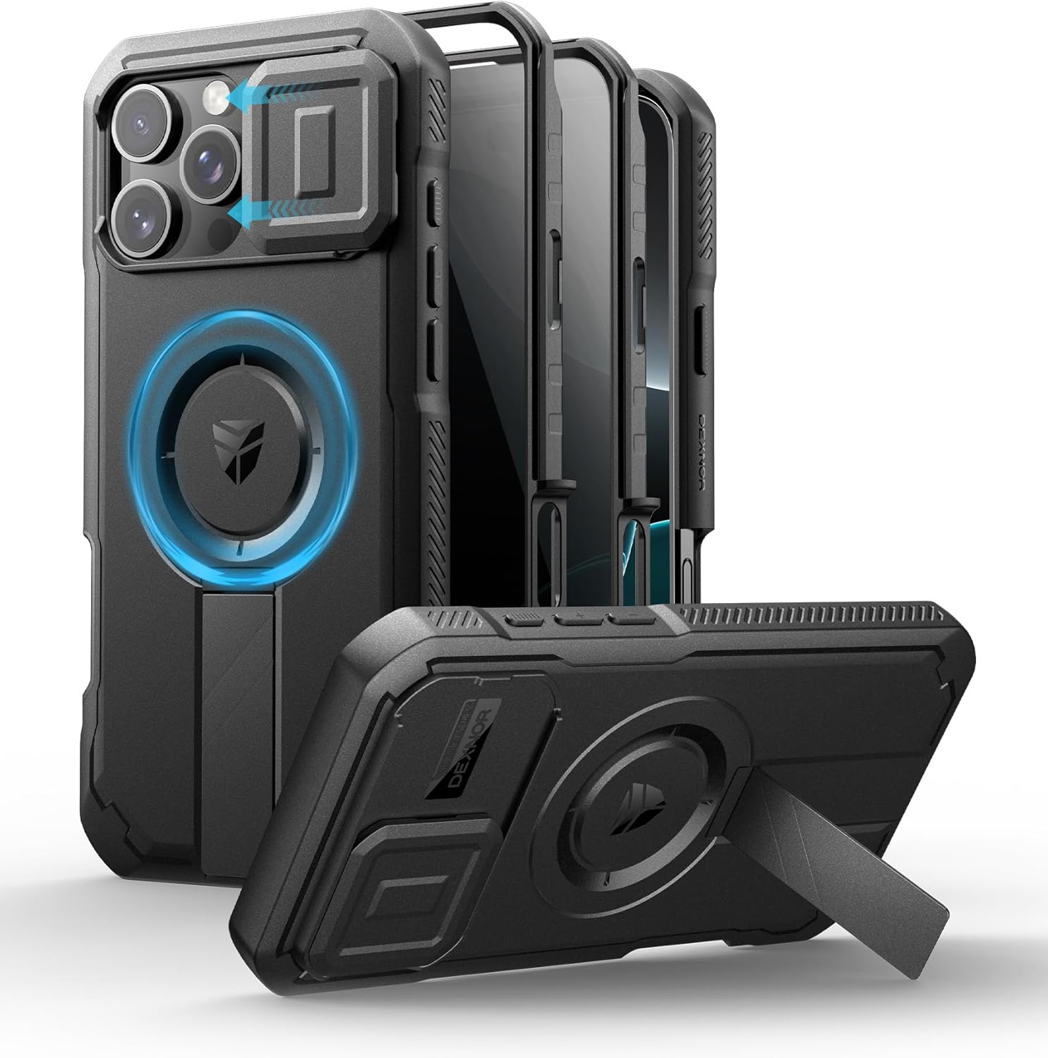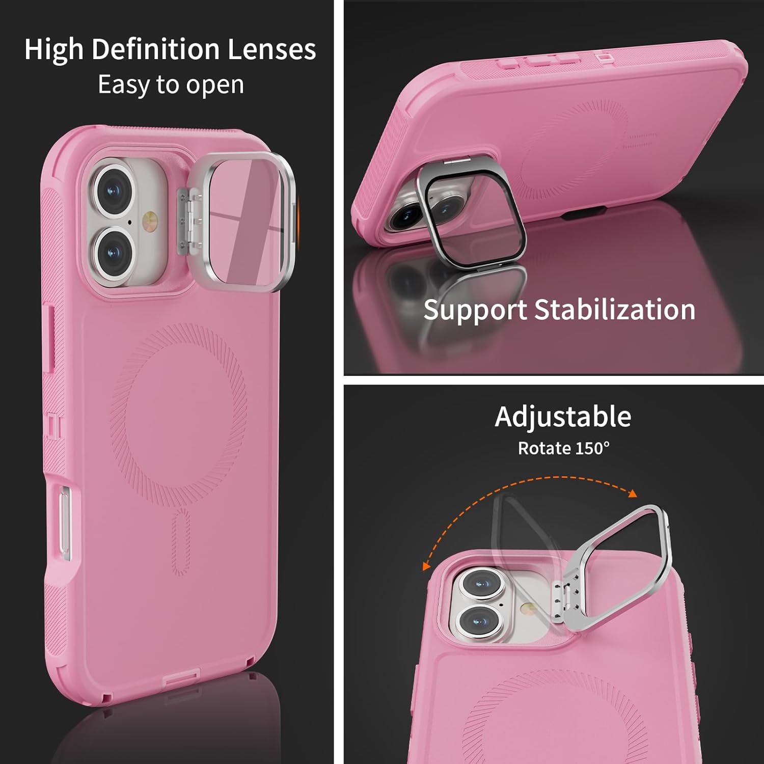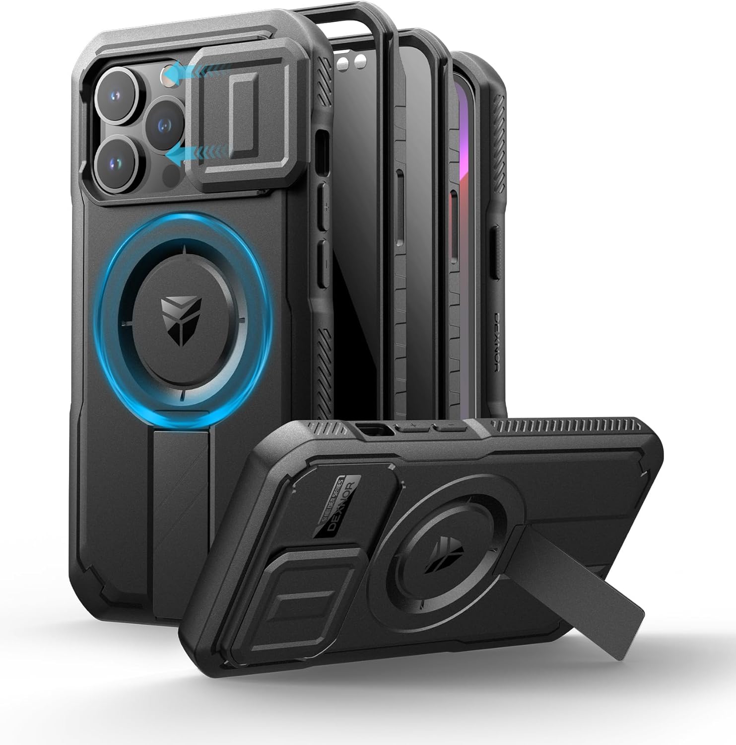 SURITCH 适用于 iPhone 16 Pro 手机壳,带滑动相机盖和可调节支架,兼容 MagSafe,防震防撞保护套,适用于 iPhone 16 Pro 6.3 英寸,黑色