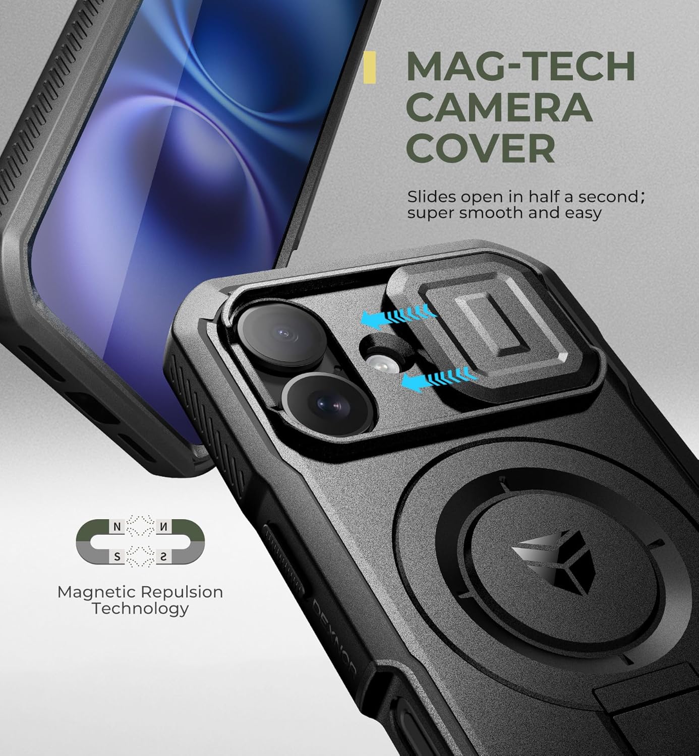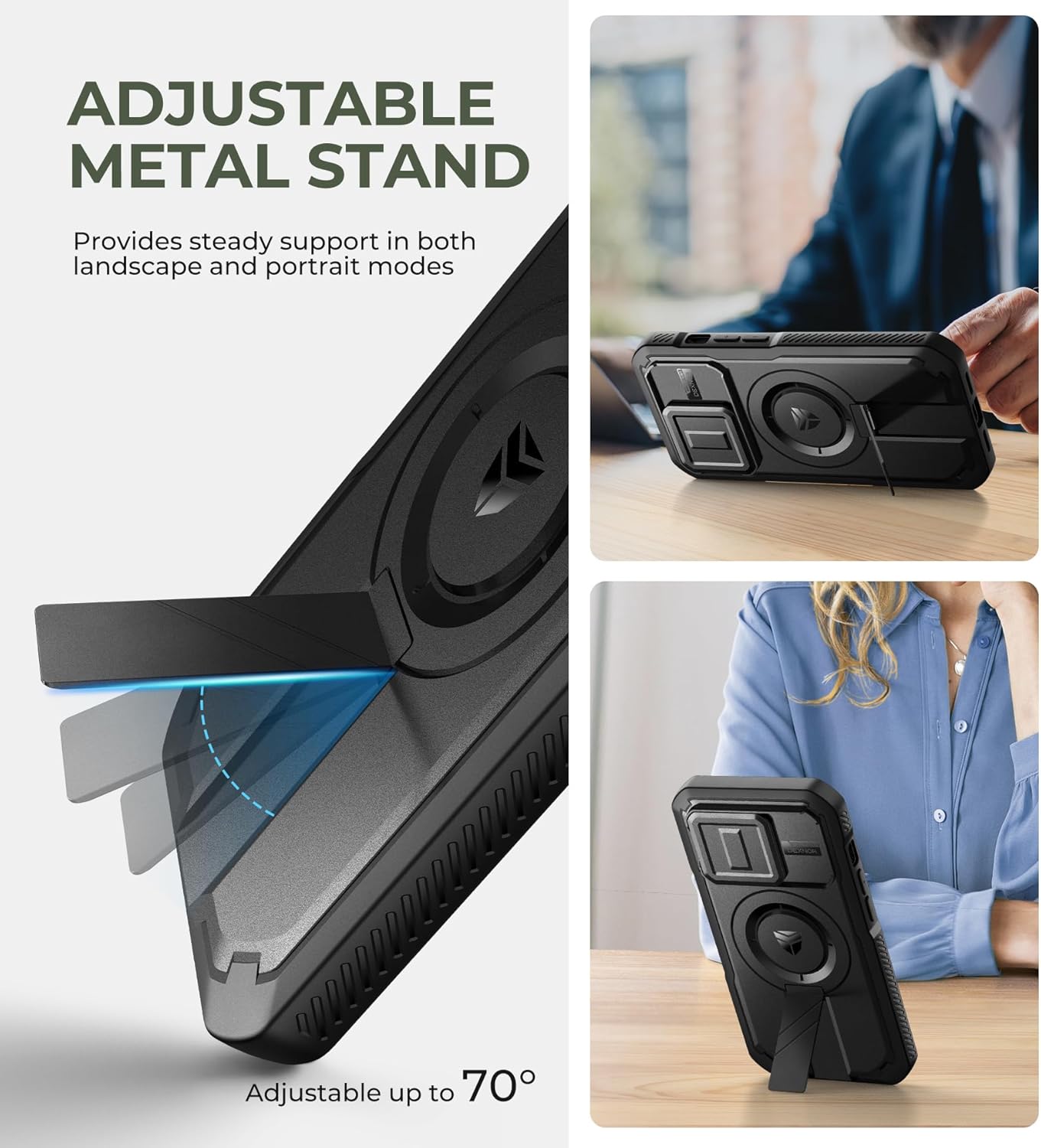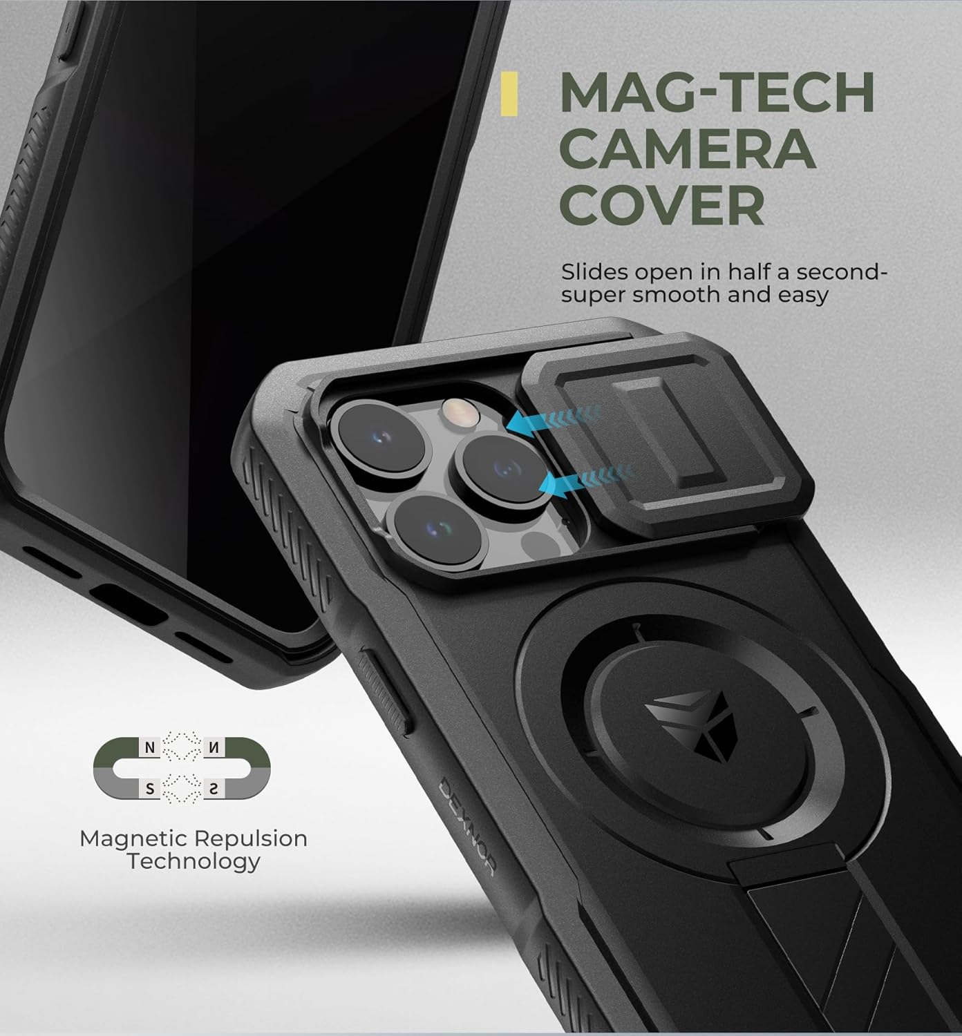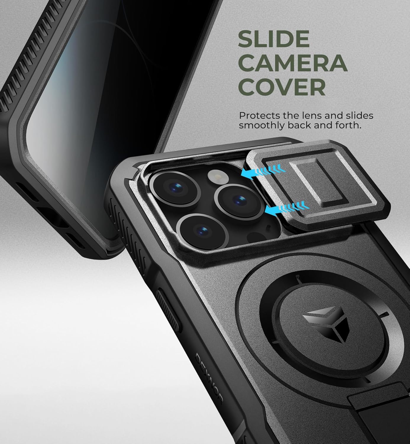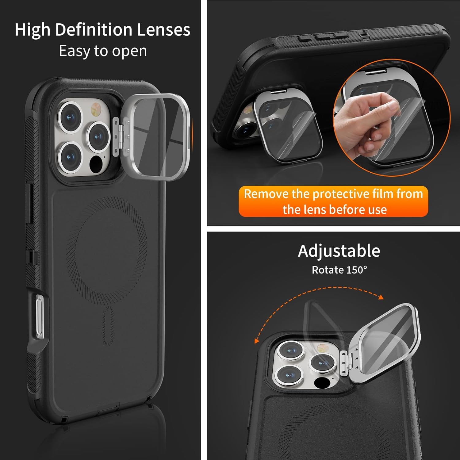 SURITCH 适用于 iPhone 16 Pro 手机壳,带滑动相机盖和可调节支架,兼容 MagSafe,防震防撞保护套,适用于 iPhone 16 Pro 6.3 英寸,黑色