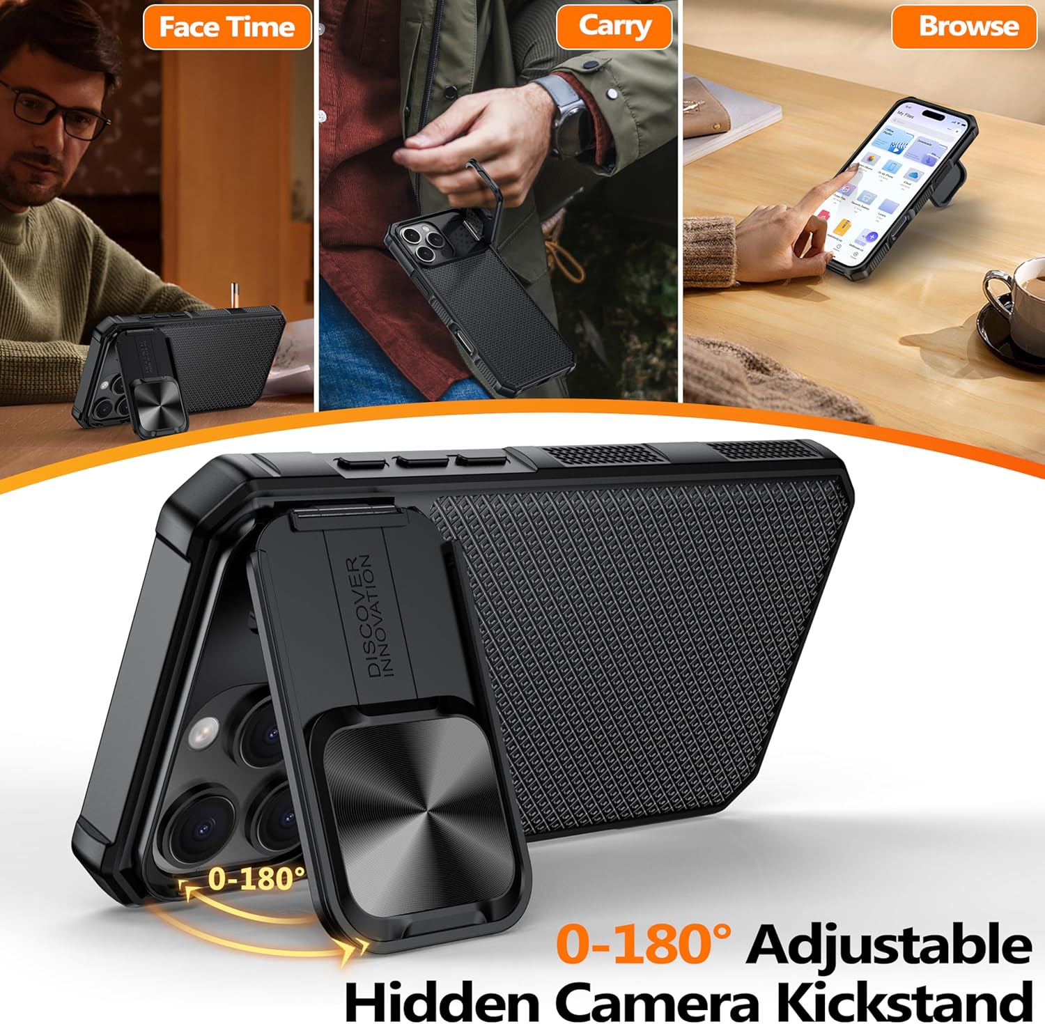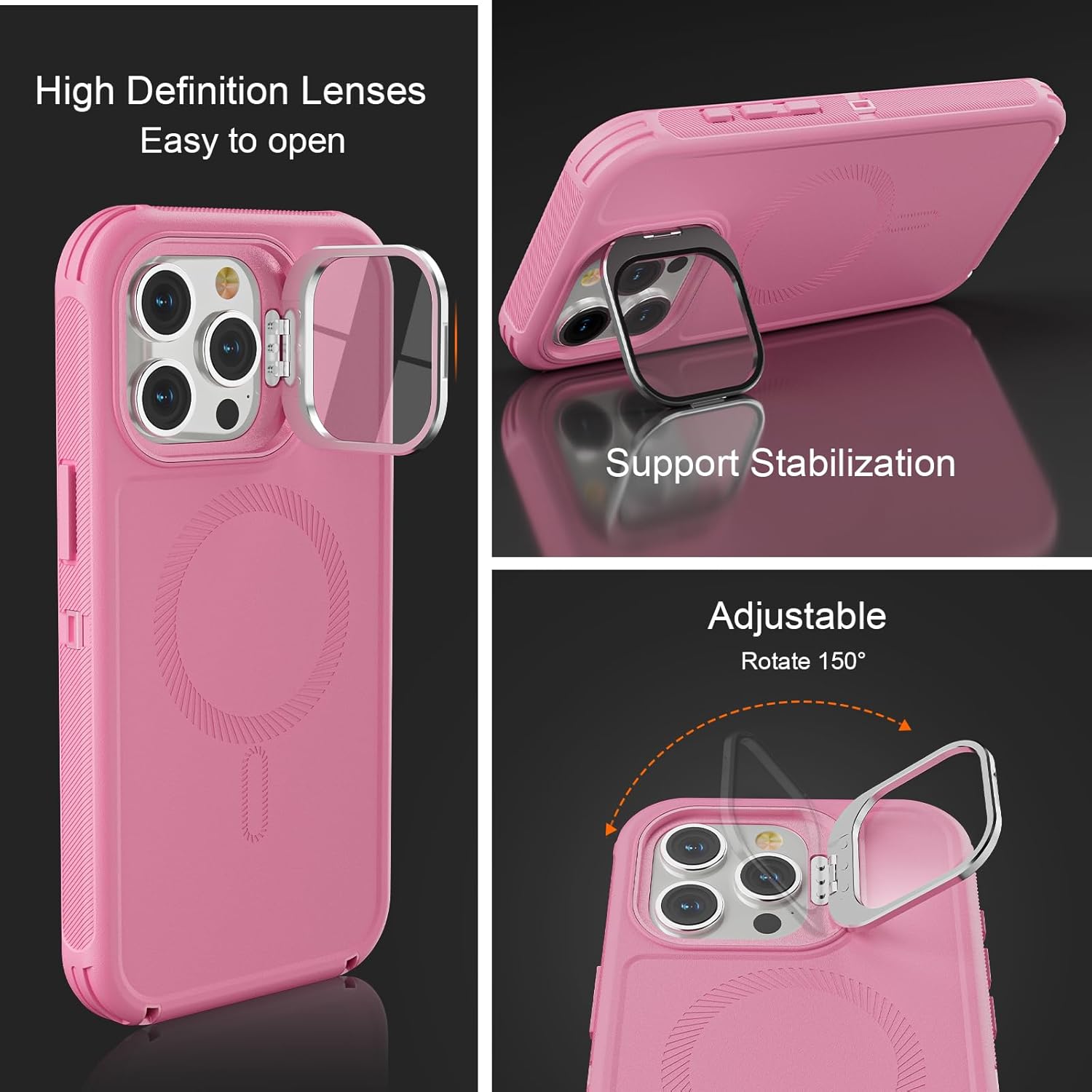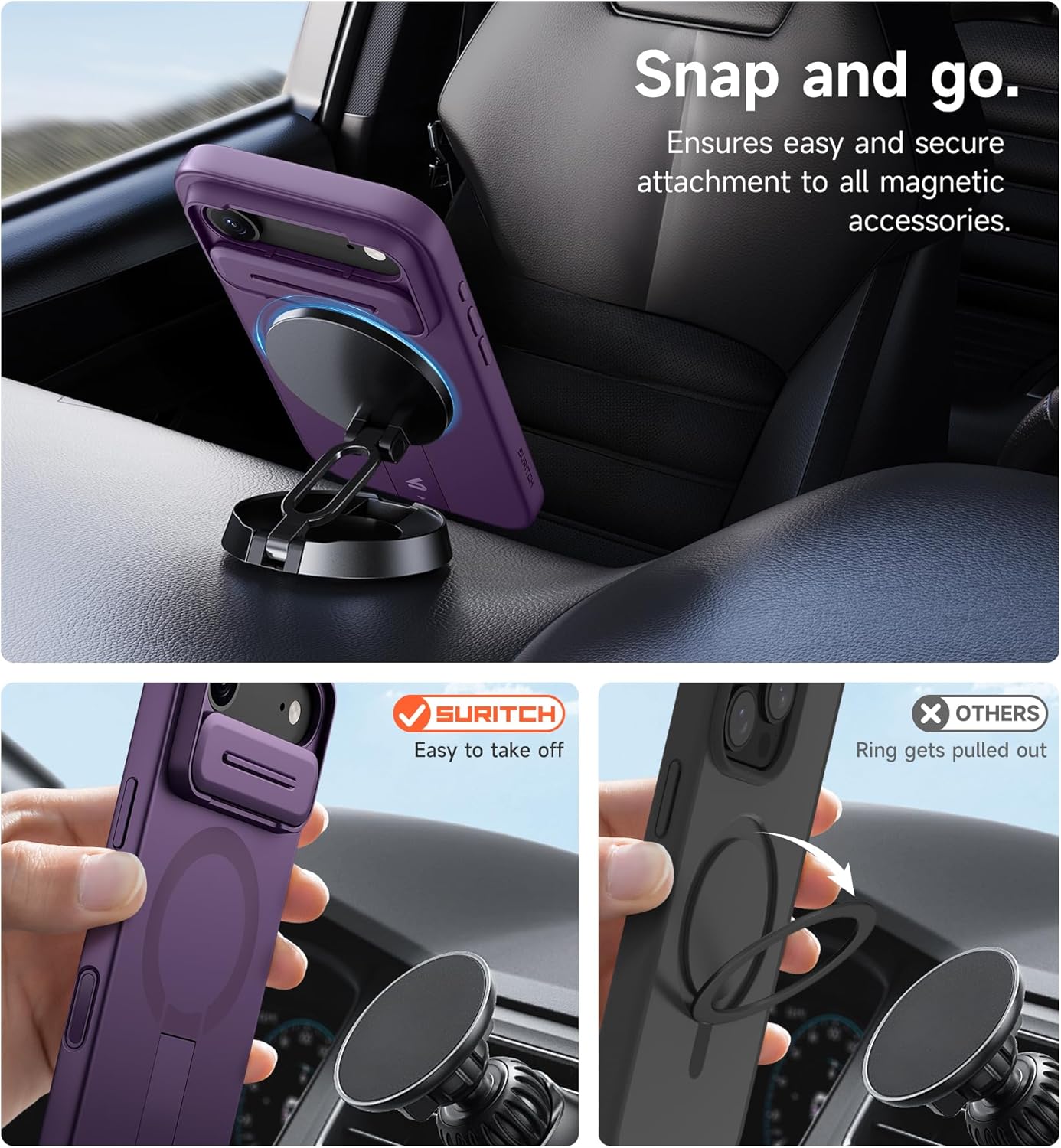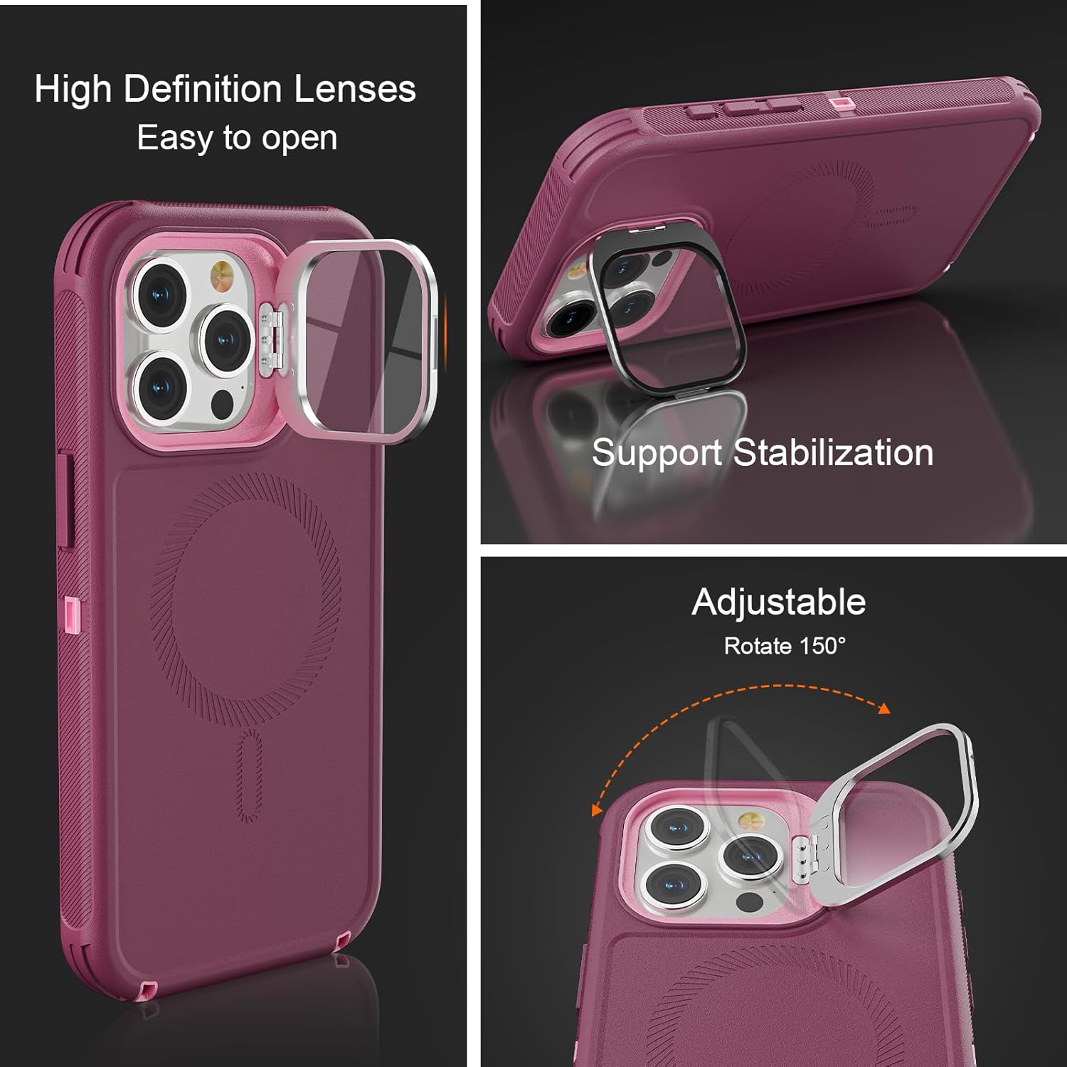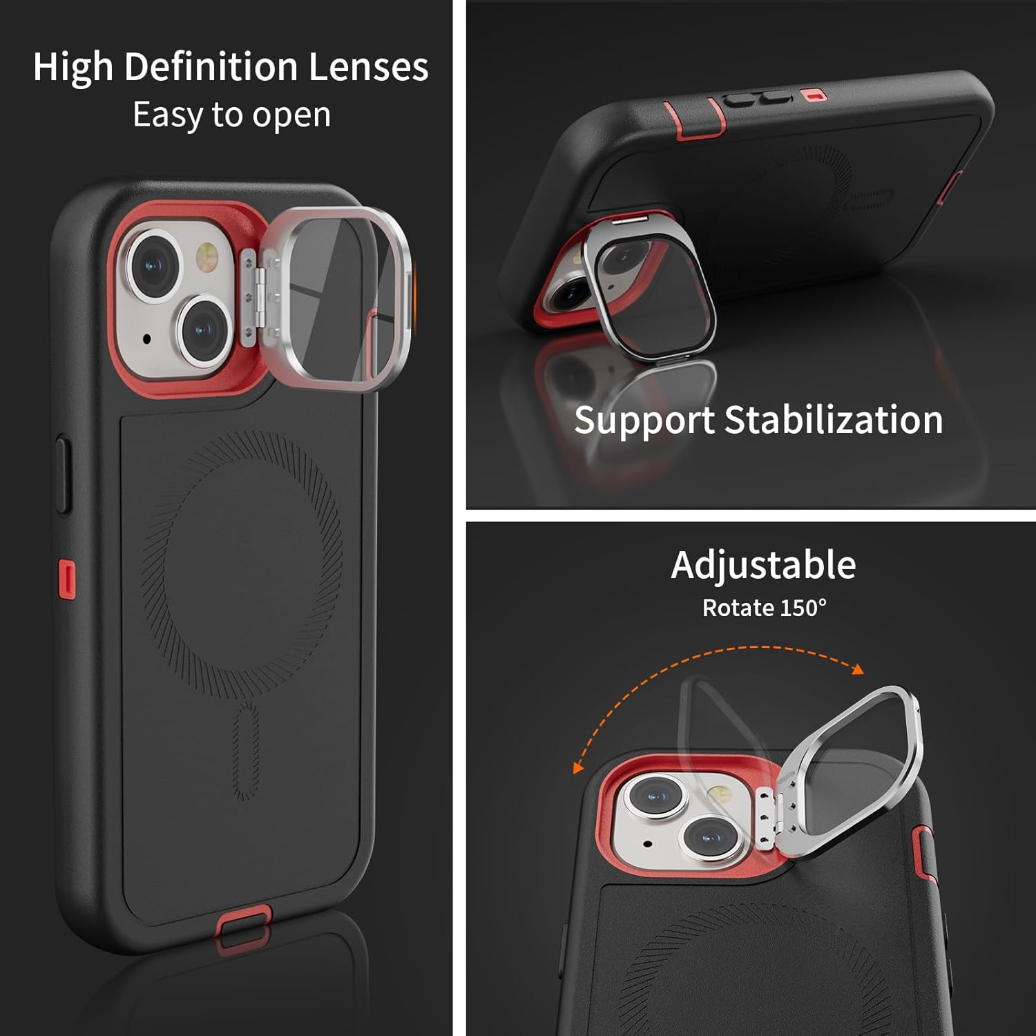SURITCH 适用于 iPhone 16 Pro 手机壳,带滑动相机盖和可调节支架,兼容 MagSafe,防震防撞保护套,适用于 iPhone 16 Pro 6.3 英寸,黑色