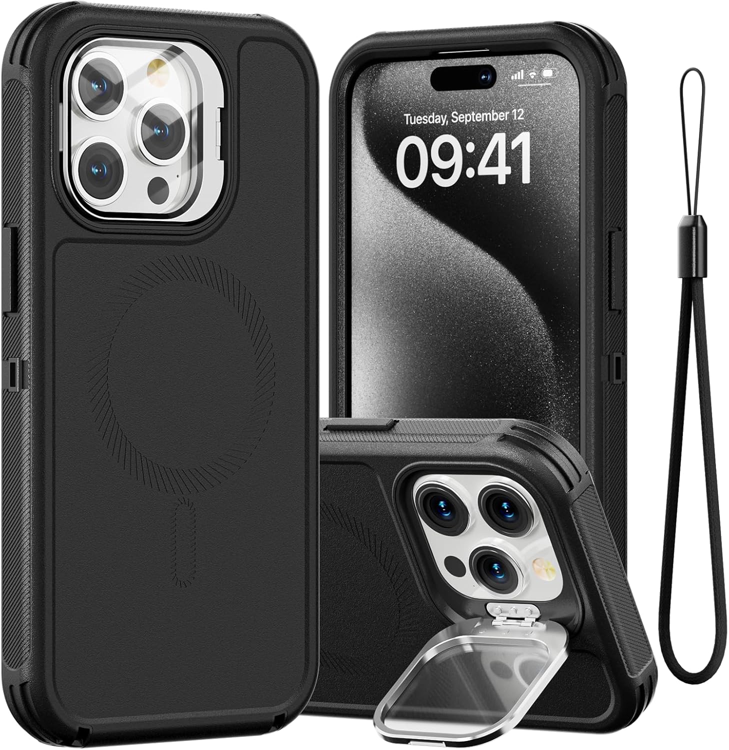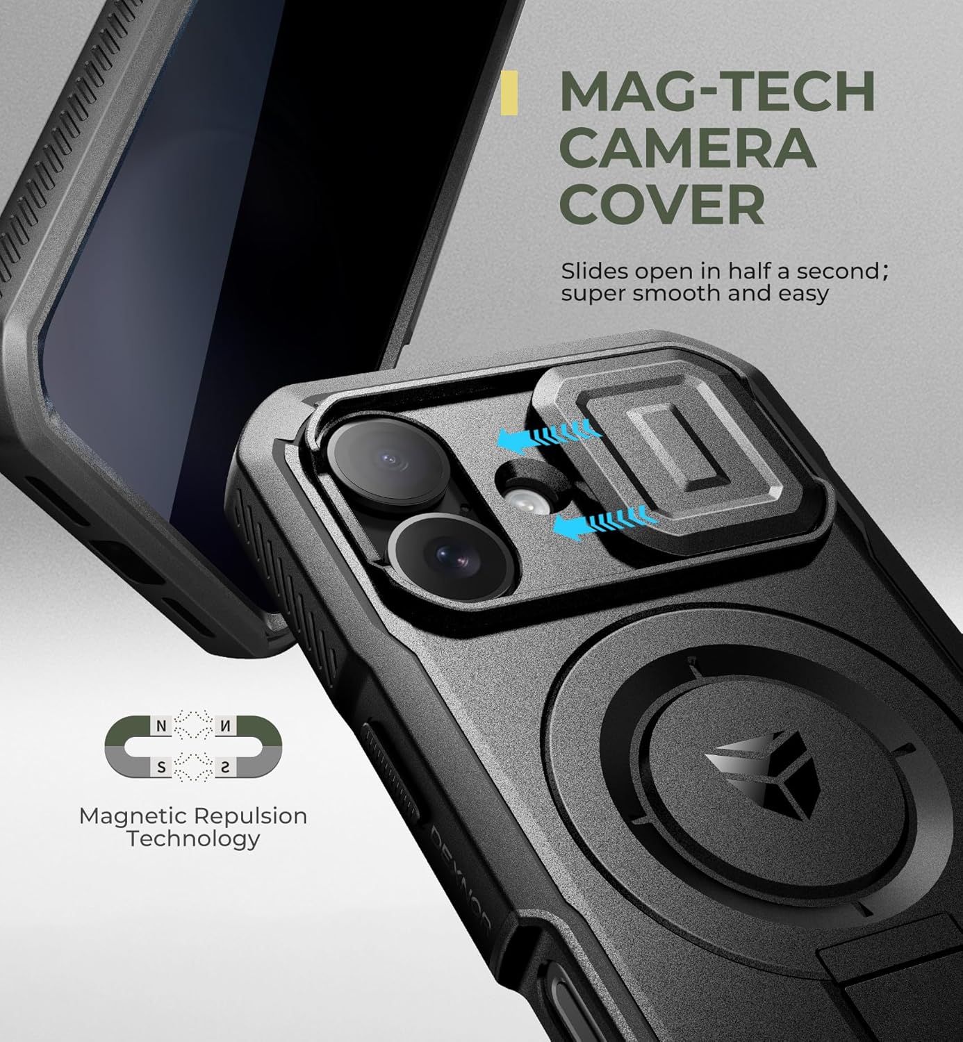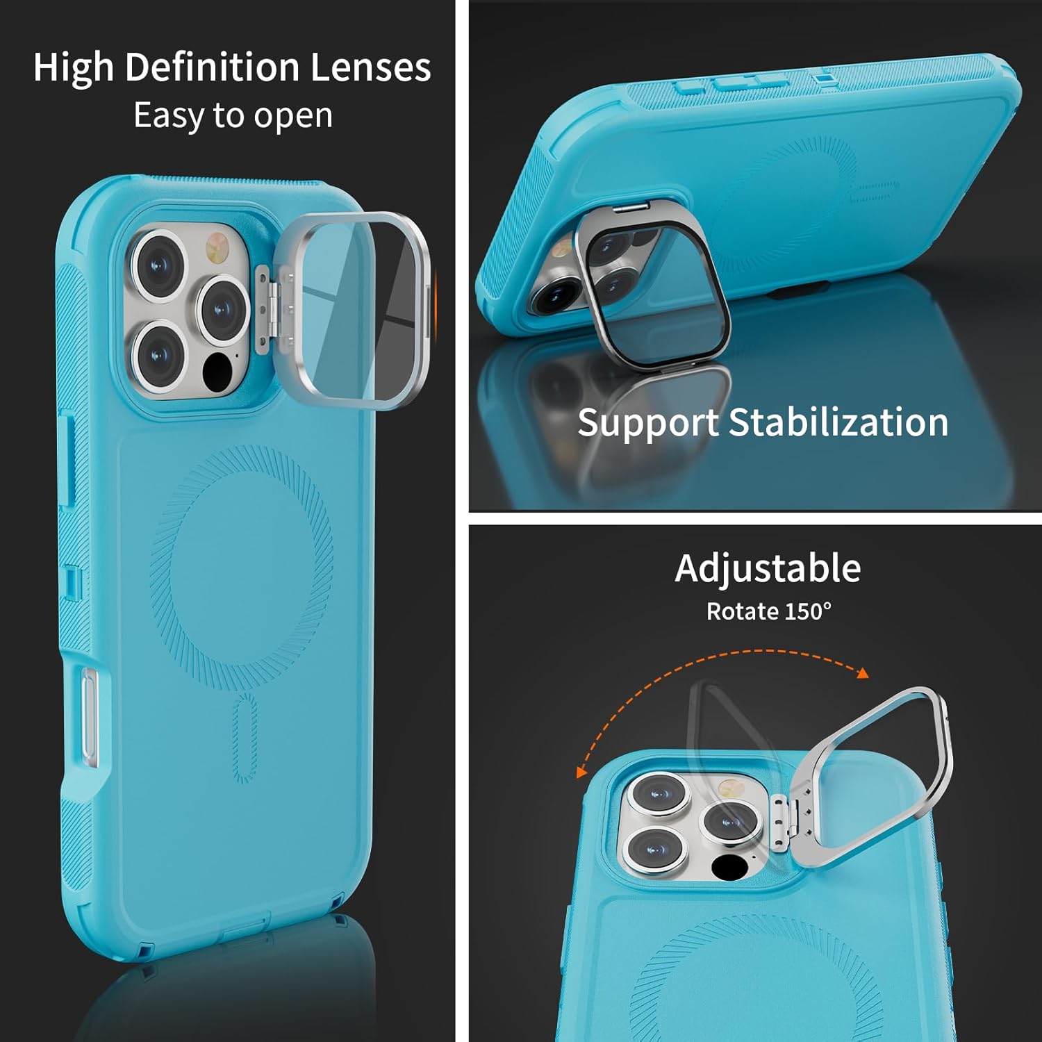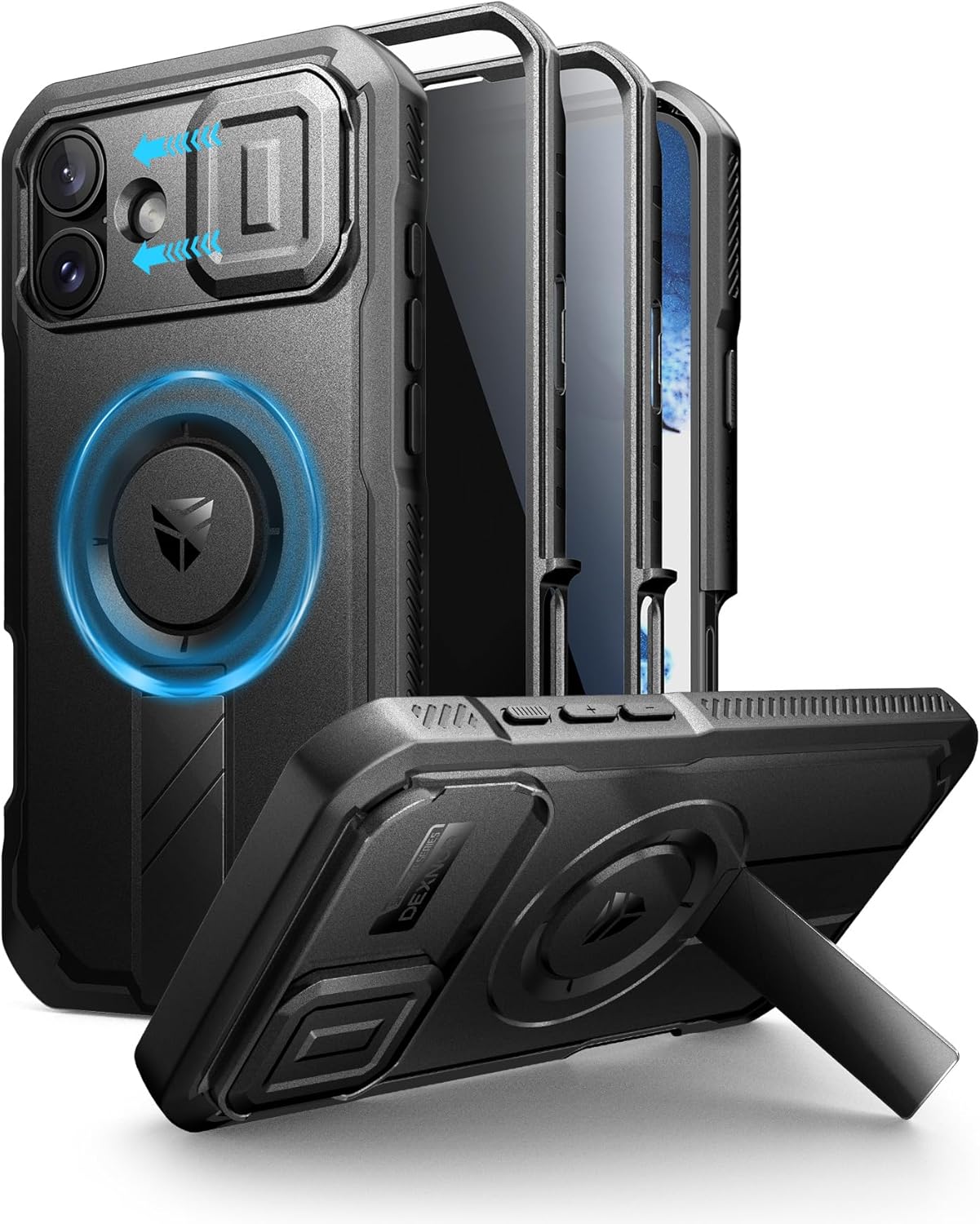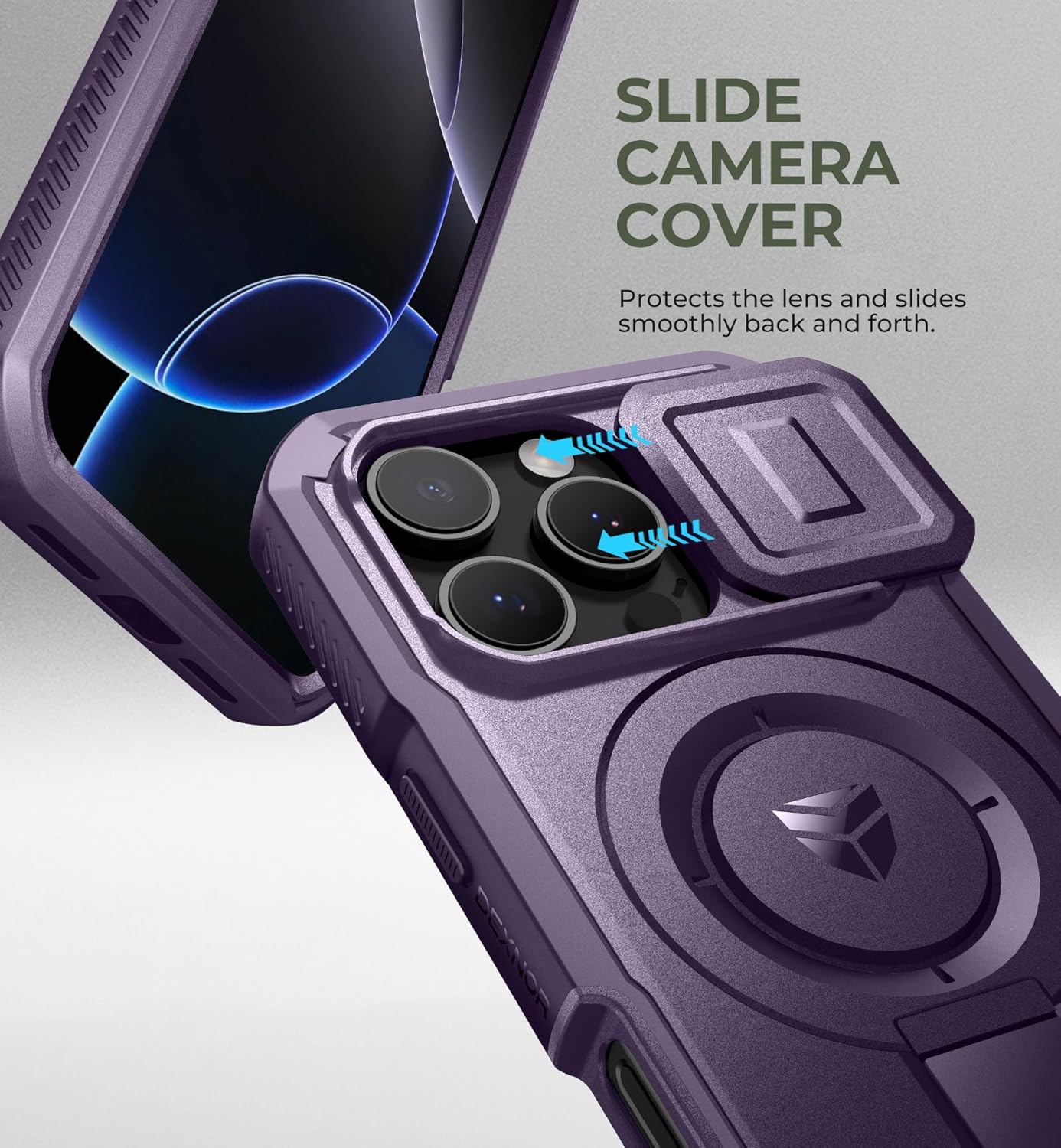 SURITCH 适用于 iPhone 16 Pro 手机壳,带滑动相机盖和可调节支架,兼容 MagSafe,防震防撞保护套,适用于 iPhone 16 Pro 6.3 英寸,黑色