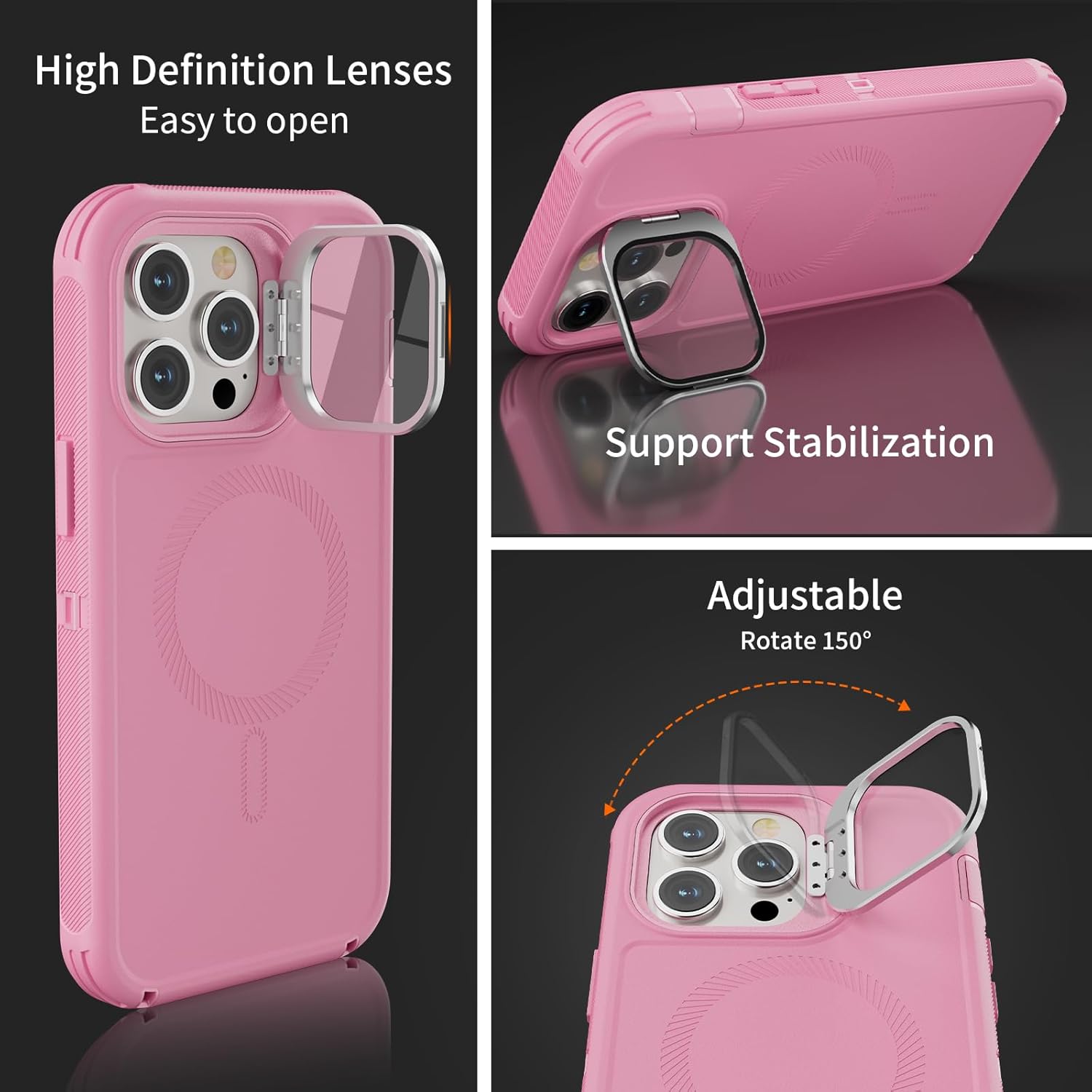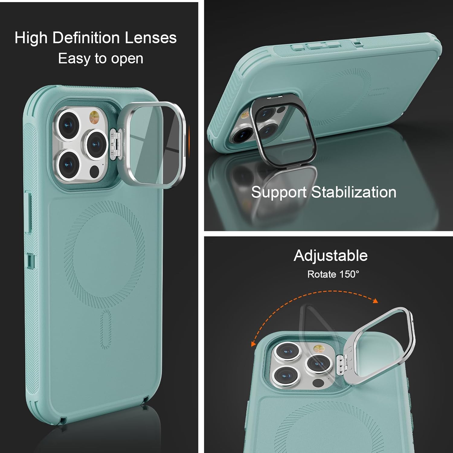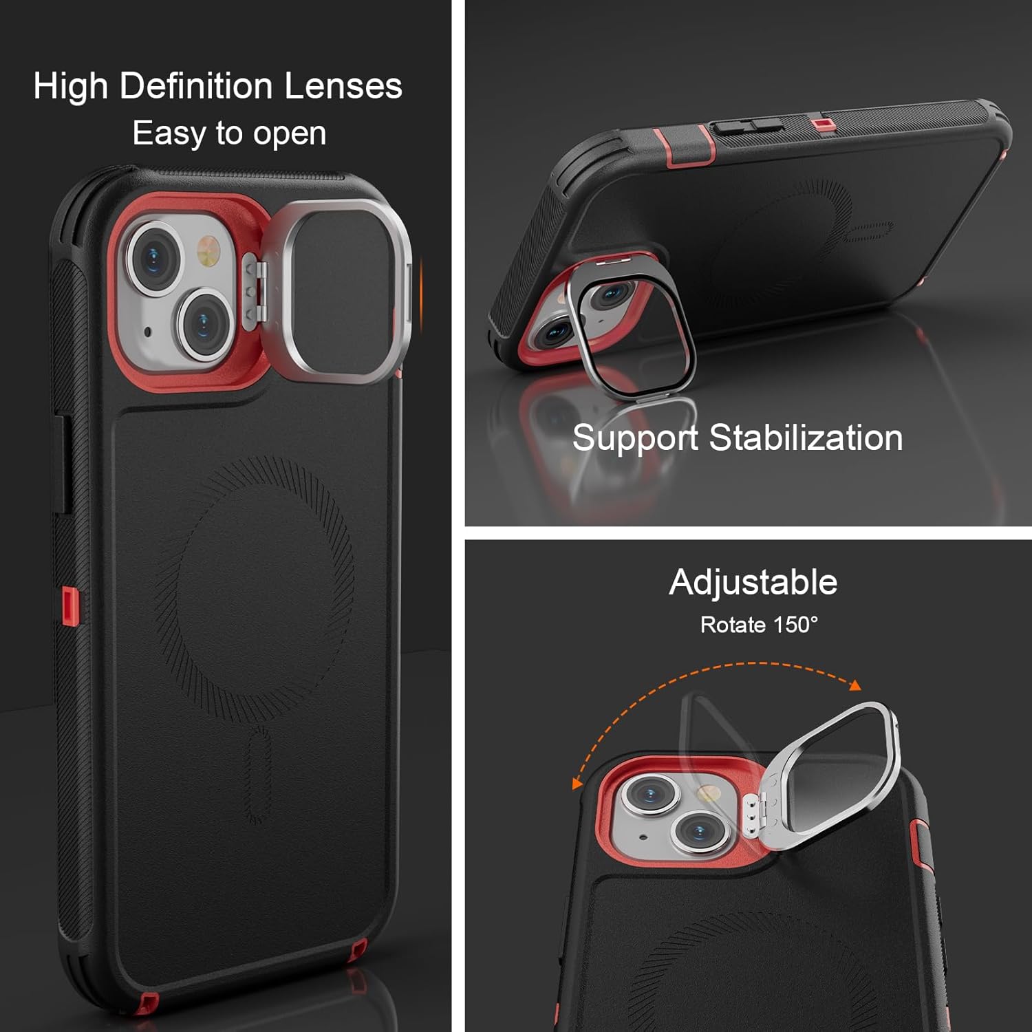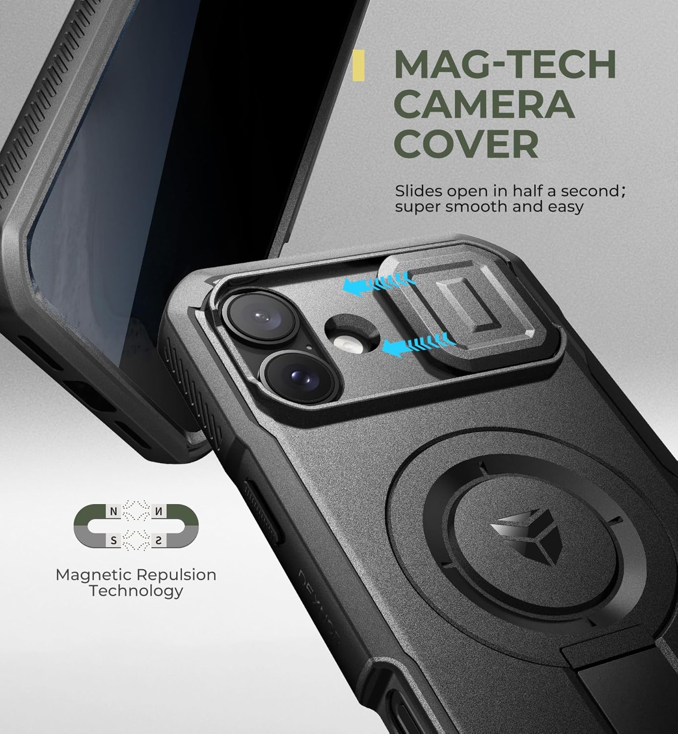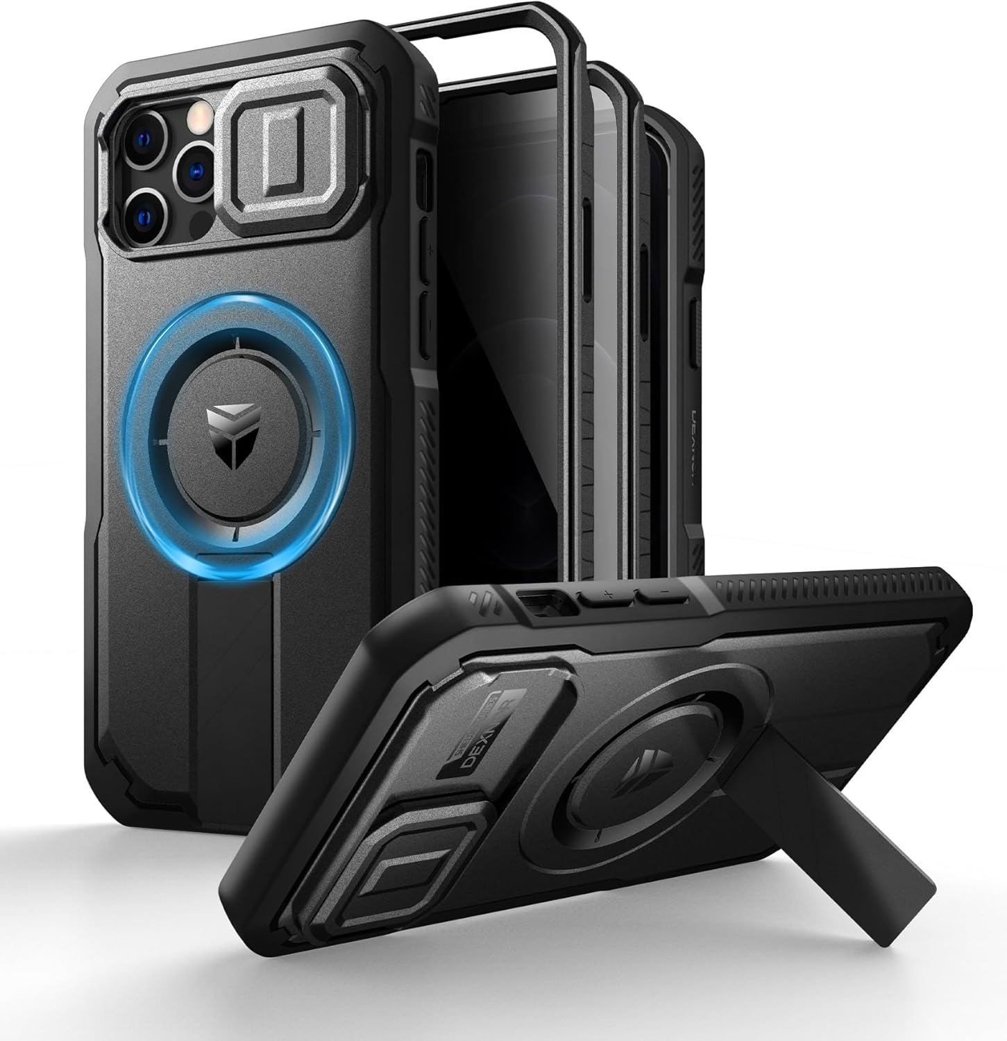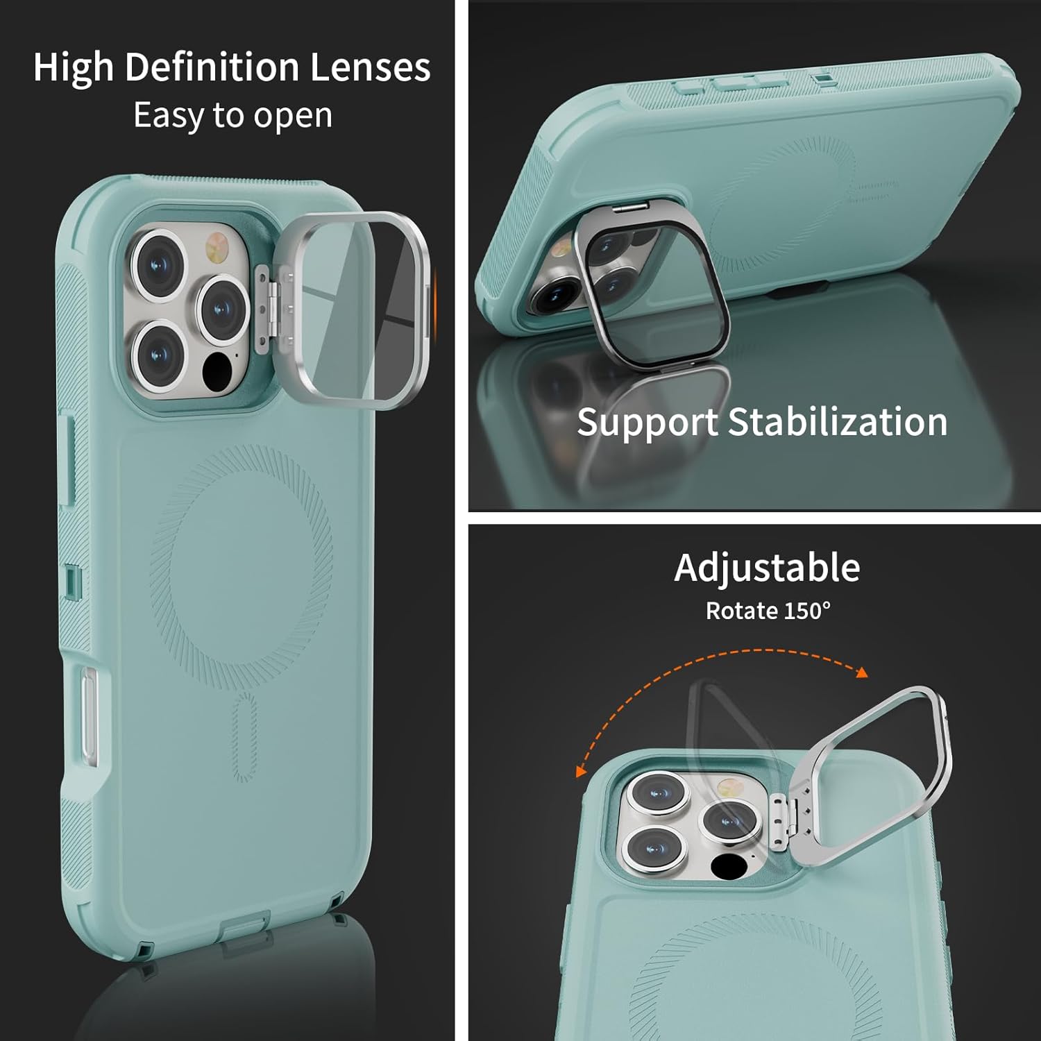 SURITCH 适用于 iPhone 16 Pro 手机壳,带滑动相机盖和可调节支架,兼容 MagSafe,防震防撞保护套,适用于 iPhone 16 Pro 6.3 英寸,黑色