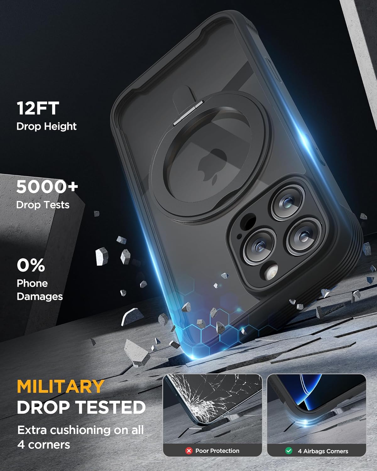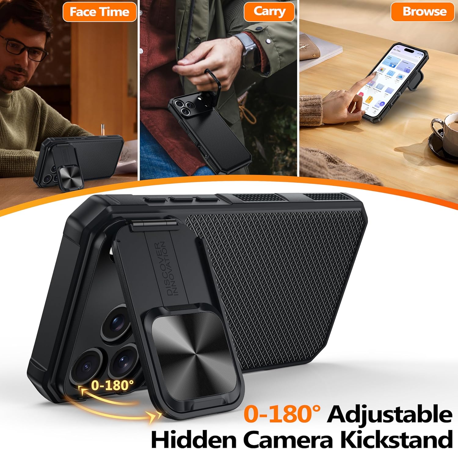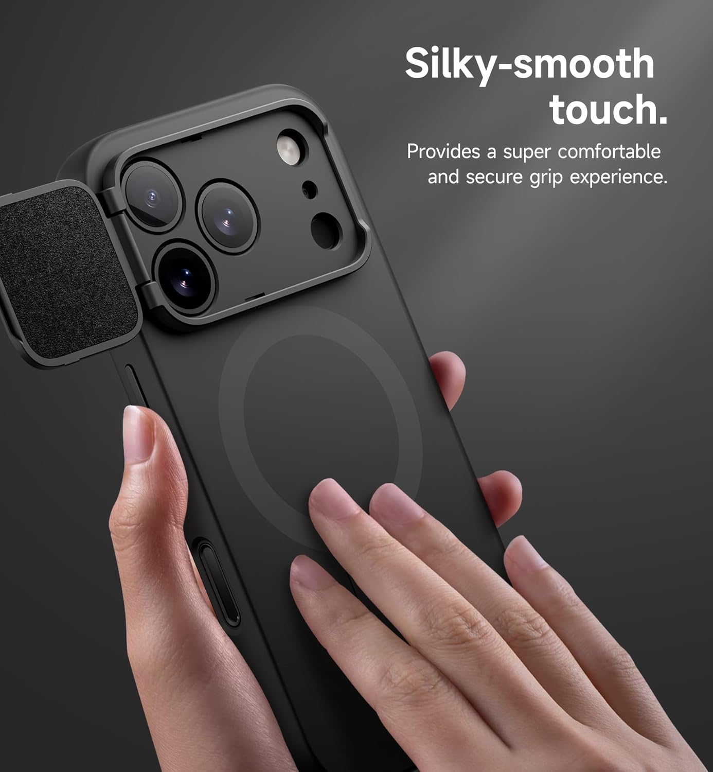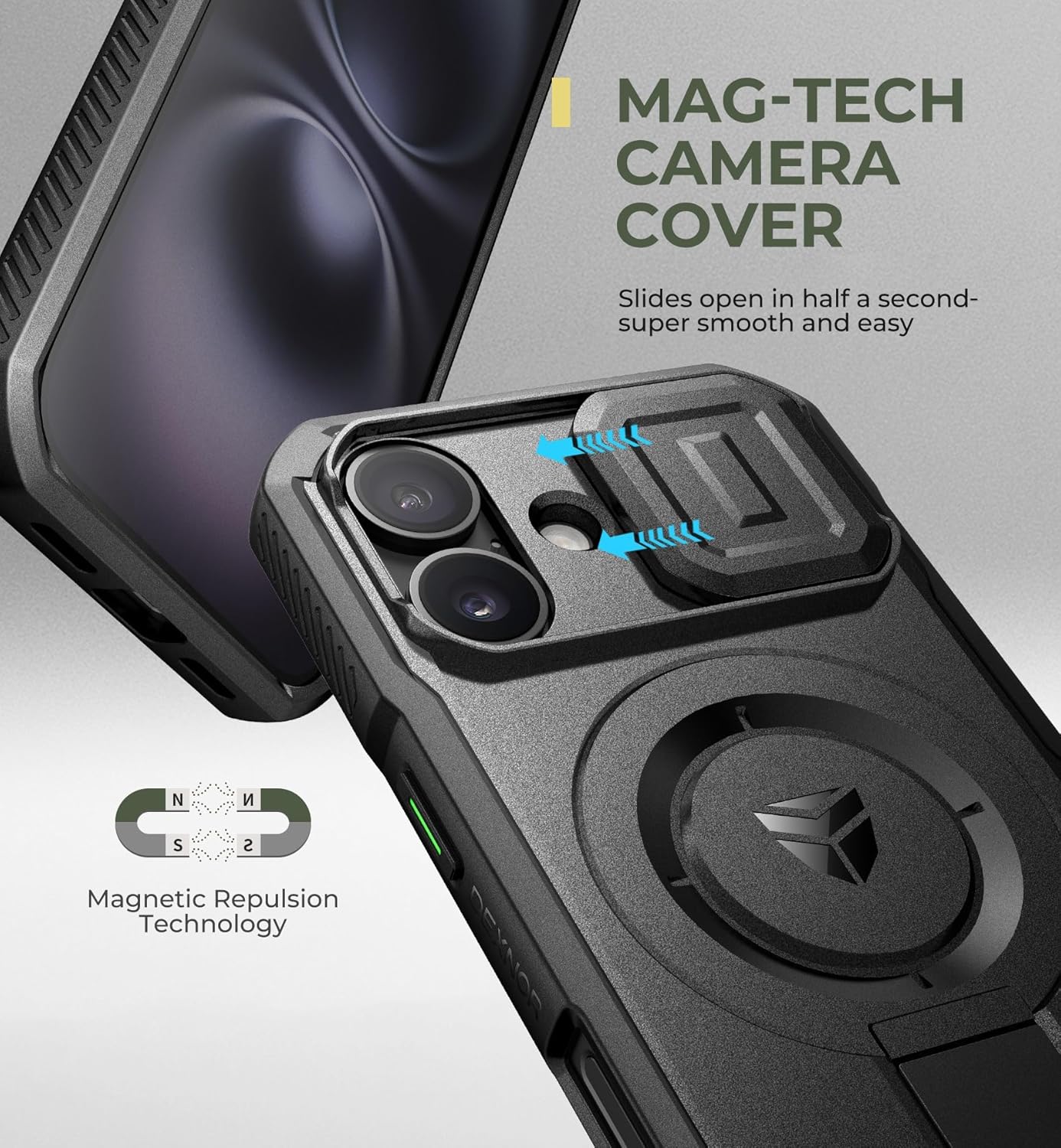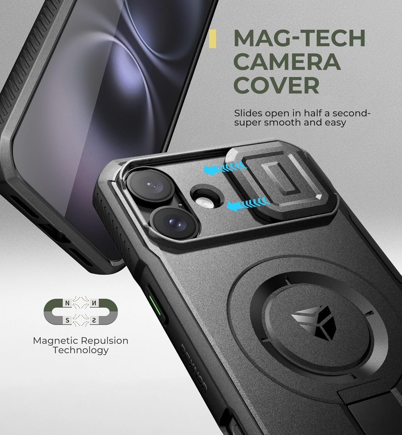 SURITCH 适用于 iPhone 16 Pro 手机壳,带滑动相机盖和可调节支架,兼容 MagSafe,防震防撞保护套,适用于 iPhone 16 Pro 6.3 英寸,黑色