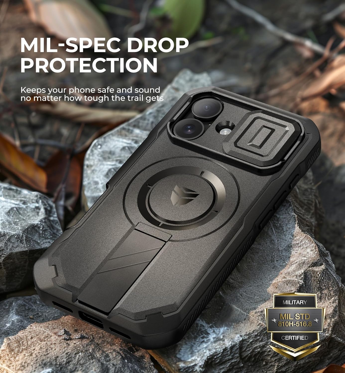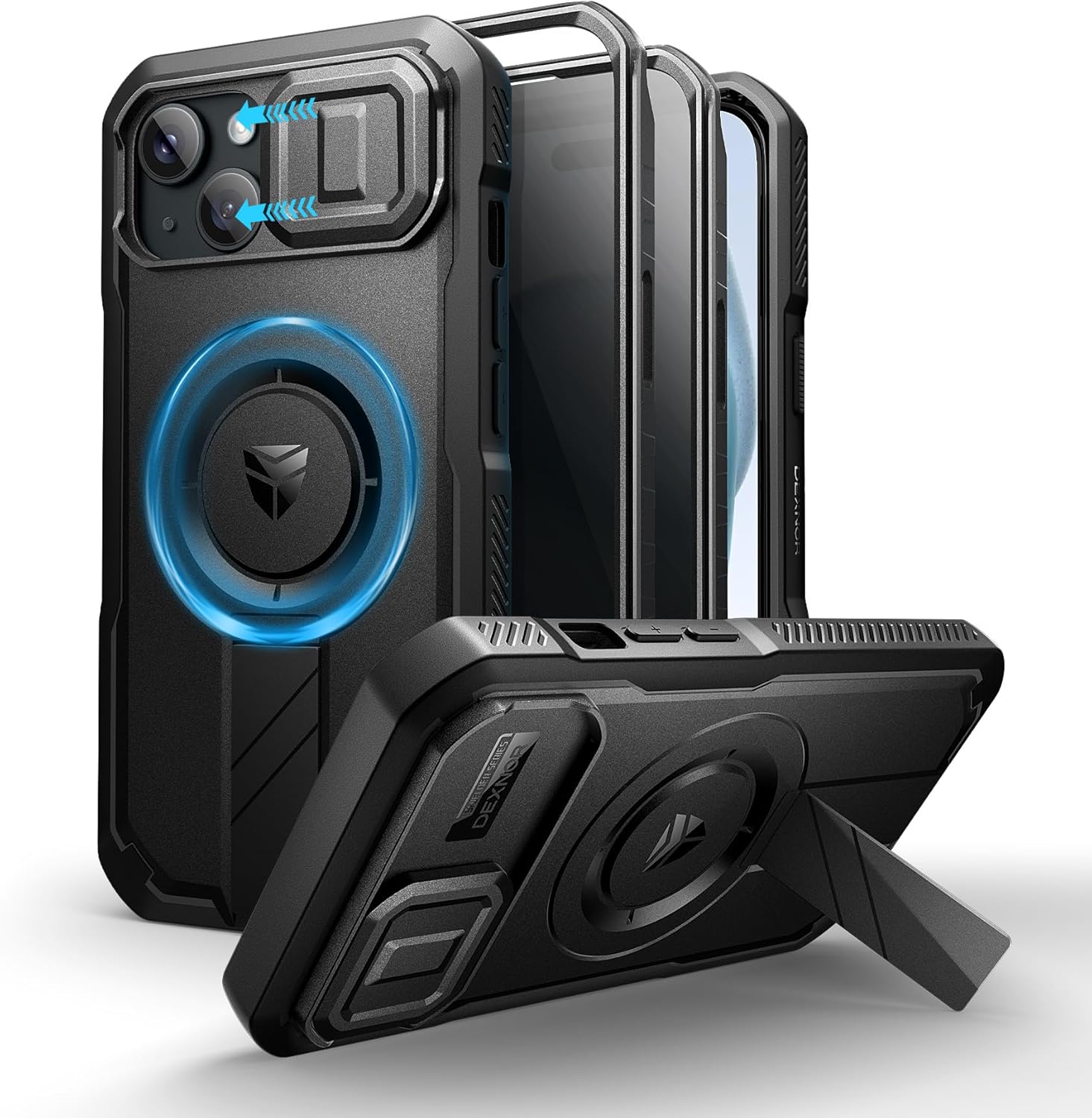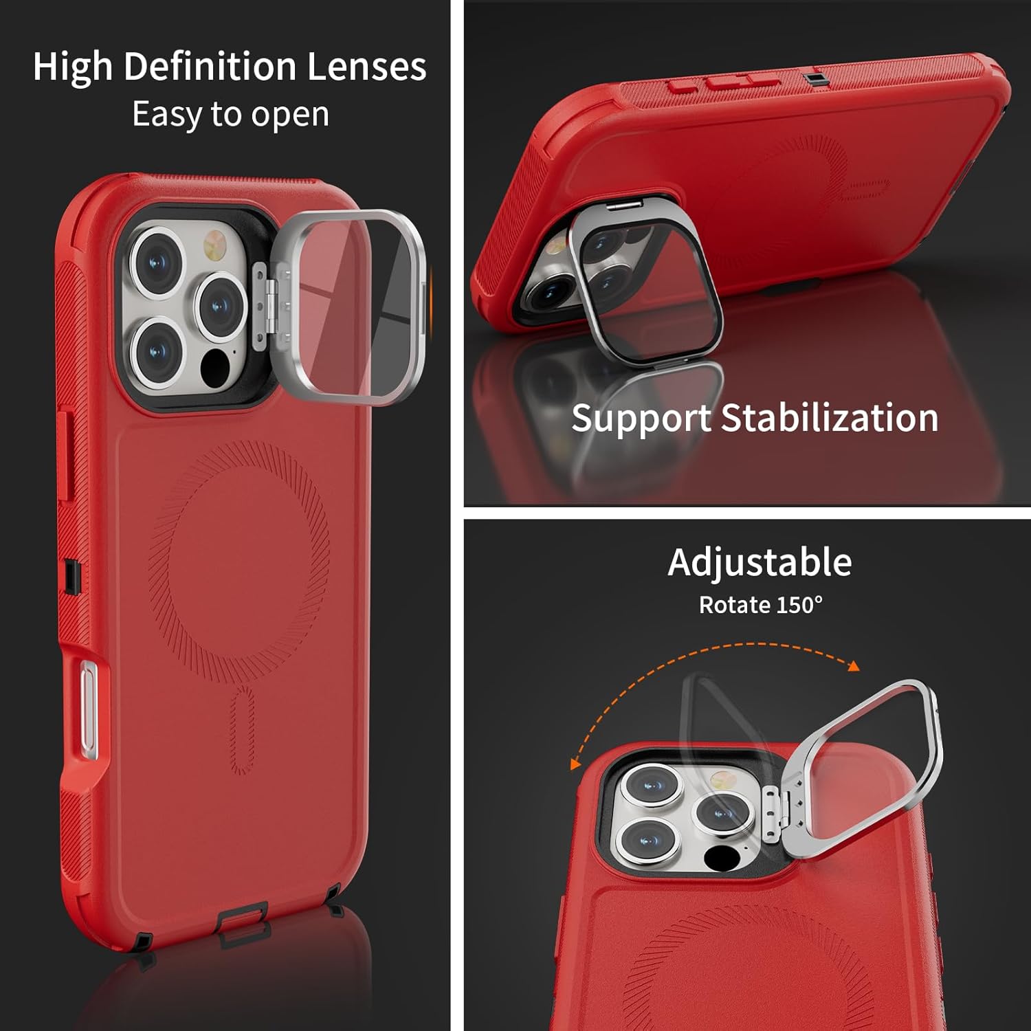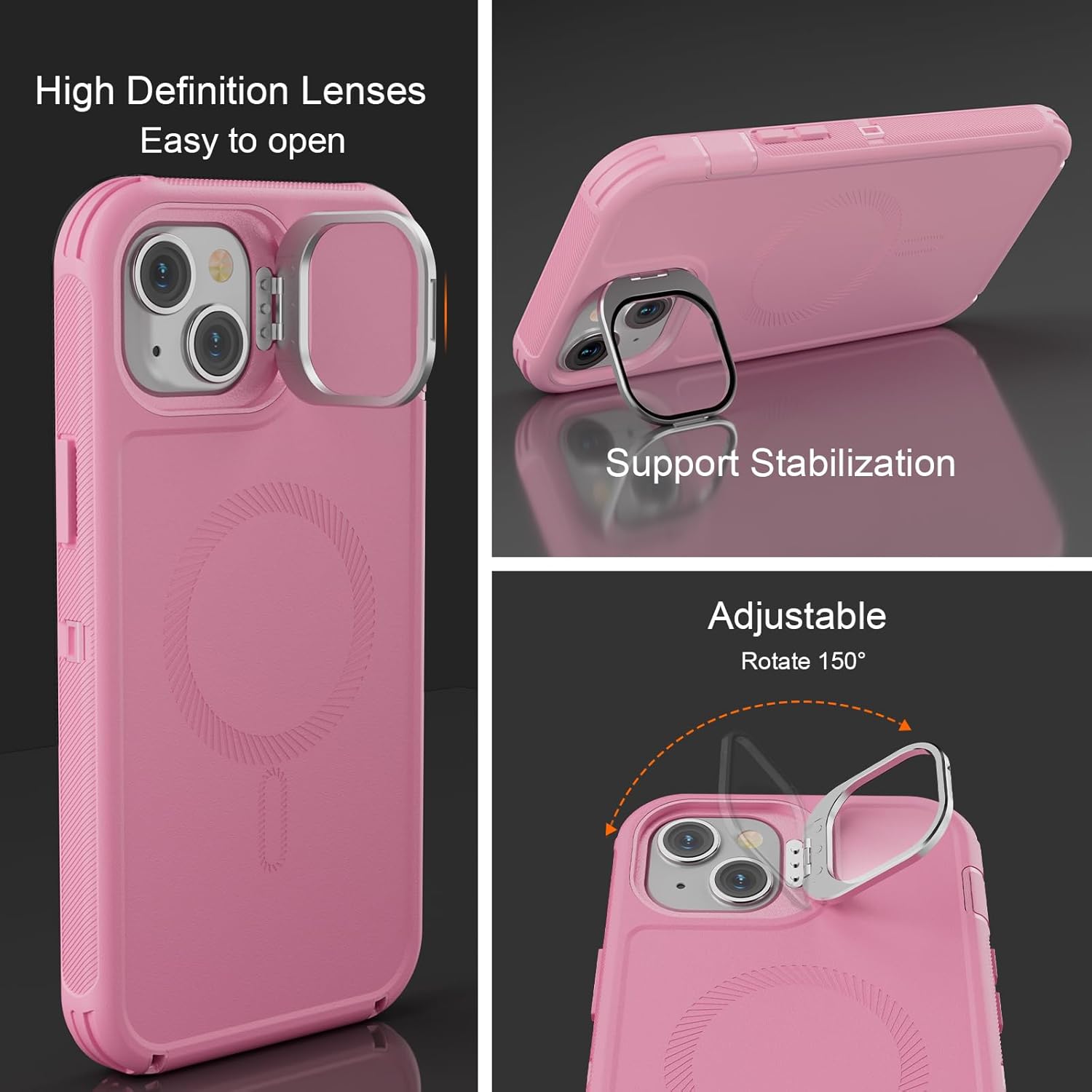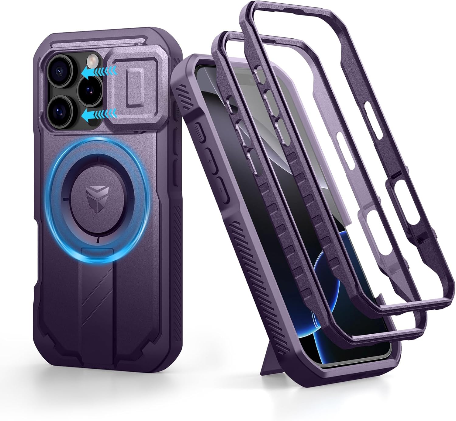 SURITCH 适用于 iPhone 16 Pro 手机壳,带滑动相机盖和可调节支架,兼容 MagSafe,防震防撞保护套,适用于 iPhone 16 Pro 6.3 英寸,黑色