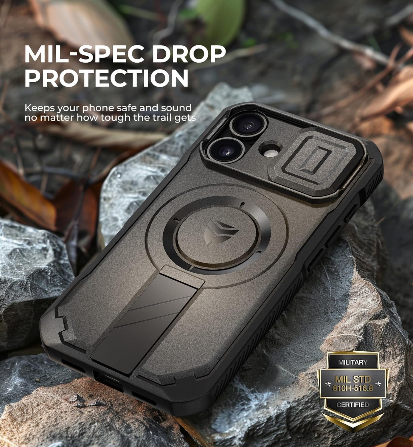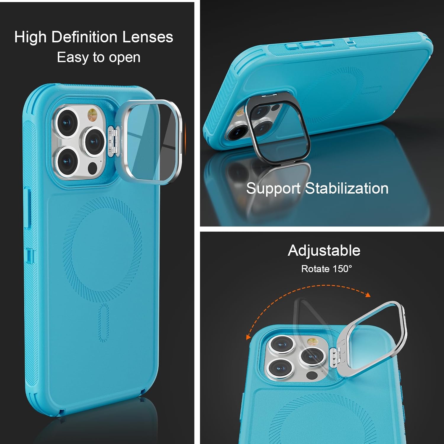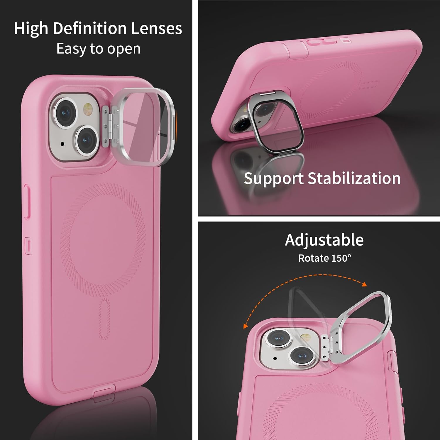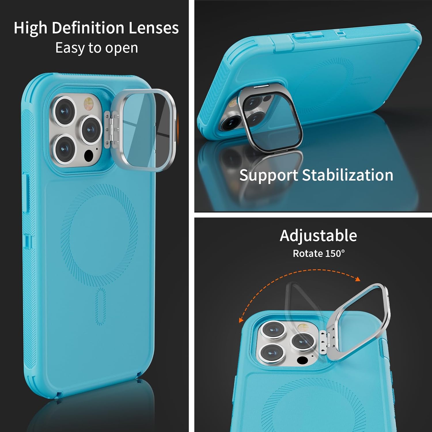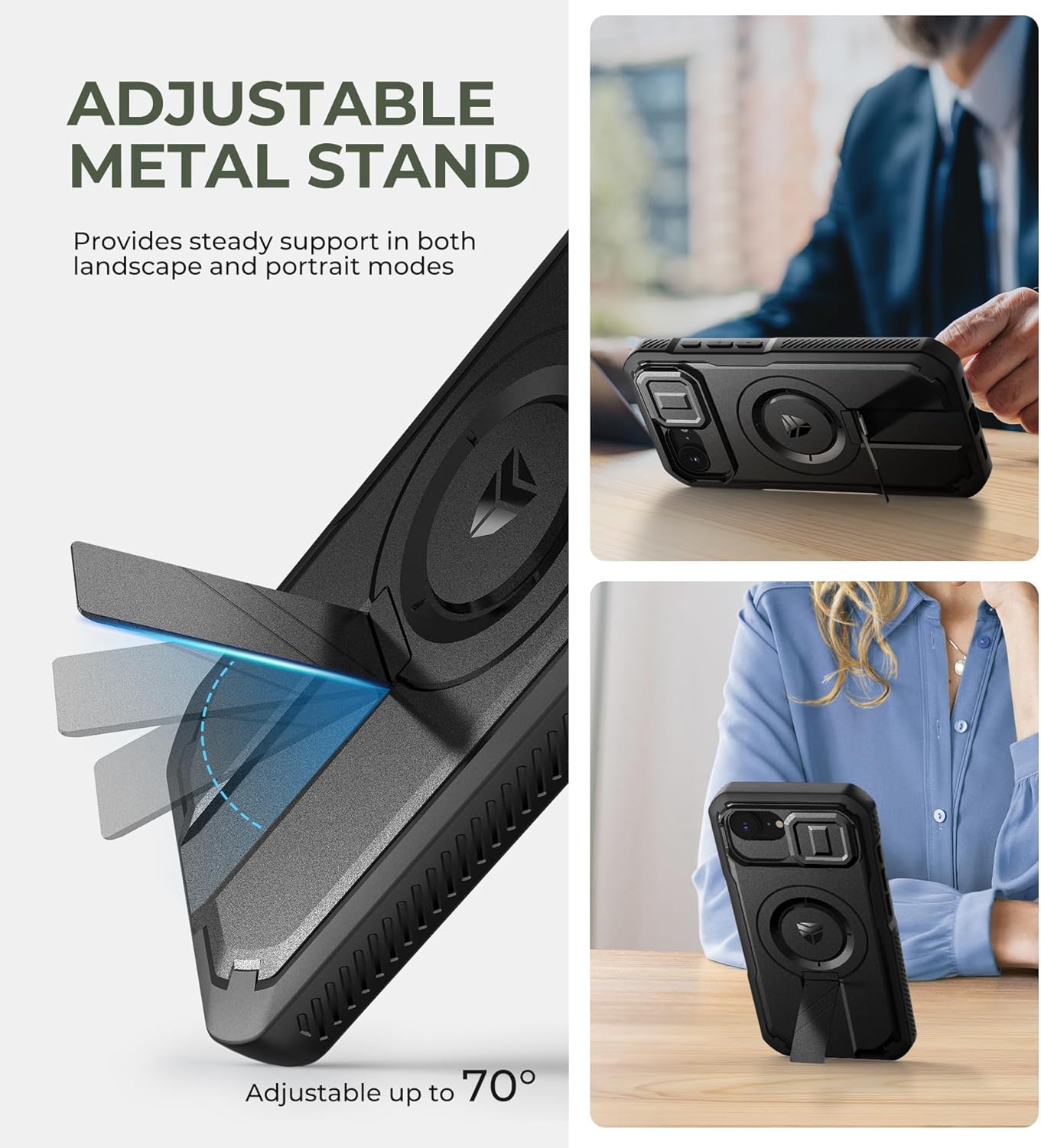 SURITCH 适用于 iPhone 16 Pro 手机壳,带滑动相机盖和可调节支架,兼容 MagSafe,防震防撞保护套,适用于 iPhone 16 Pro 6.3 英寸,黑色