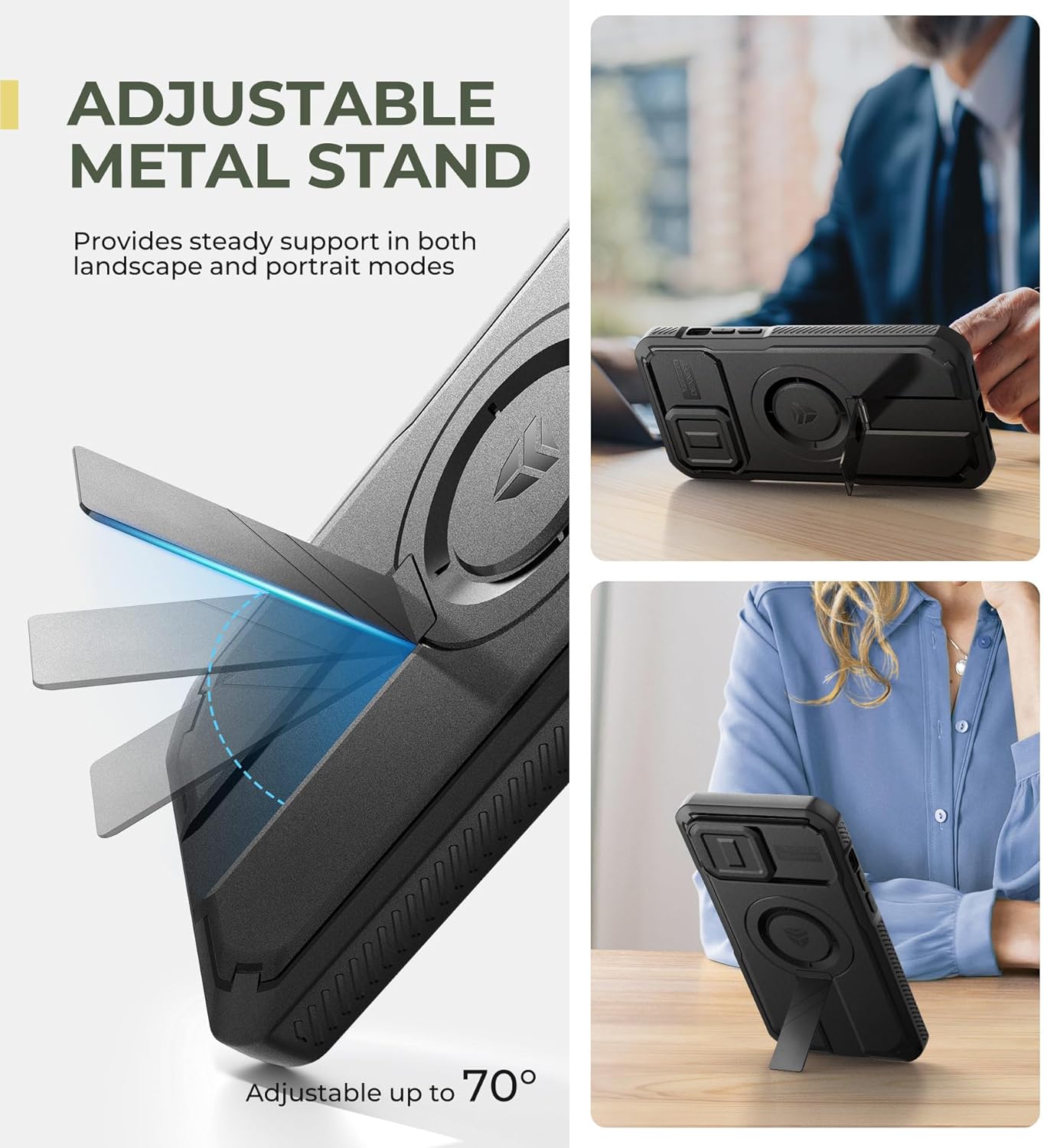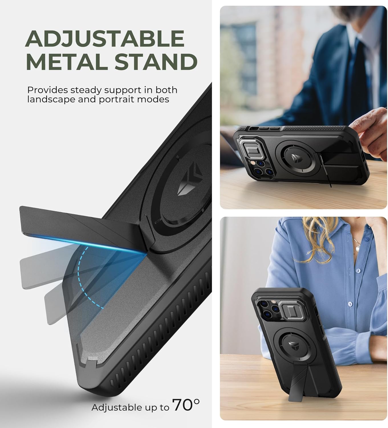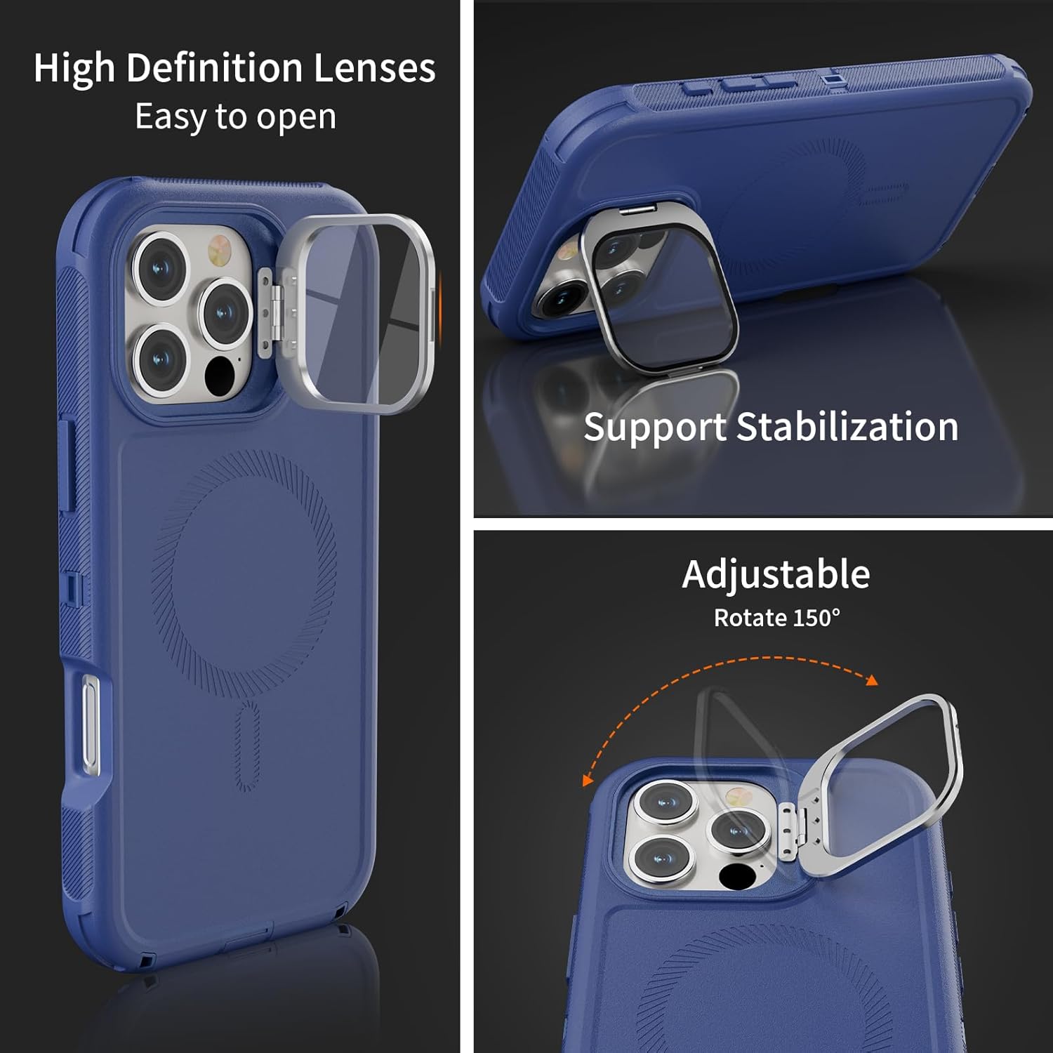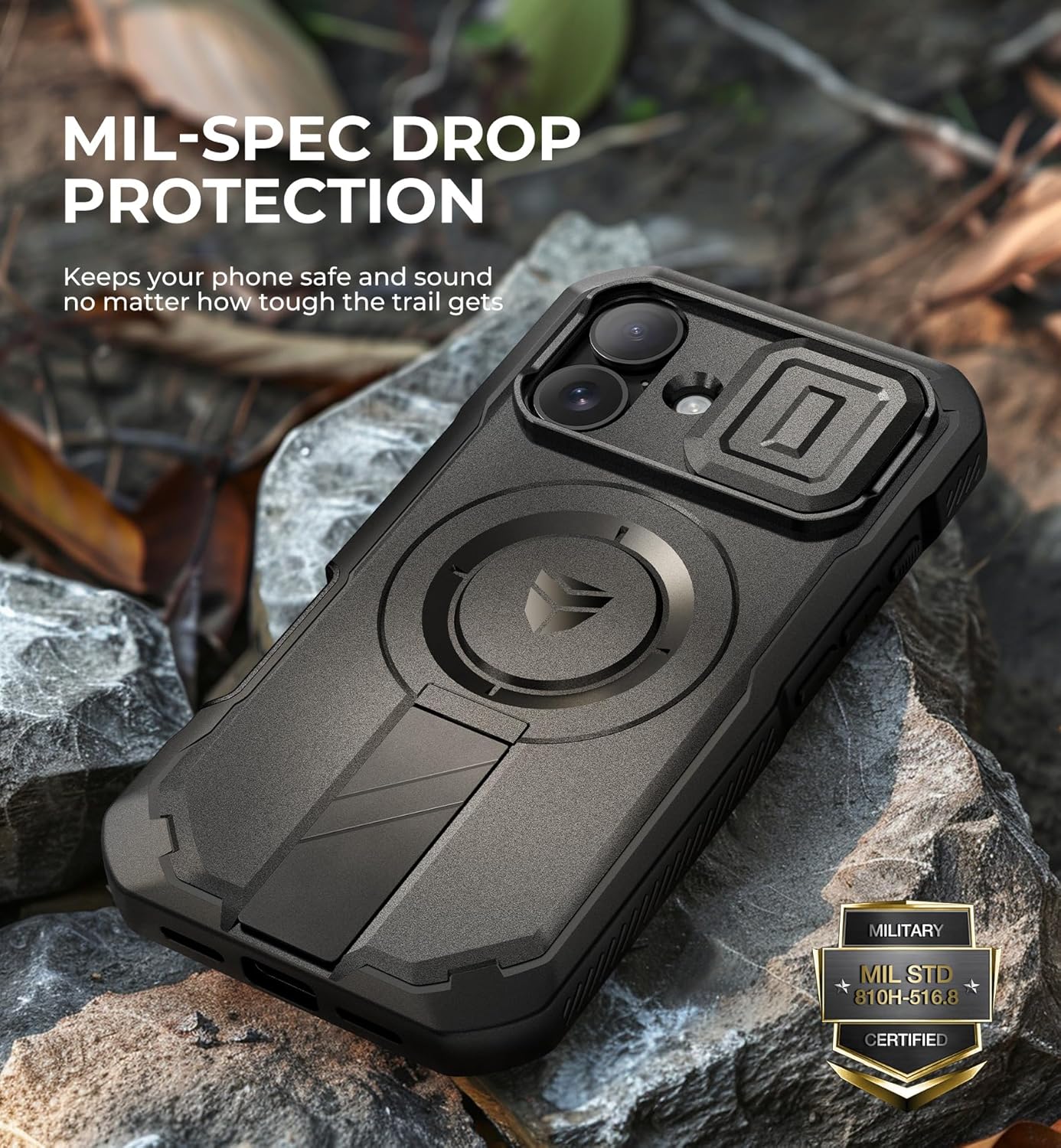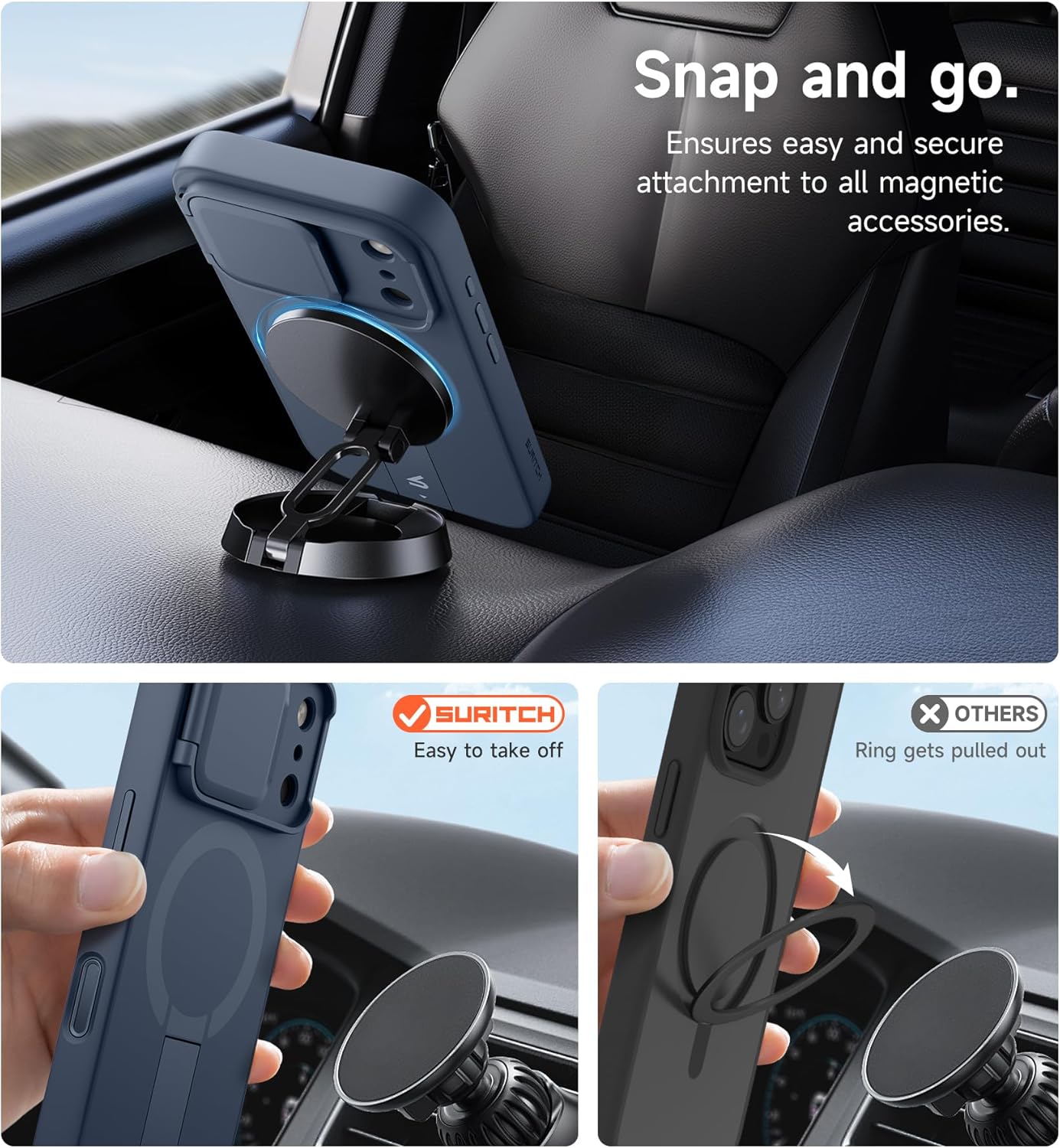 SURITCH 适用于 iPhone 16 Pro 手机壳,带滑动相机盖和可调节支架,兼容 MagSafe,防震防撞保护套,适用于 iPhone 16 Pro 6.3 英寸,黑色
