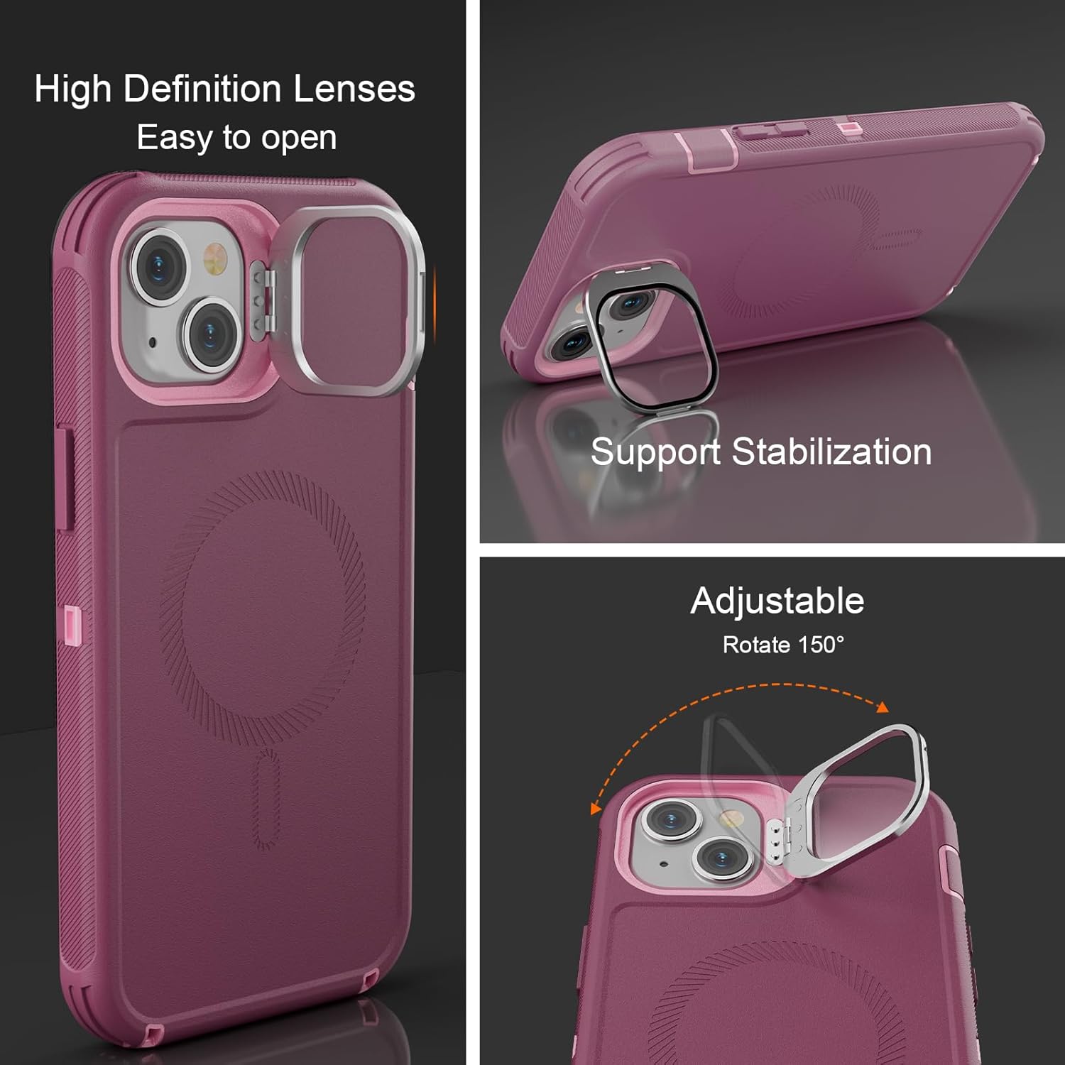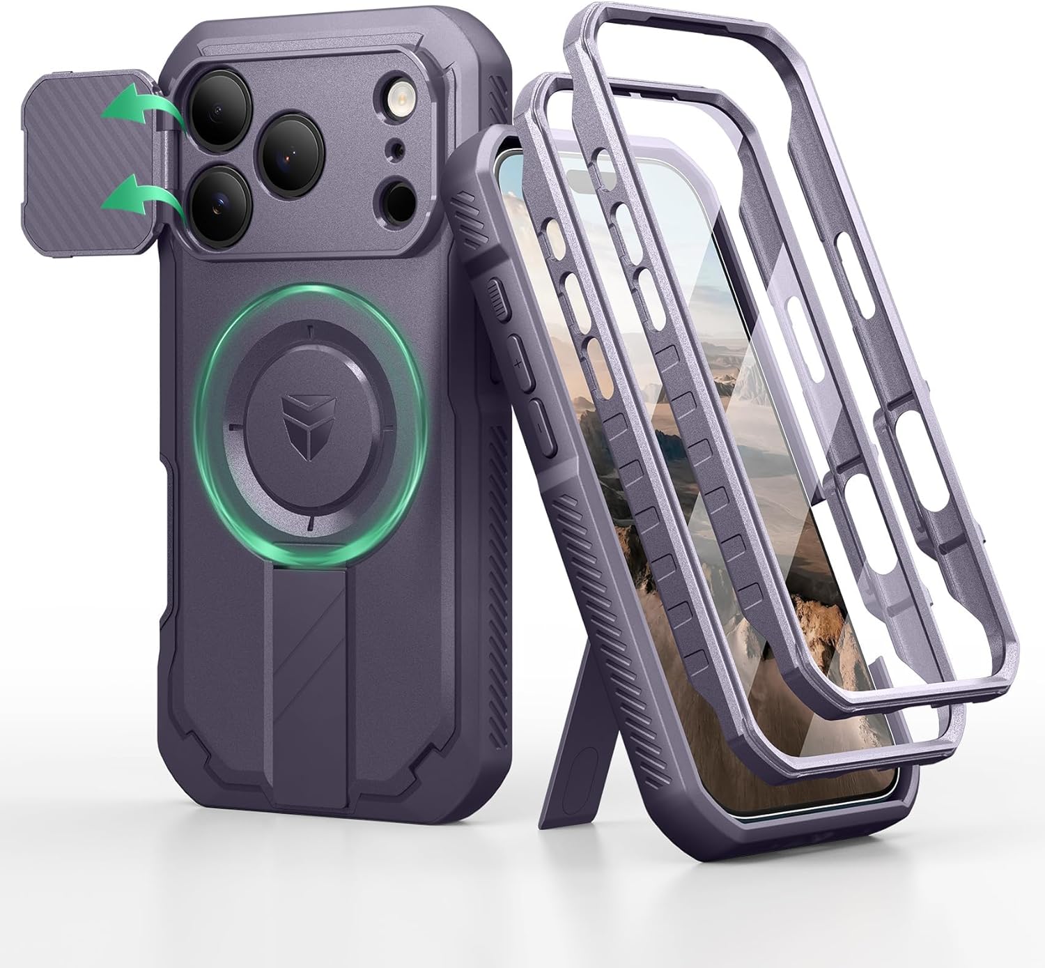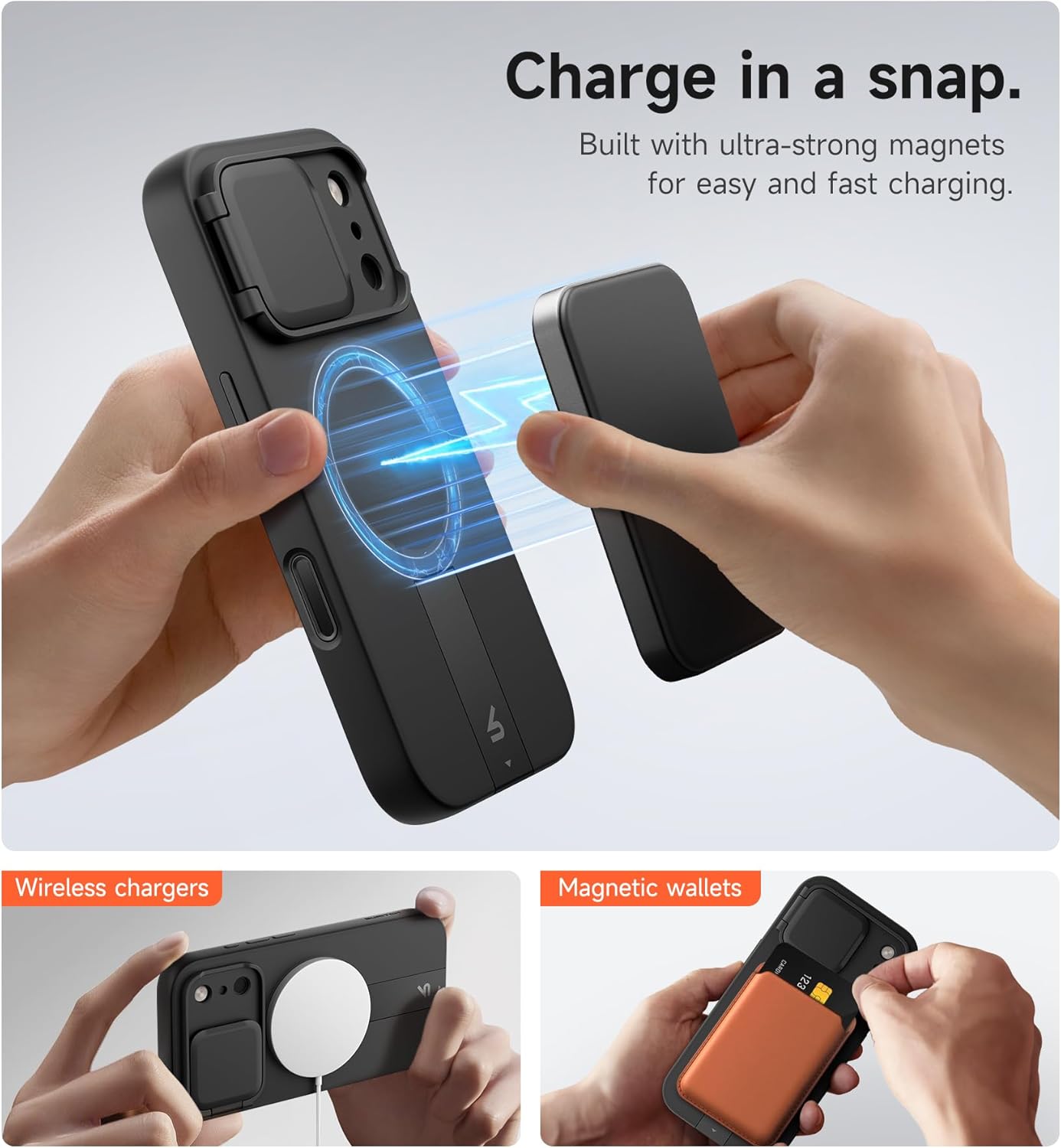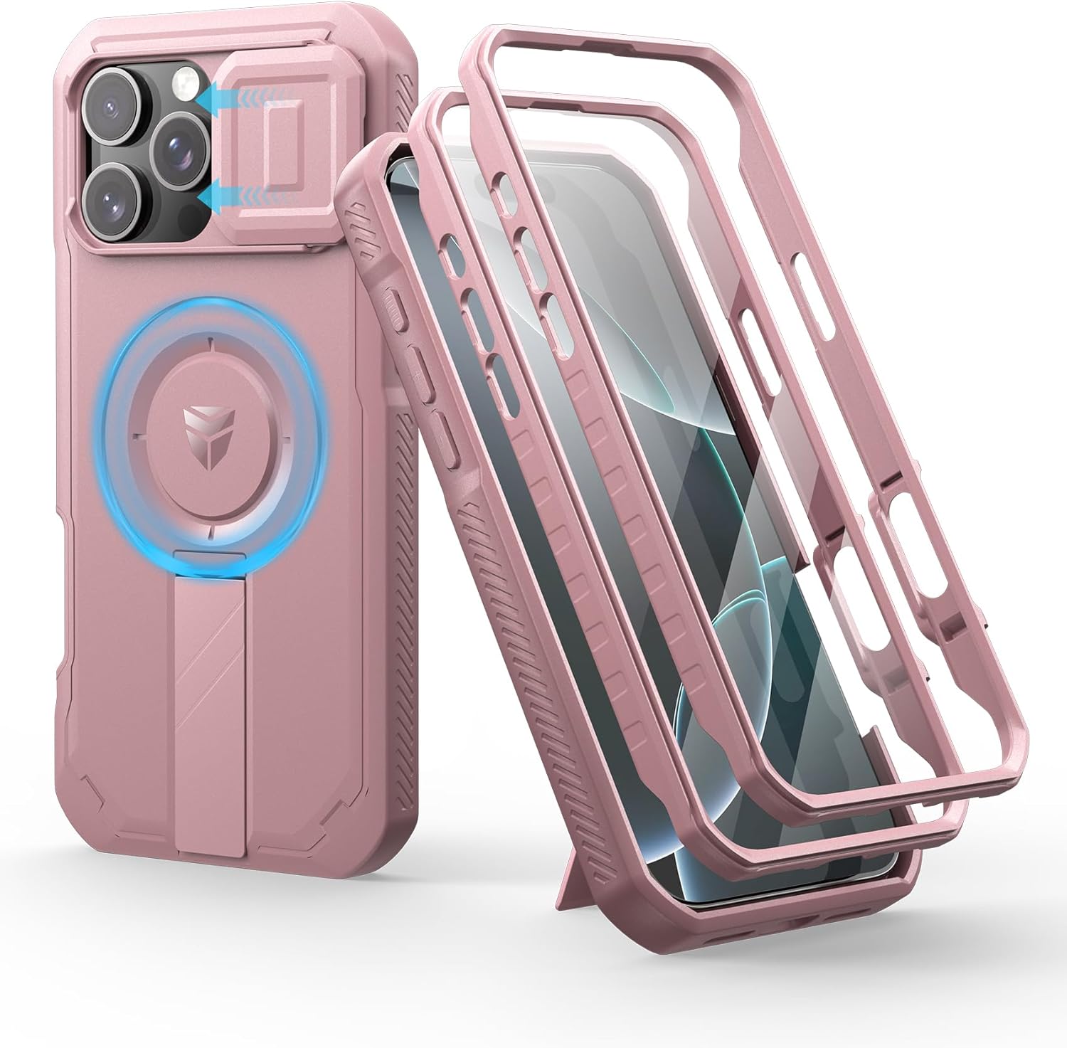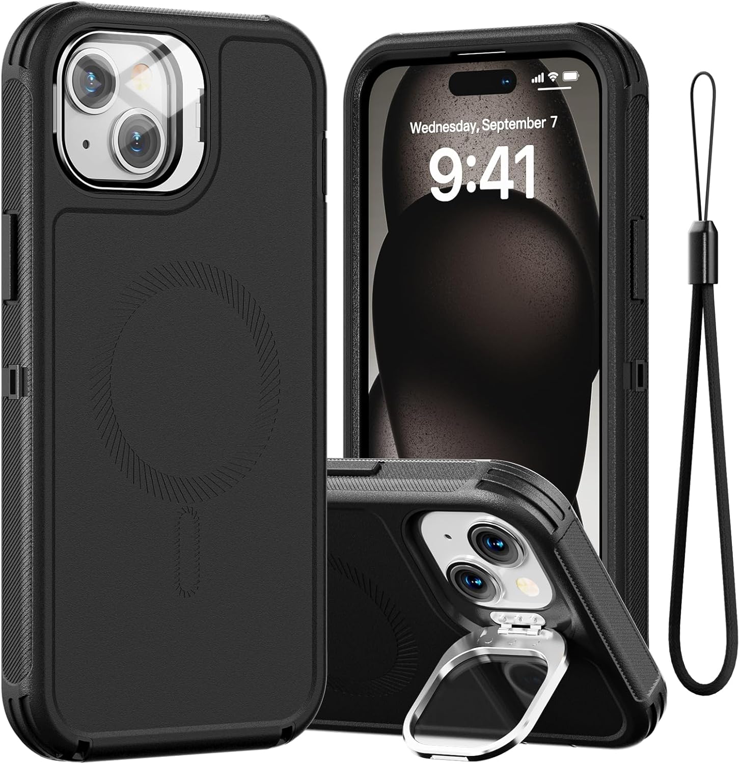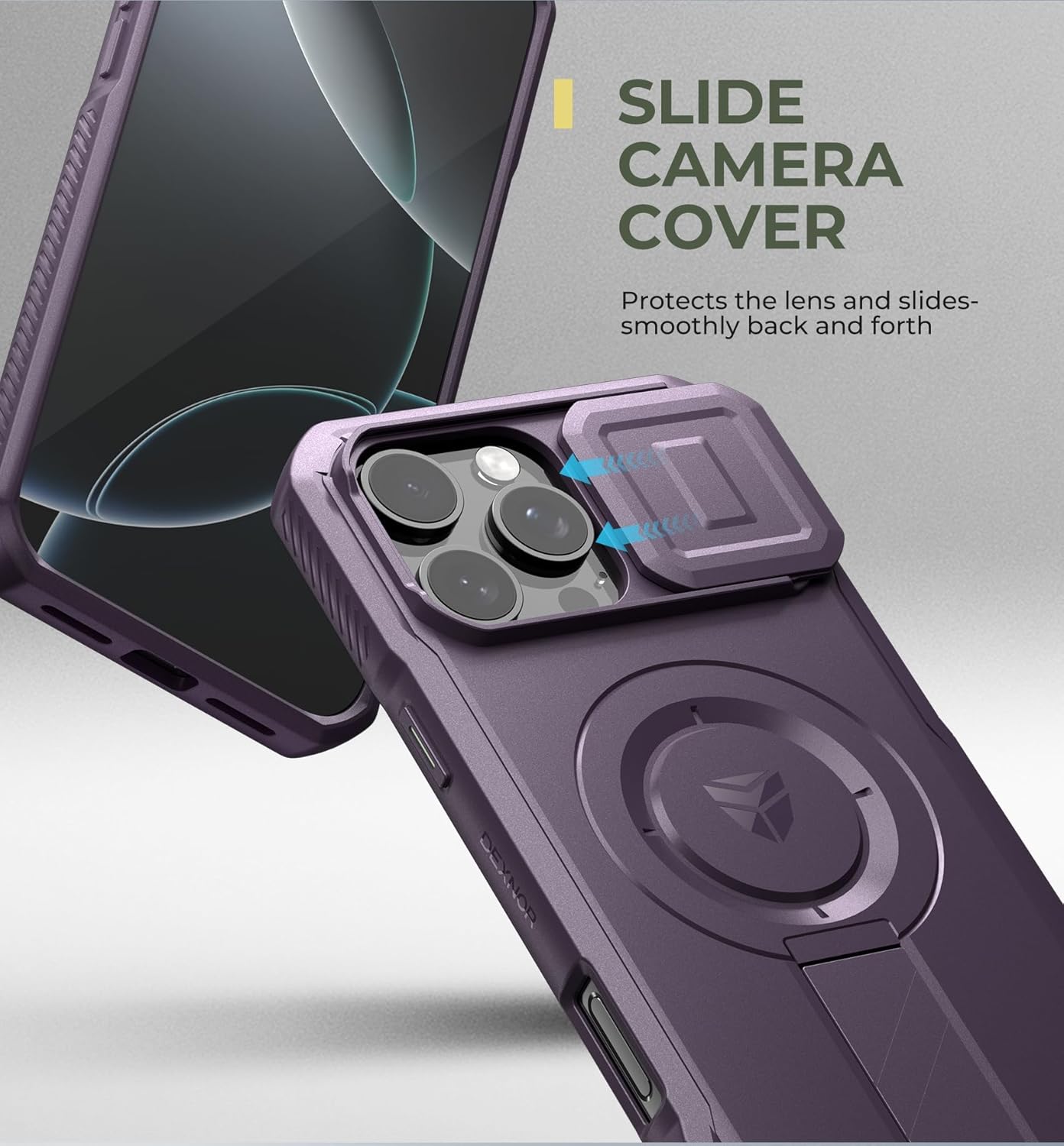 SURITCH 适用于 iPhone 16 Pro 手机壳,带滑动相机盖和可调节支架,兼容 MagSafe,防震防撞保护套,适用于 iPhone 16 Pro 6.3 英寸,黑色
