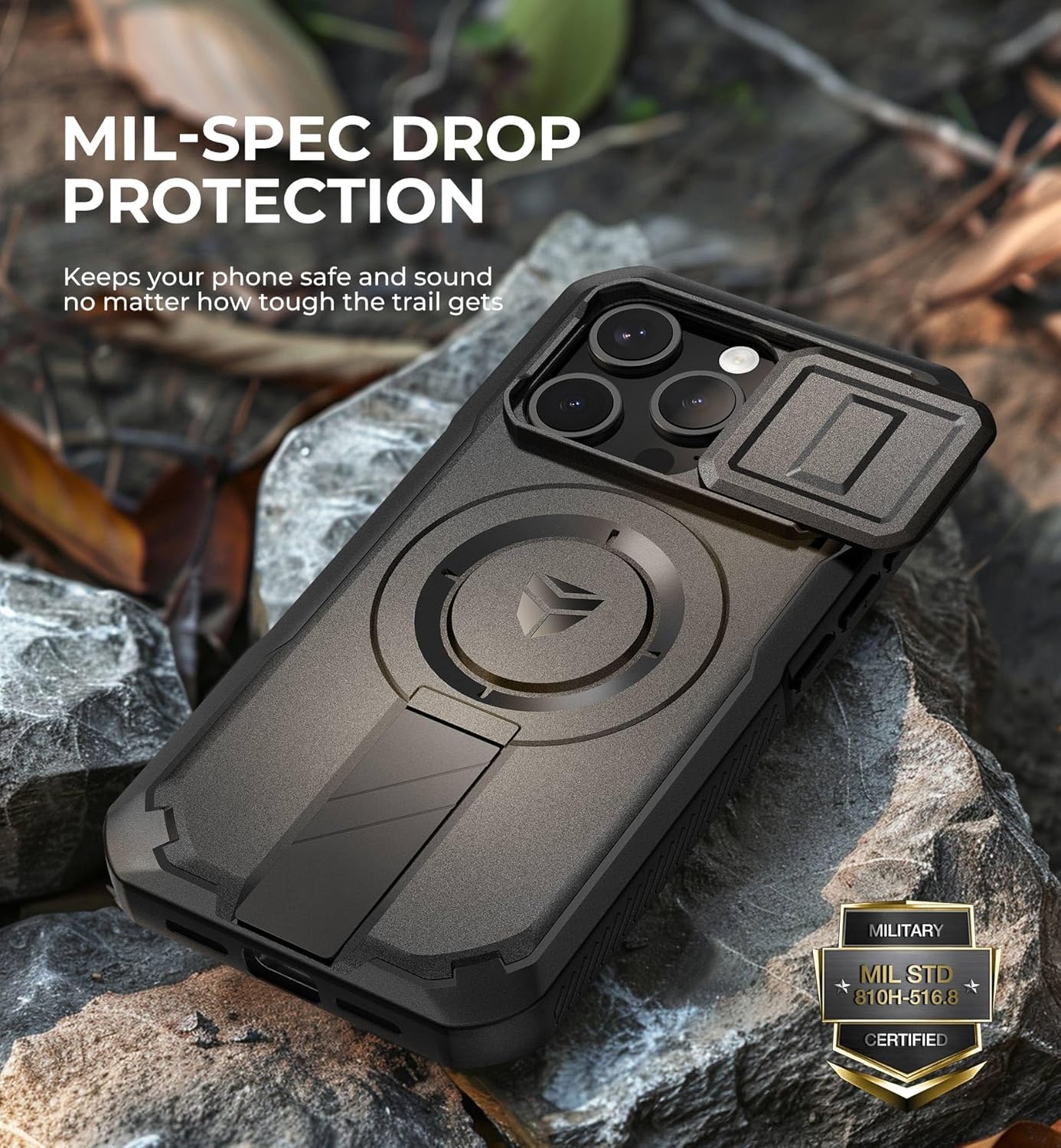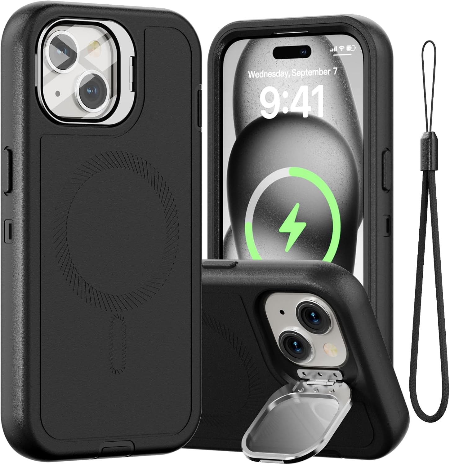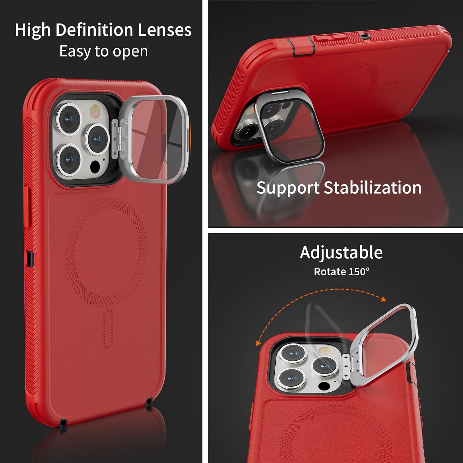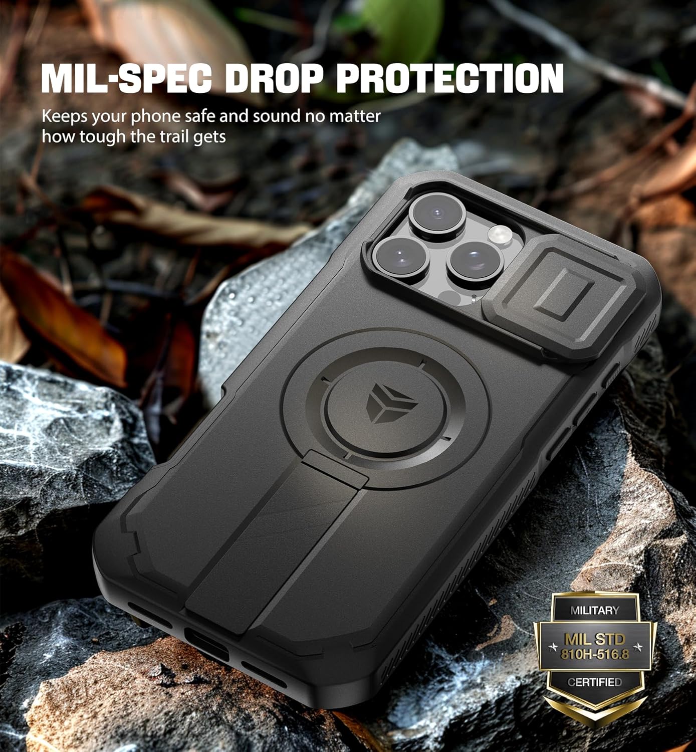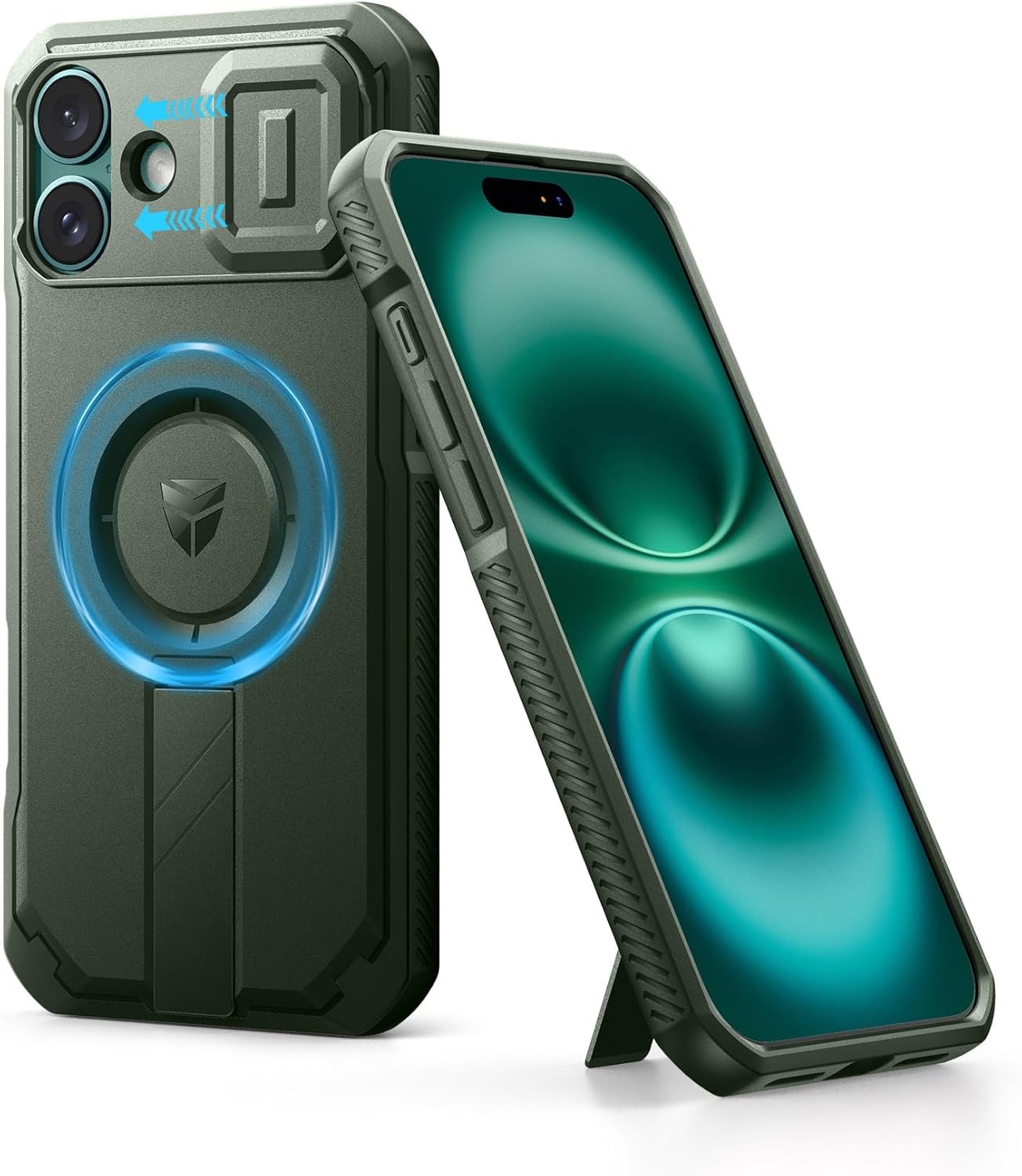 SURITCH 适用于 iPhone 16 Pro 手机壳,带滑动相机盖和可调节支架,兼容 MagSafe,防震防撞保护套,适用于 iPhone 16 Pro 6.3 英寸,黑色