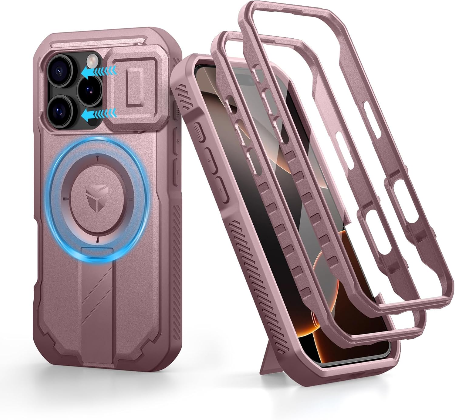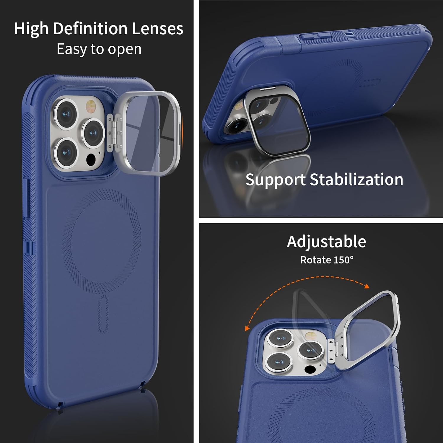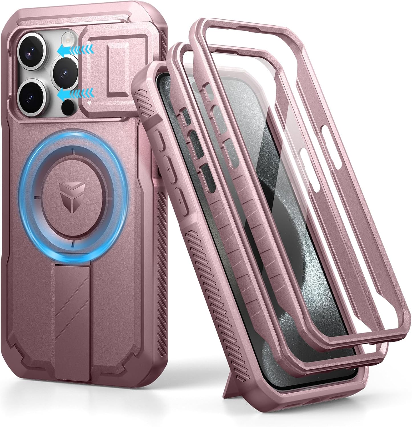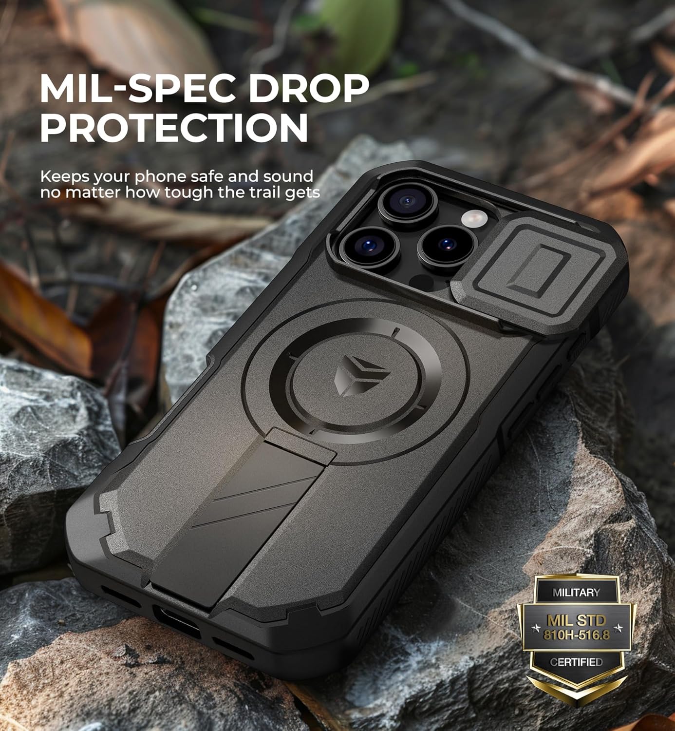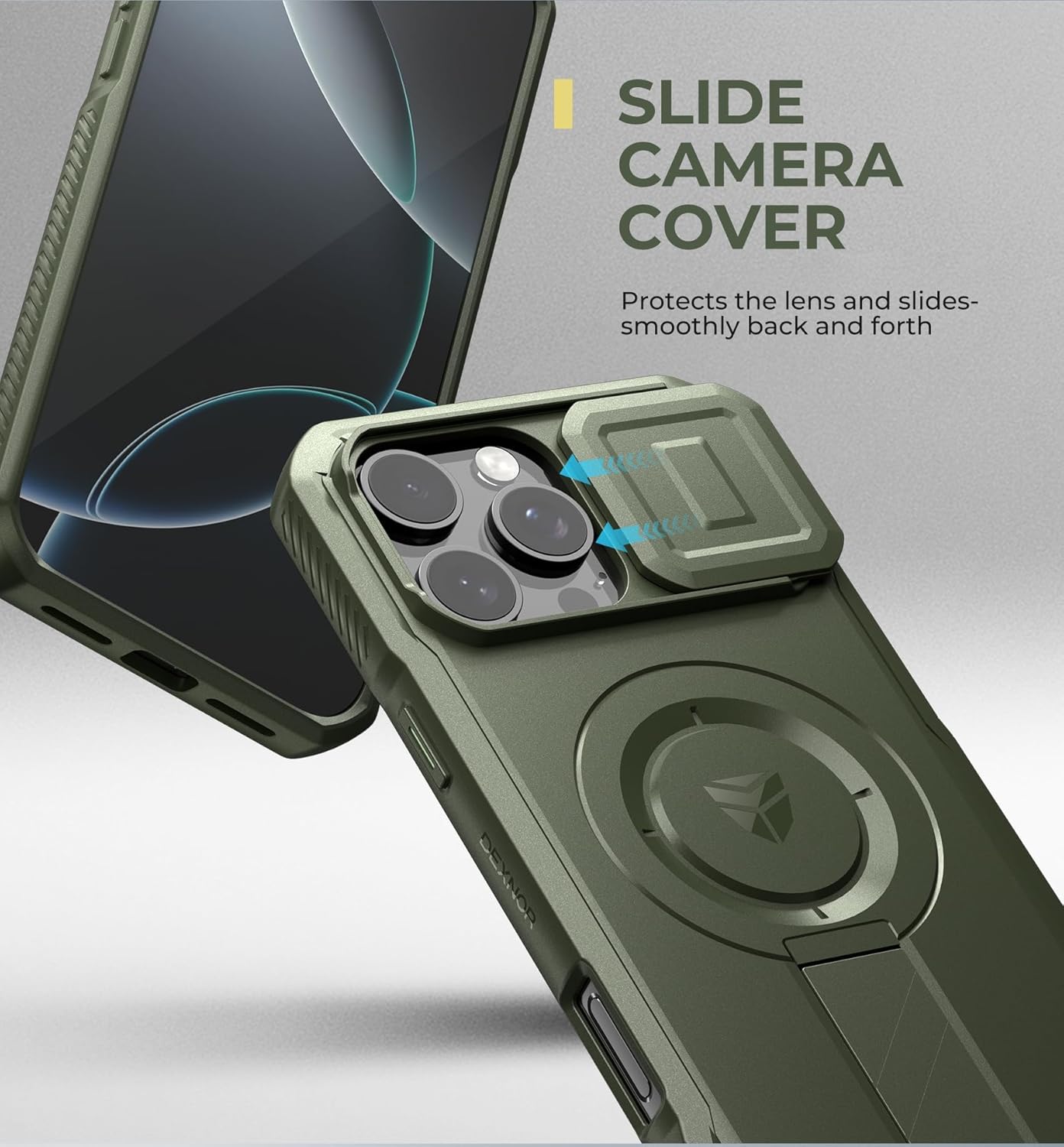 SURITCH 适用于 iPhone 16 Pro 手机壳,带滑动相机盖和可调节支架,兼容 MagSafe,防震防撞保护套,适用于 iPhone 16 Pro 6.3 英寸,黑色
