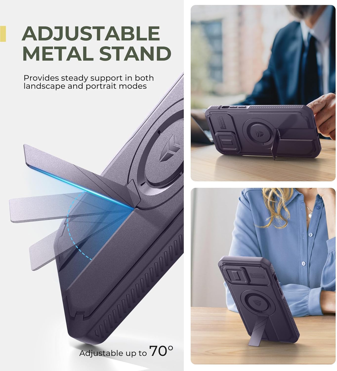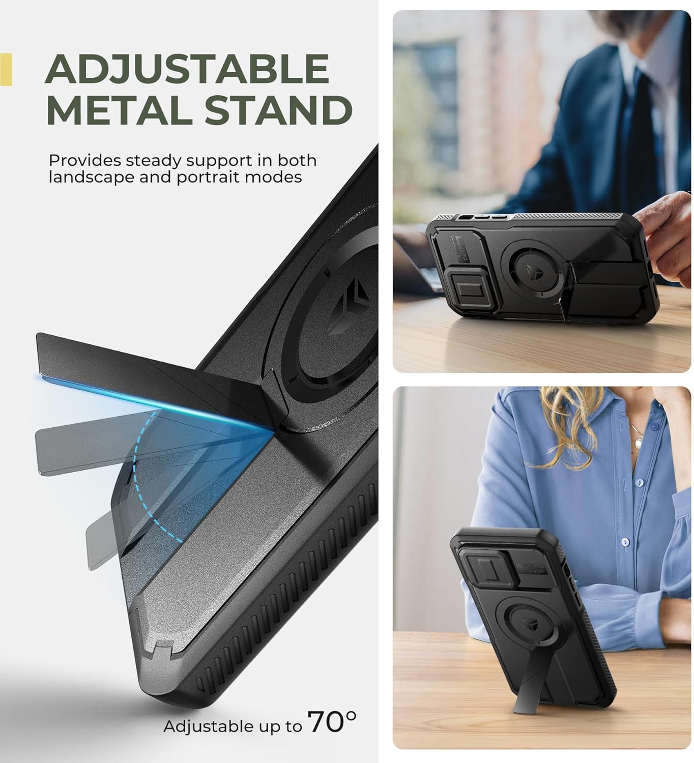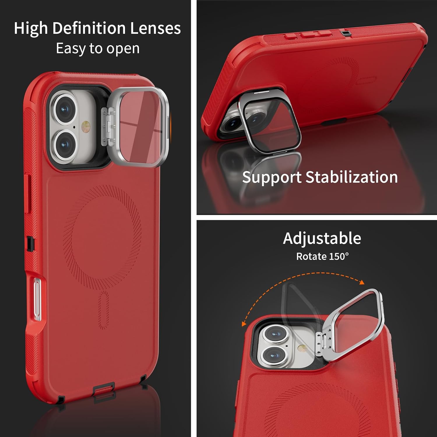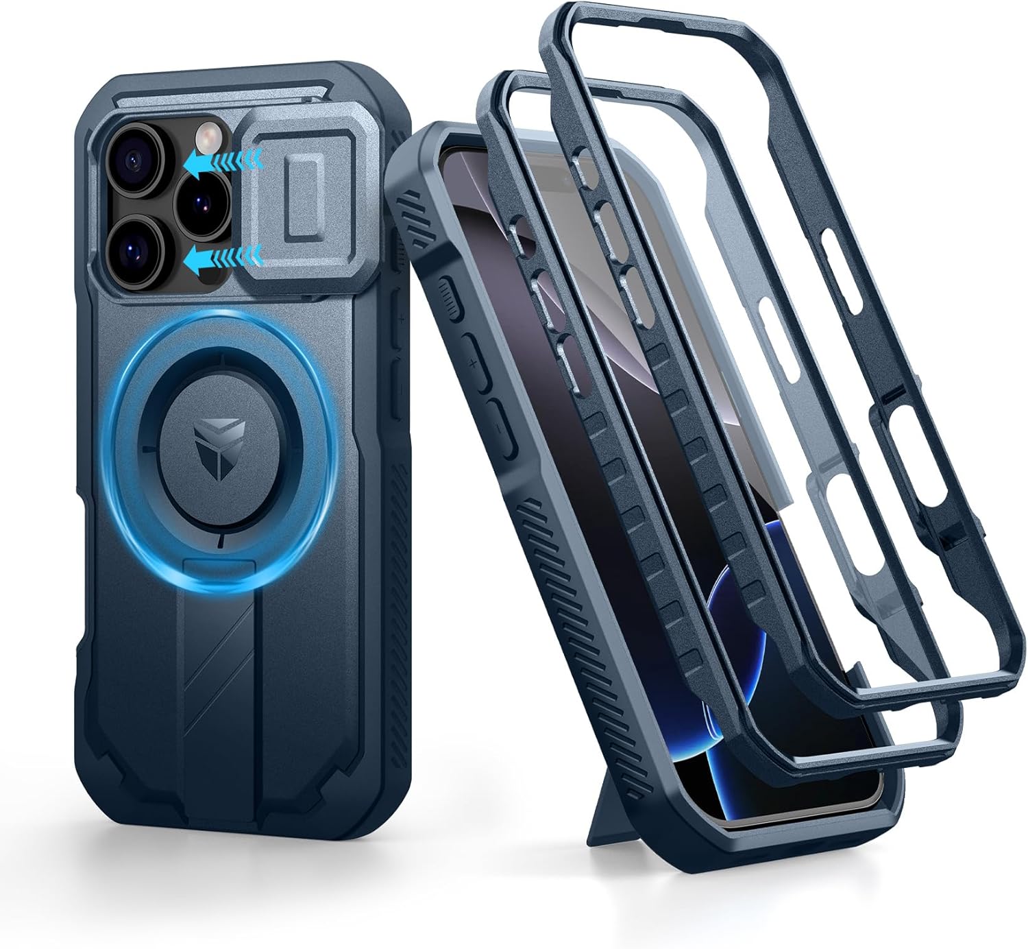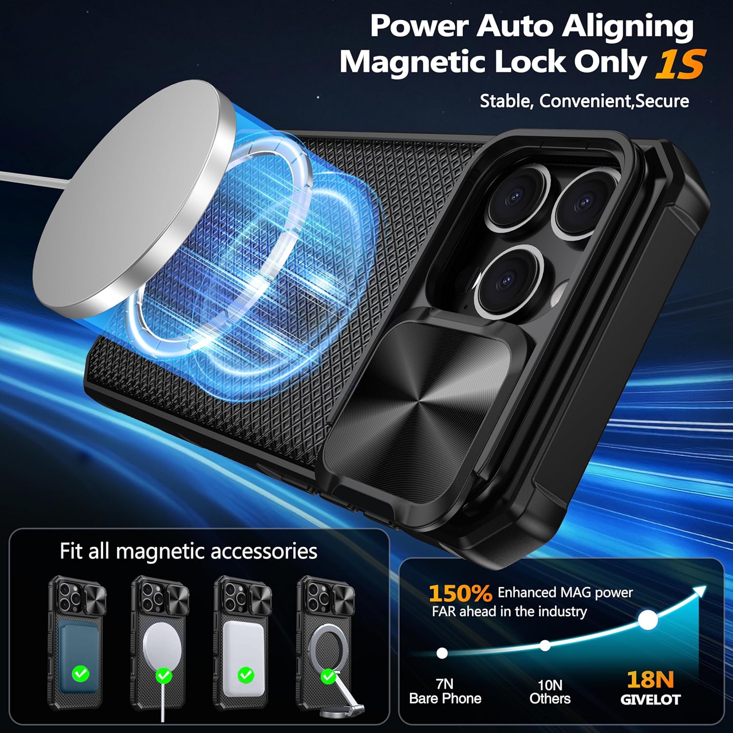 SURITCH 适用于 iPhone 16 Pro 手机壳,带滑动相机盖和可调节支架,兼容 MagSafe,防震防撞保护套,适用于 iPhone 16 Pro 6.3 英寸,黑色