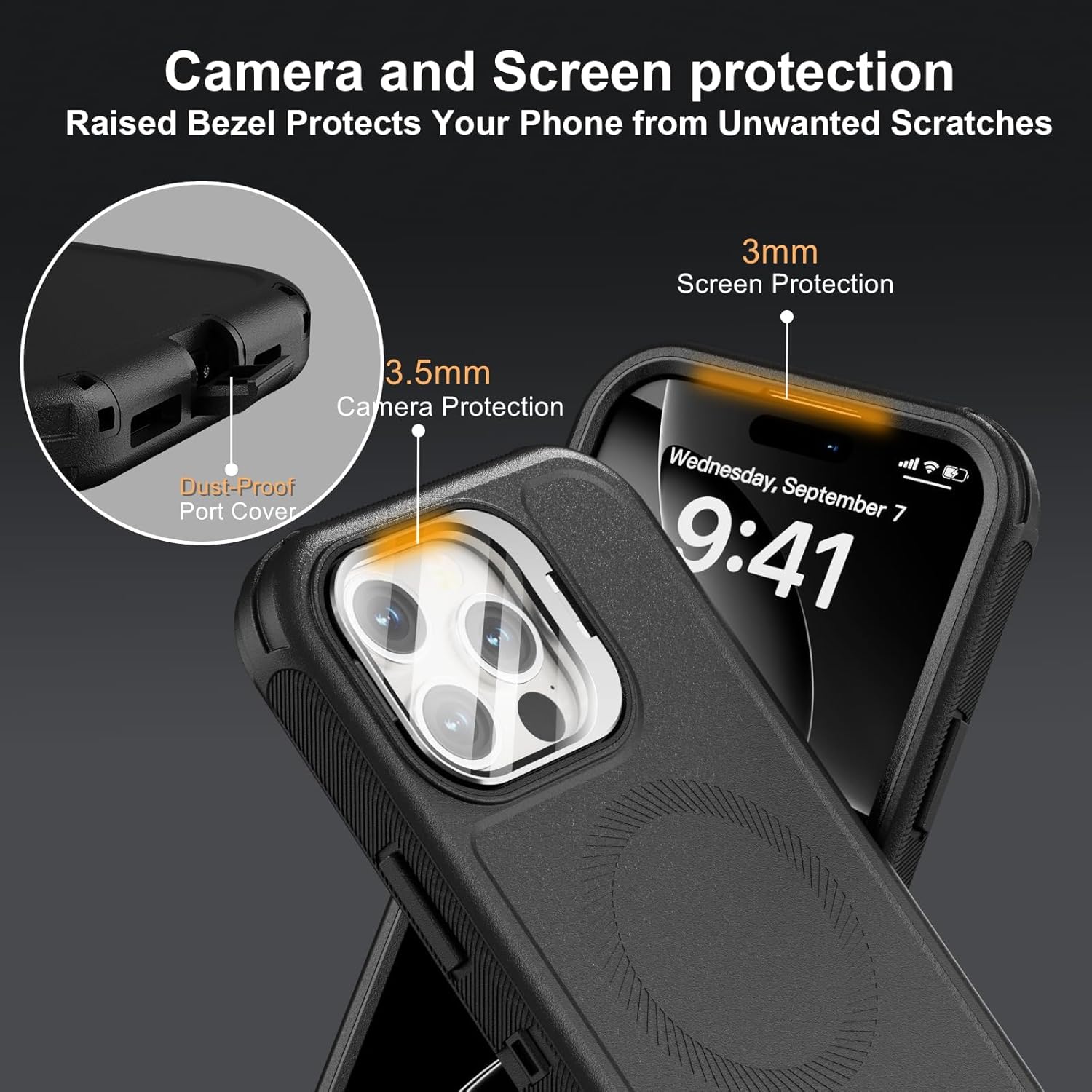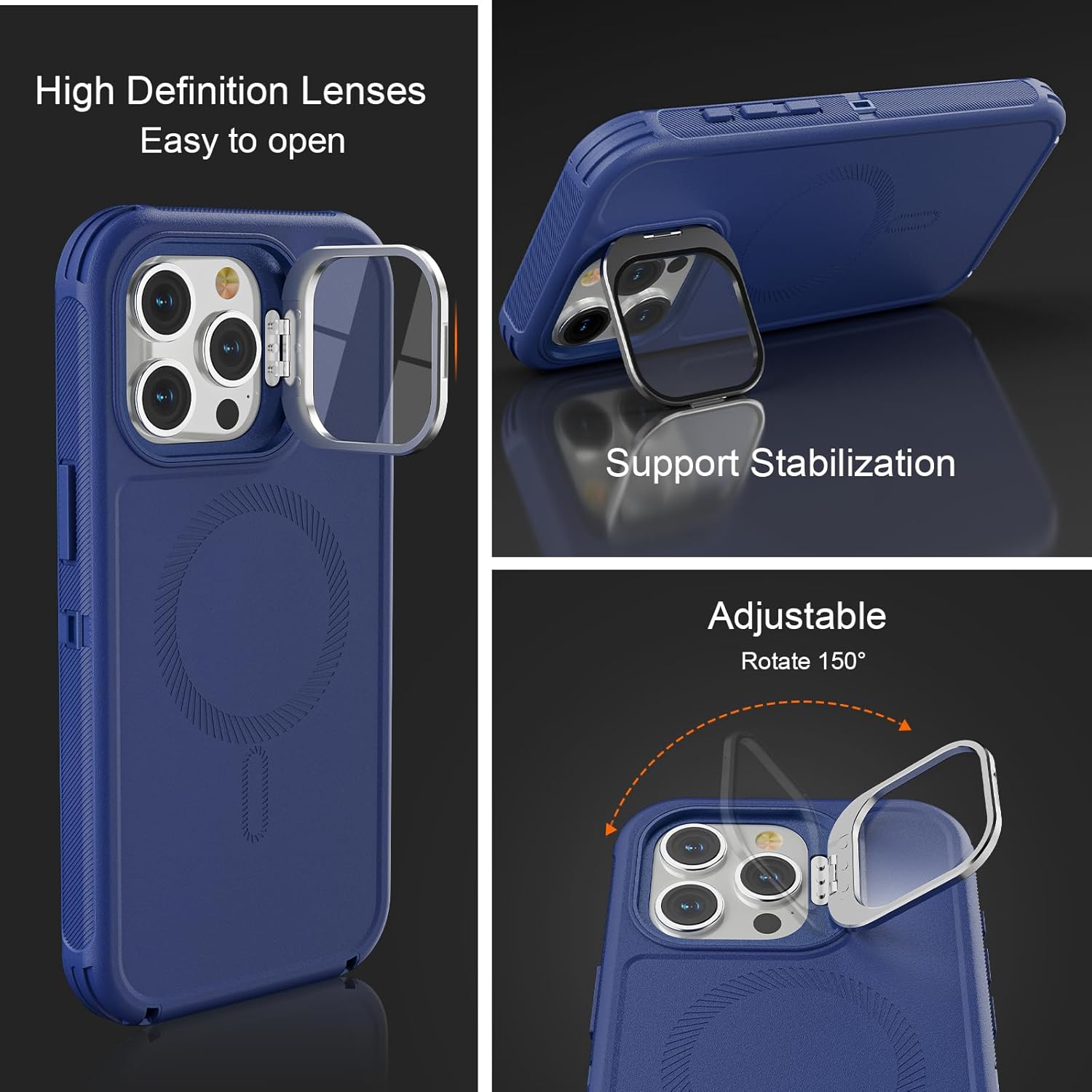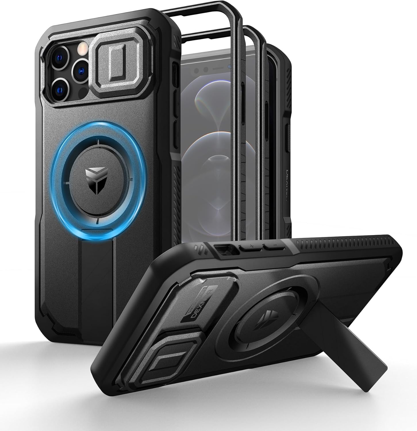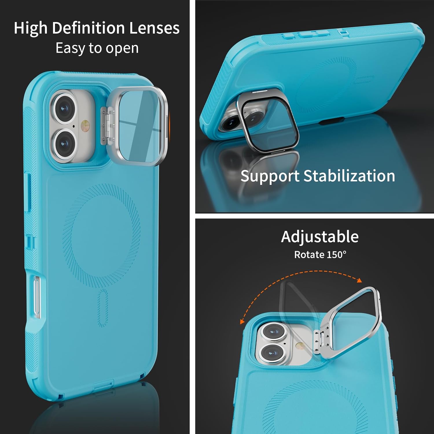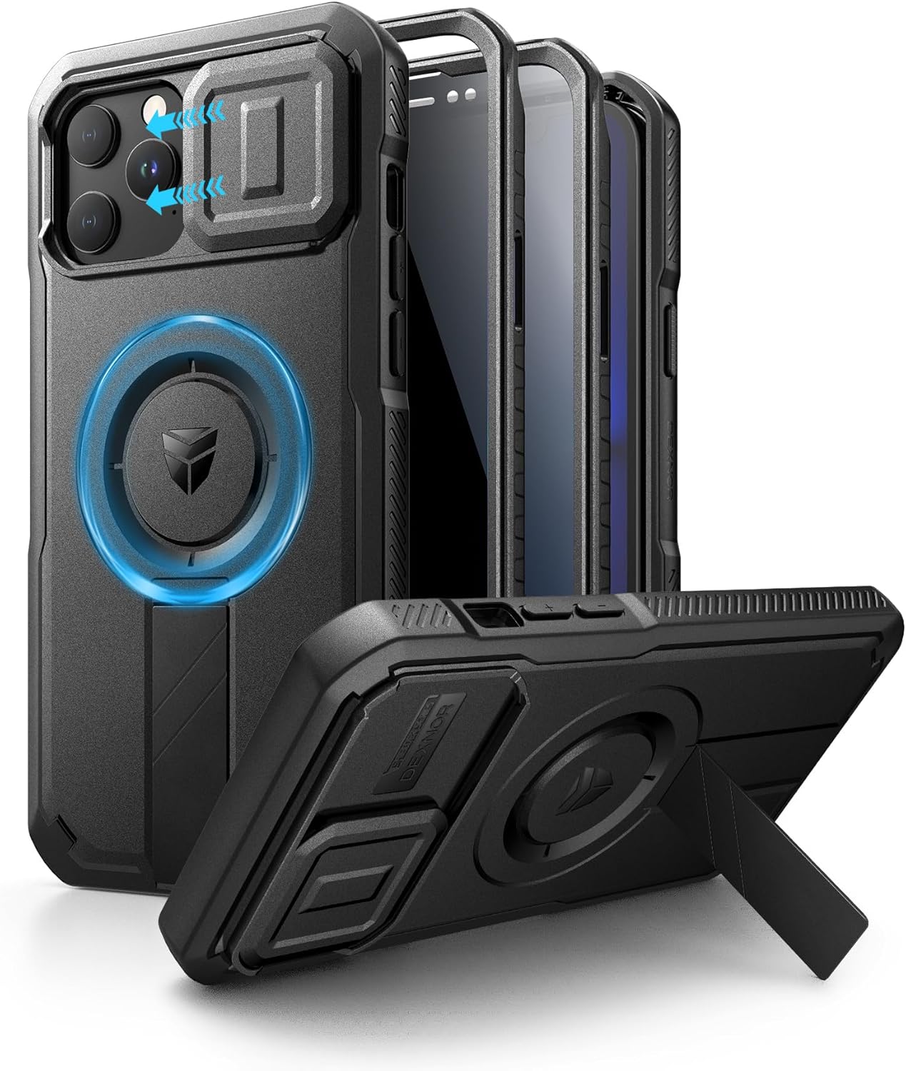SURITCH 适用于 iPhone 16 Pro 手机壳,带滑动相机盖和可调节支架,兼容 MagSafe,防震防撞保护套,适用于 iPhone 16 Pro 6.3 英寸,黑色