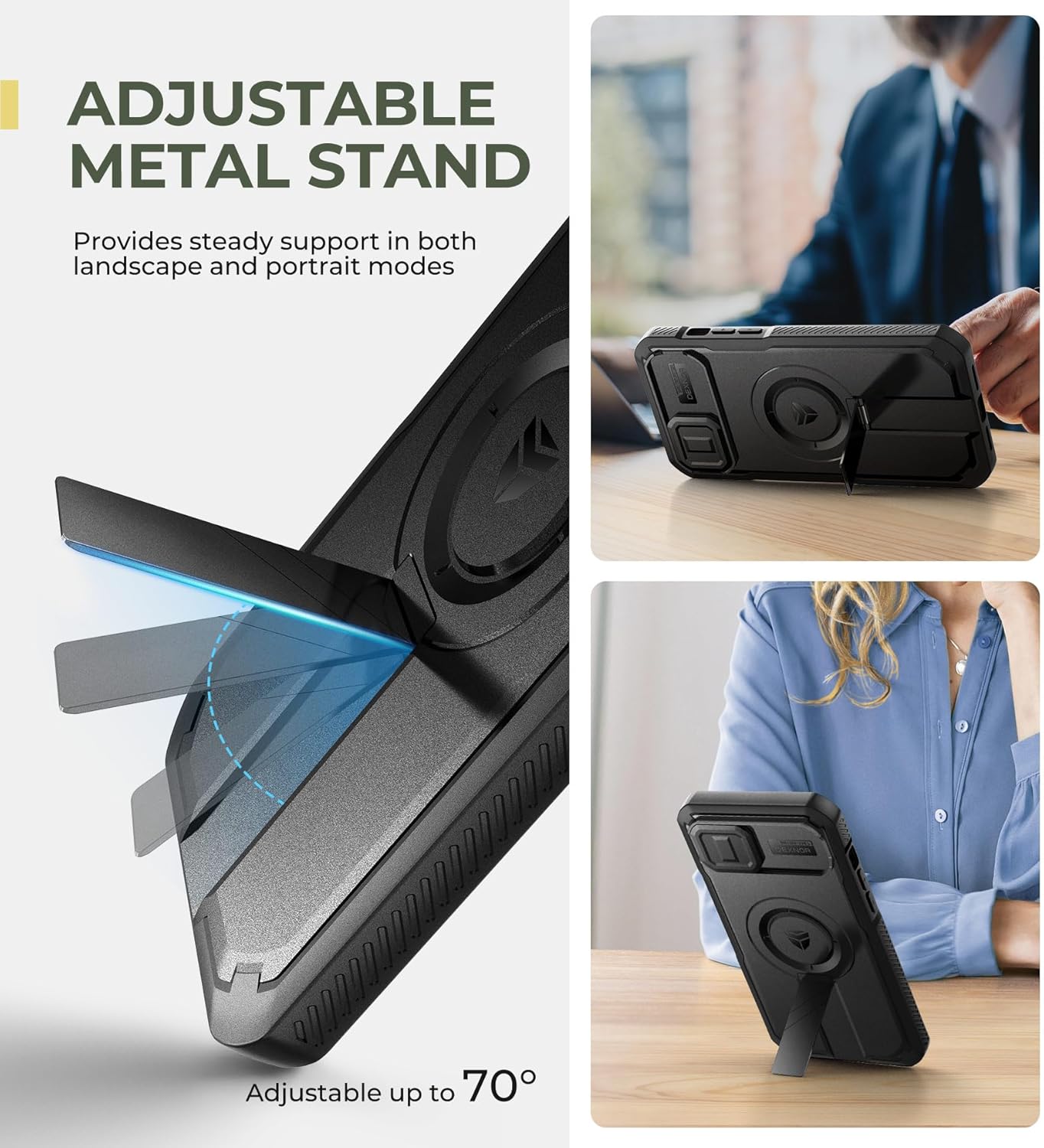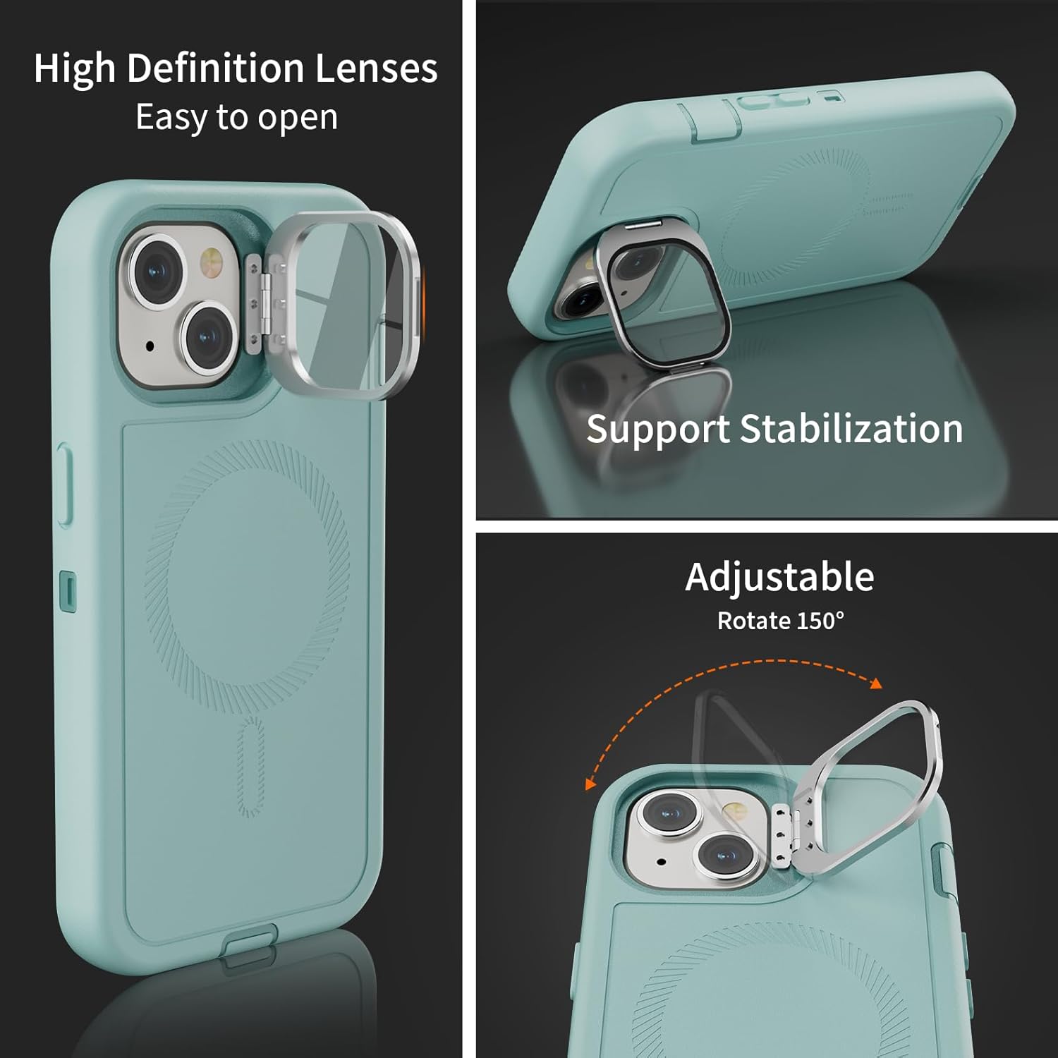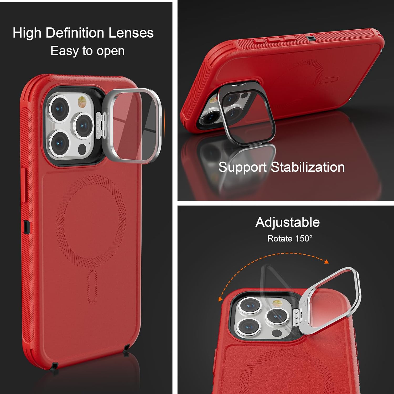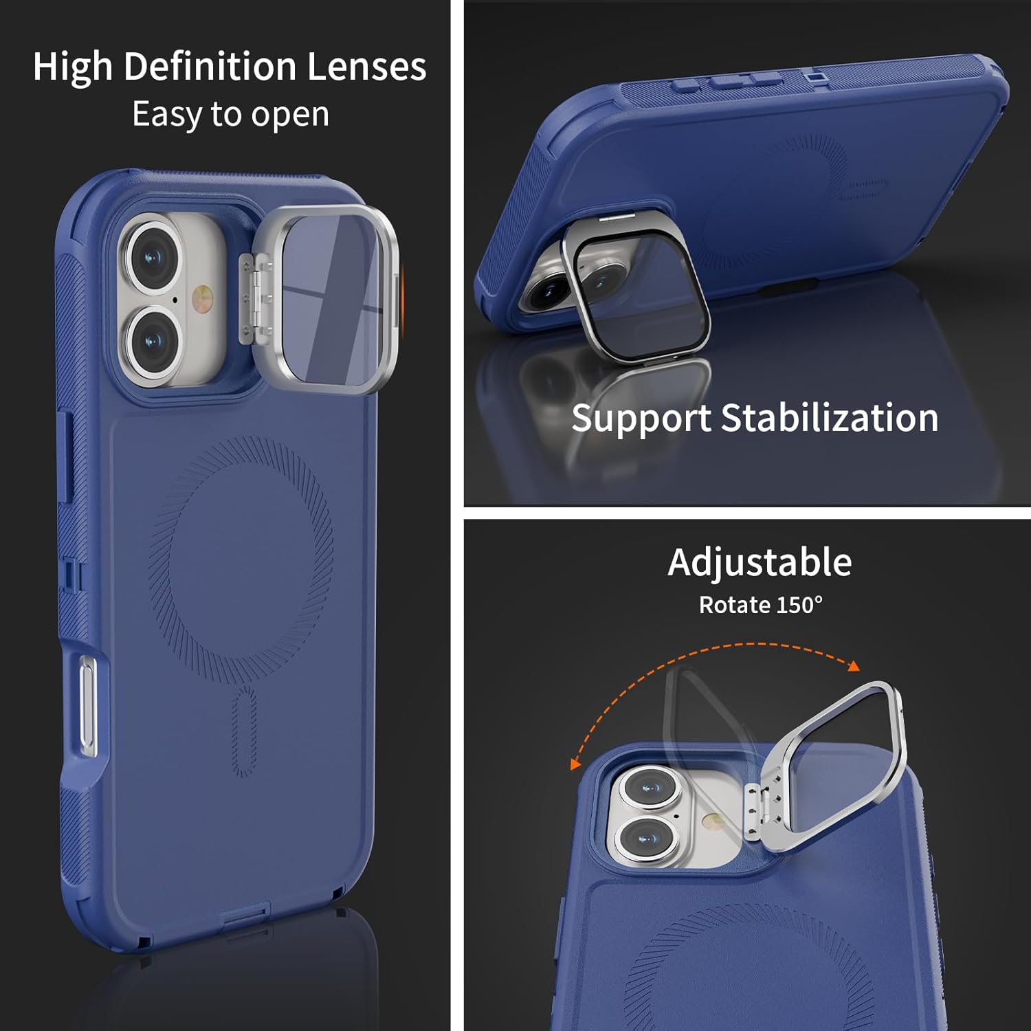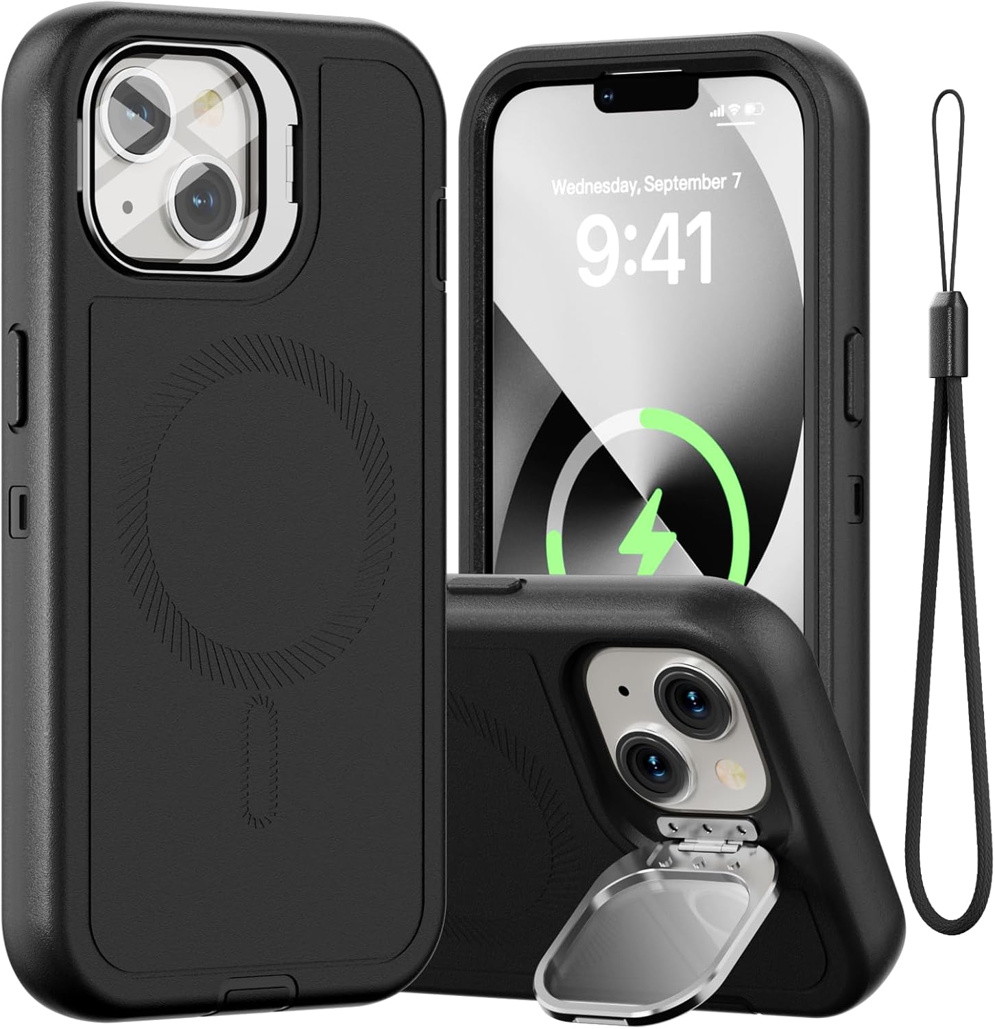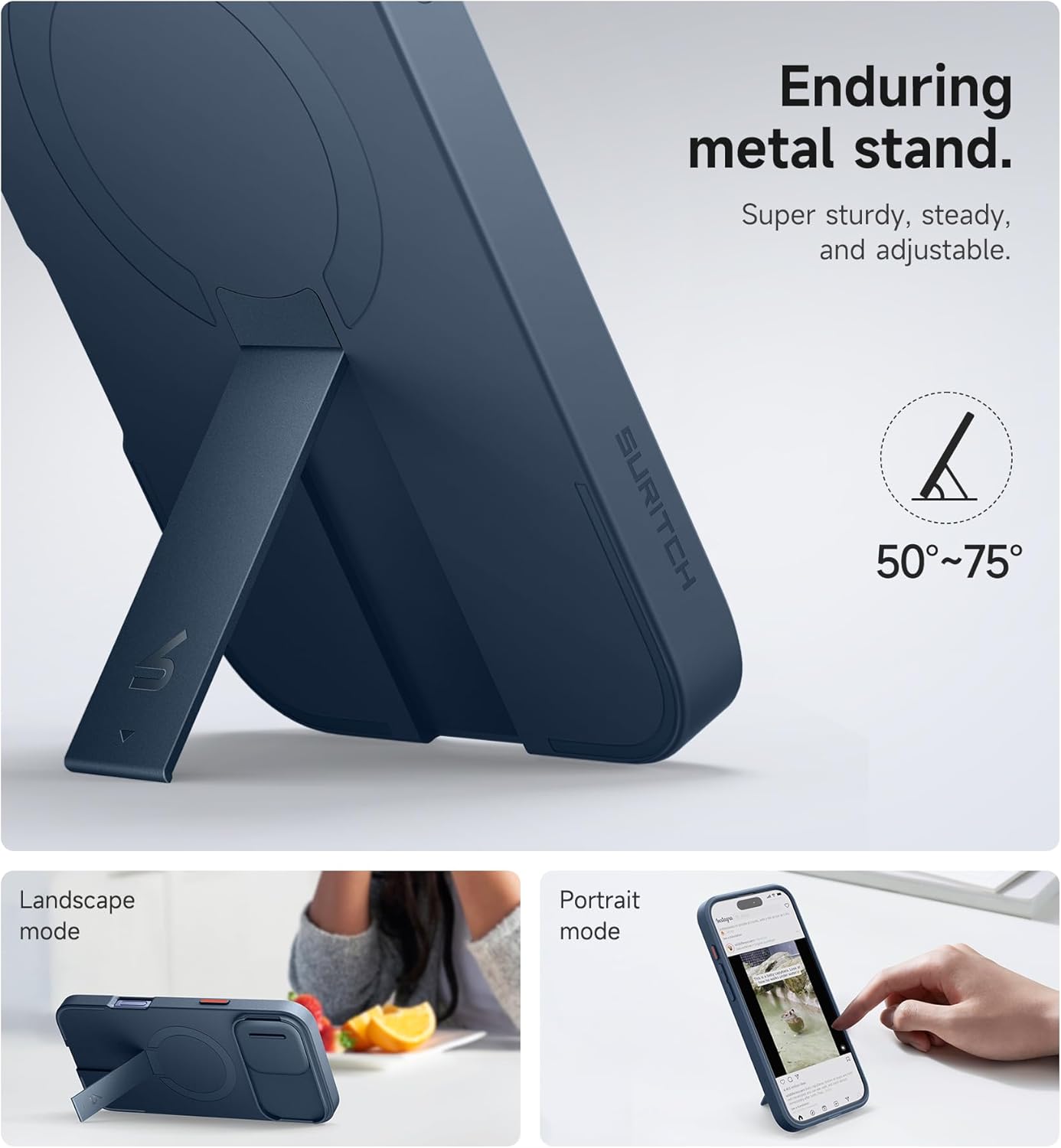 SURITCH 适用于 iPhone 16 Pro 手机壳,带滑动相机盖和可调节支架,兼容 MagSafe,防震防撞保护套,适用于 iPhone 16 Pro 6.3 英寸,黑色