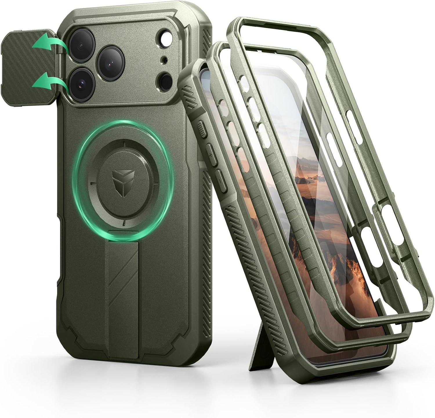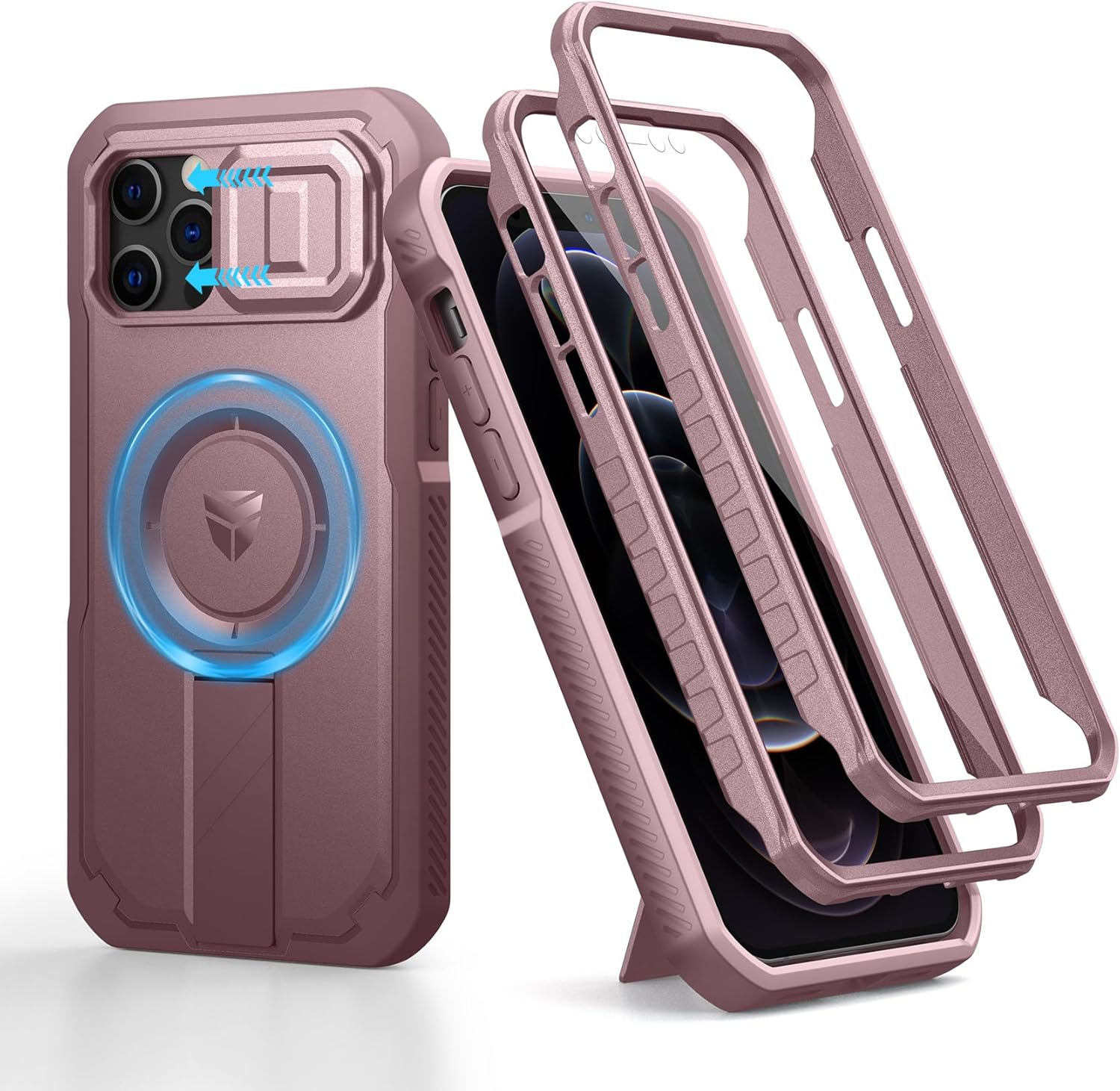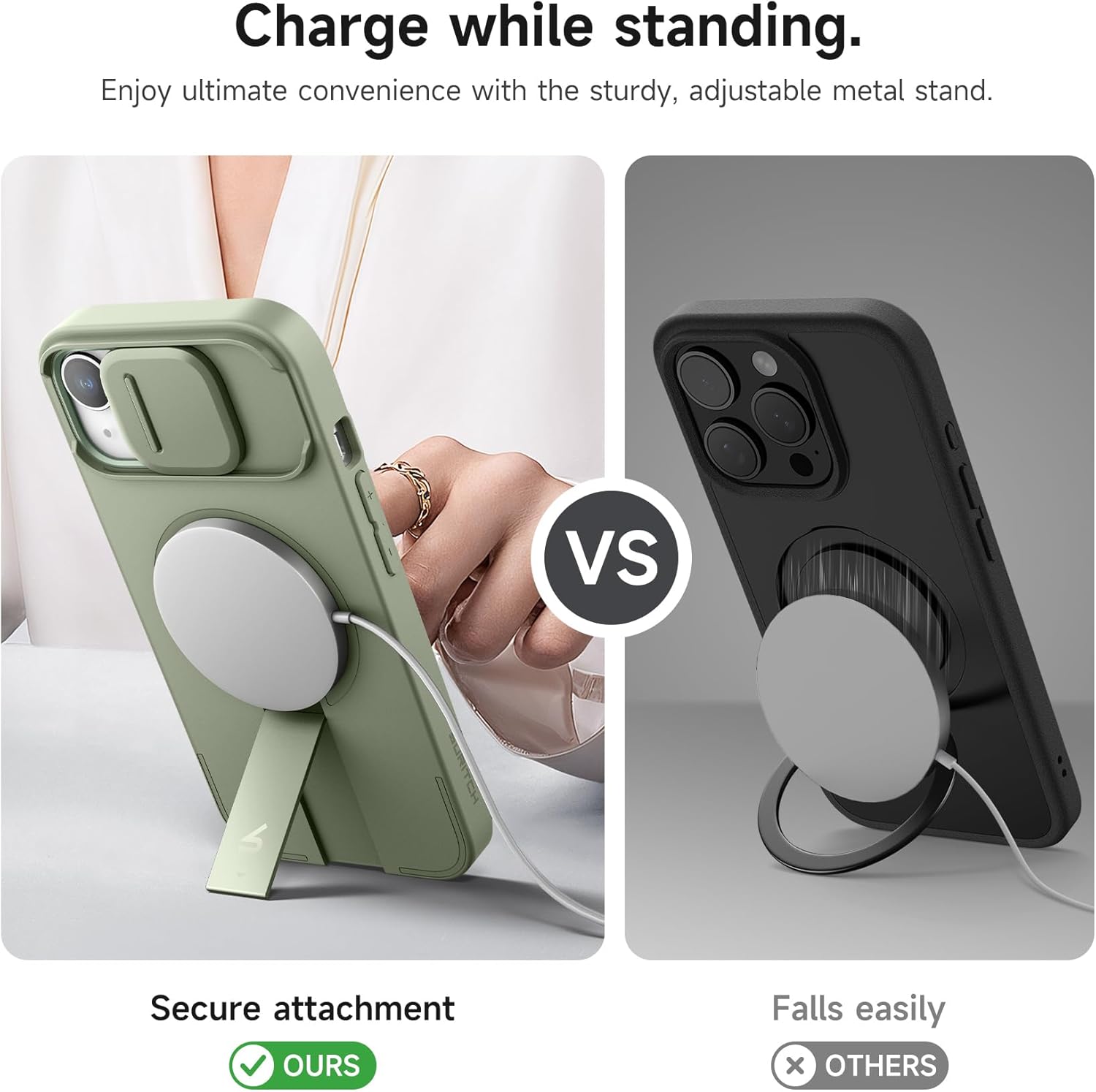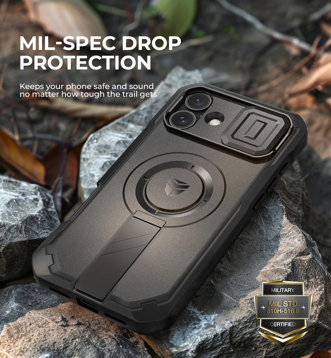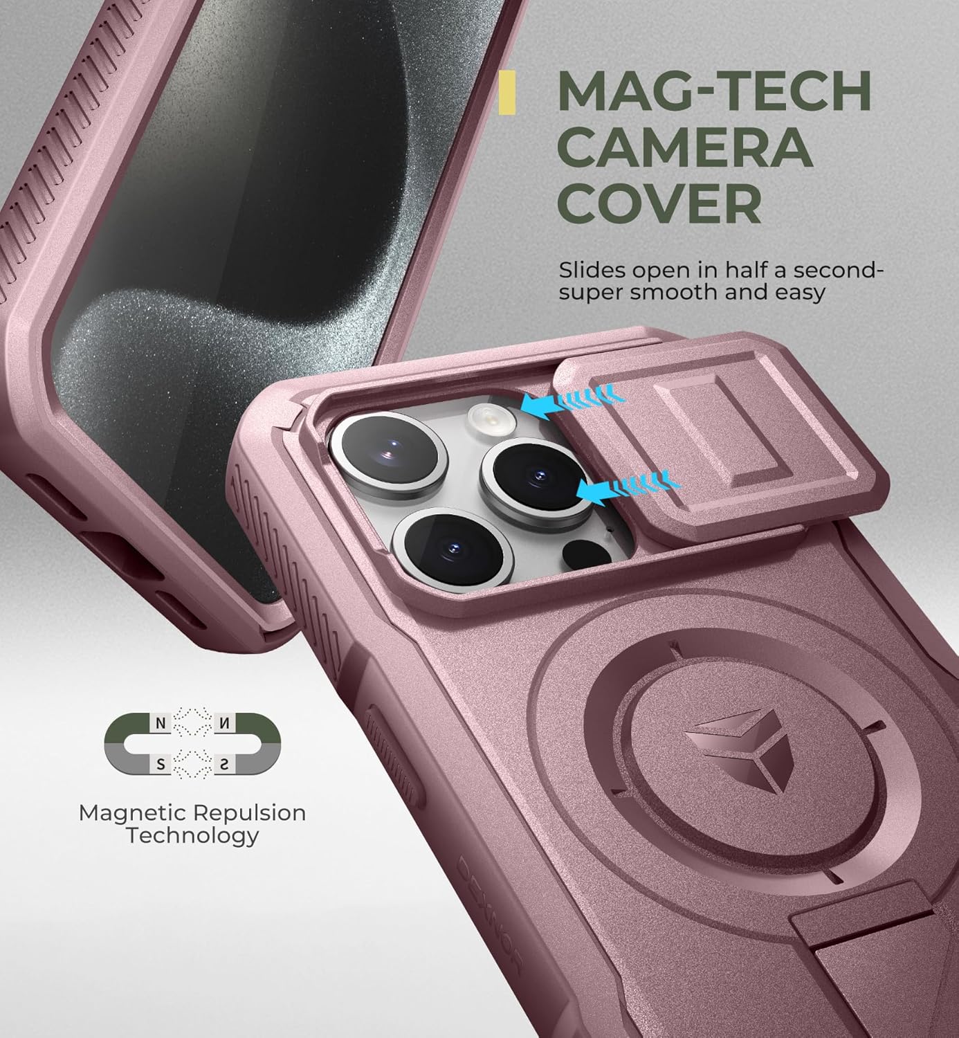 SURITCH 适用于 iPhone 16 Pro 手机壳,带滑动相机盖和可调节支架,兼容 MagSafe,防震防撞保护套,适用于 iPhone 16 Pro 6.3 英寸,黑色