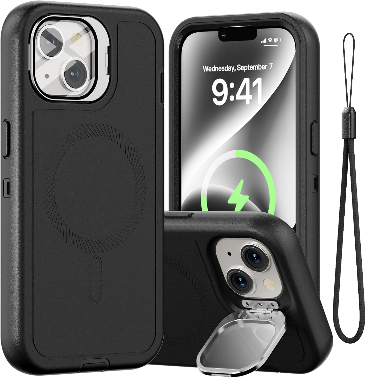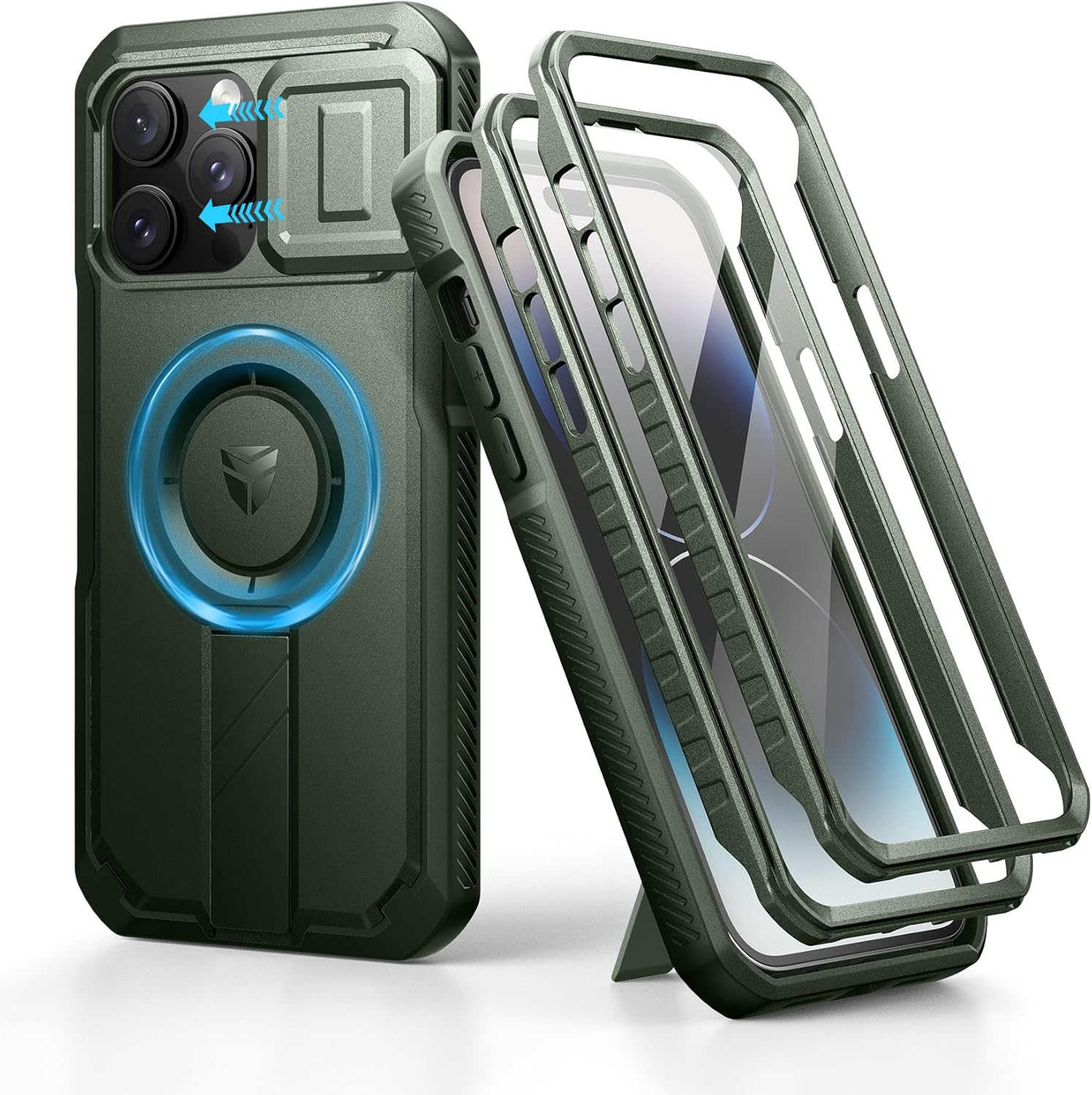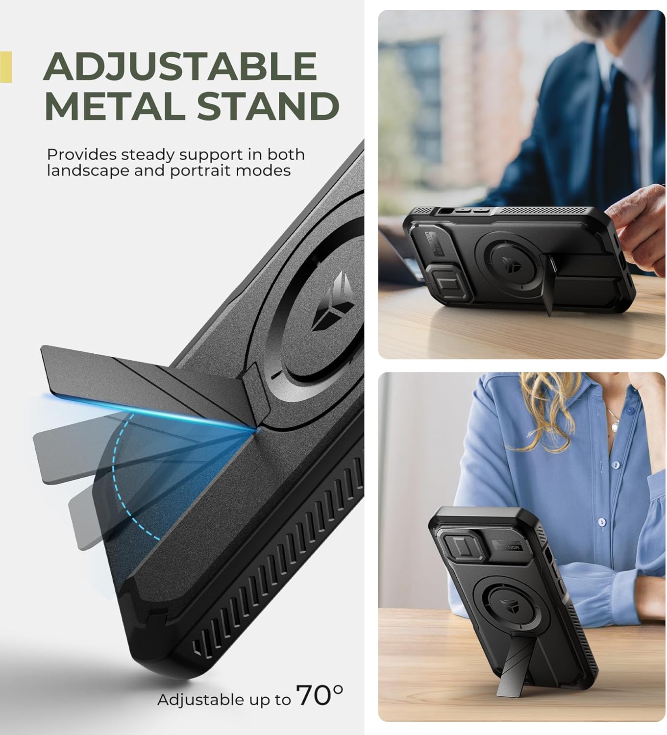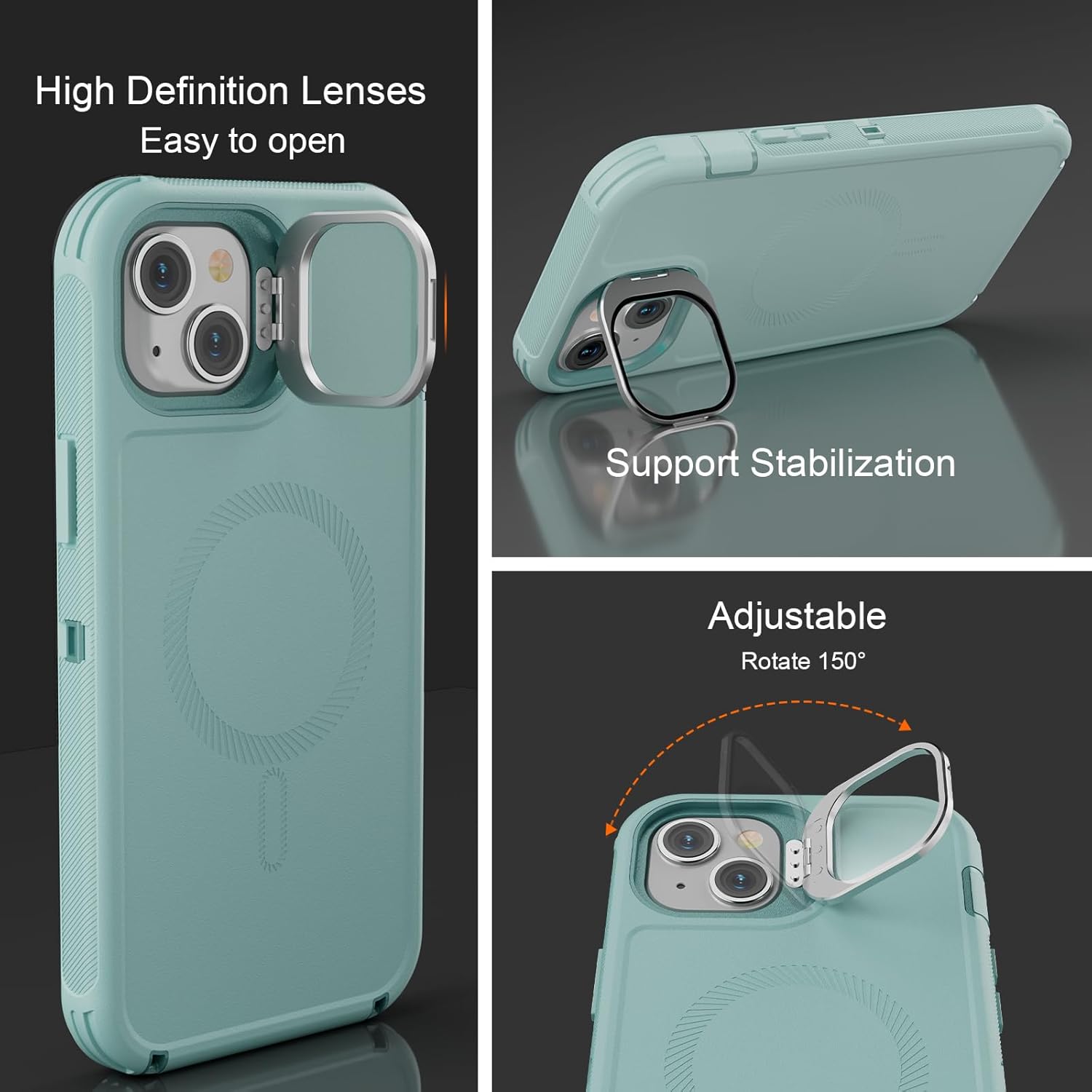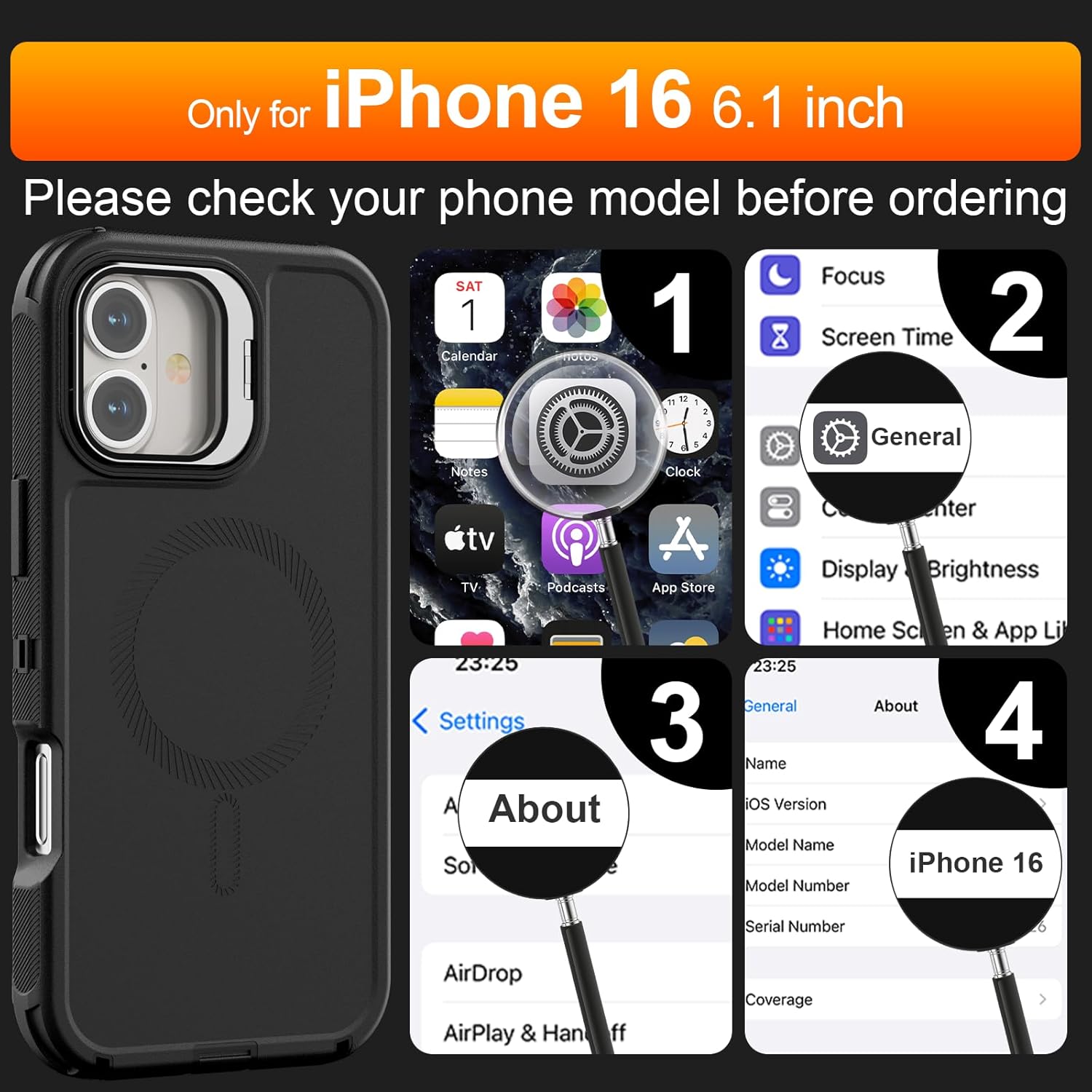 SURITCH 适用于 iPhone 16 Pro 手机壳,带滑动相机盖和可调节支架,兼容 MagSafe,防震防撞保护套,适用于 iPhone 16 Pro 6.3 英寸,黑色