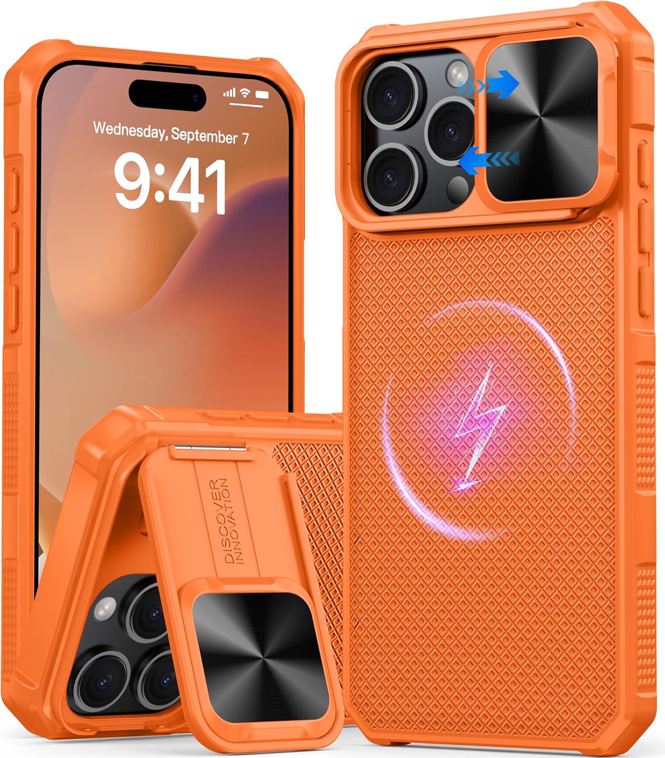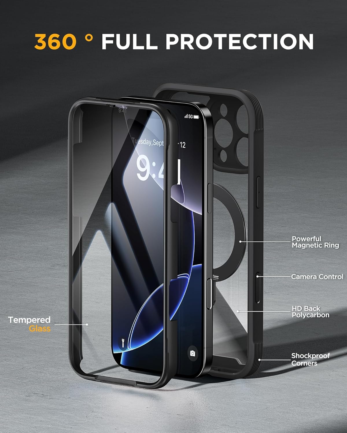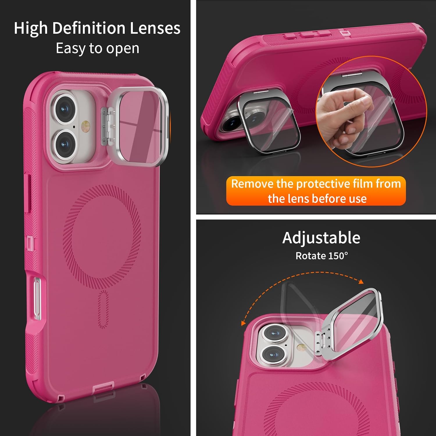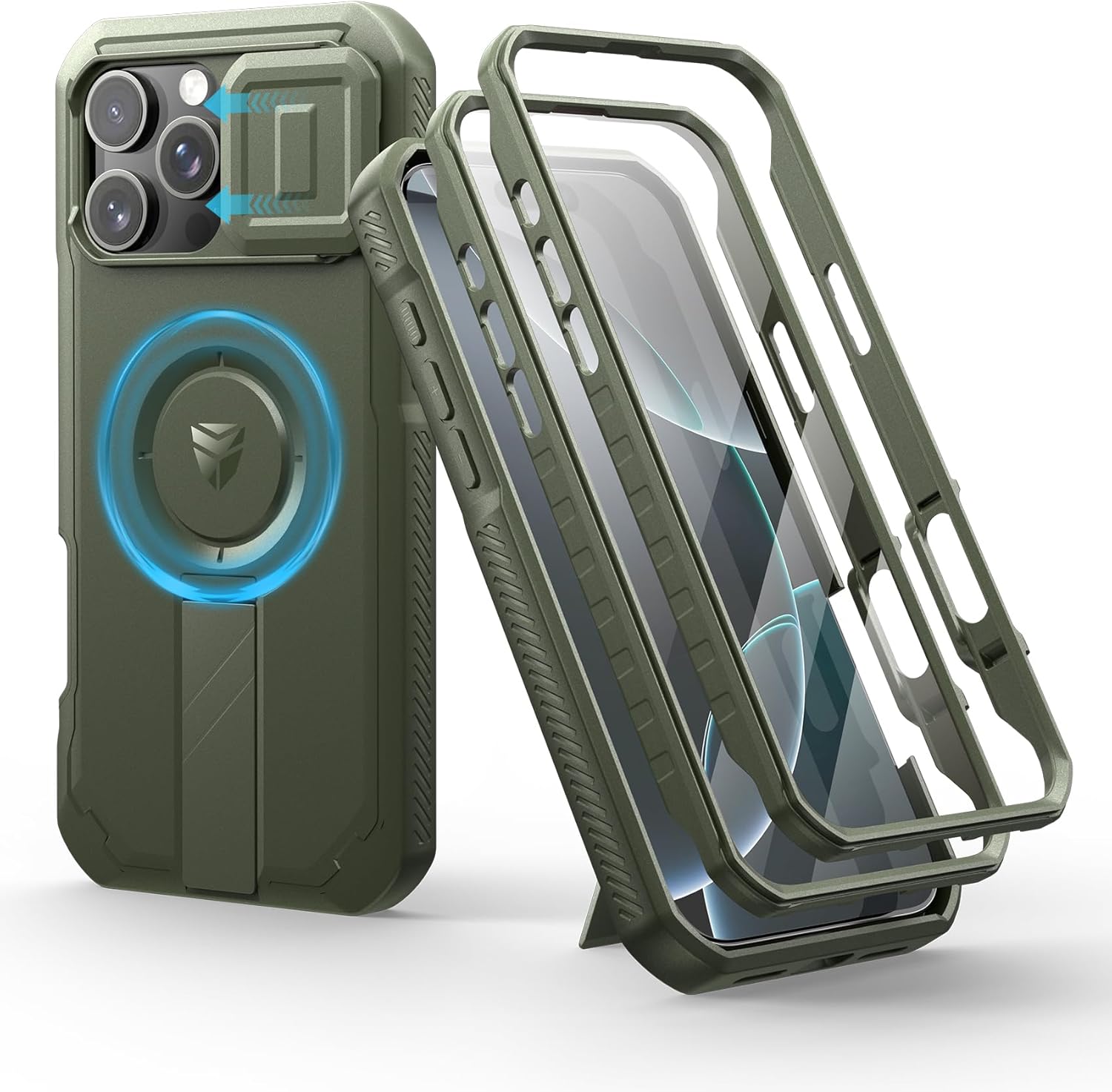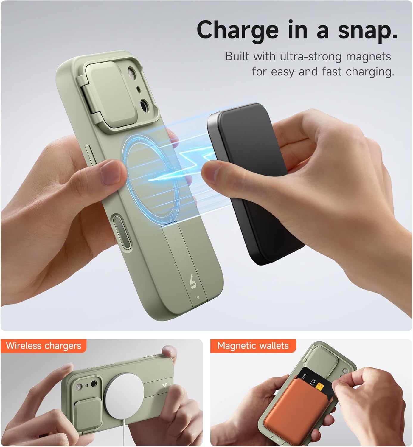 SURITCH 适用于 iPhone 16 Pro 手机壳,带滑动相机盖和可调节支架,兼容 MagSafe,防震防撞保护套,适用于 iPhone 16 Pro 6.3 英寸,黑色