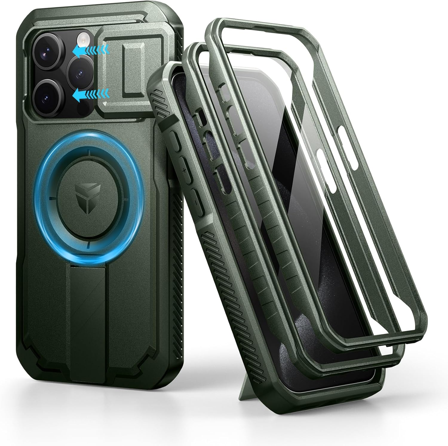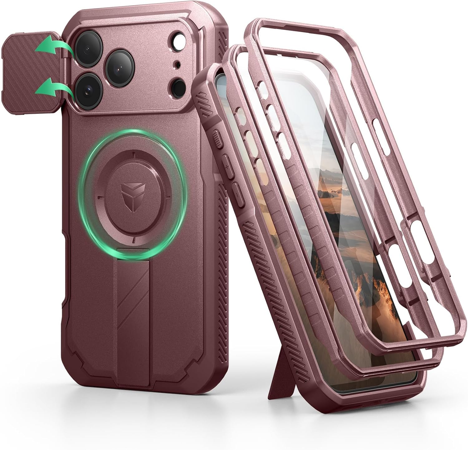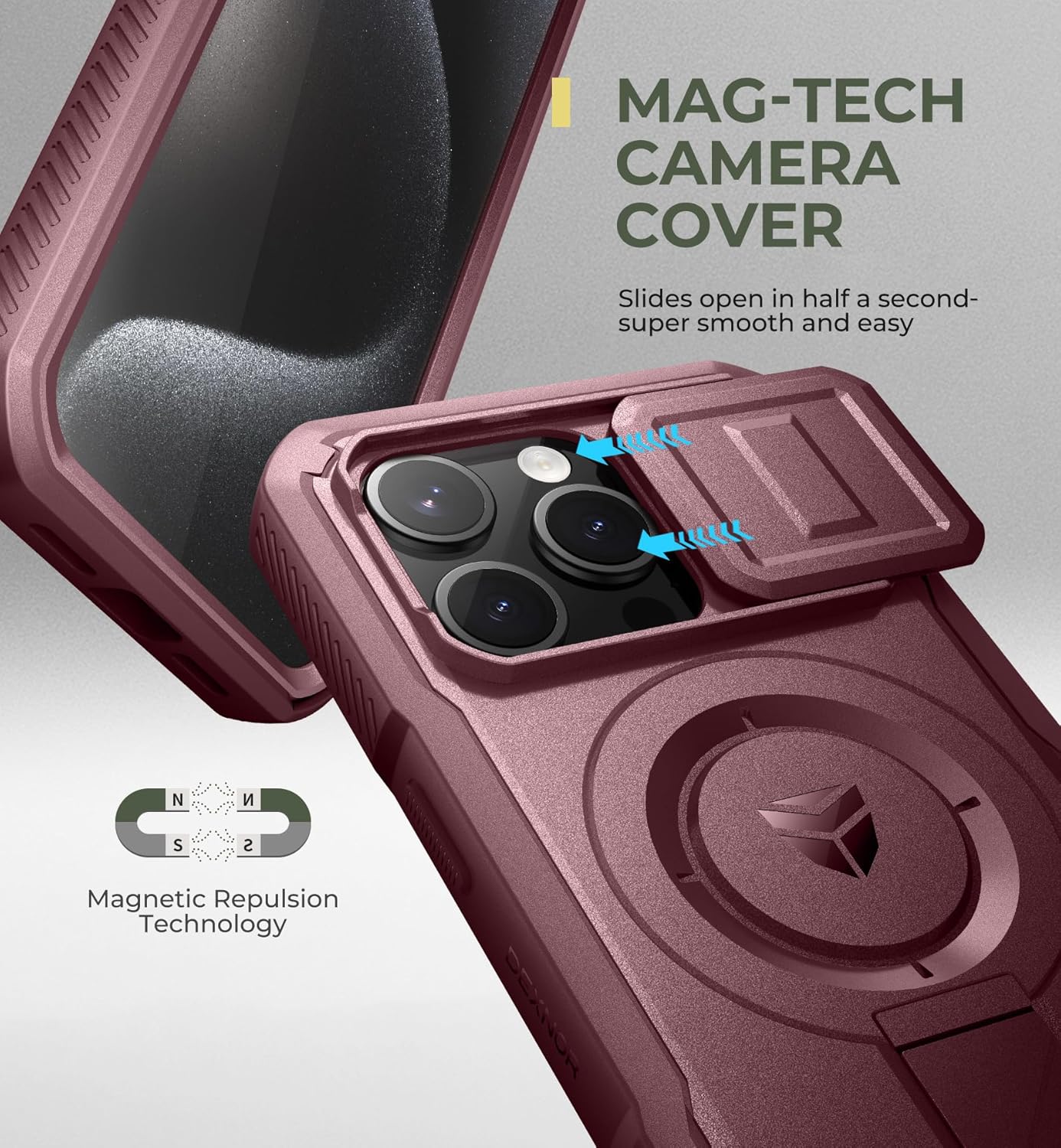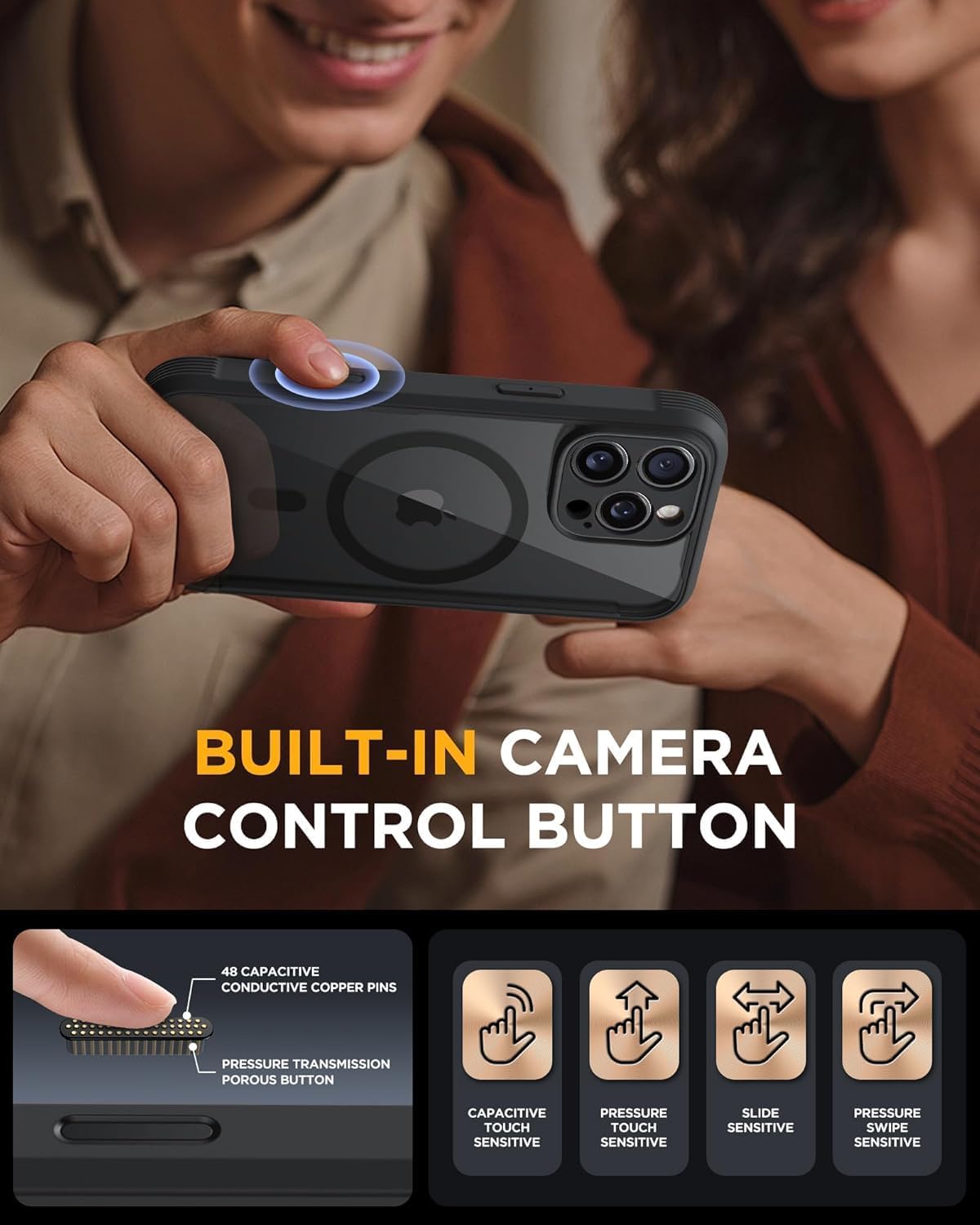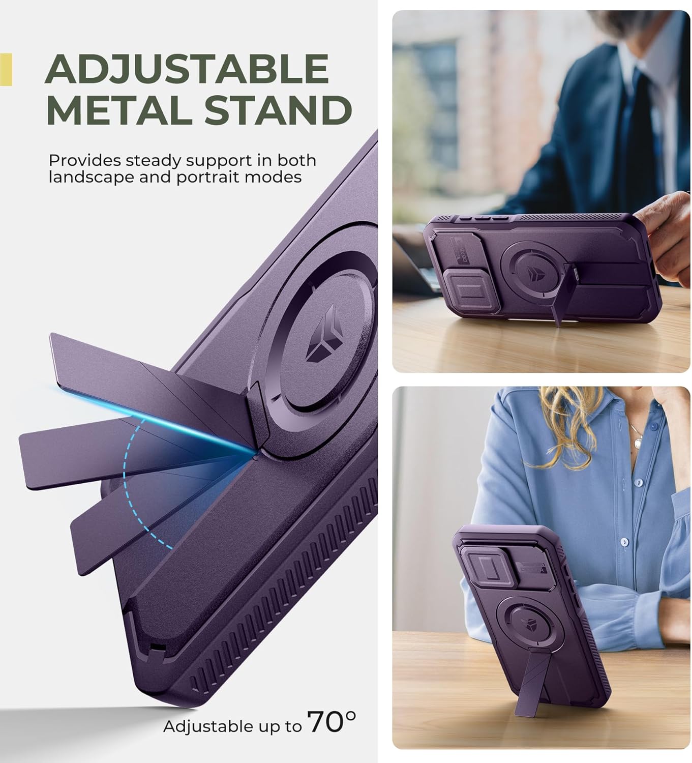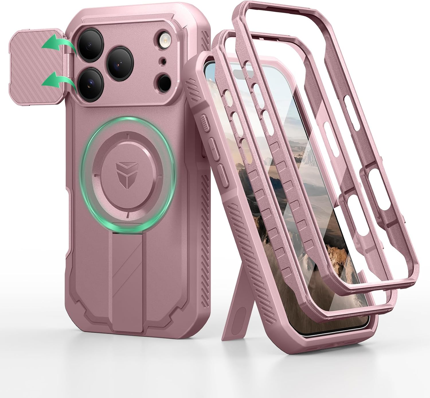 SURITCH 适用于 iPhone 16 Pro 手机壳,带滑动相机盖和可调节支架,兼容 MagSafe,防震防撞保护套,适用于 iPhone 16 Pro 6.3 英寸,黑色