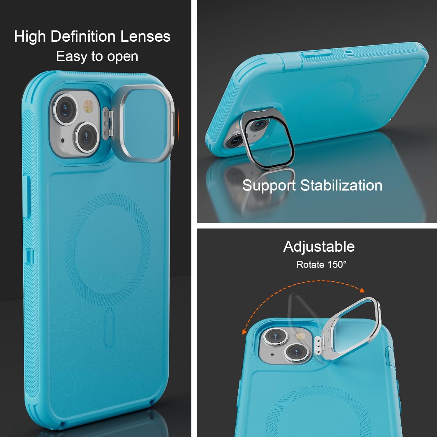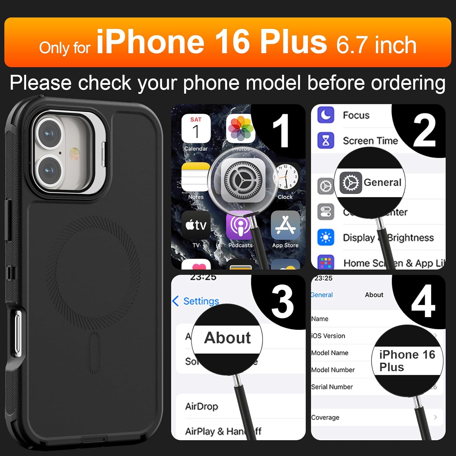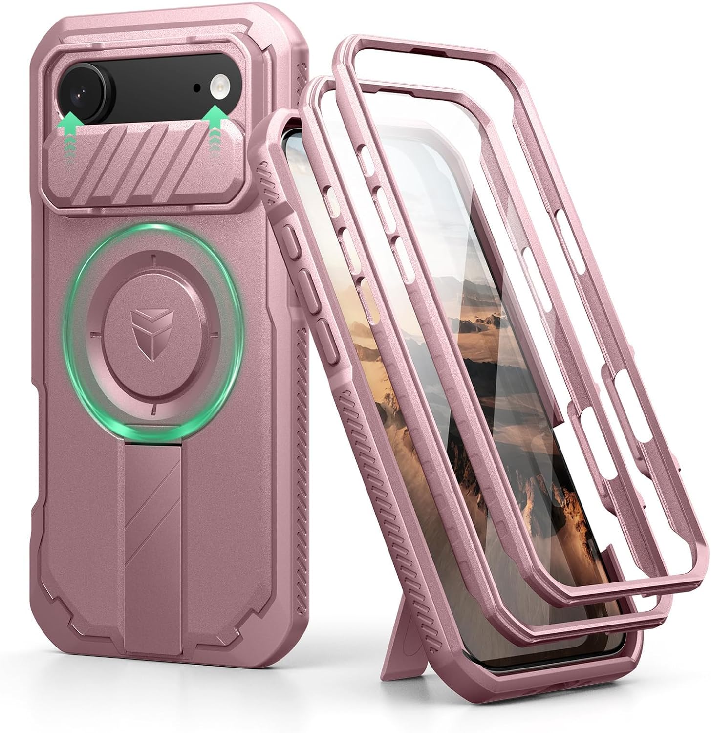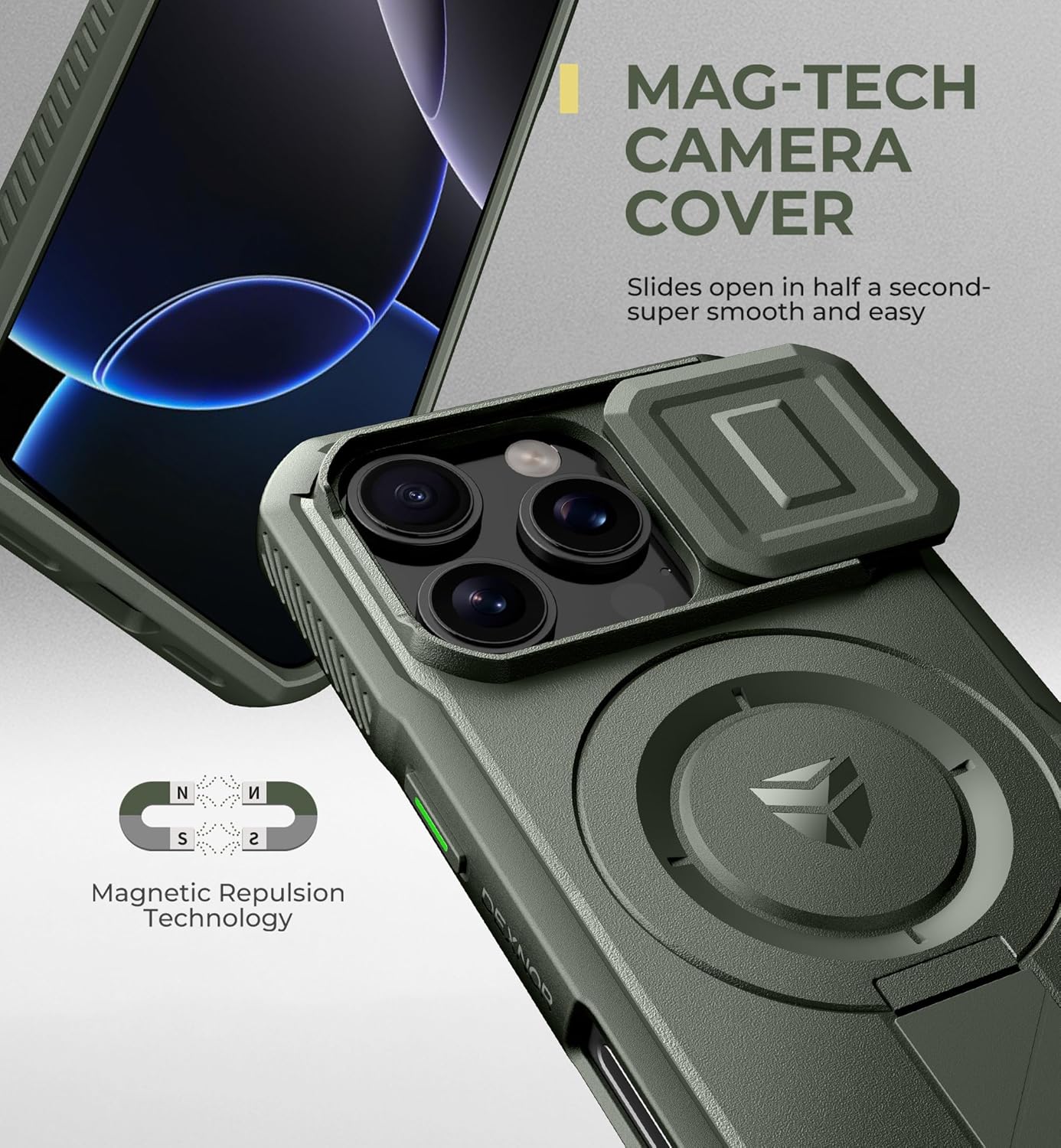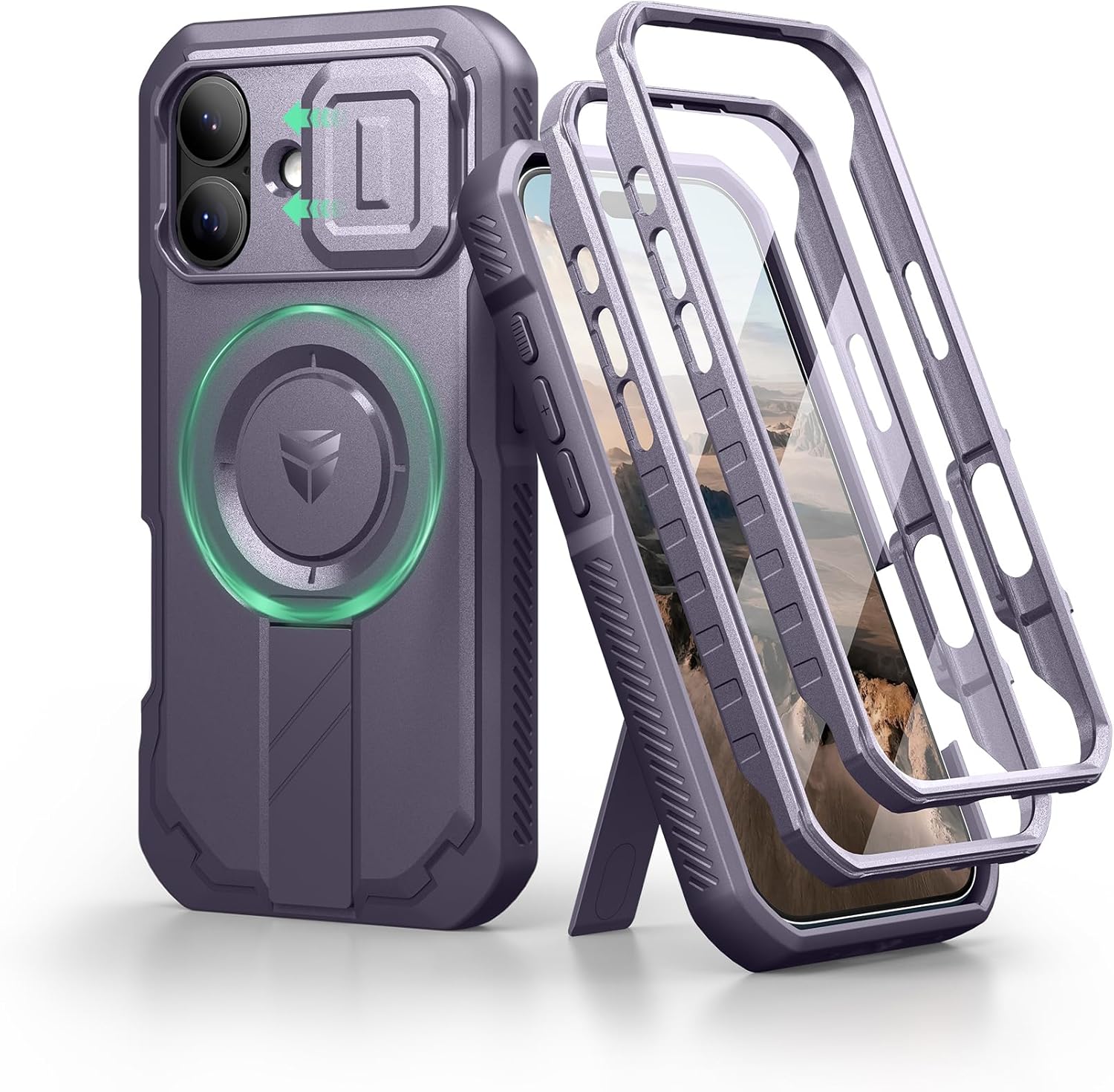 SURITCH 适用于 iPhone 16 Pro 手机壳,带滑动相机盖和可调节支架,兼容 MagSafe,防震防撞保护套,适用于 iPhone 16 Pro 6.3 英寸,黑色