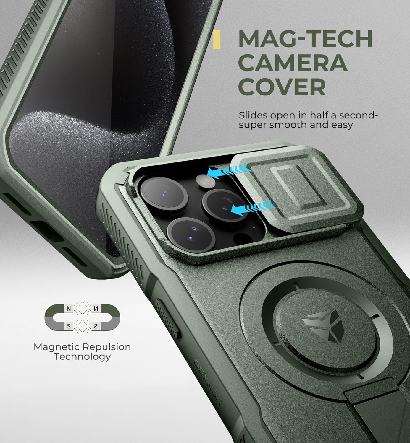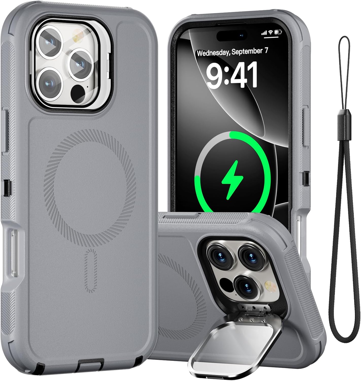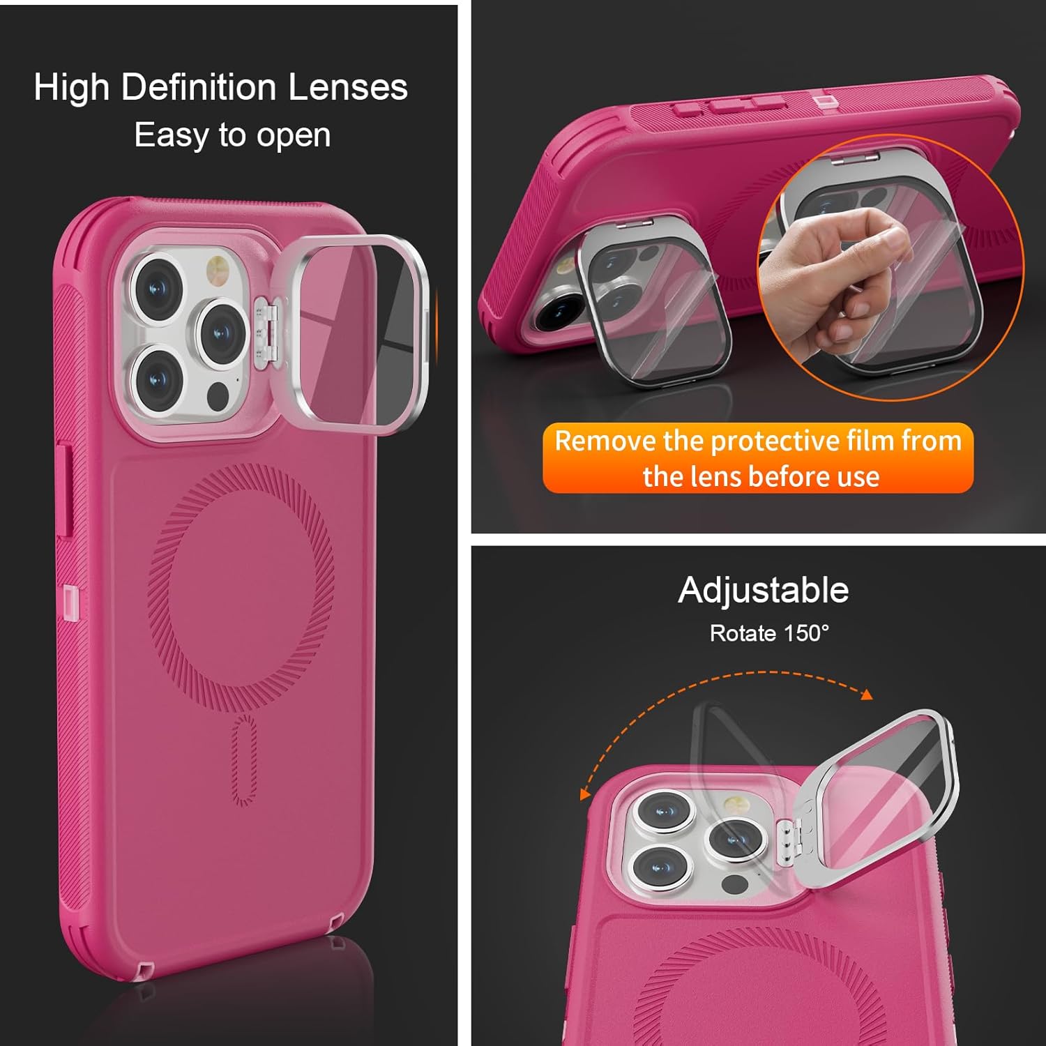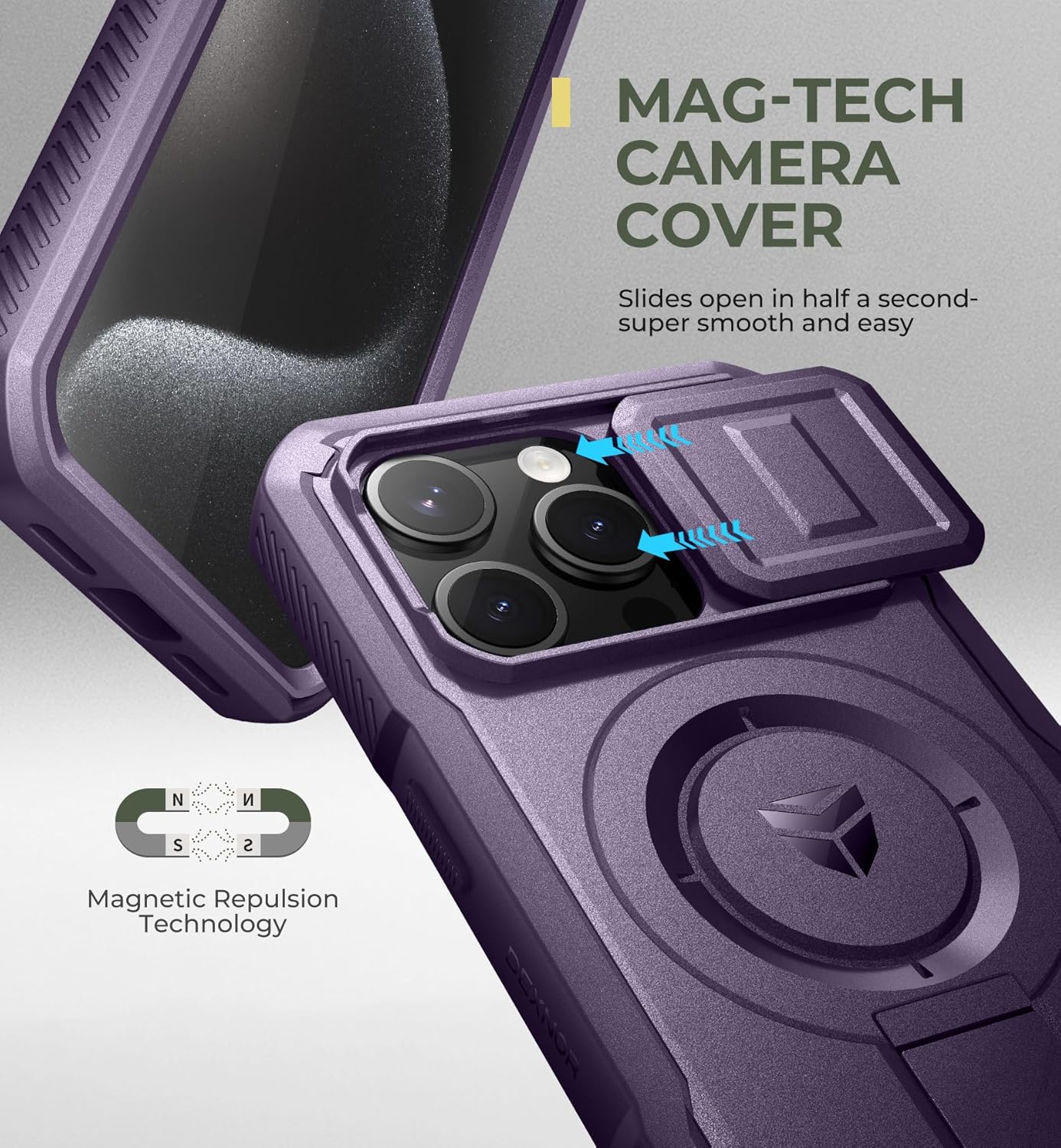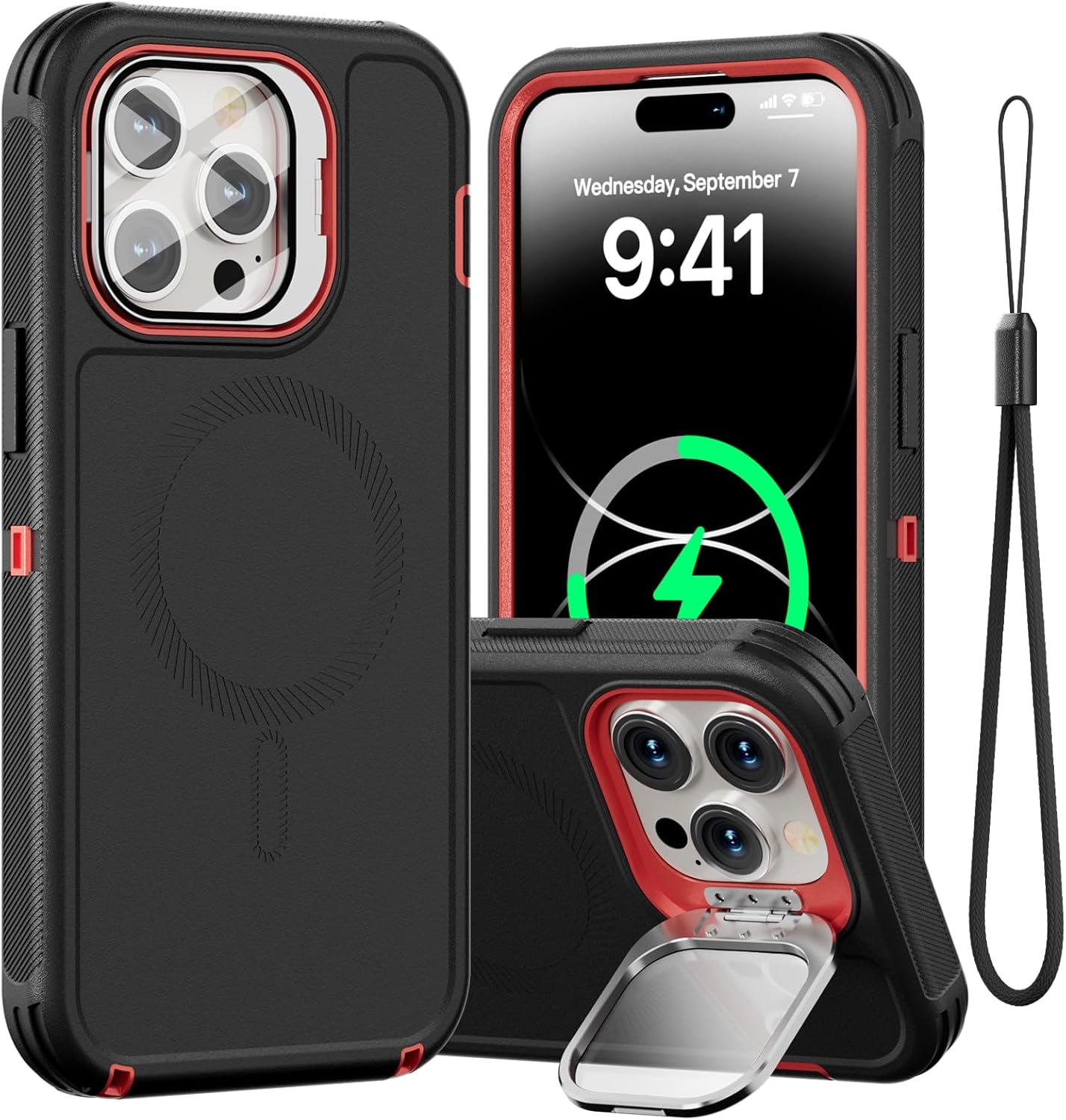 SURITCH 适用于 iPhone 16 Pro 手机壳,带滑动相机盖和可调节支架,兼容 MagSafe,防震防撞保护套,适用于 iPhone 16 Pro 6.3 英寸,黑色