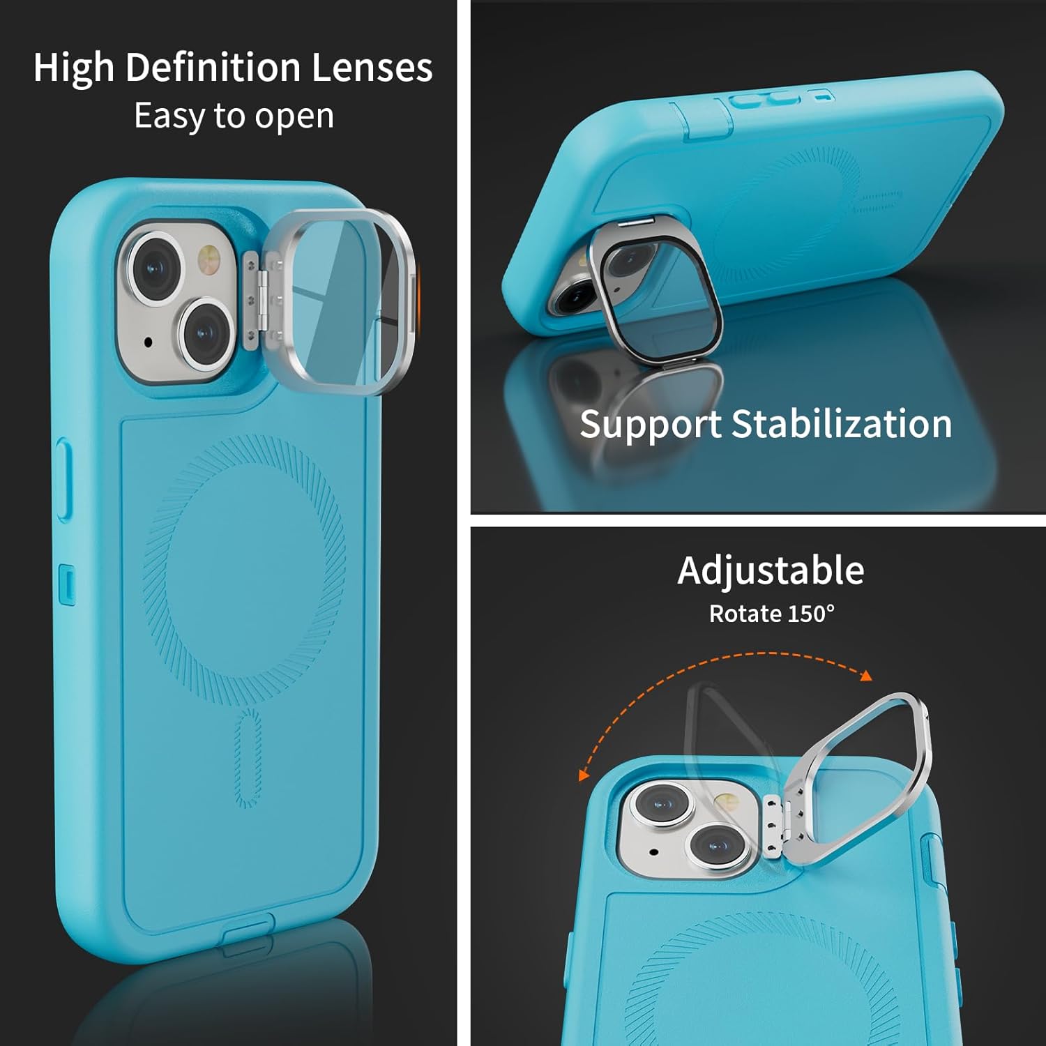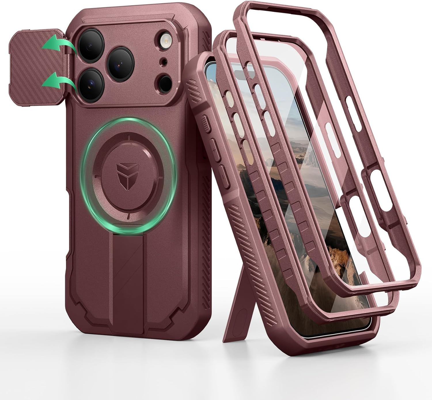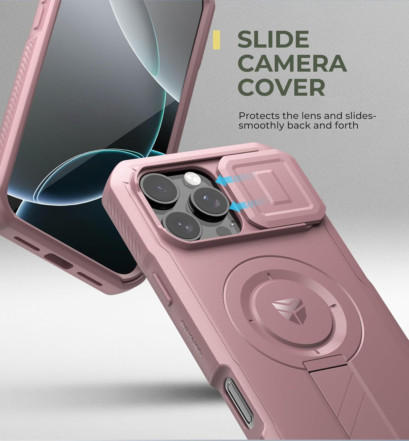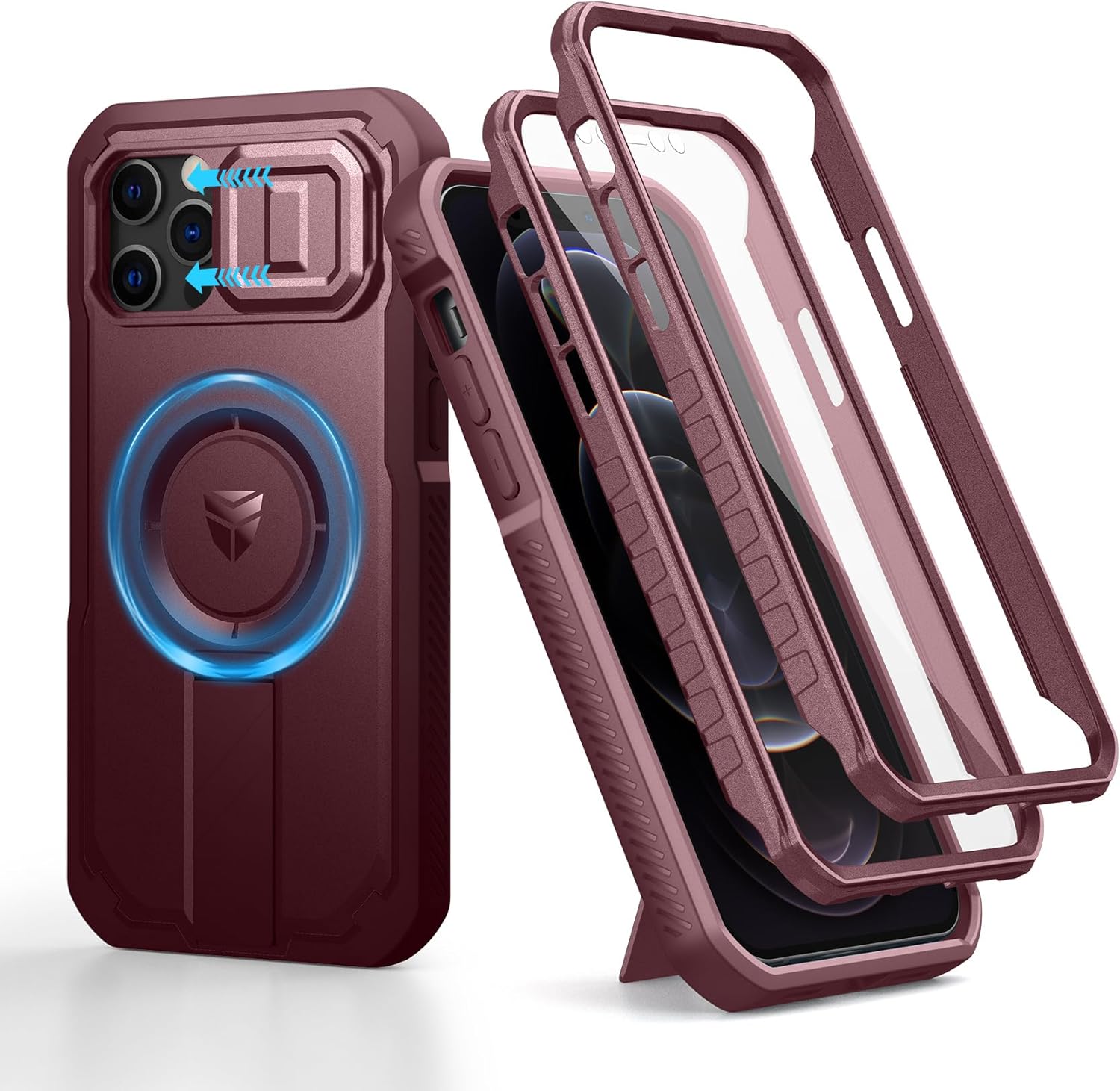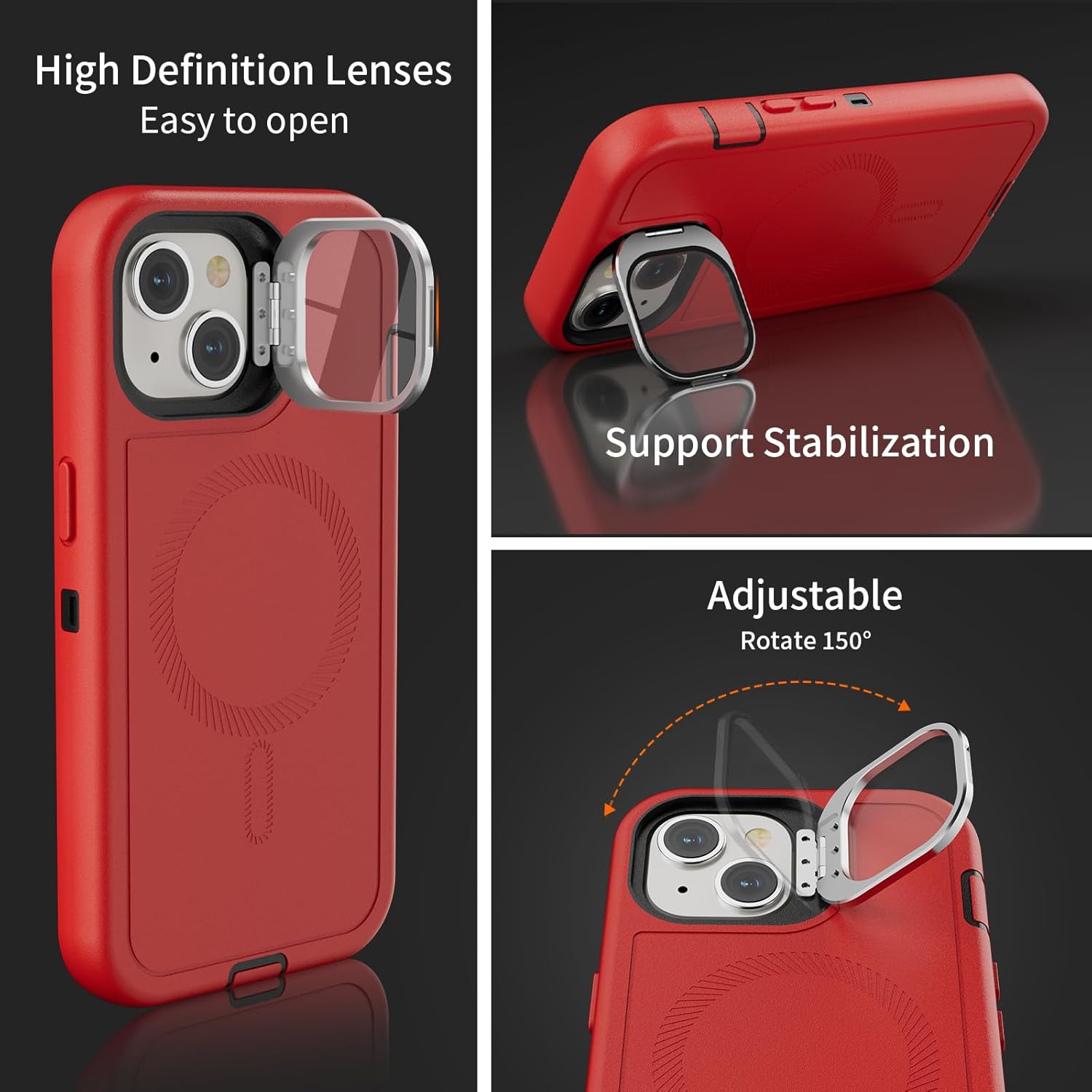 SURITCH 适用于 iPhone 16 Pro 手机壳,带滑动相机盖和可调节支架,兼容 MagSafe,防震防撞保护套,适用于 iPhone 16 Pro 6.3 英寸,黑色