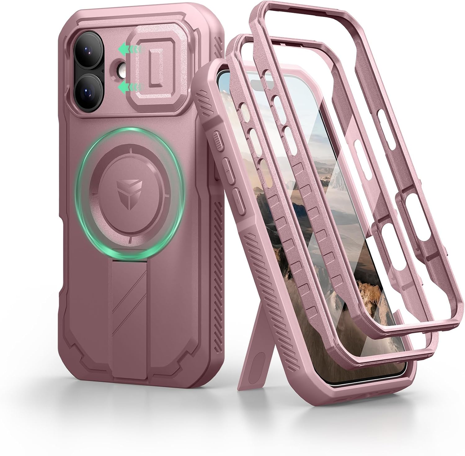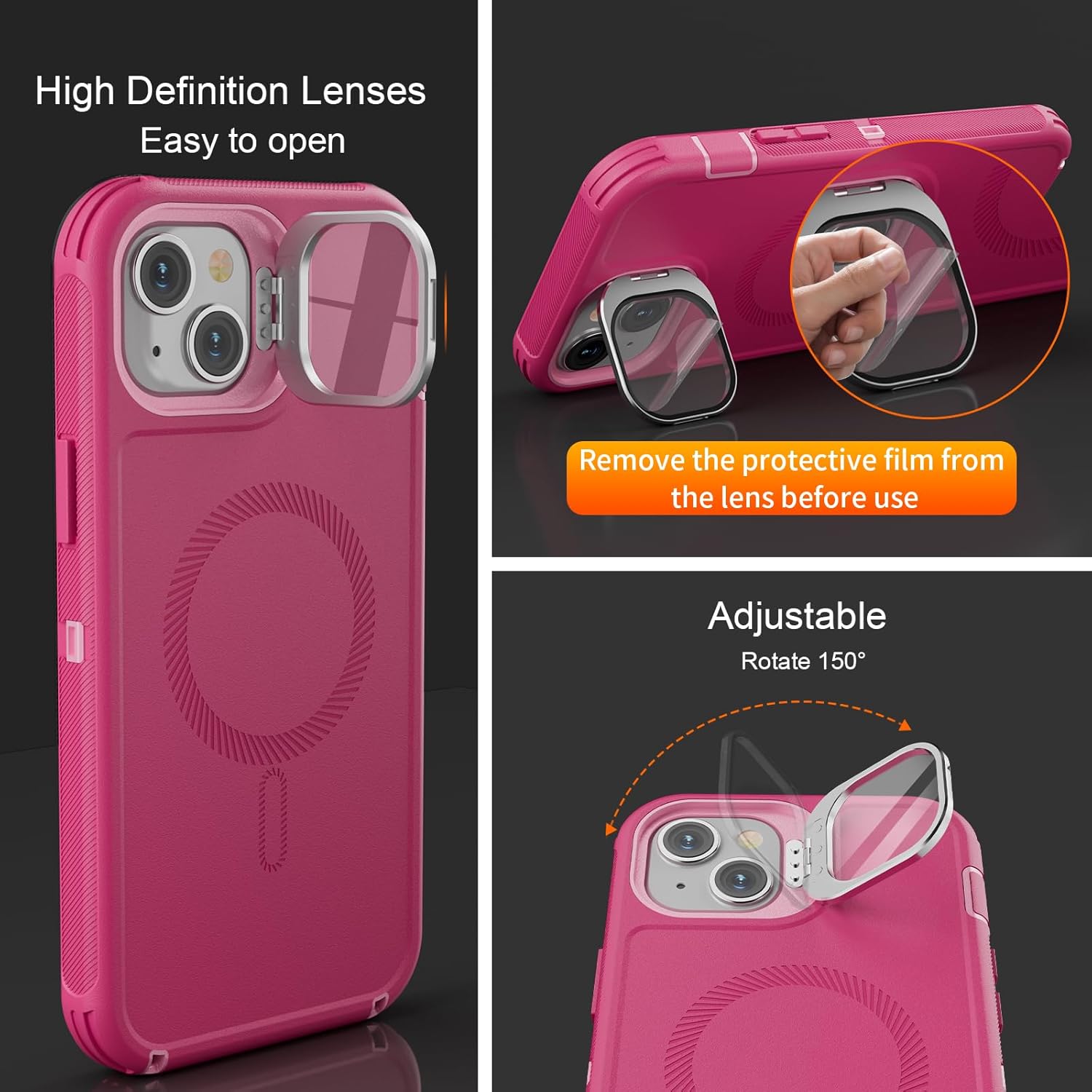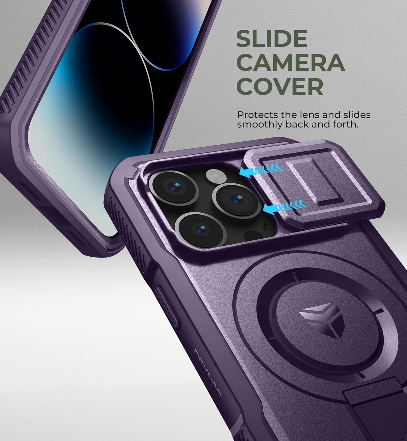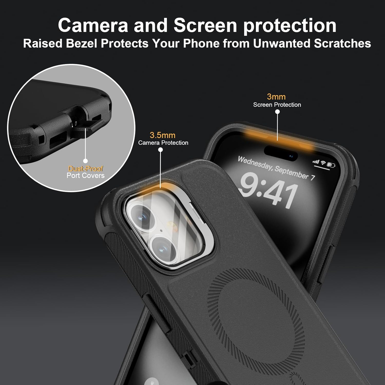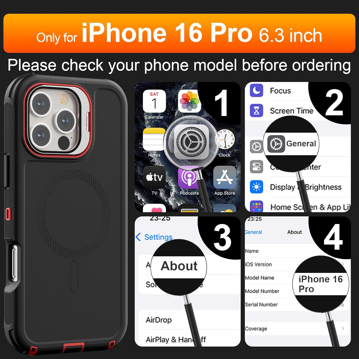 SURITCH 适用于 iPhone 16 Pro 手机壳,带滑动相机盖和可调节支架,兼容 MagSafe,防震防撞保护套,适用于 iPhone 16 Pro 6.3 英寸,黑色