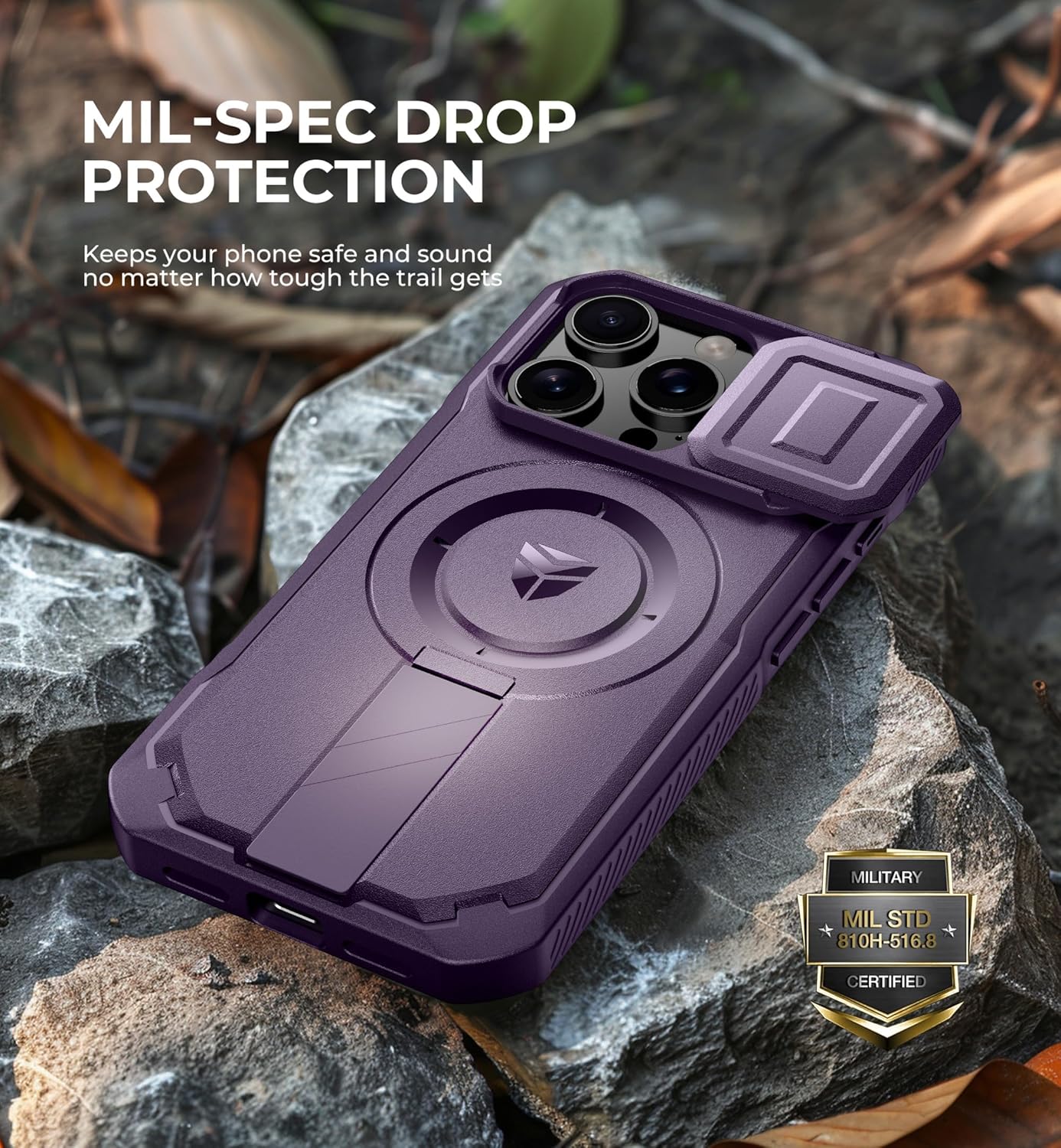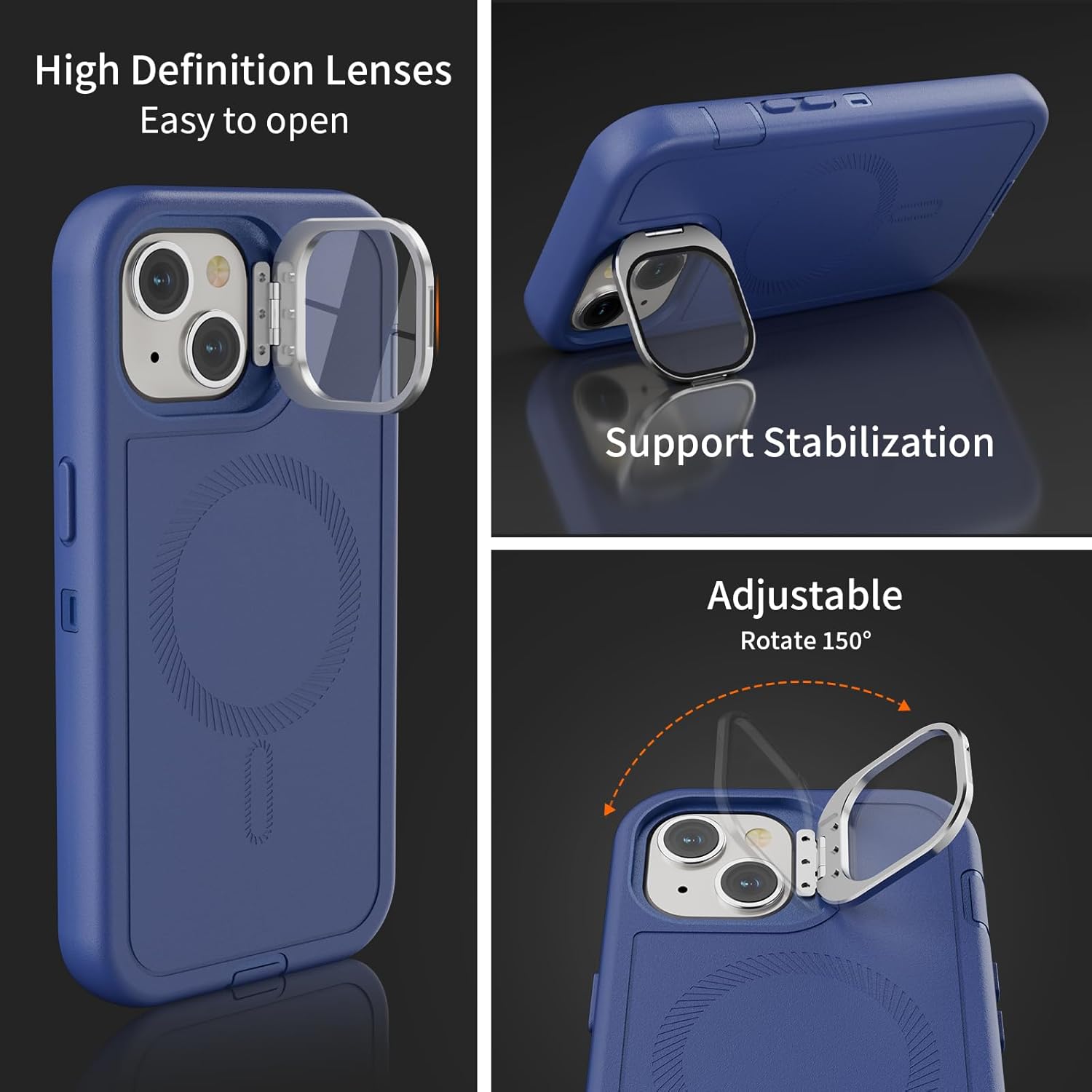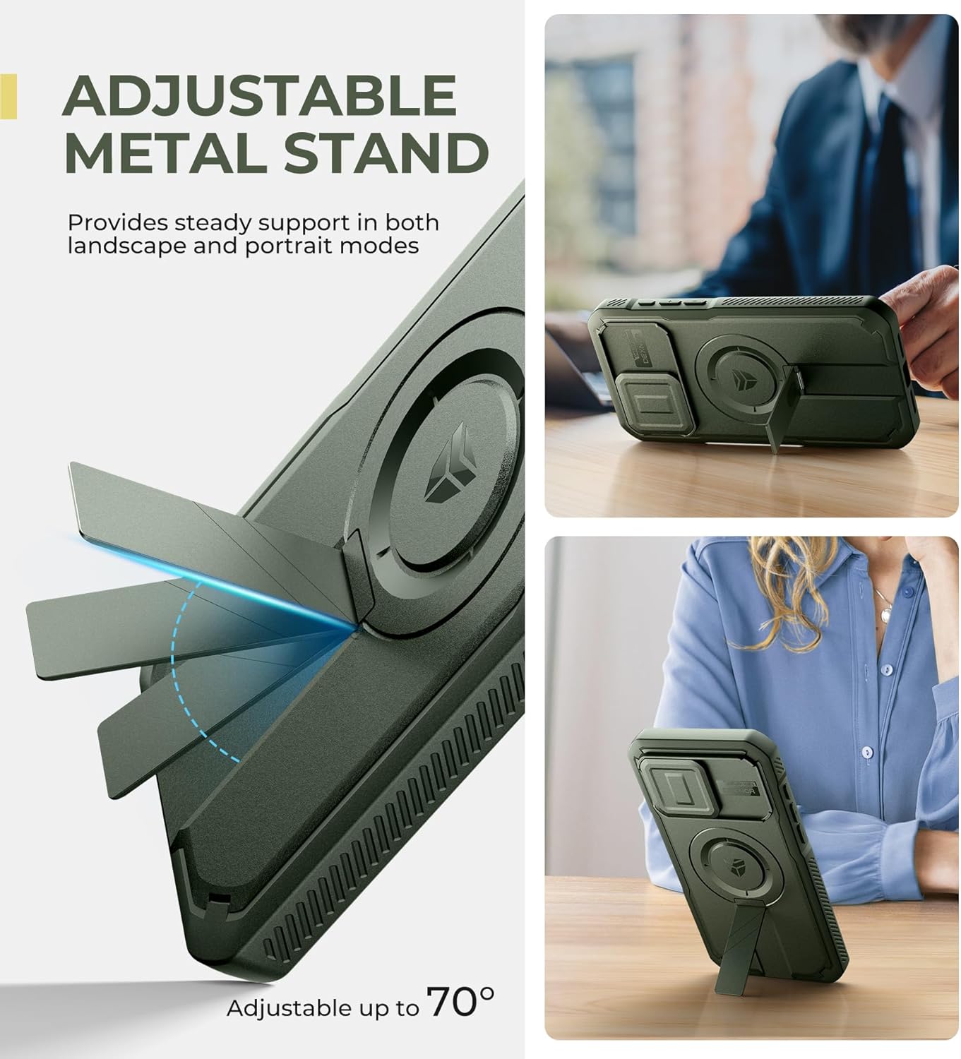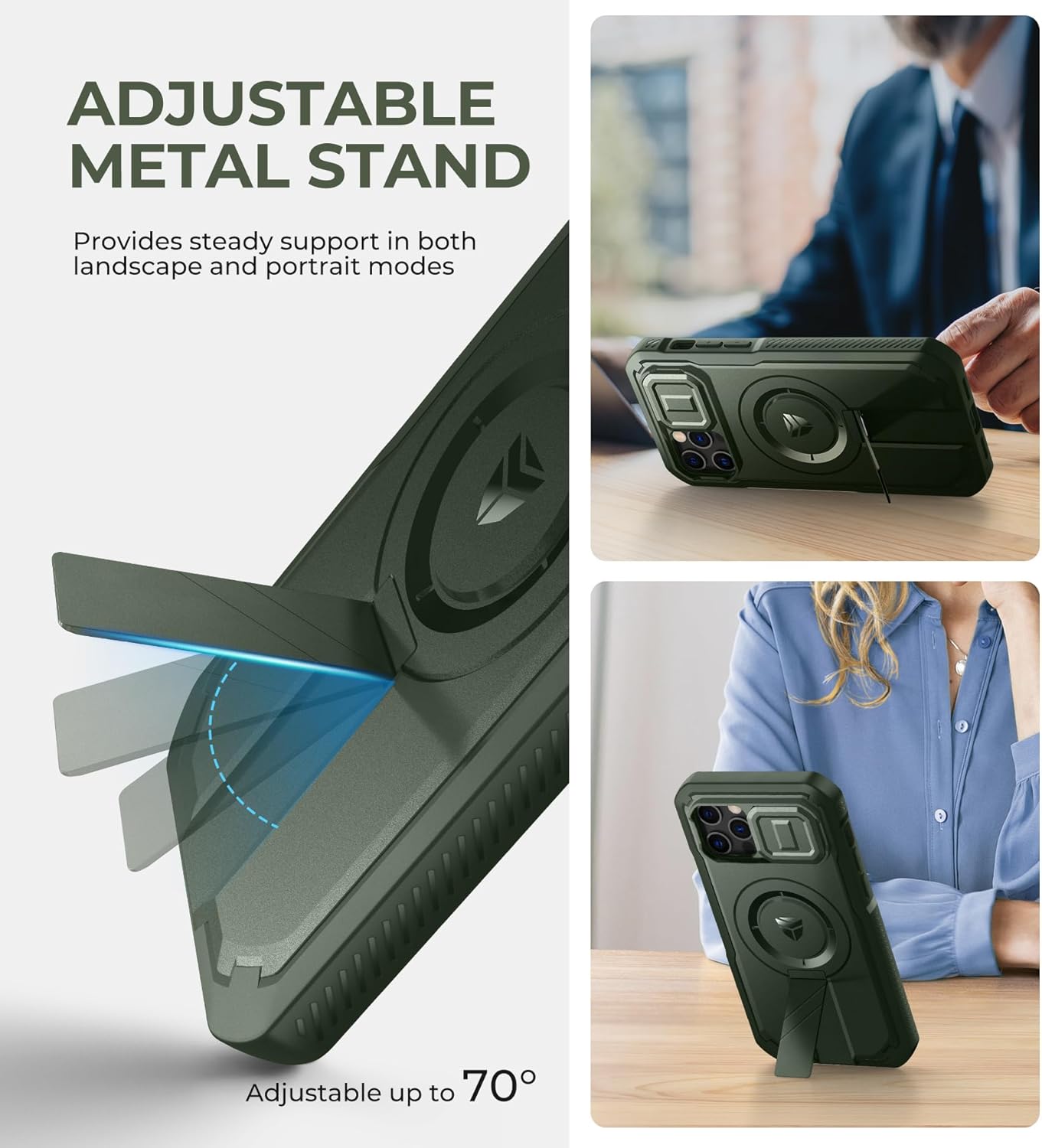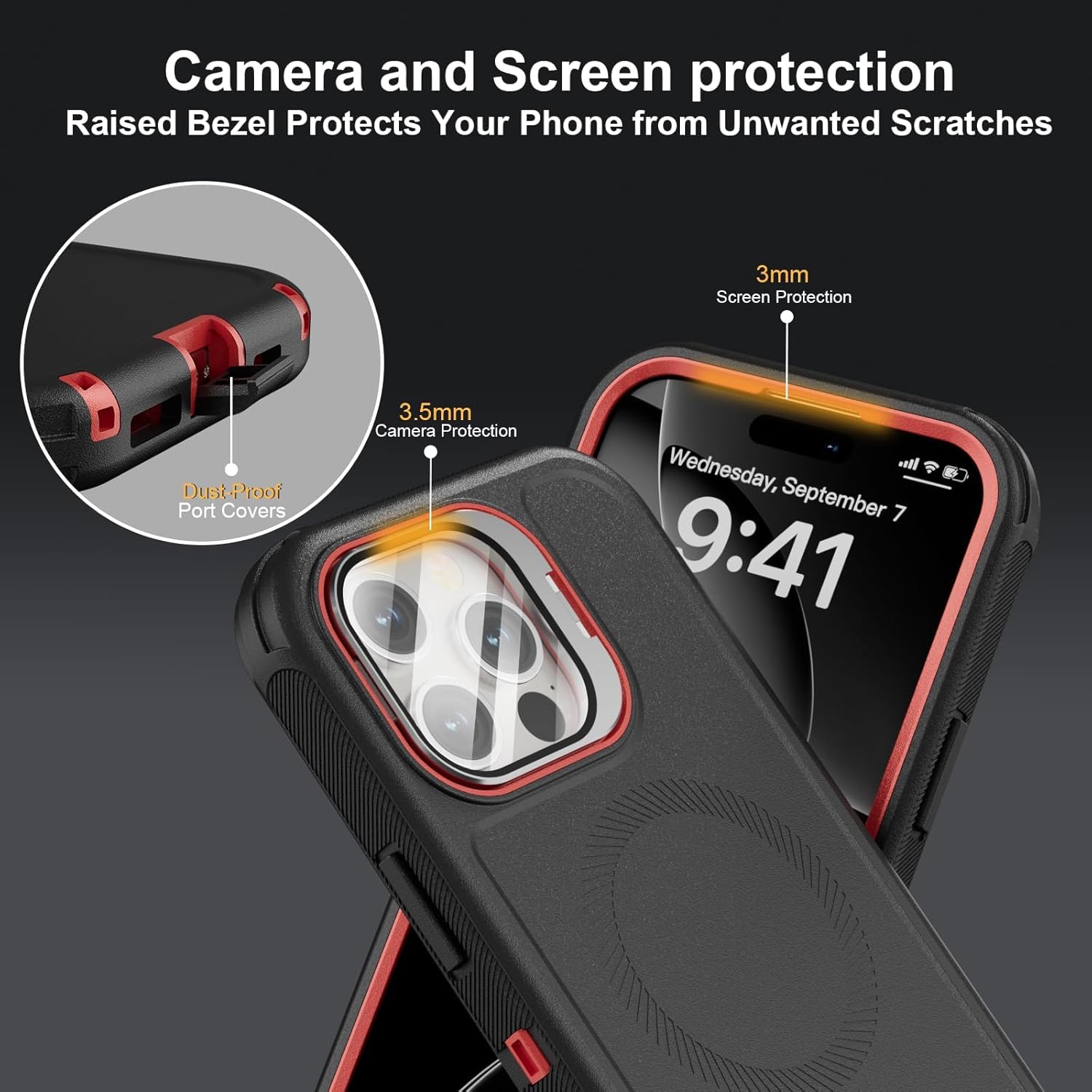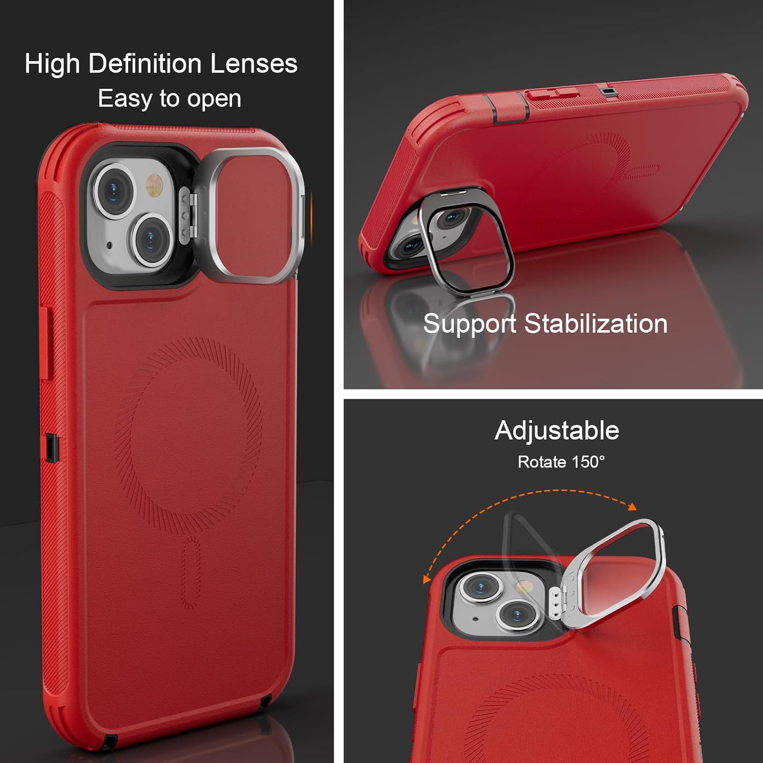 SURITCH 适用于 iPhone 16 Pro 手机壳,带滑动相机盖和可调节支架,兼容 MagSafe,防震防撞保护套,适用于 iPhone 16 Pro 6.3 英寸,黑色