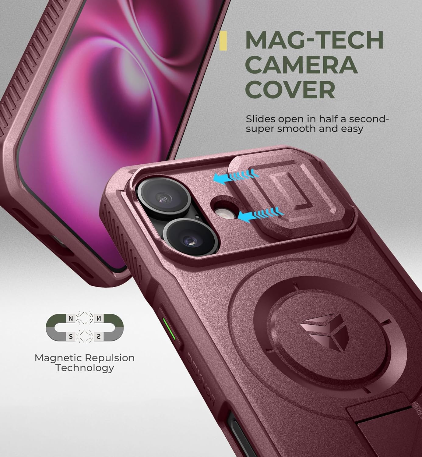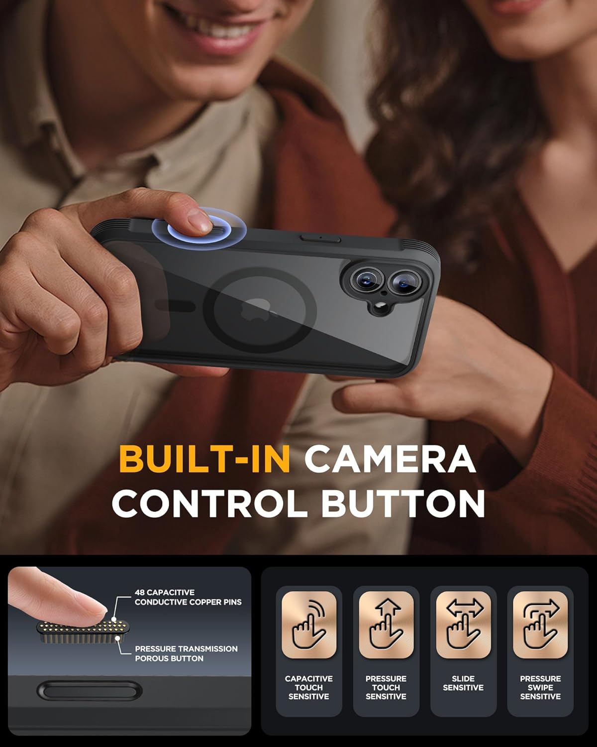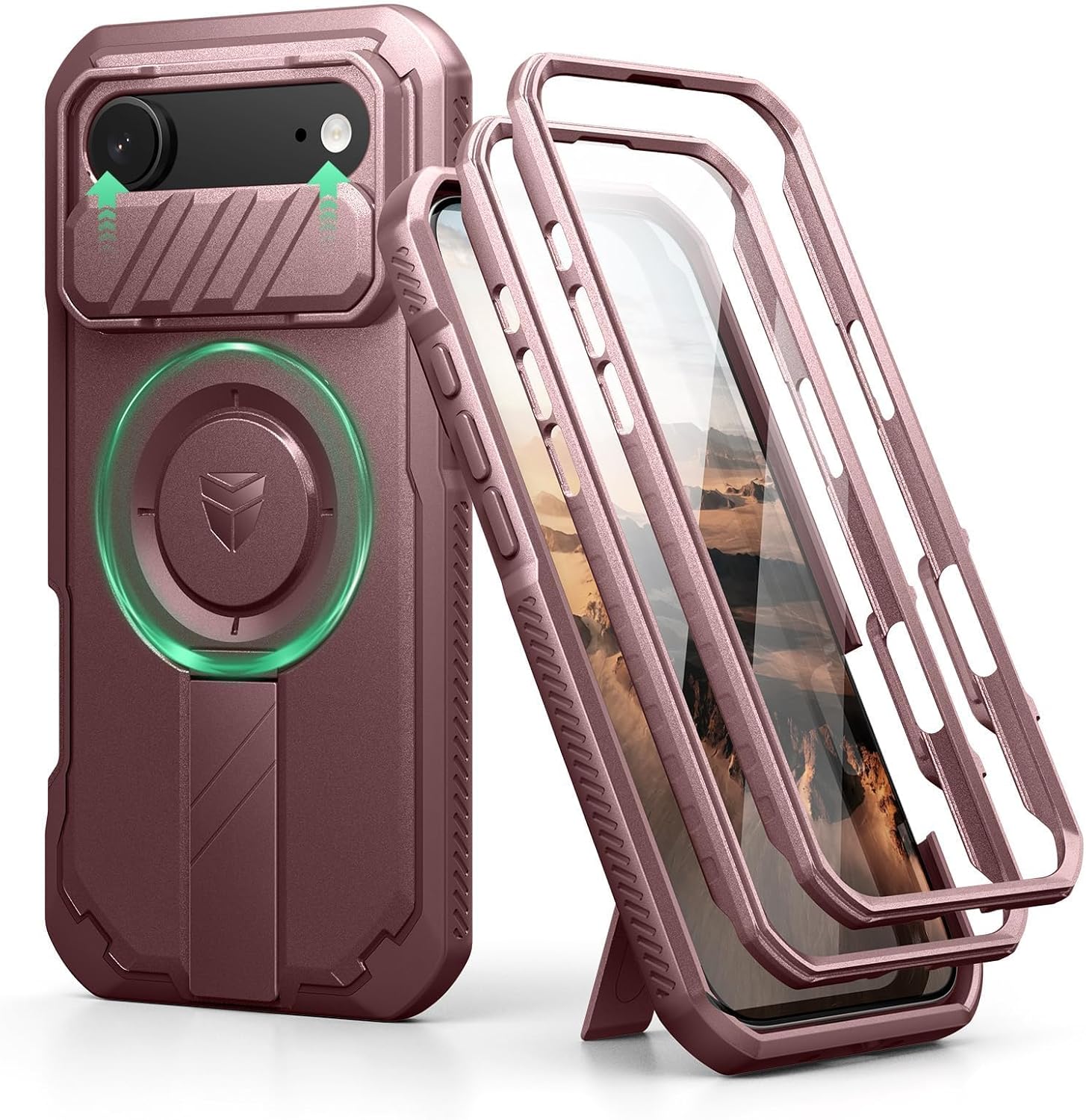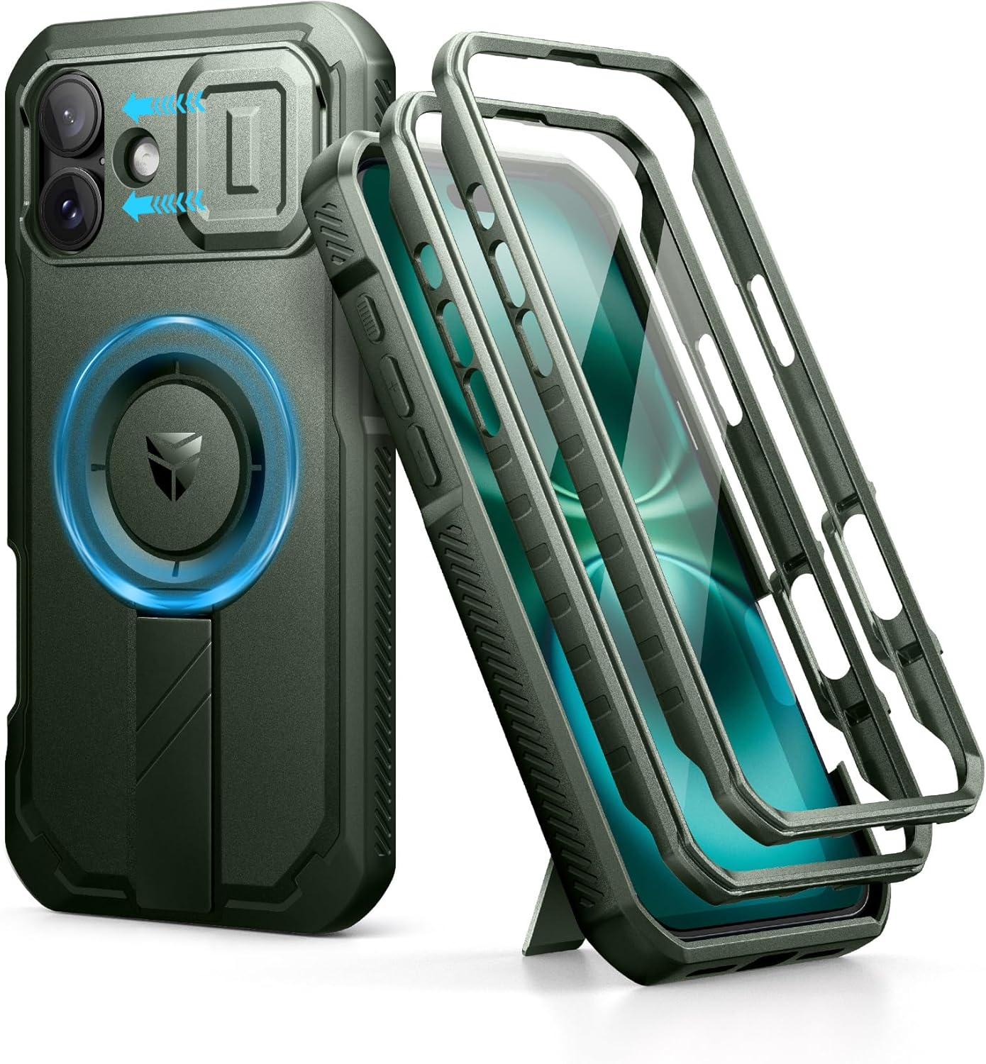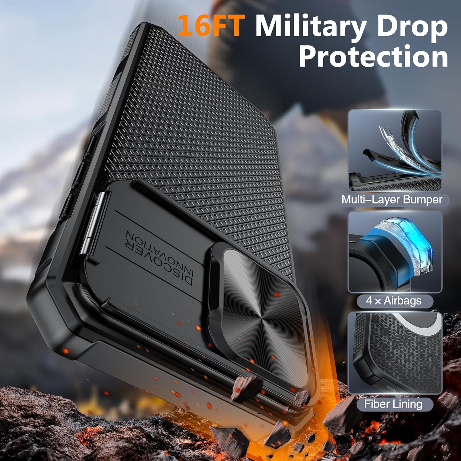 SURITCH 适用于 iPhone 16 Pro 手机壳,带滑动相机盖和可调节支架,兼容 MagSafe,防震防撞保护套,适用于 iPhone 16 Pro 6.3 英寸,黑色