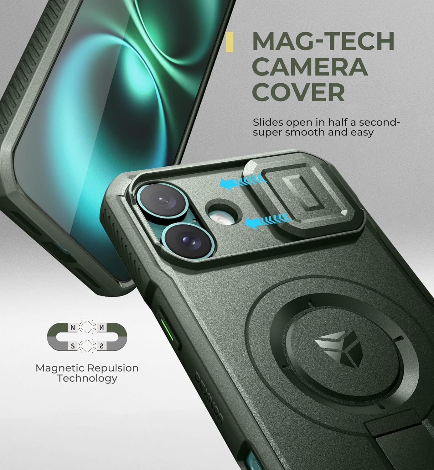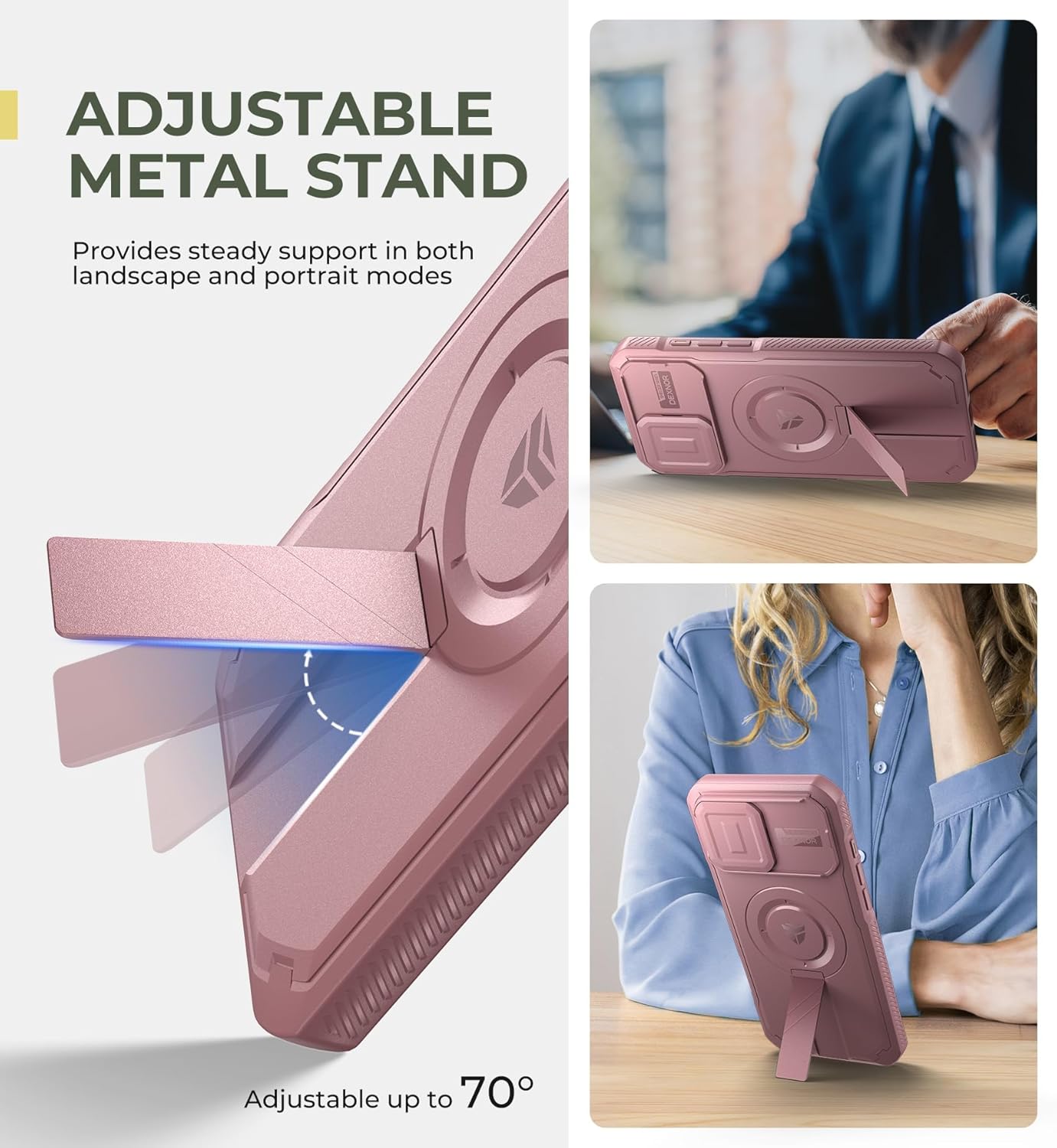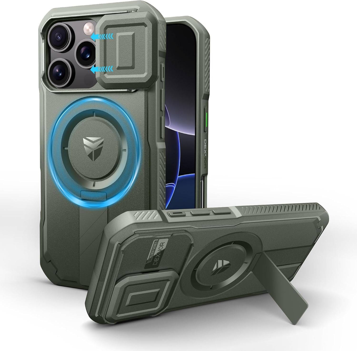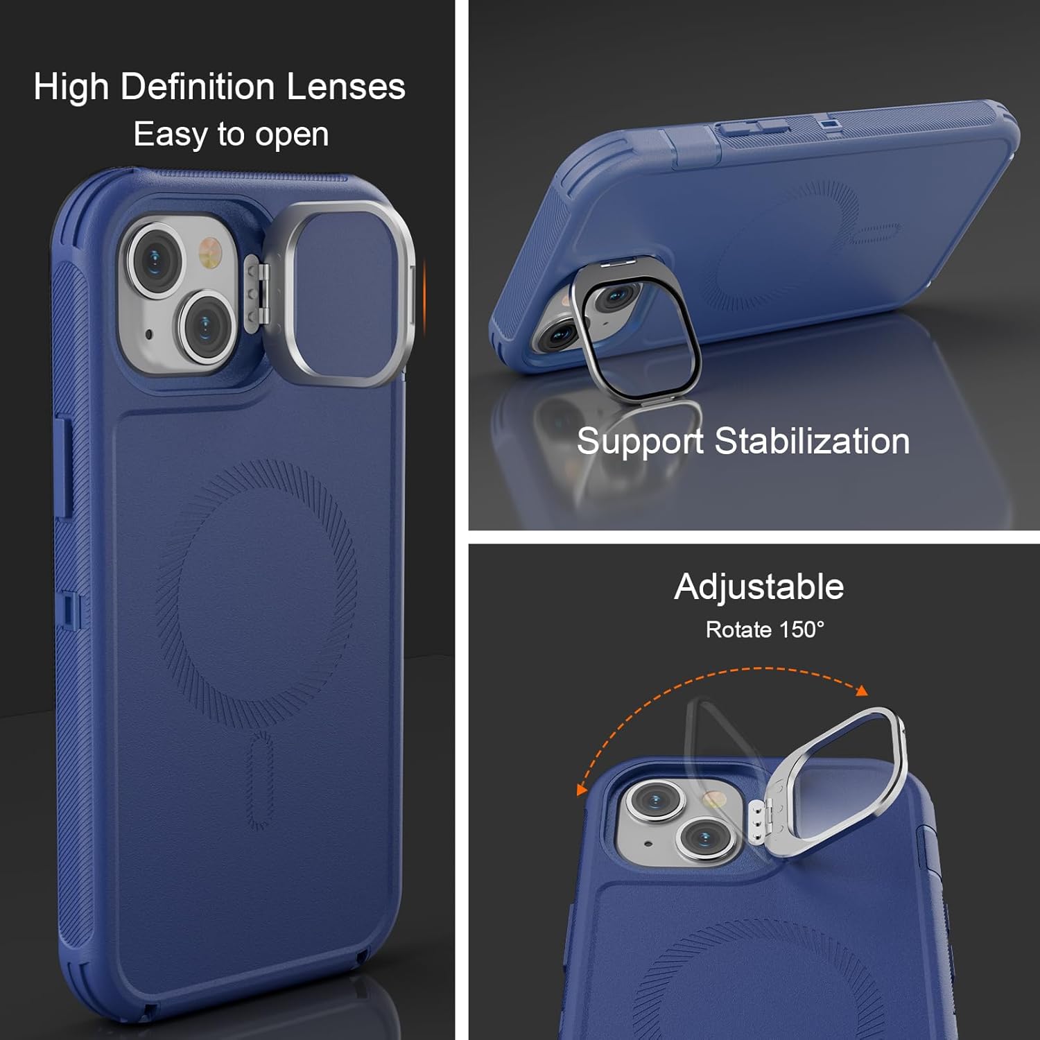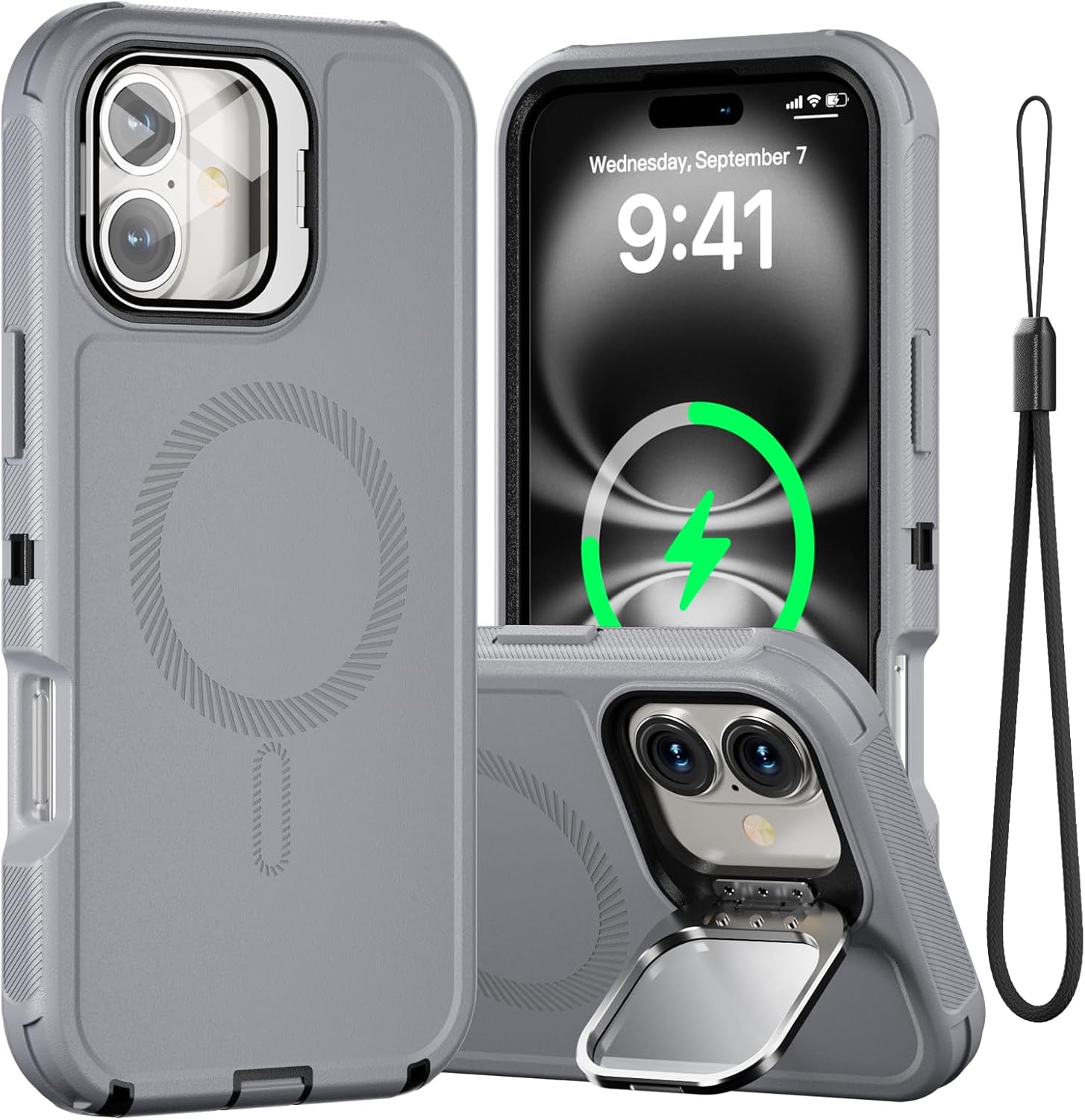 SURITCH 适用于 iPhone 16 Pro 手机壳,带滑动相机盖和可调节支架,兼容 MagSafe,防震防撞保护套,适用于 iPhone 16 Pro 6.3 英寸,黑色