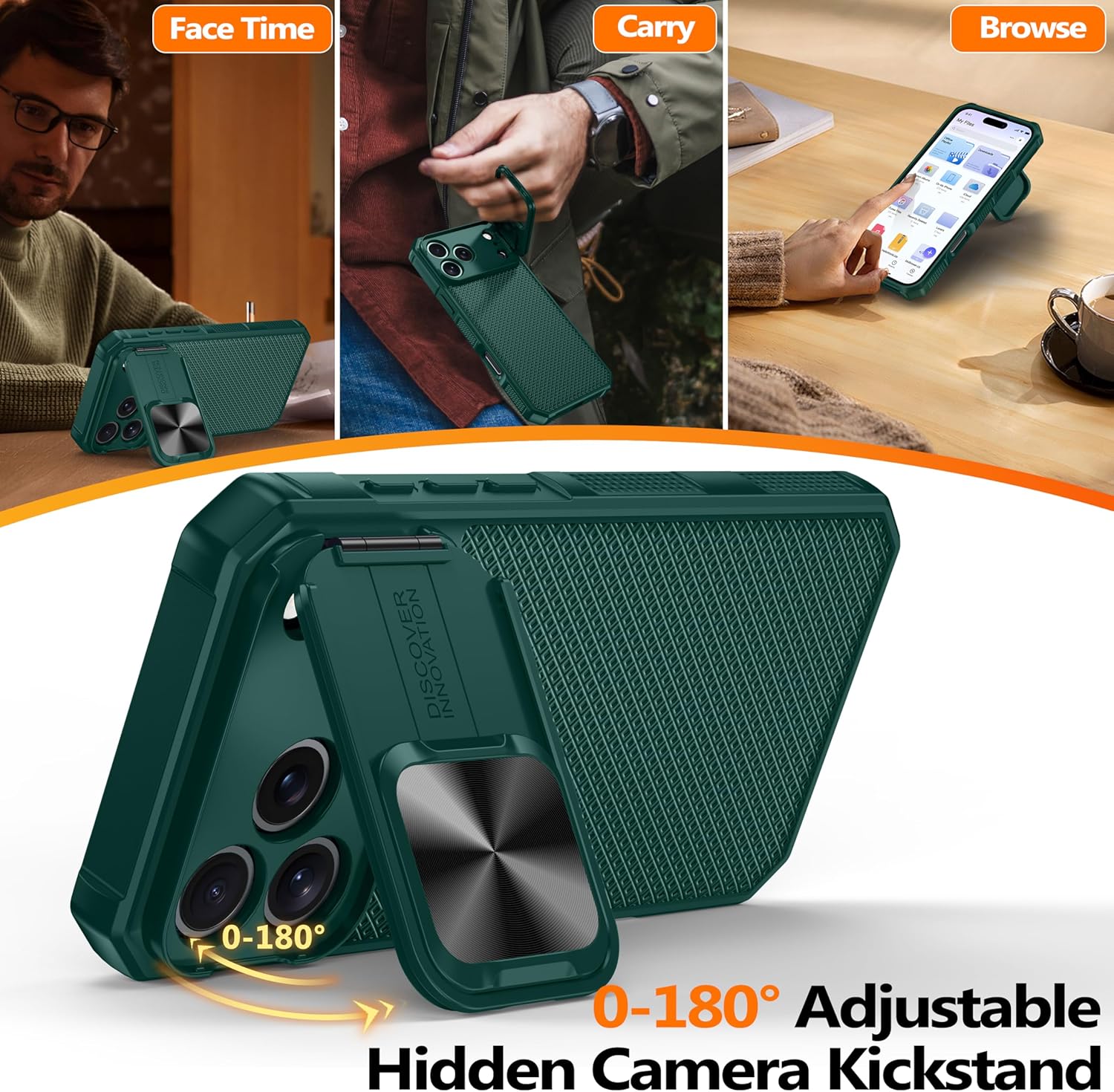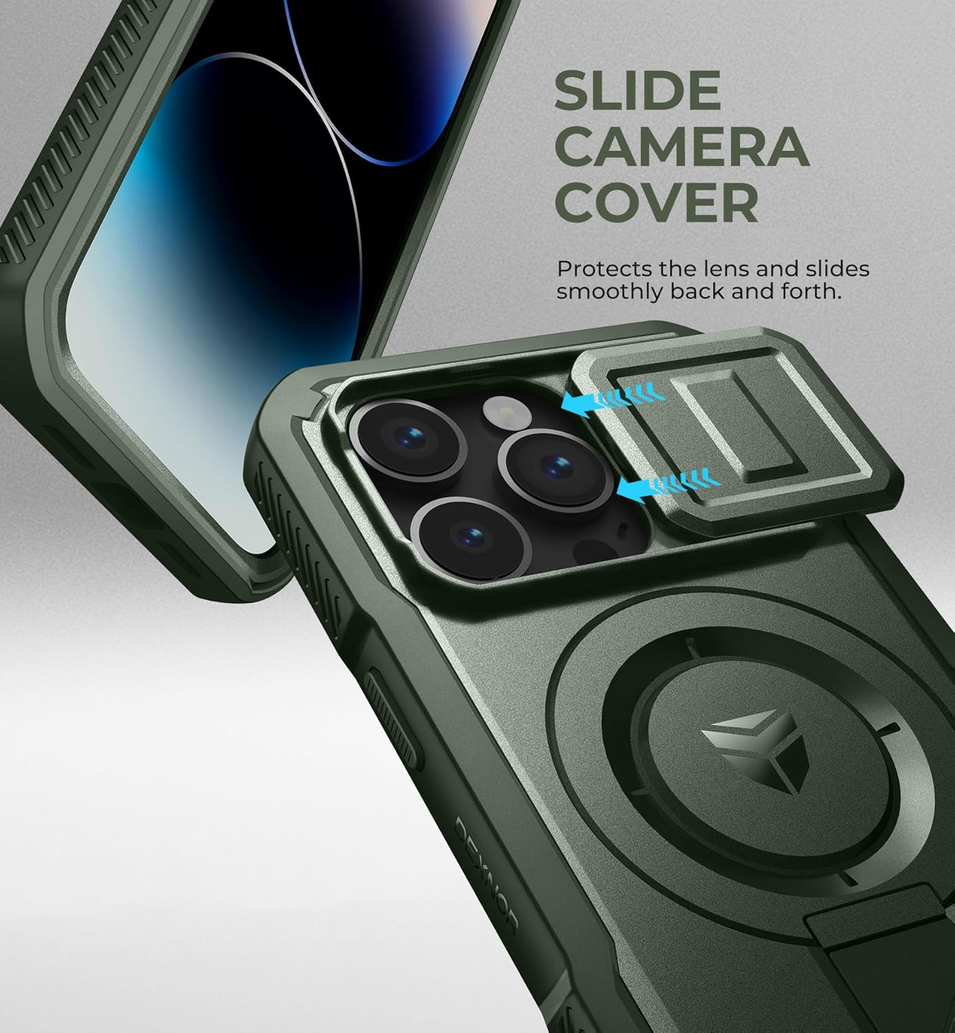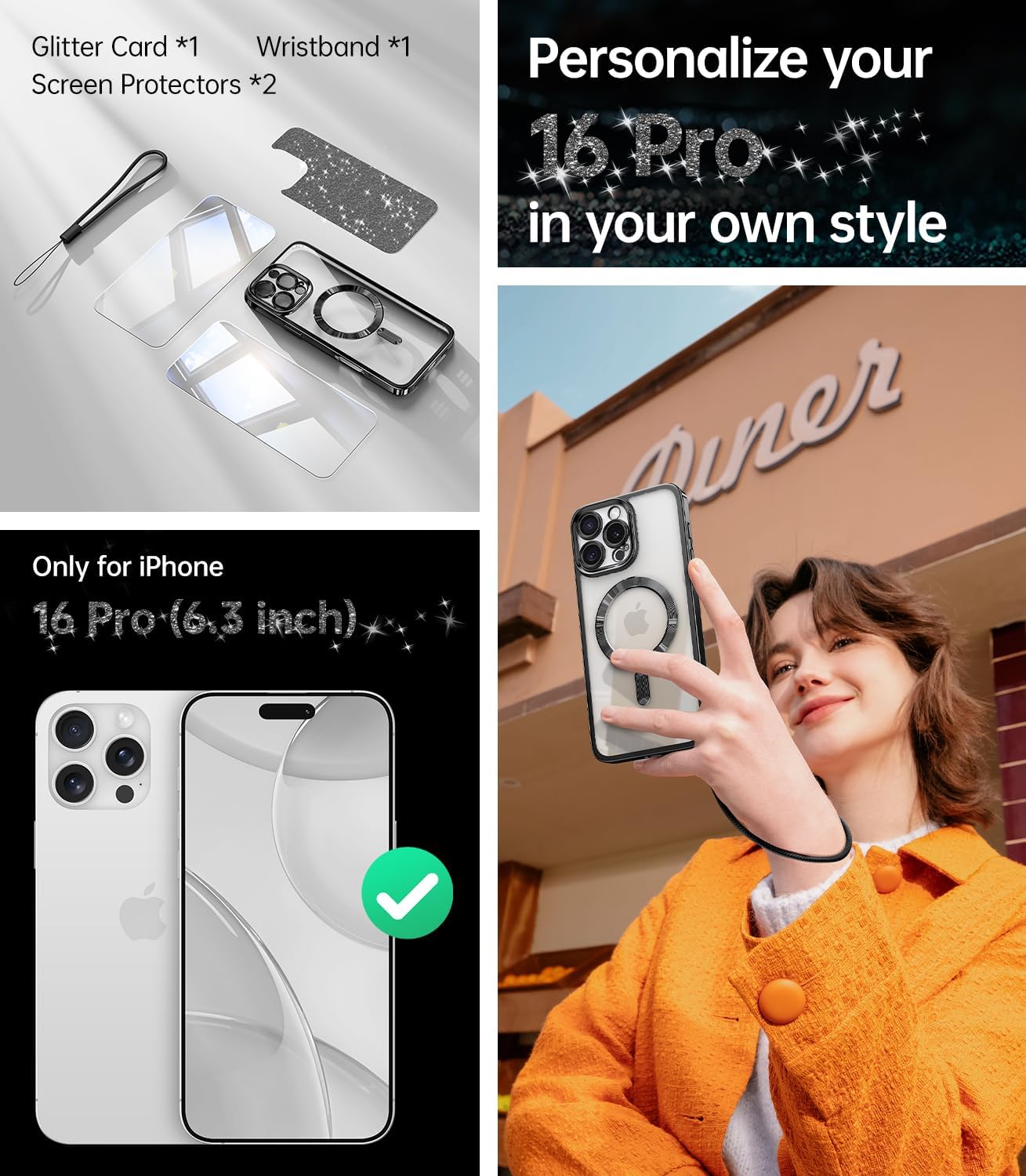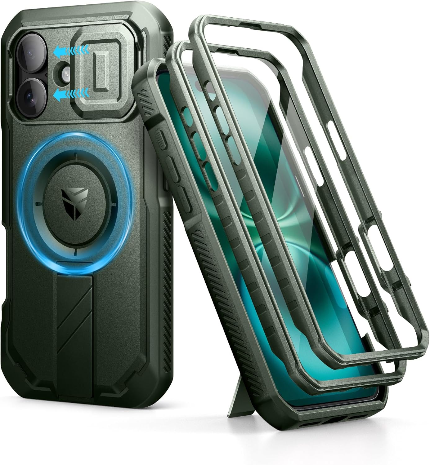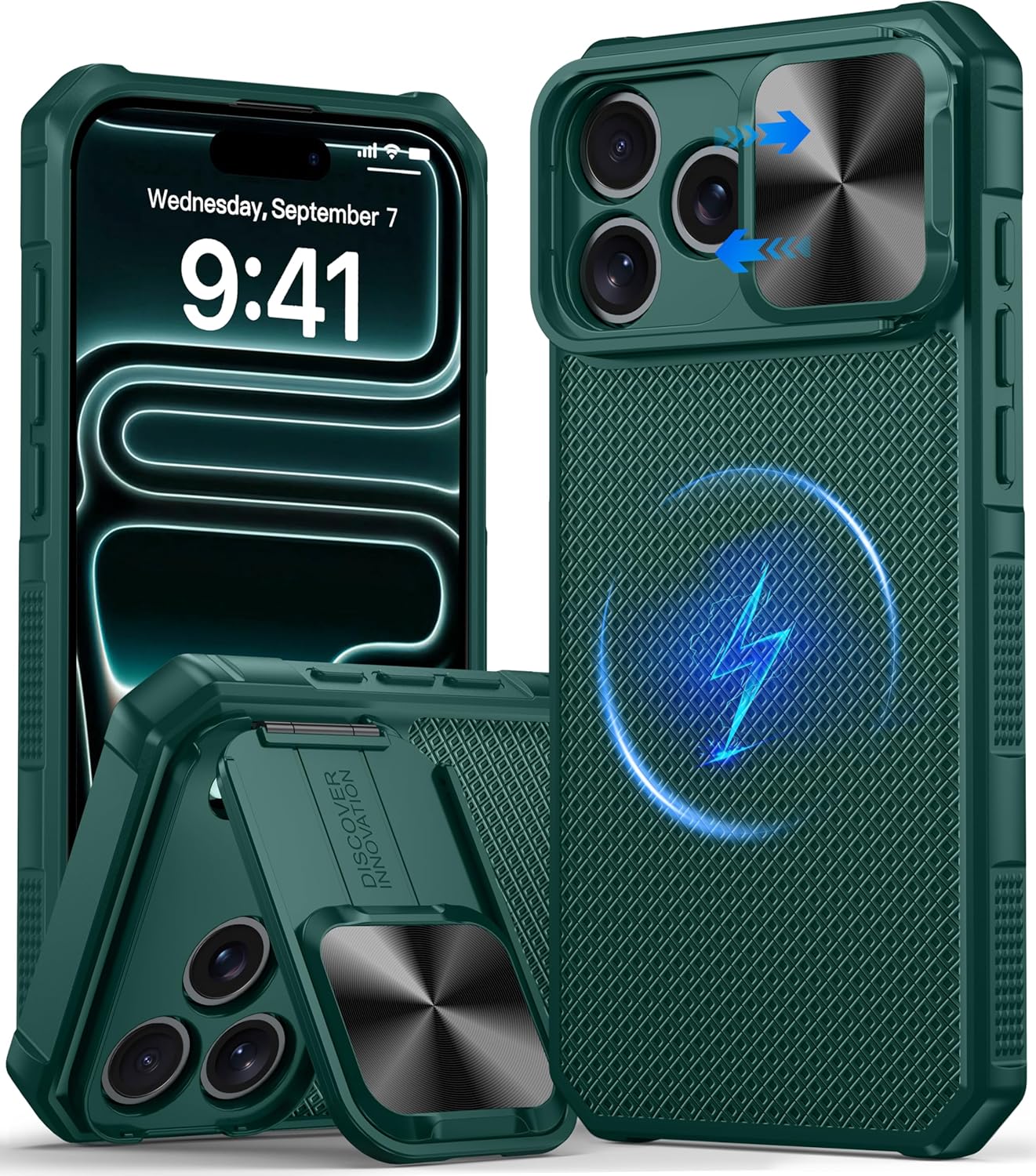 SURITCH 适用于 iPhone 16 Pro 手机壳,带滑动相机盖和可调节支架,兼容 MagSafe,防震防撞保护套,适用于 iPhone 16 Pro 6.3 英寸,黑色