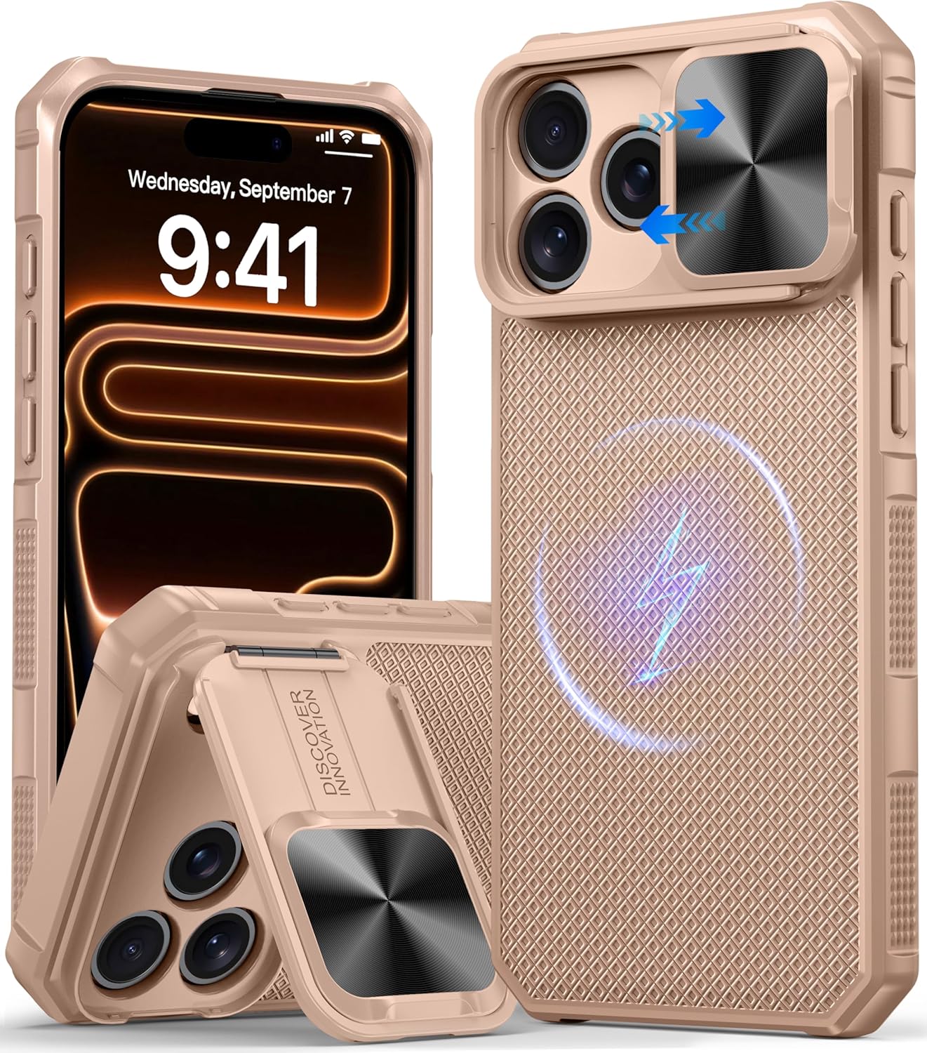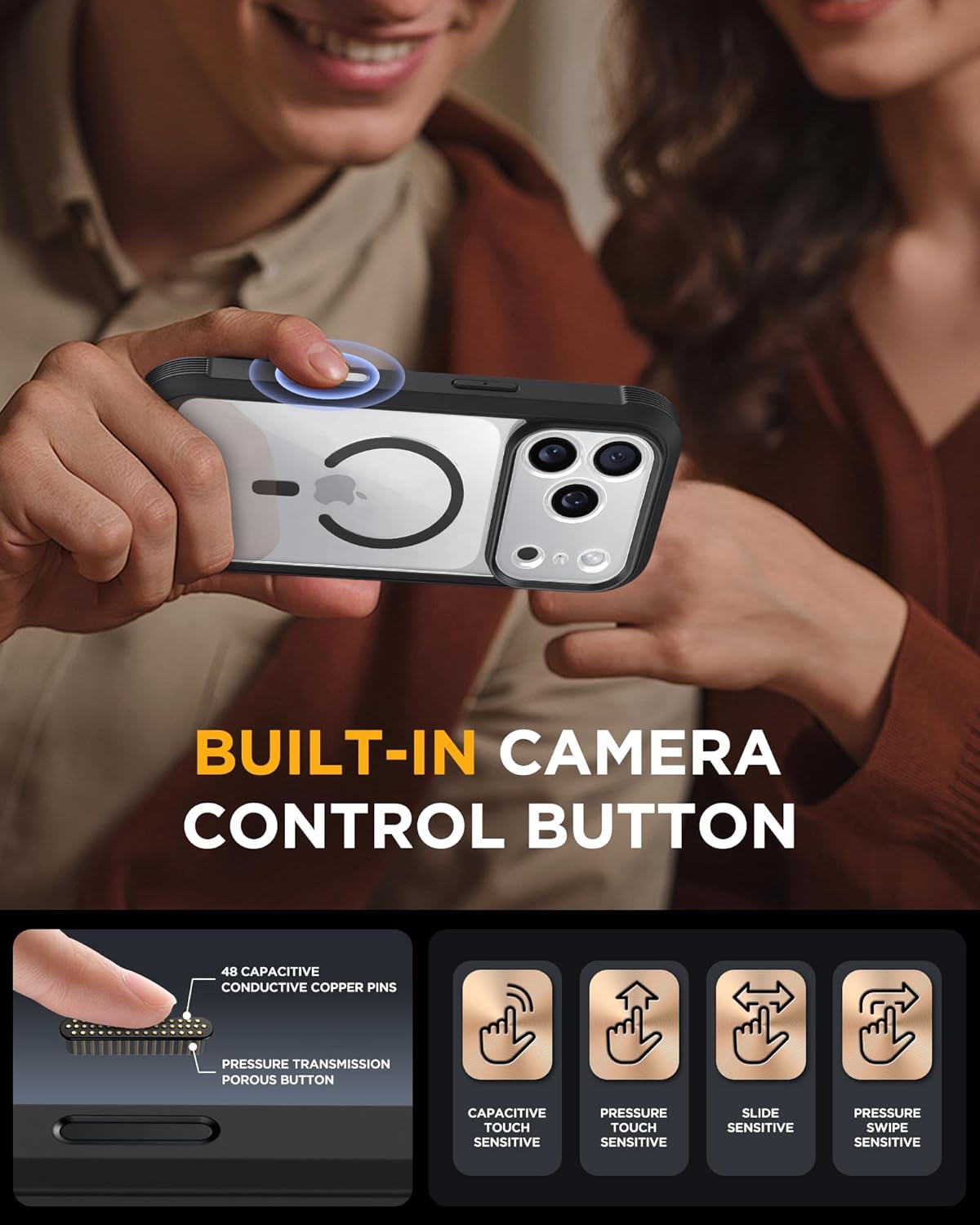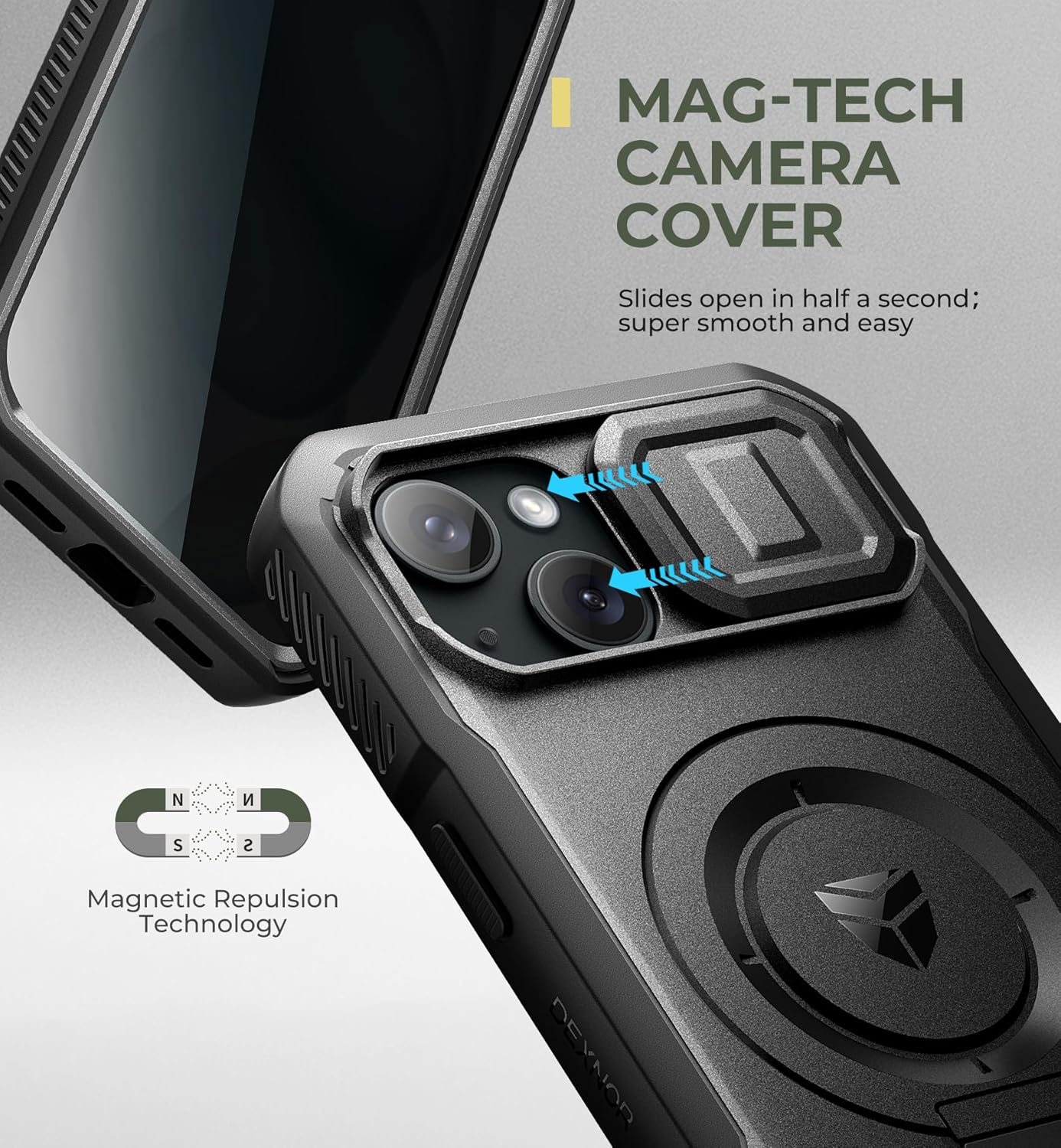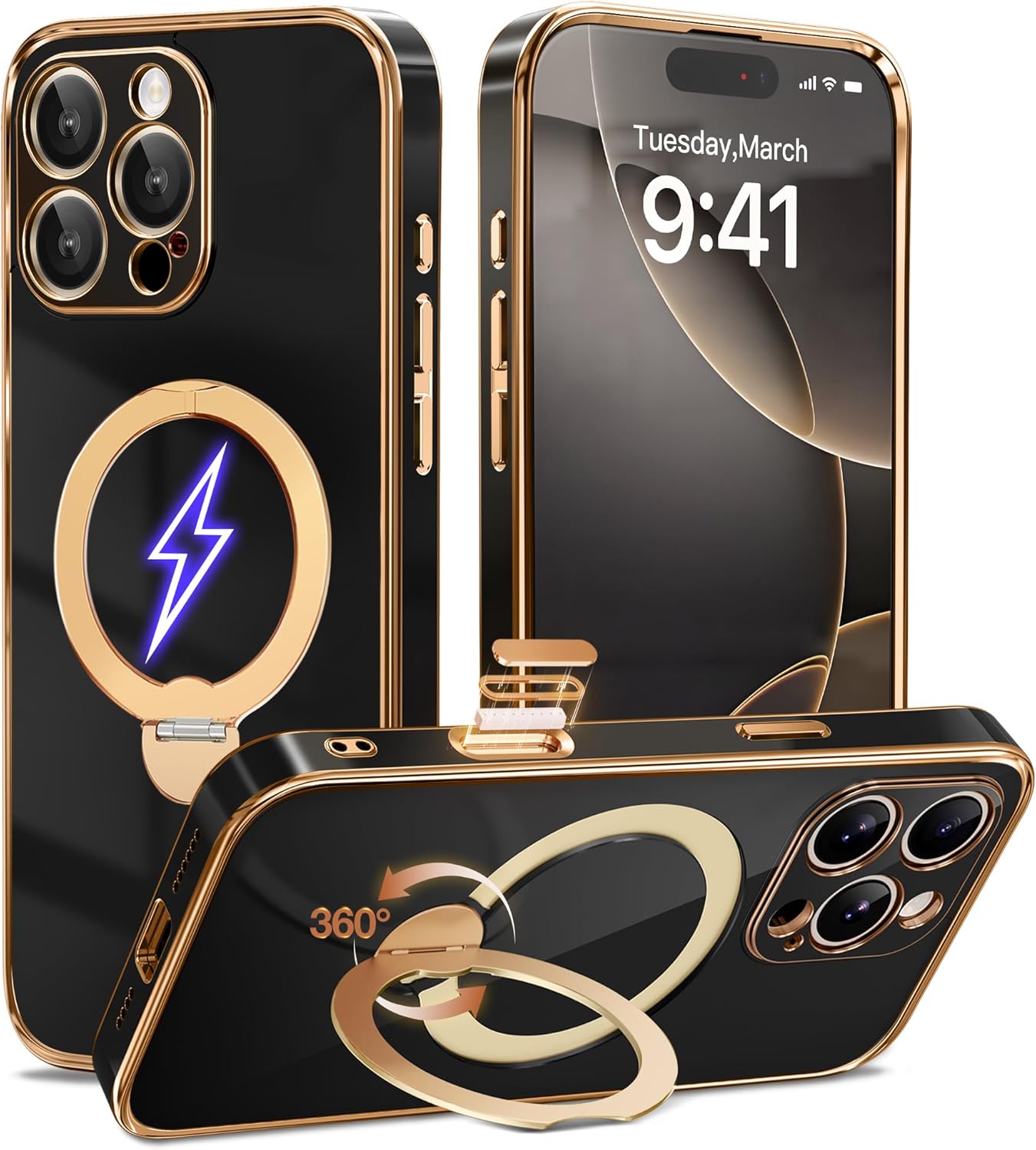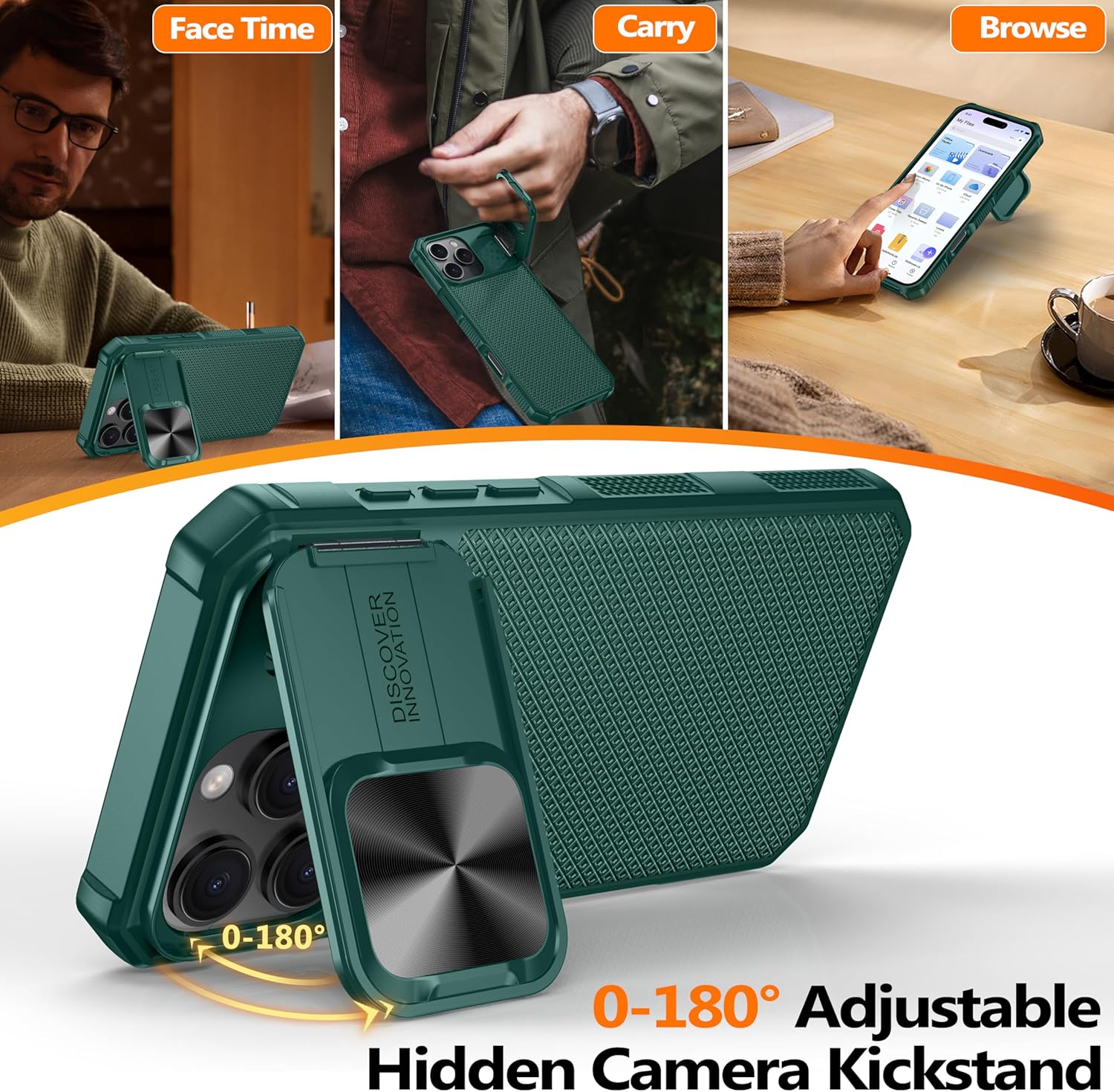 SURITCH 适用于 iPhone 16 Pro 手机壳,带滑动相机盖和可调节支架,兼容 MagSafe,防震防撞保护套,适用于 iPhone 16 Pro 6.3 英寸,黑色