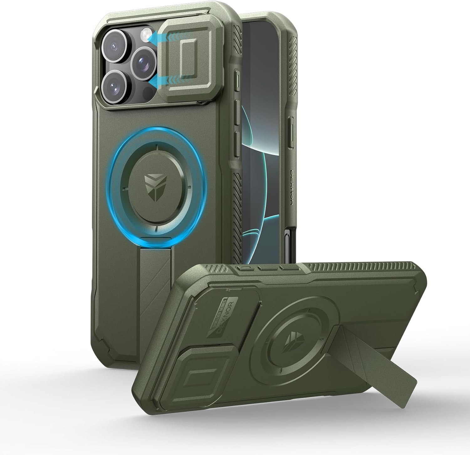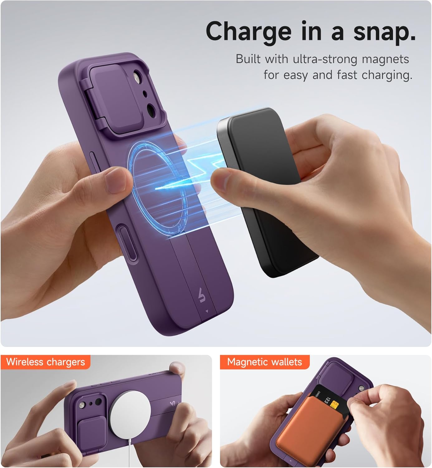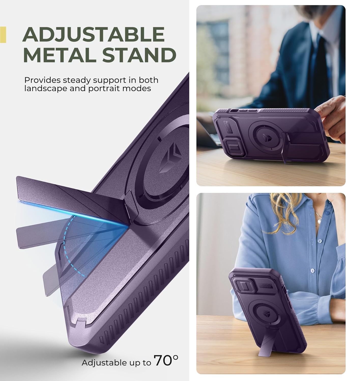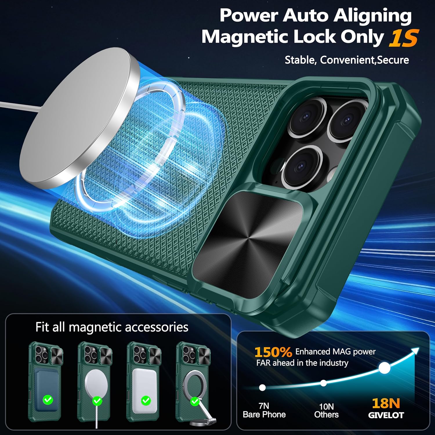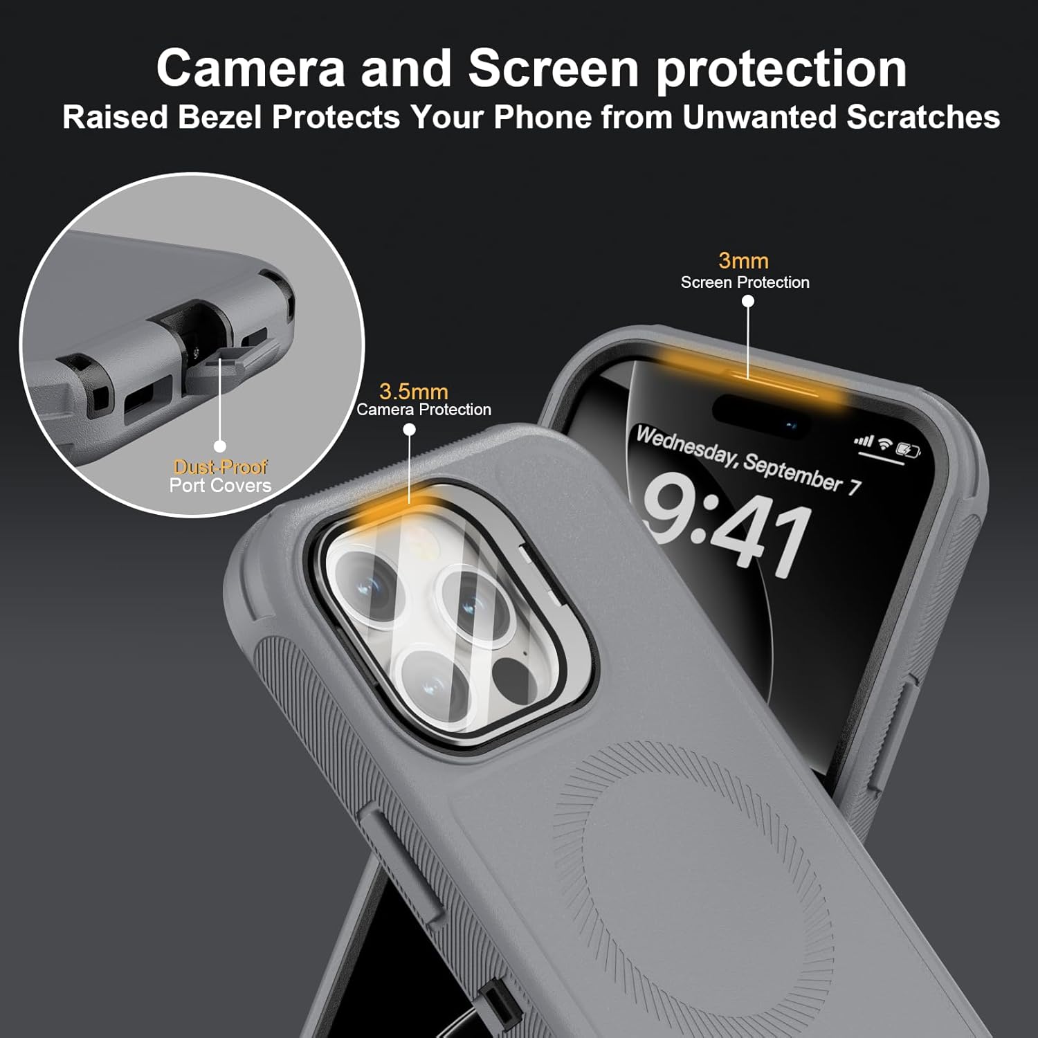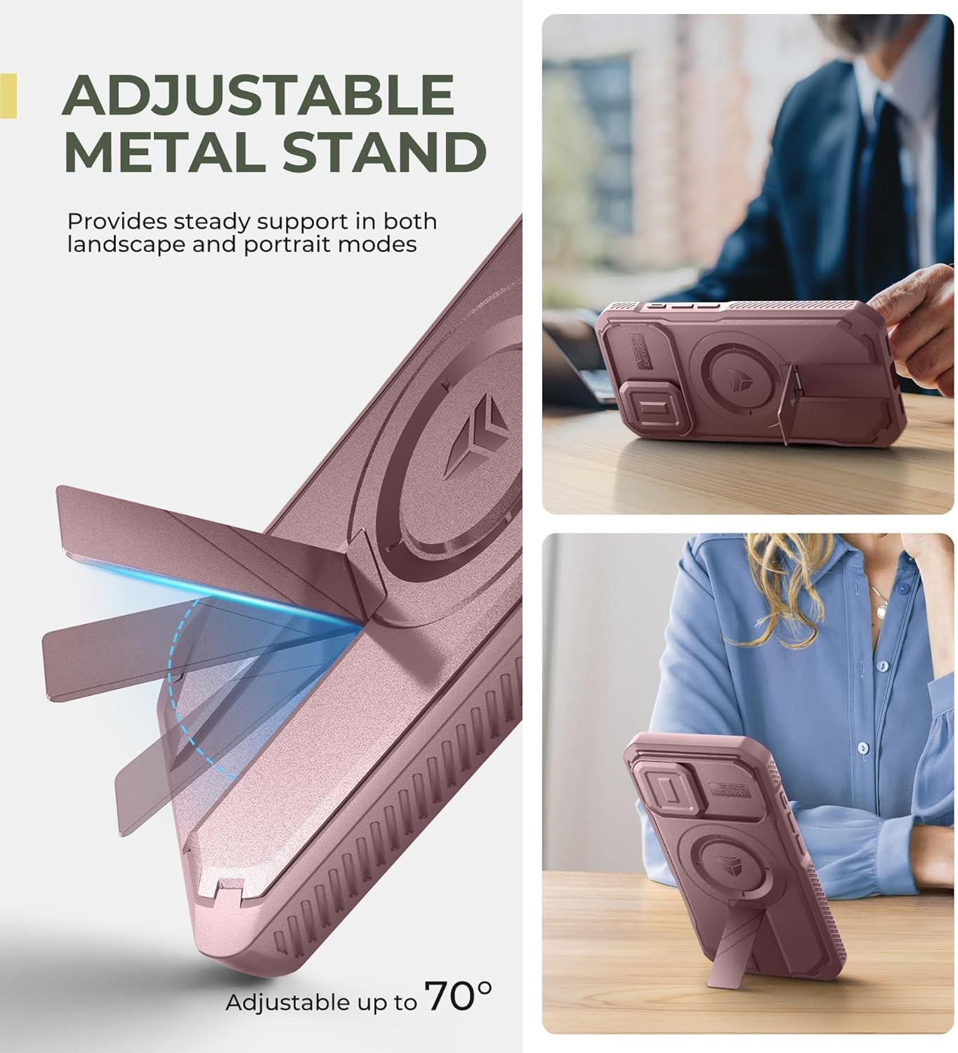 SURITCH 适用于 iPhone 16 Pro 手机壳,带滑动相机盖和可调节支架,兼容 MagSafe,防震防撞保护套,适用于 iPhone 16 Pro 6.3 英寸,黑色
