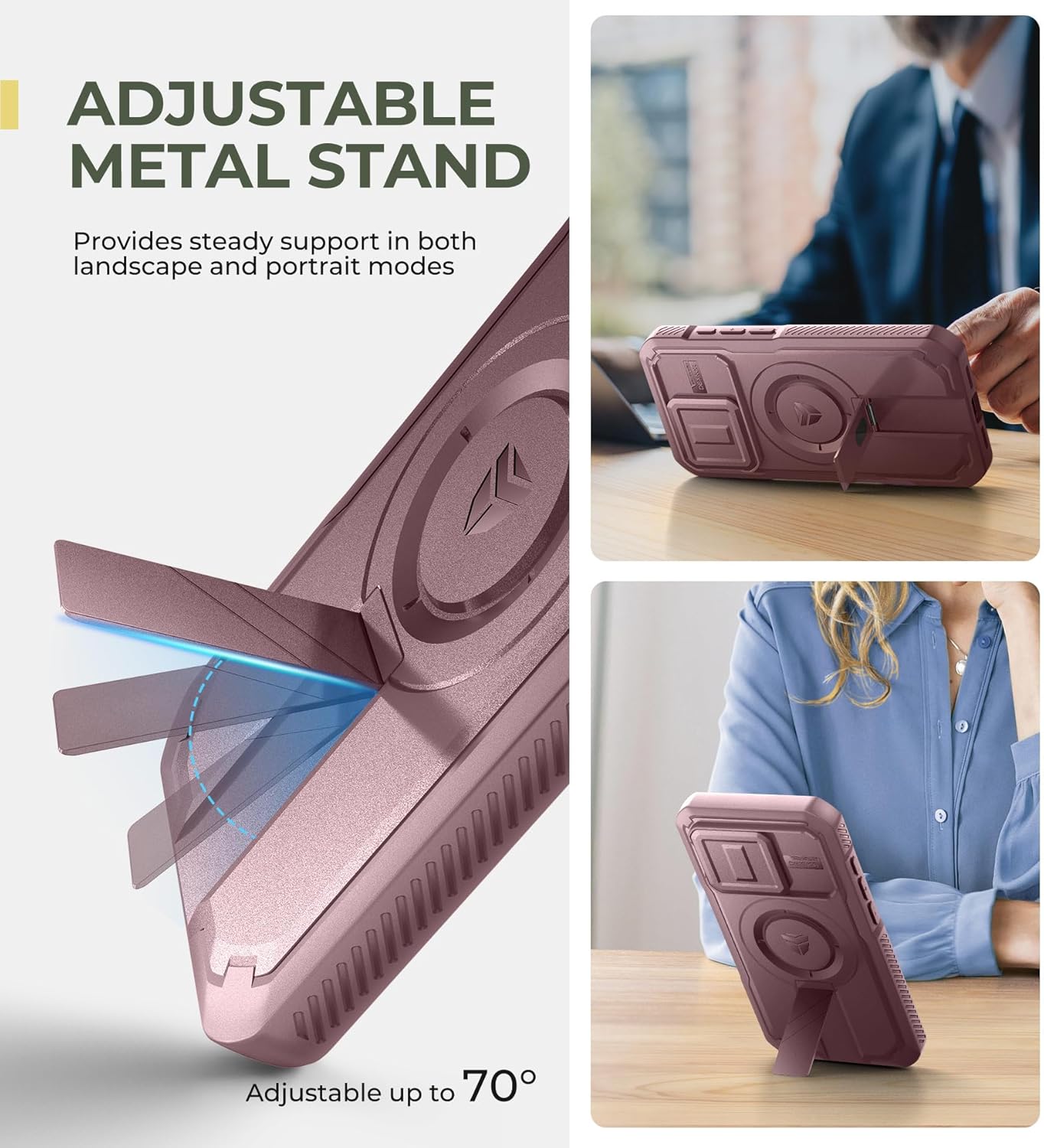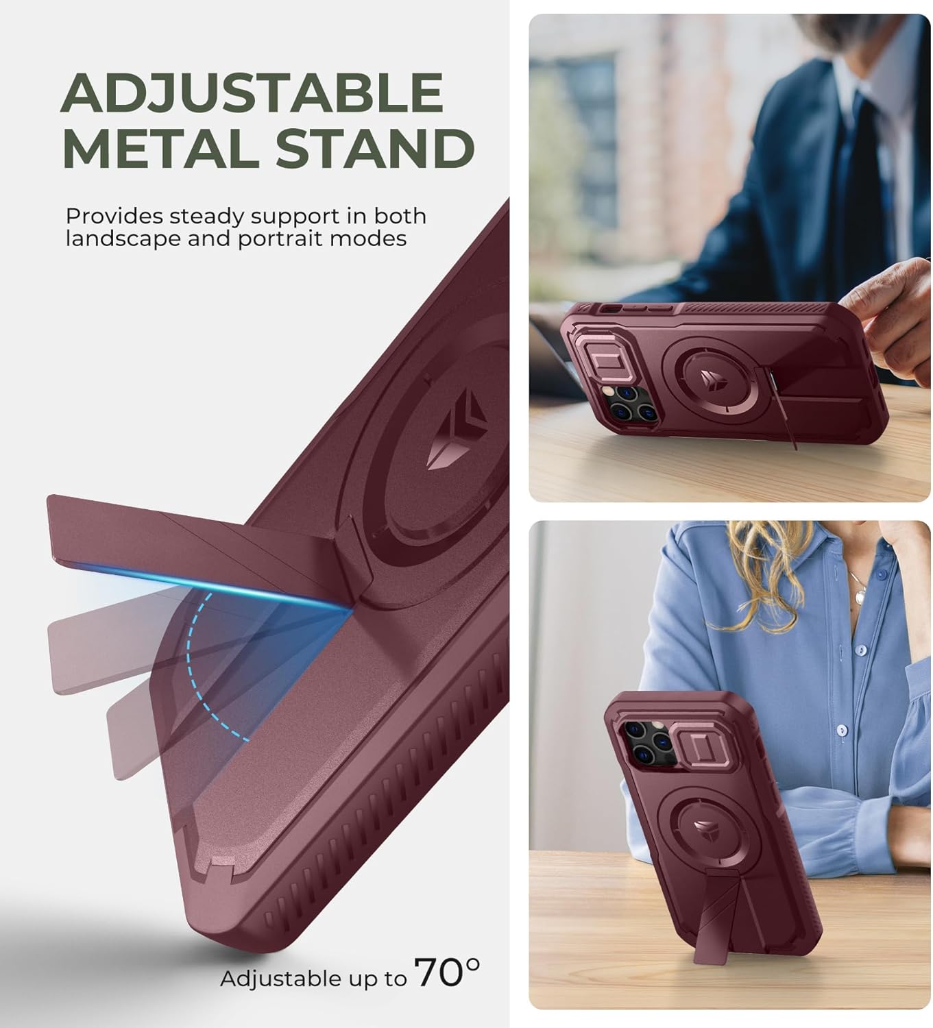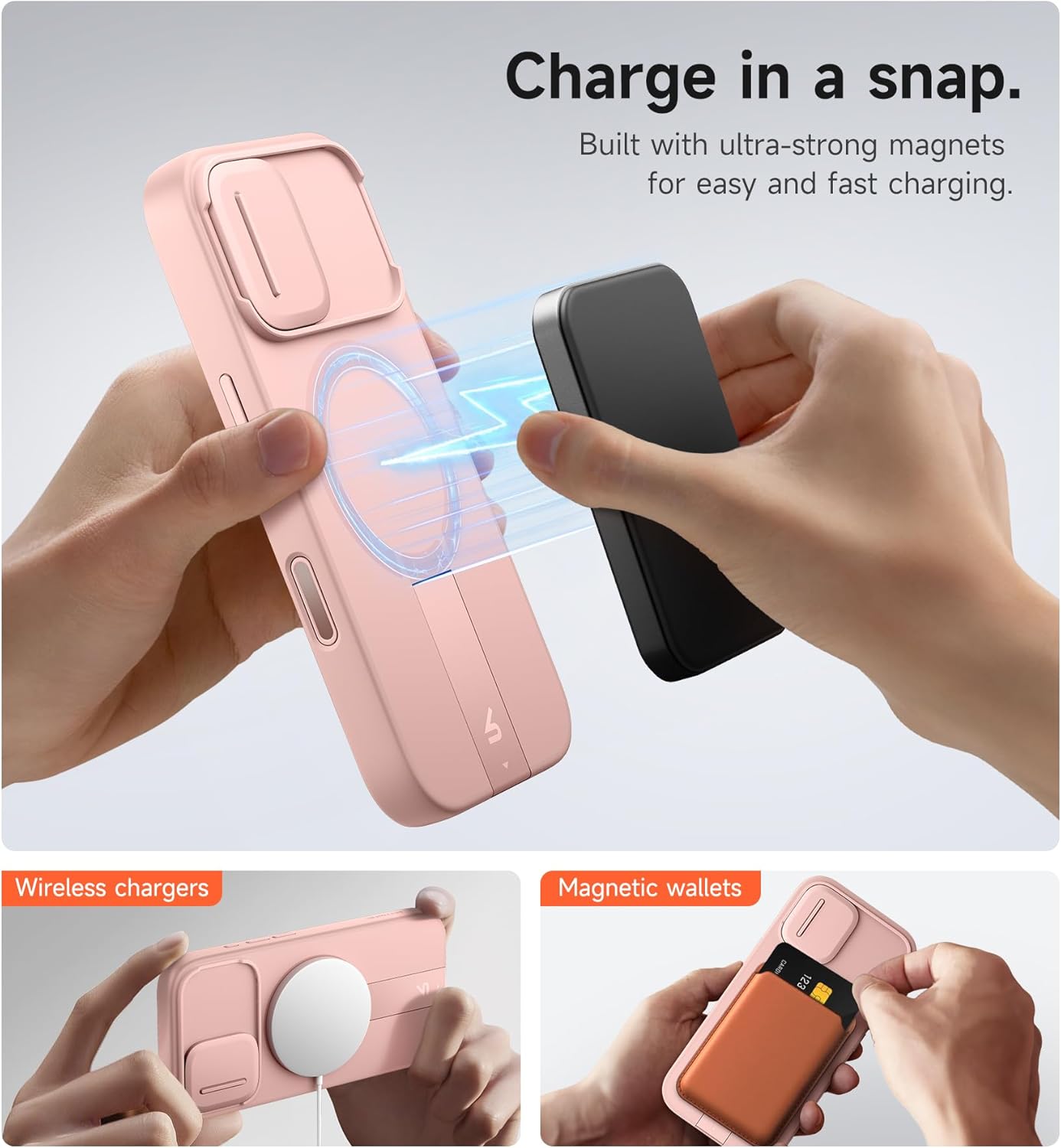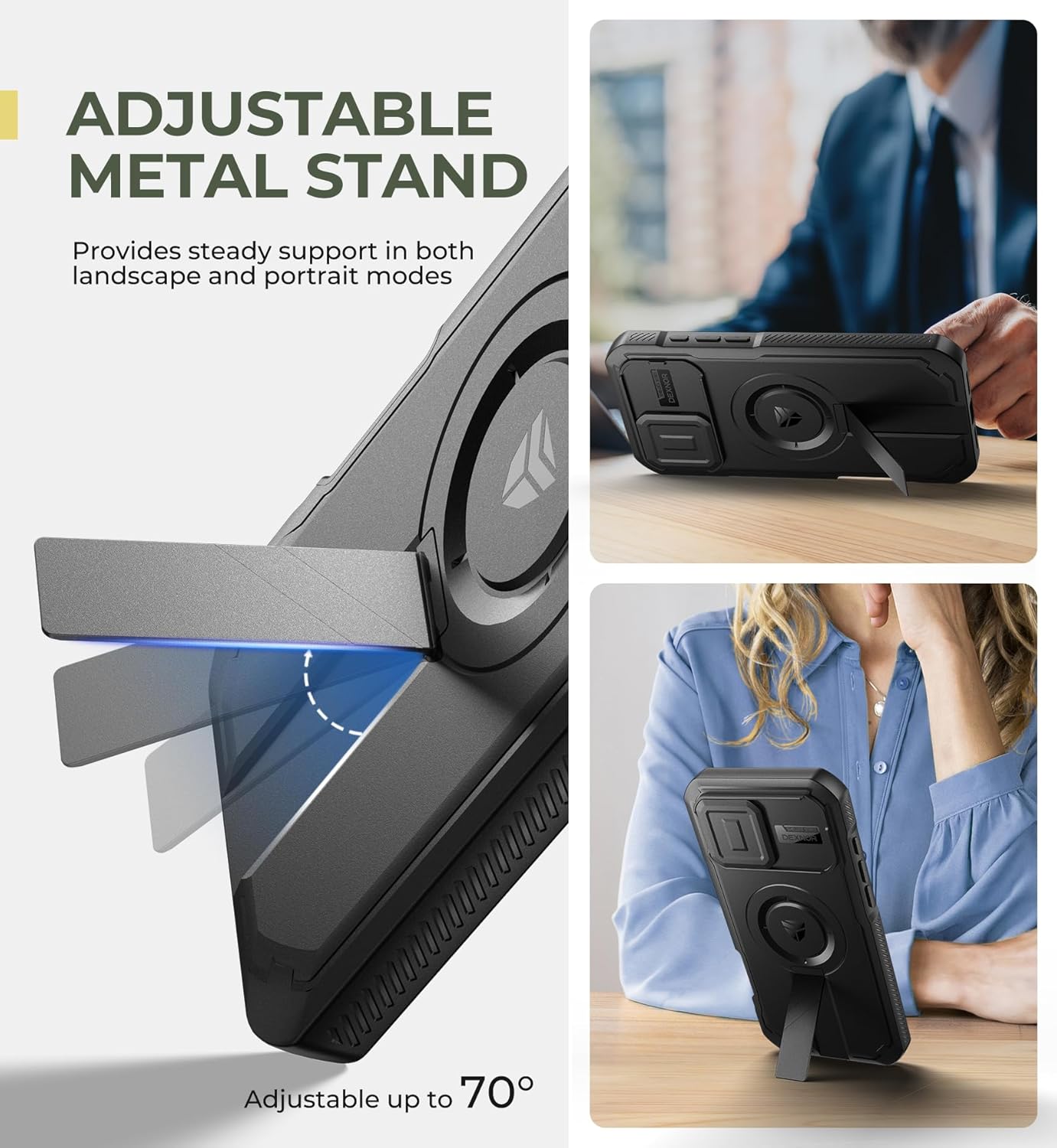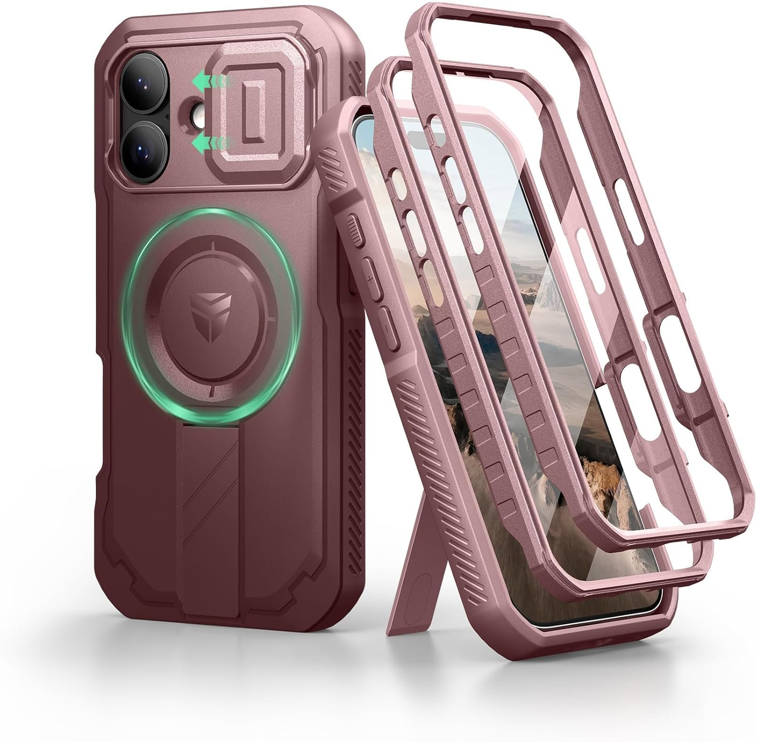 SURITCH 适用于 iPhone 16 Pro 手机壳,带滑动相机盖和可调节支架,兼容 MagSafe,防震防撞保护套,适用于 iPhone 16 Pro 6.3 英寸,黑色