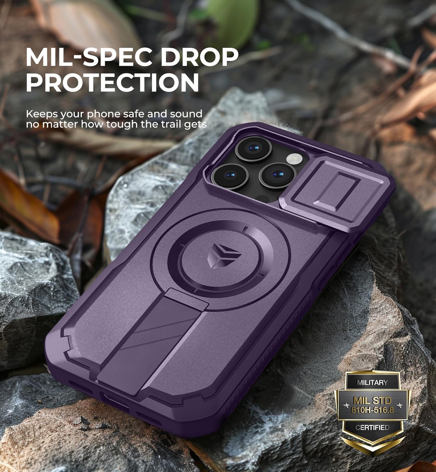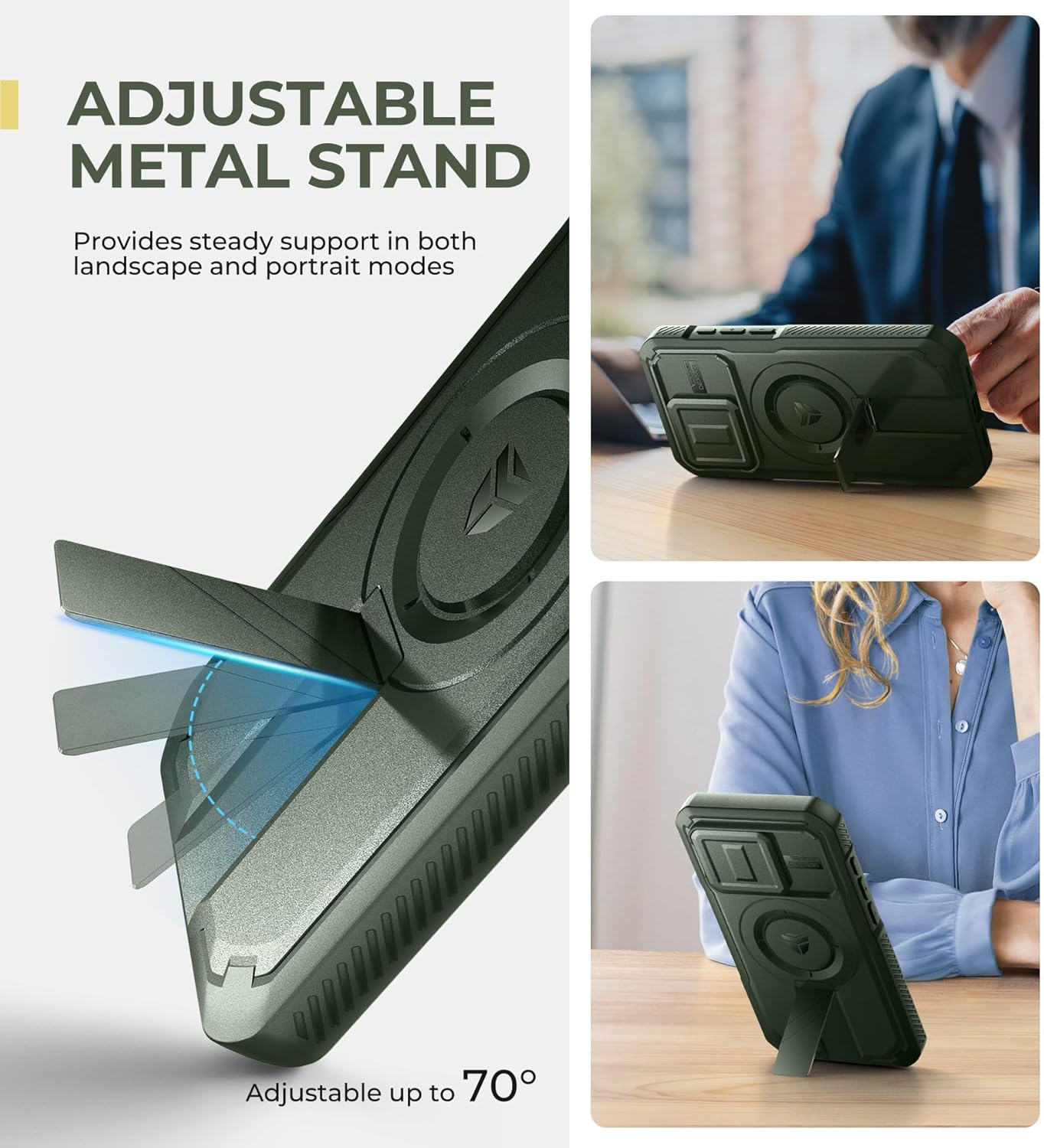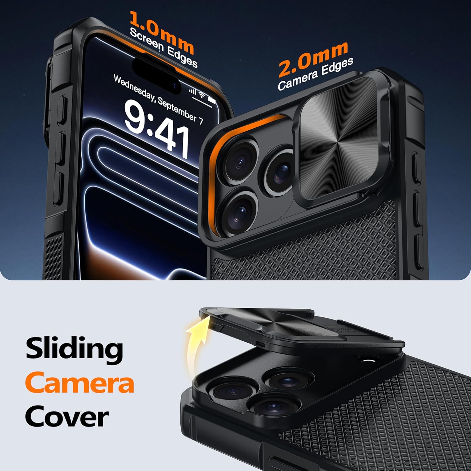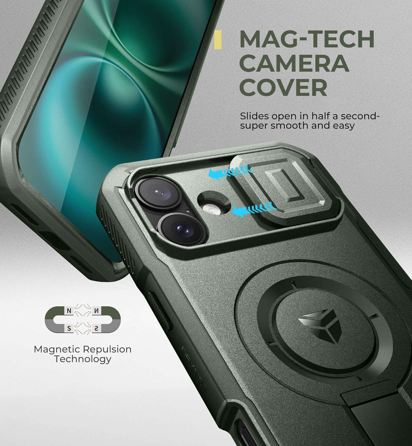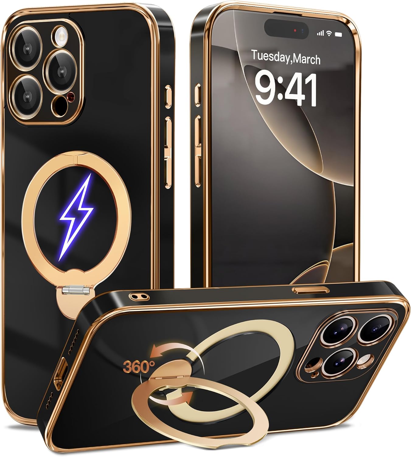 SURITCH 适用于 iPhone 16 Pro 手机壳,带滑动相机盖和可调节支架,兼容 MagSafe,防震防撞保护套,适用于 iPhone 16 Pro 6.3 英寸,黑色