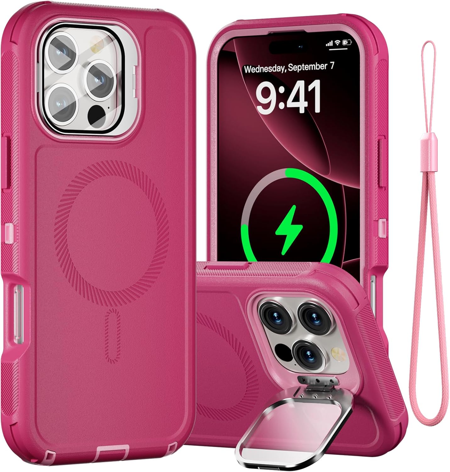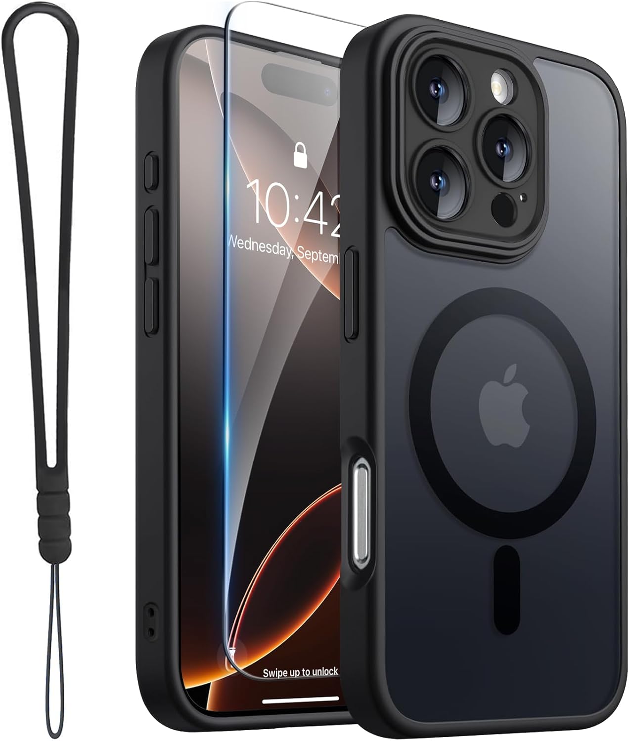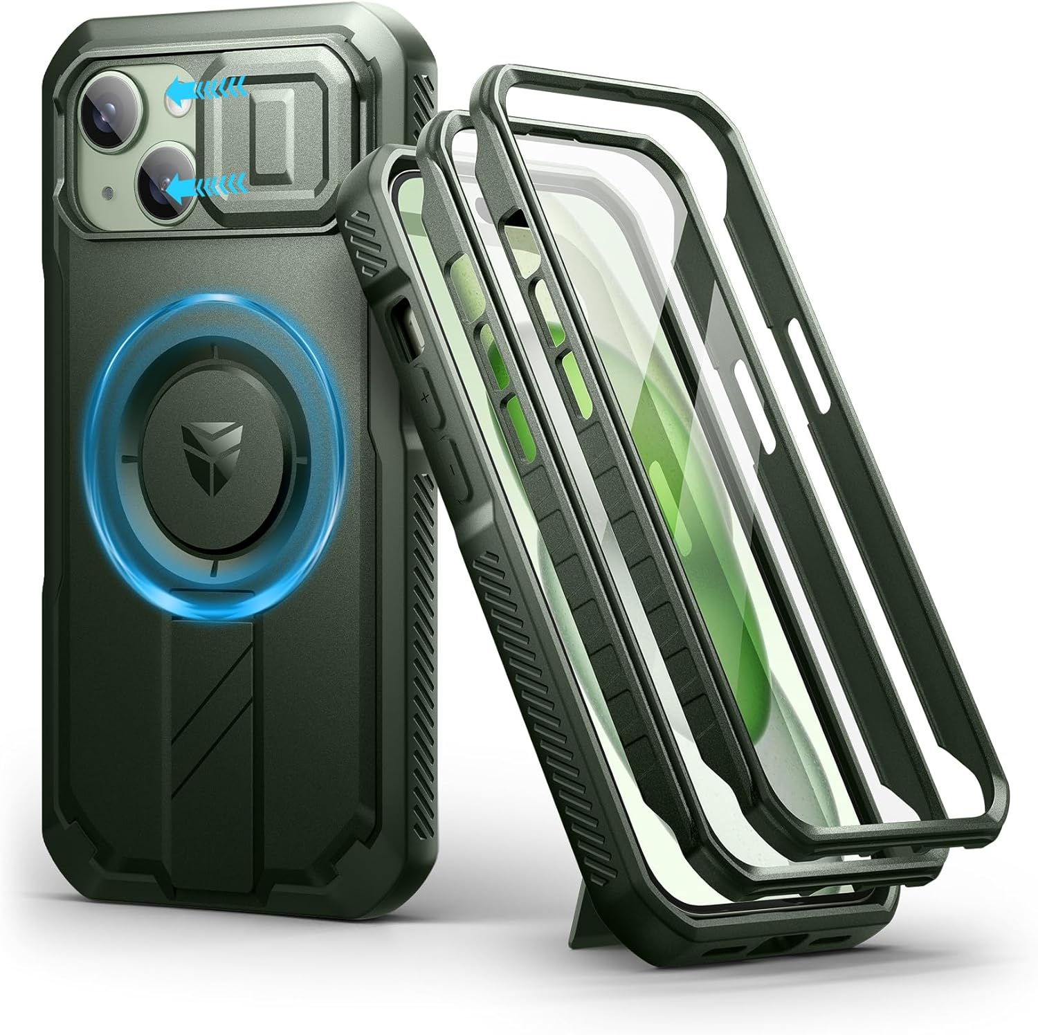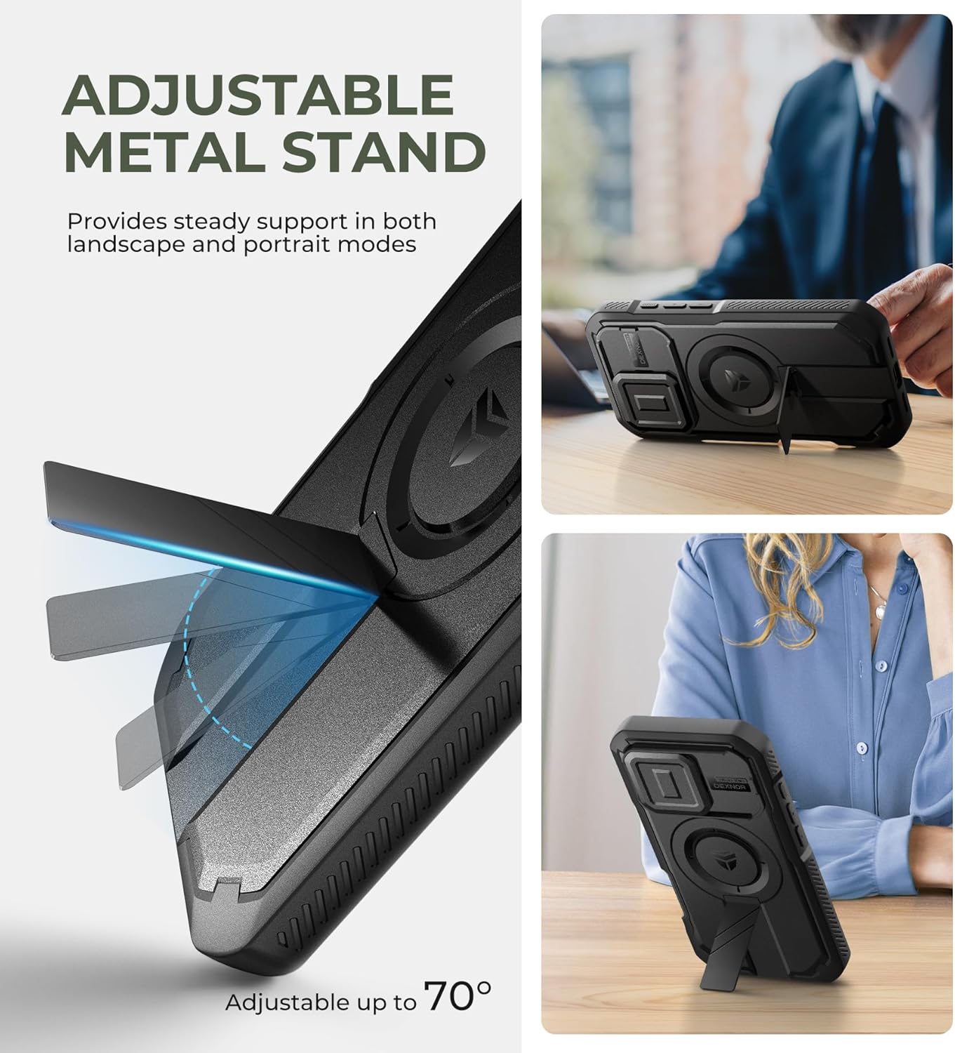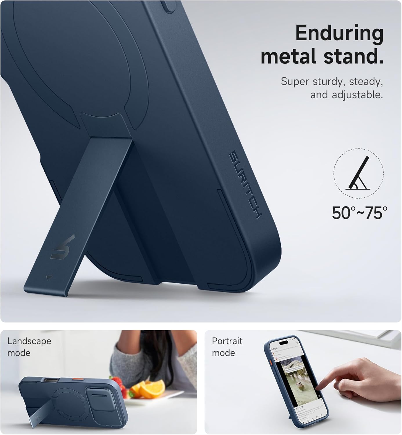 SURITCH 适用于 iPhone 16 Pro 手机壳,带滑动相机盖和可调节支架,兼容 MagSafe,防震防撞保护套,适用于 iPhone 16 Pro 6.3 英寸,黑色