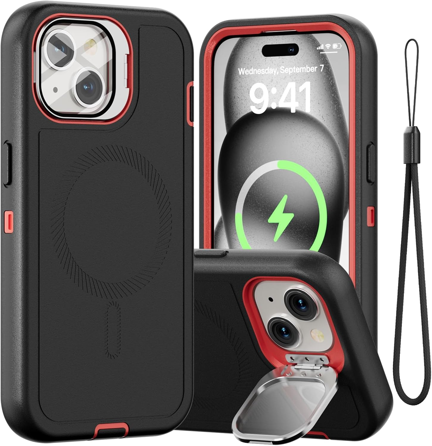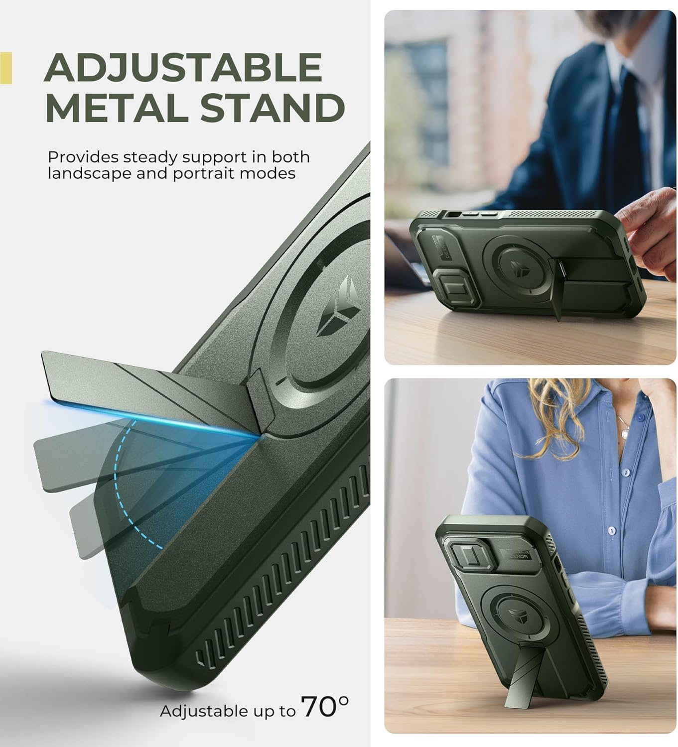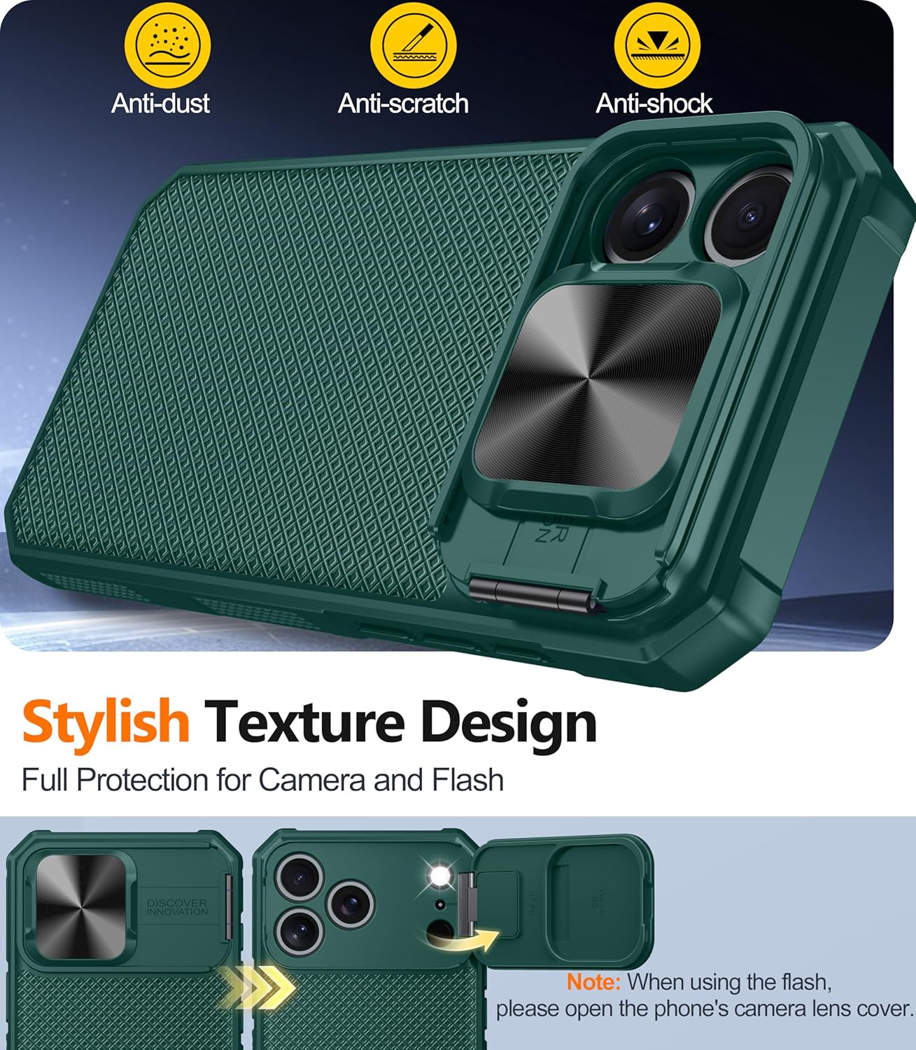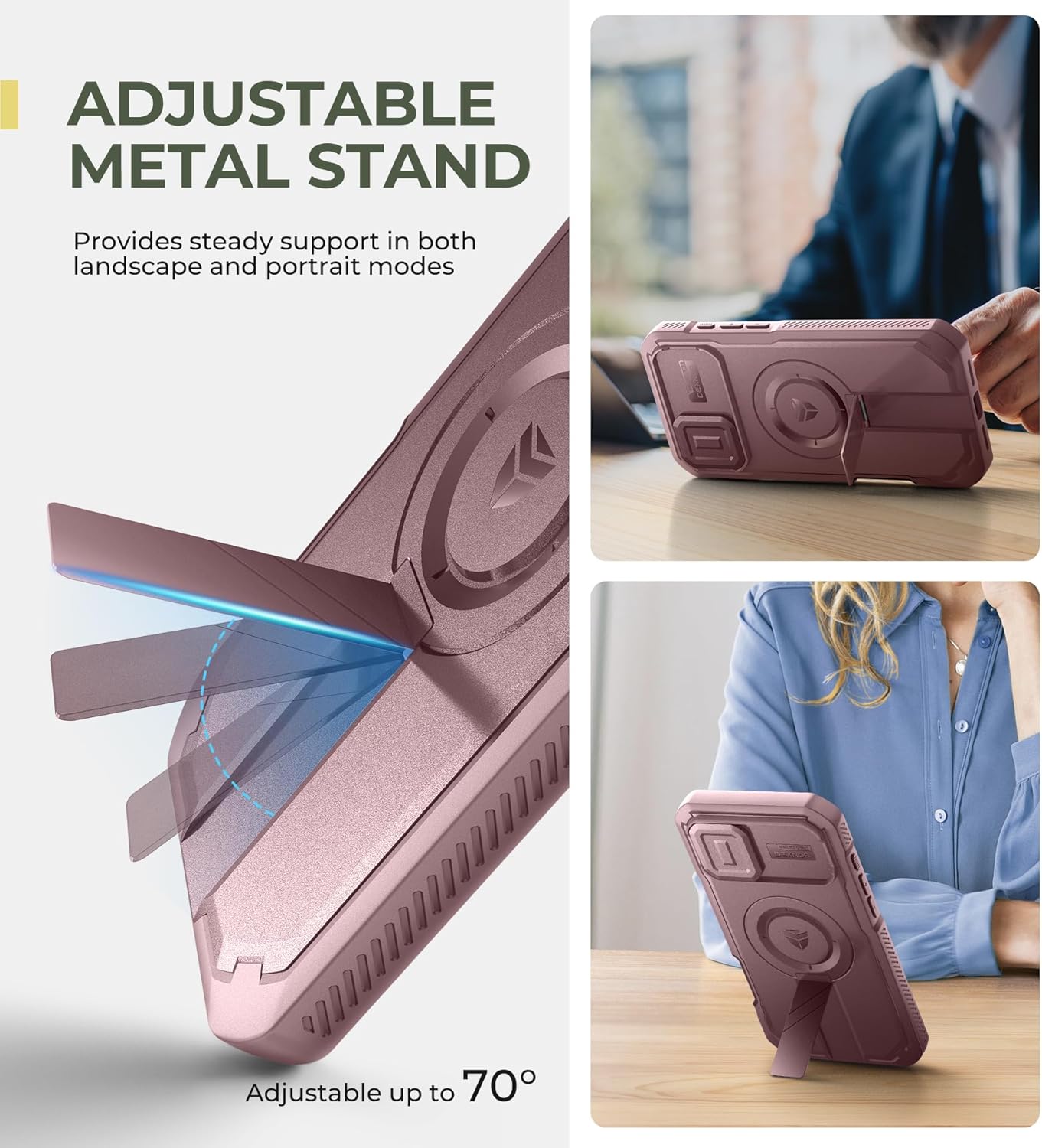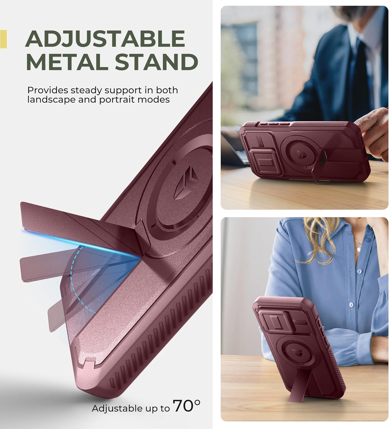 SURITCH 适用于 iPhone 16 Pro 手机壳,带滑动相机盖和可调节支架,兼容 MagSafe,防震防撞保护套,适用于 iPhone 16 Pro 6.3 英寸,黑色