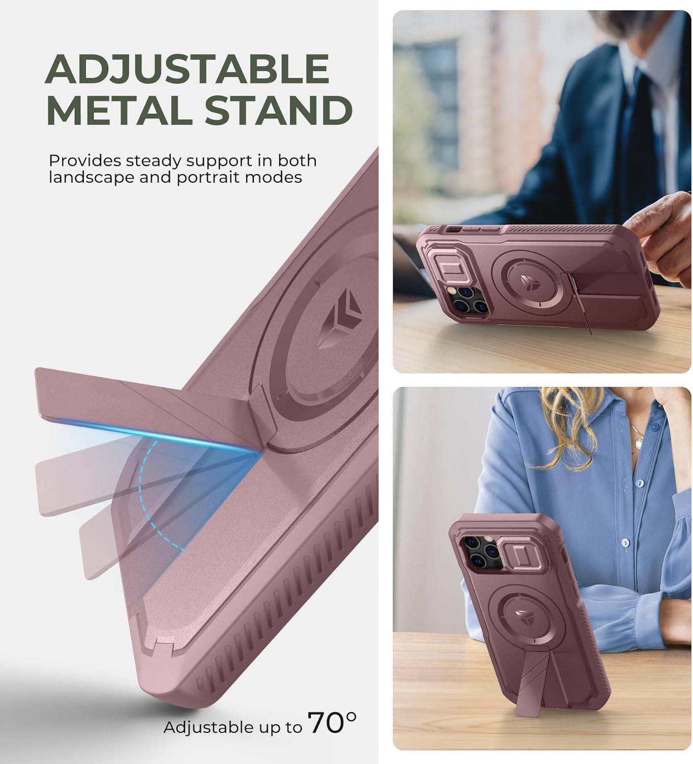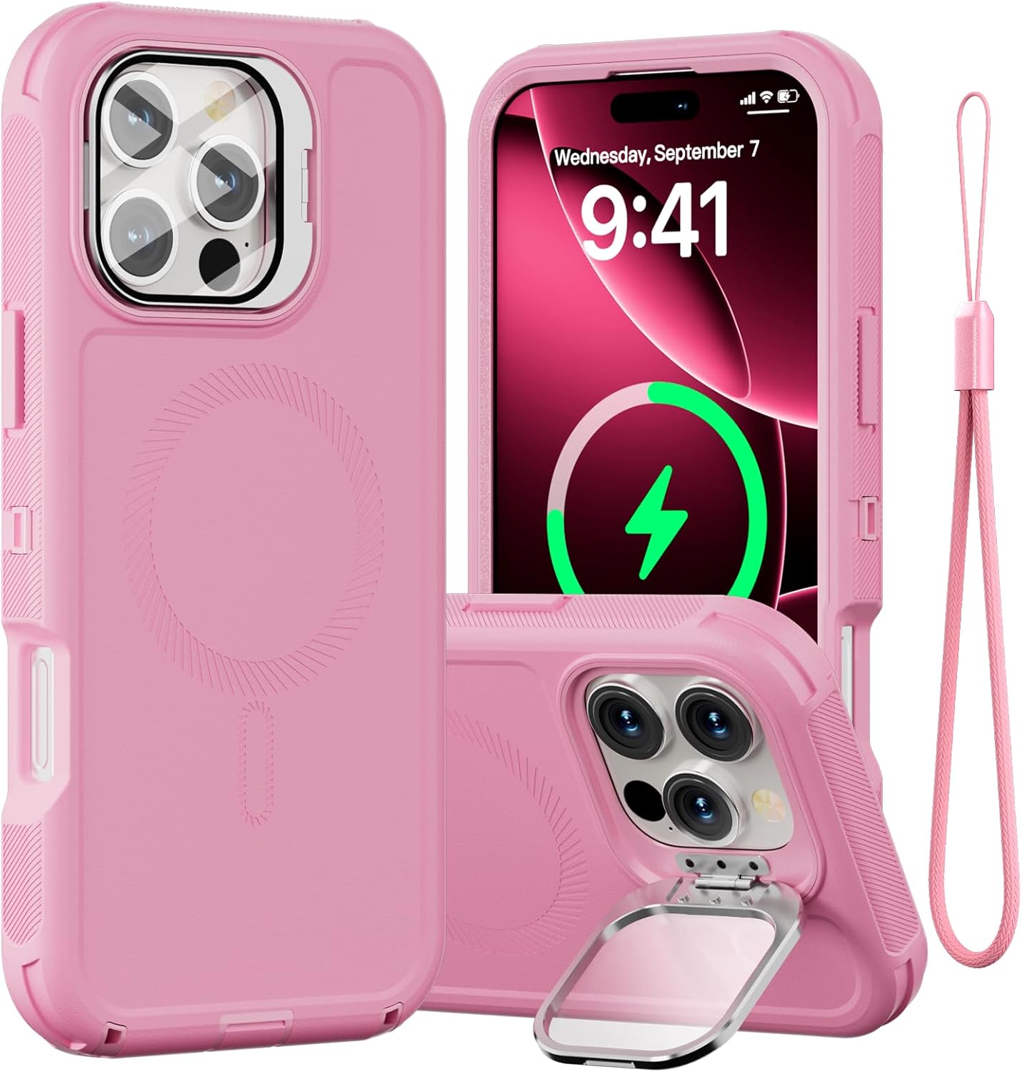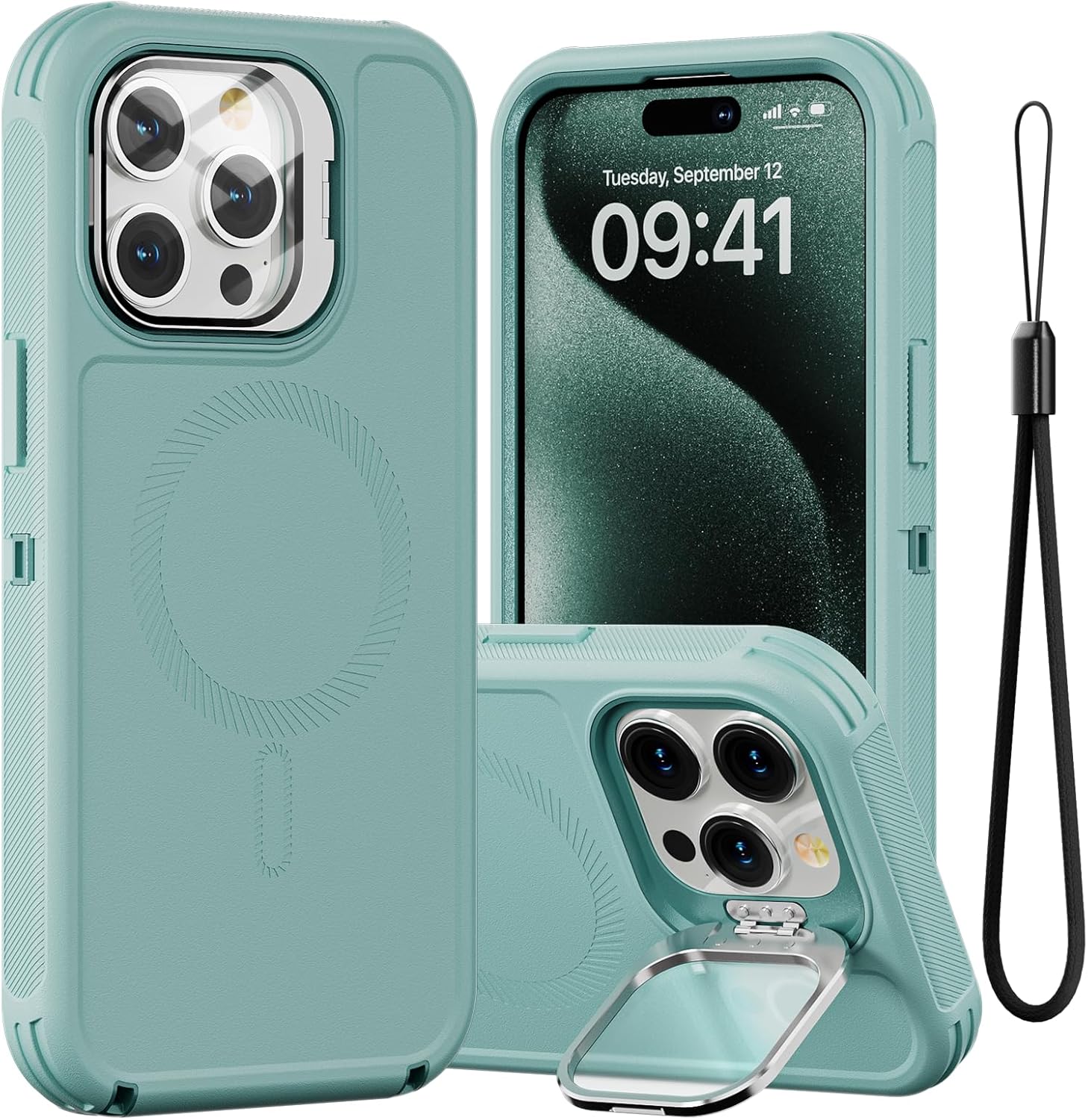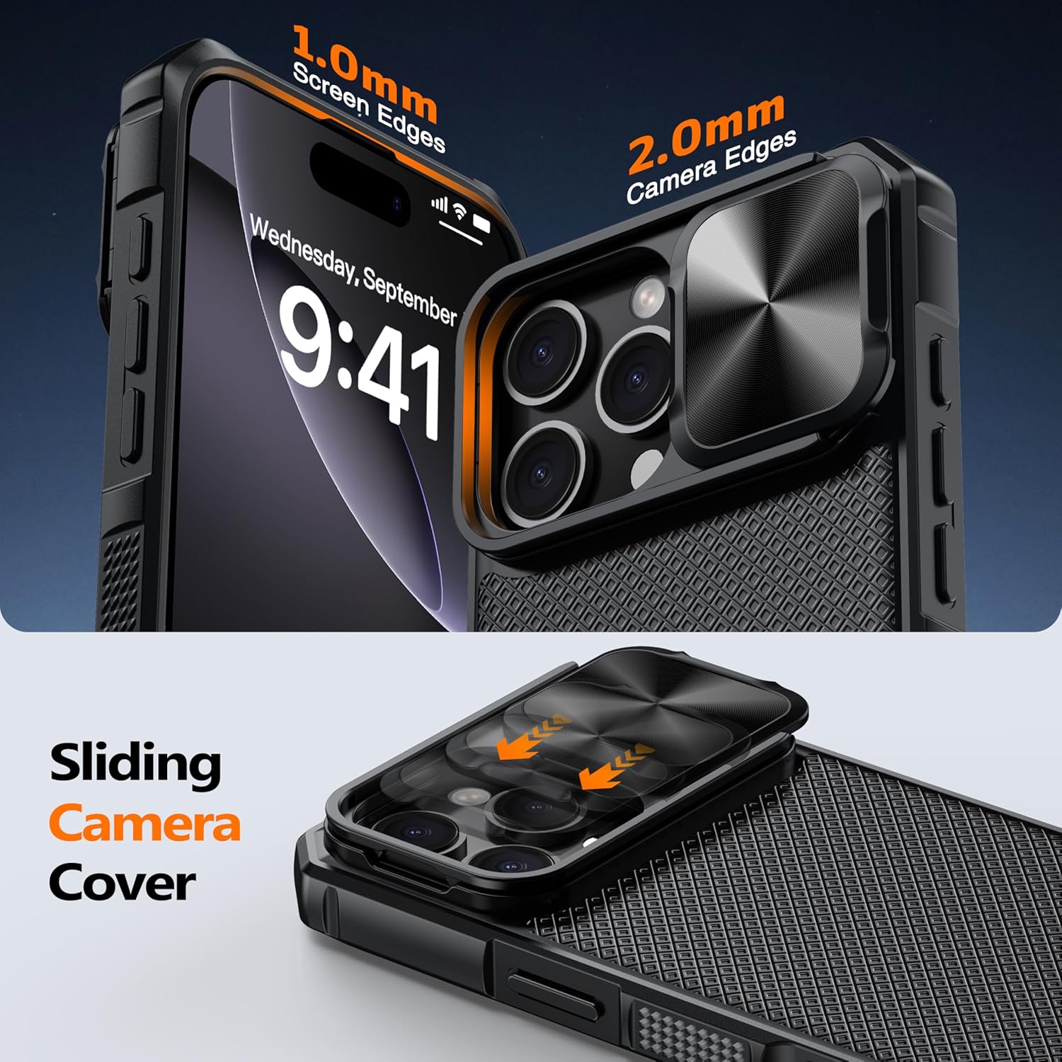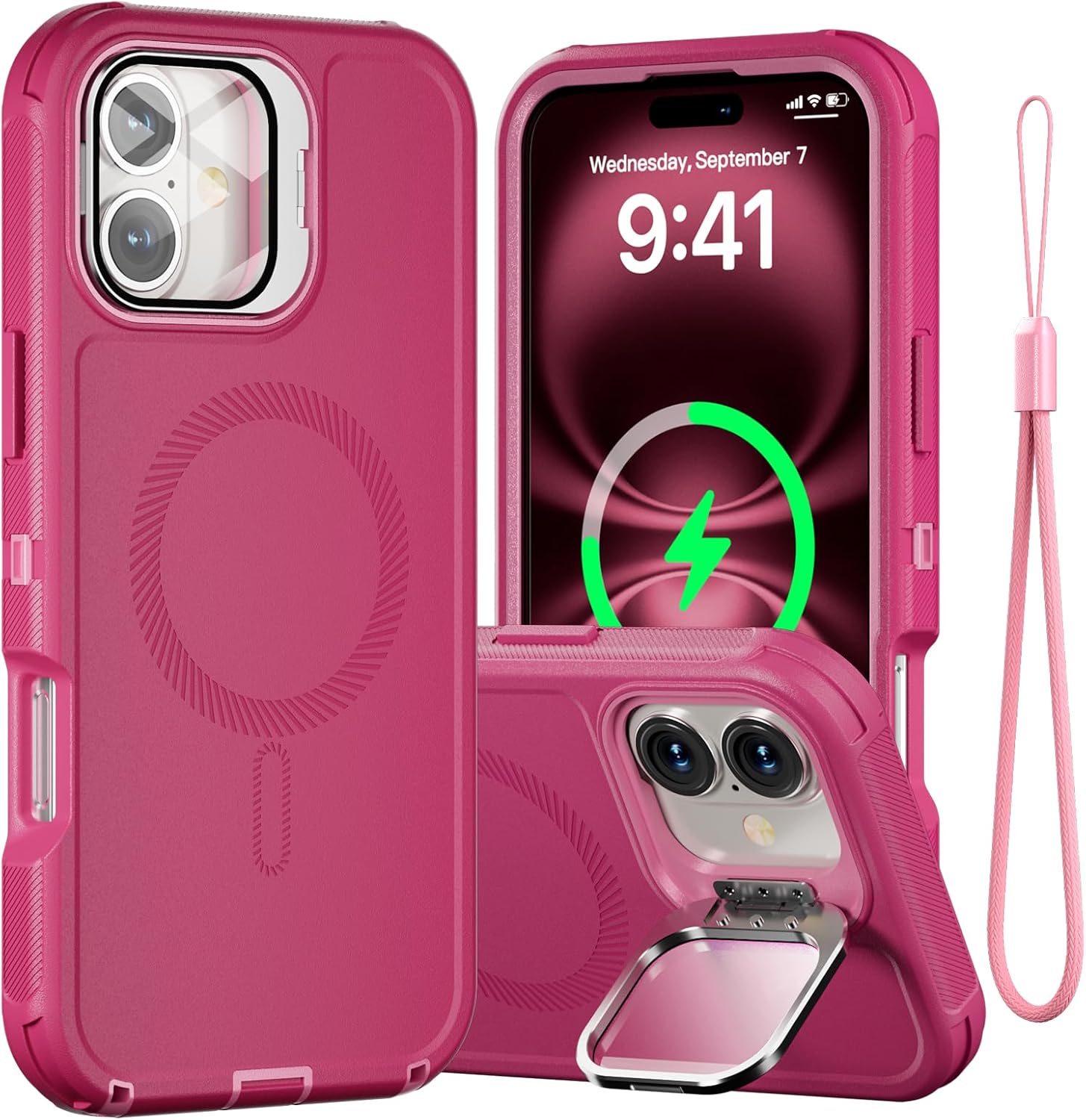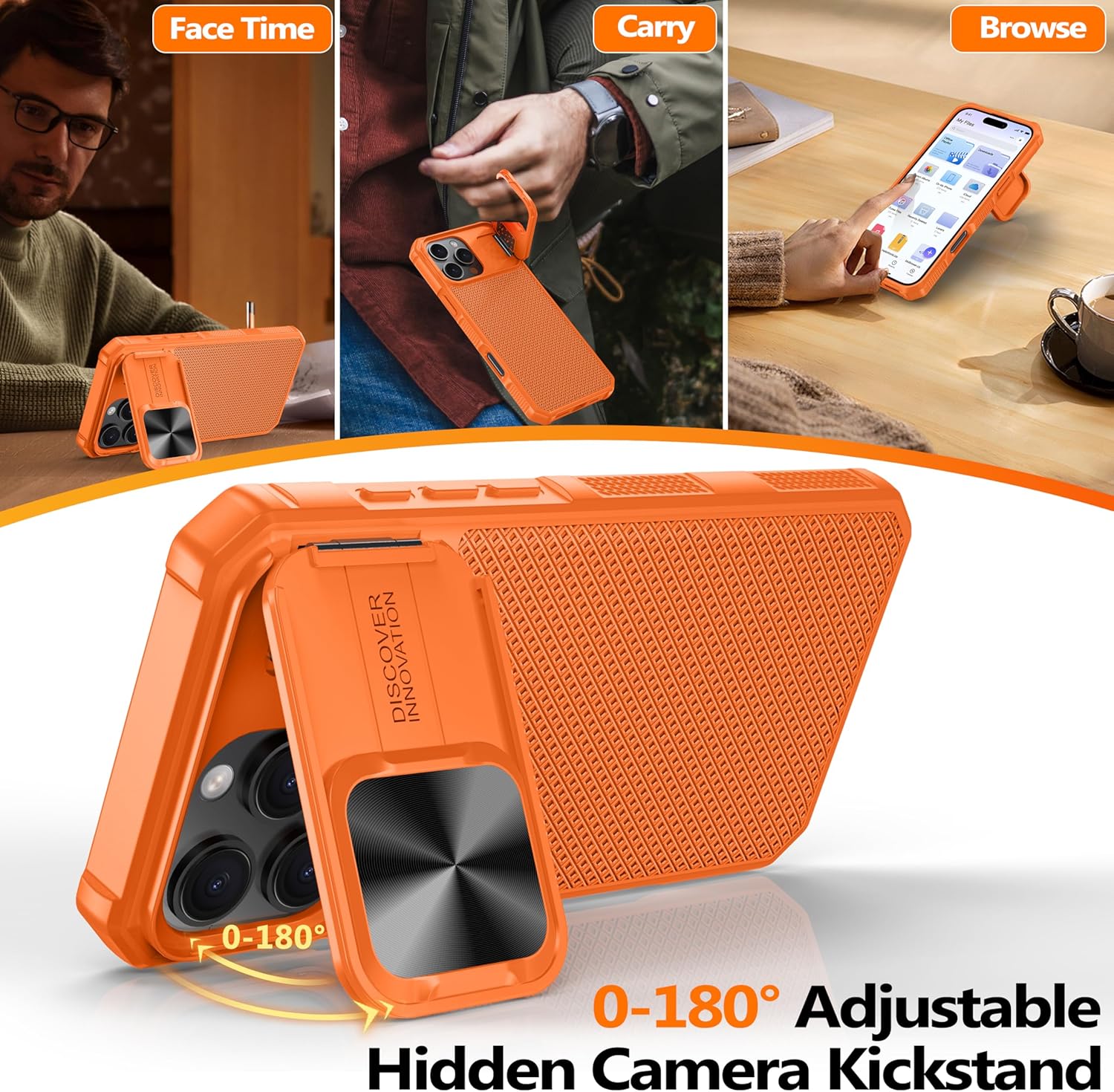 SURITCH 适用于 iPhone 16 Pro 手机壳,带滑动相机盖和可调节支架,兼容 MagSafe,防震防撞保护套,适用于 iPhone 16 Pro 6.3 英寸,黑色