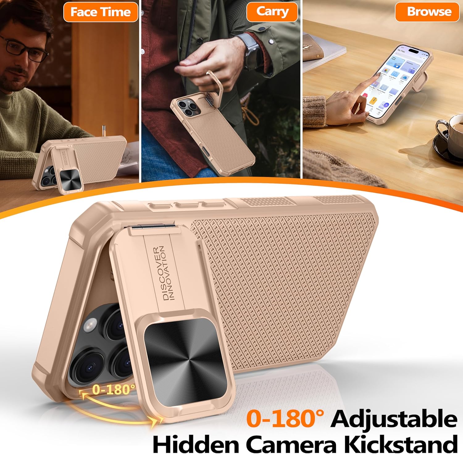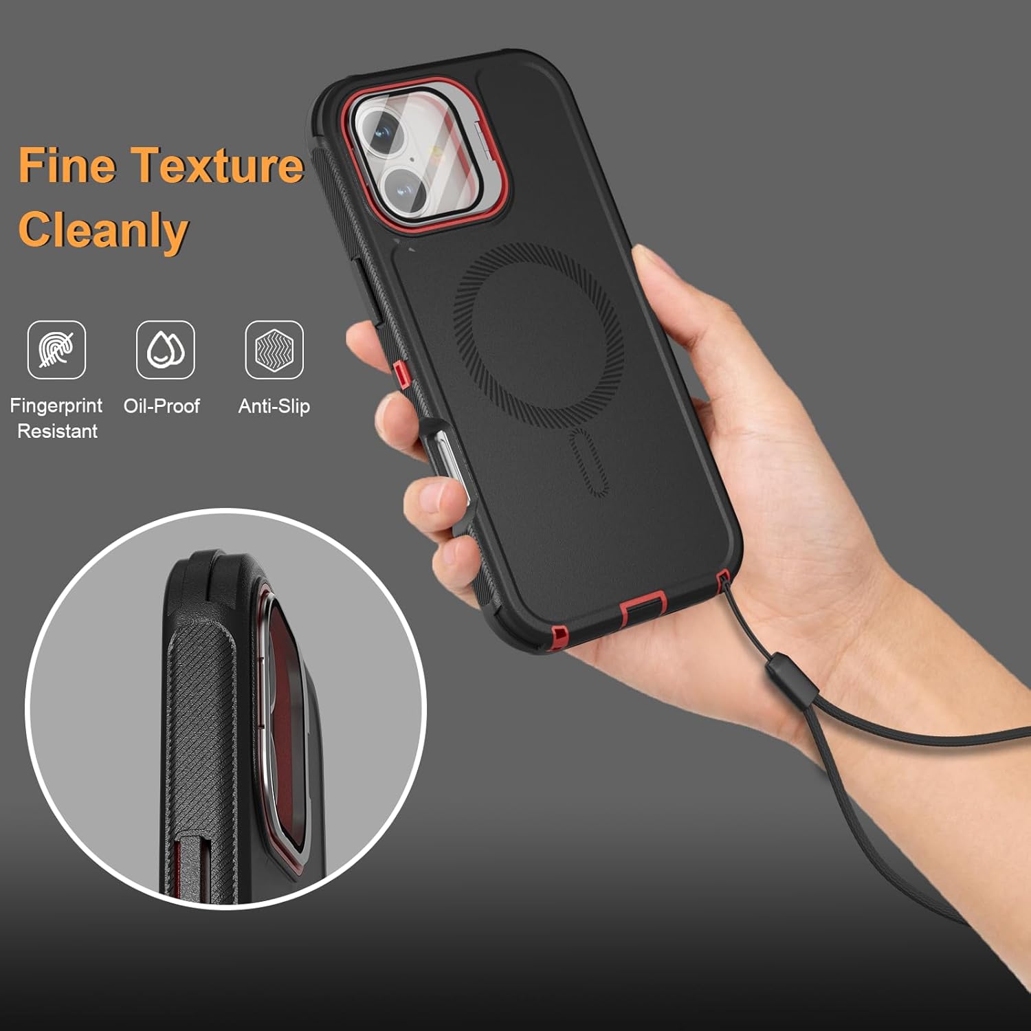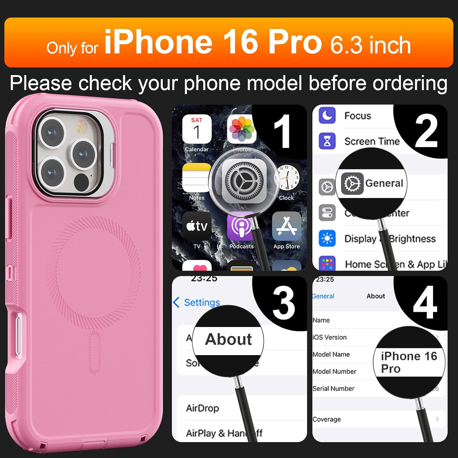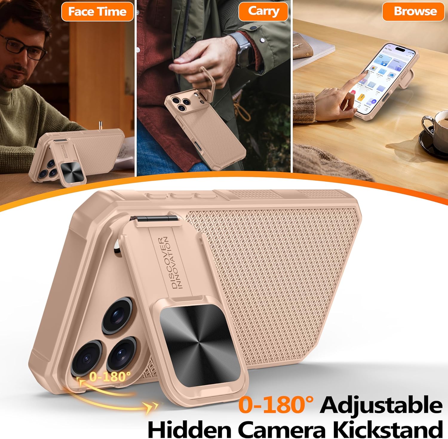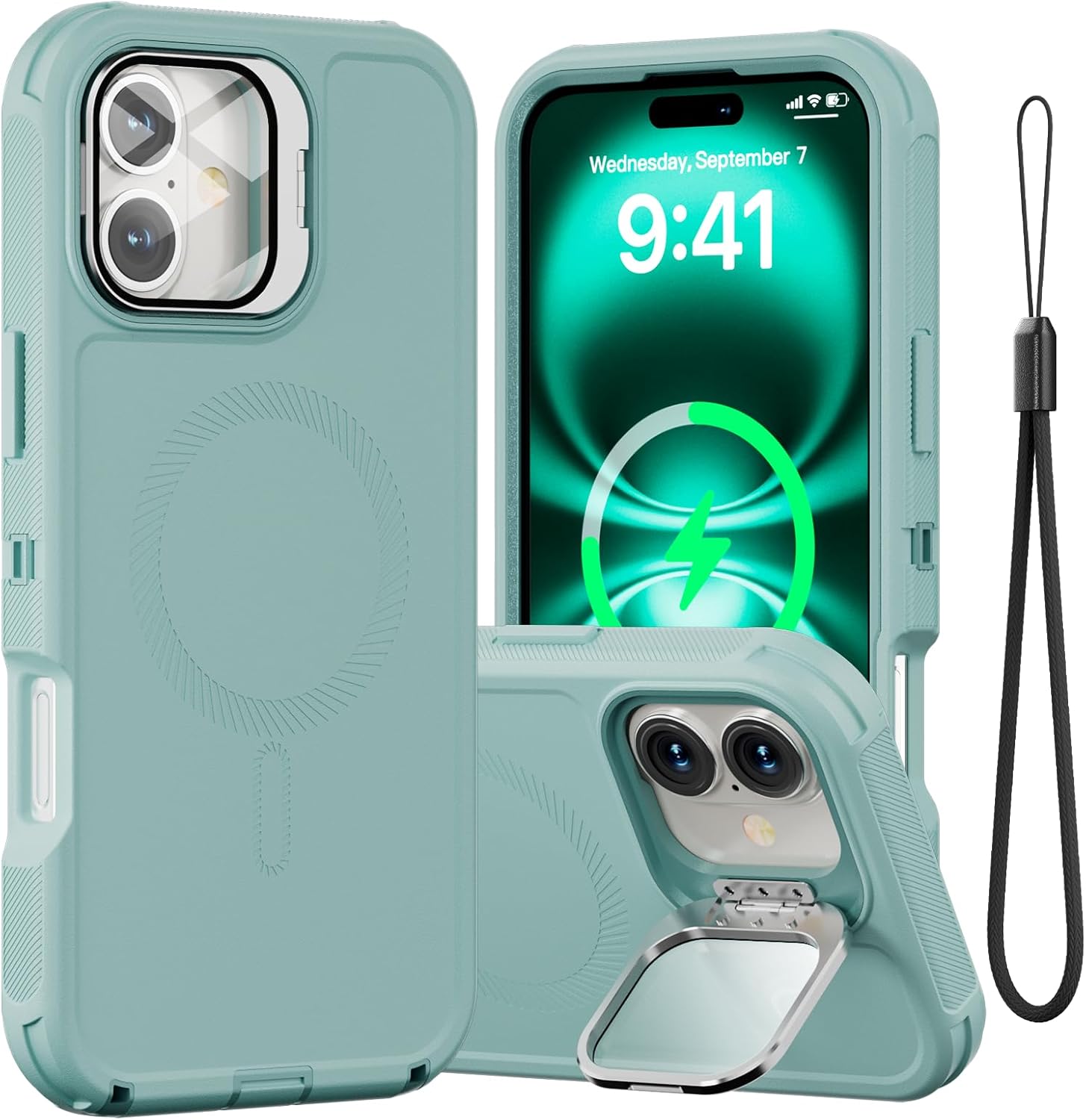 SURITCH 适用于 iPhone 16 Pro 手机壳,带滑动相机盖和可调节支架,兼容 MagSafe,防震防撞保护套,适用于 iPhone 16 Pro 6.3 英寸,黑色